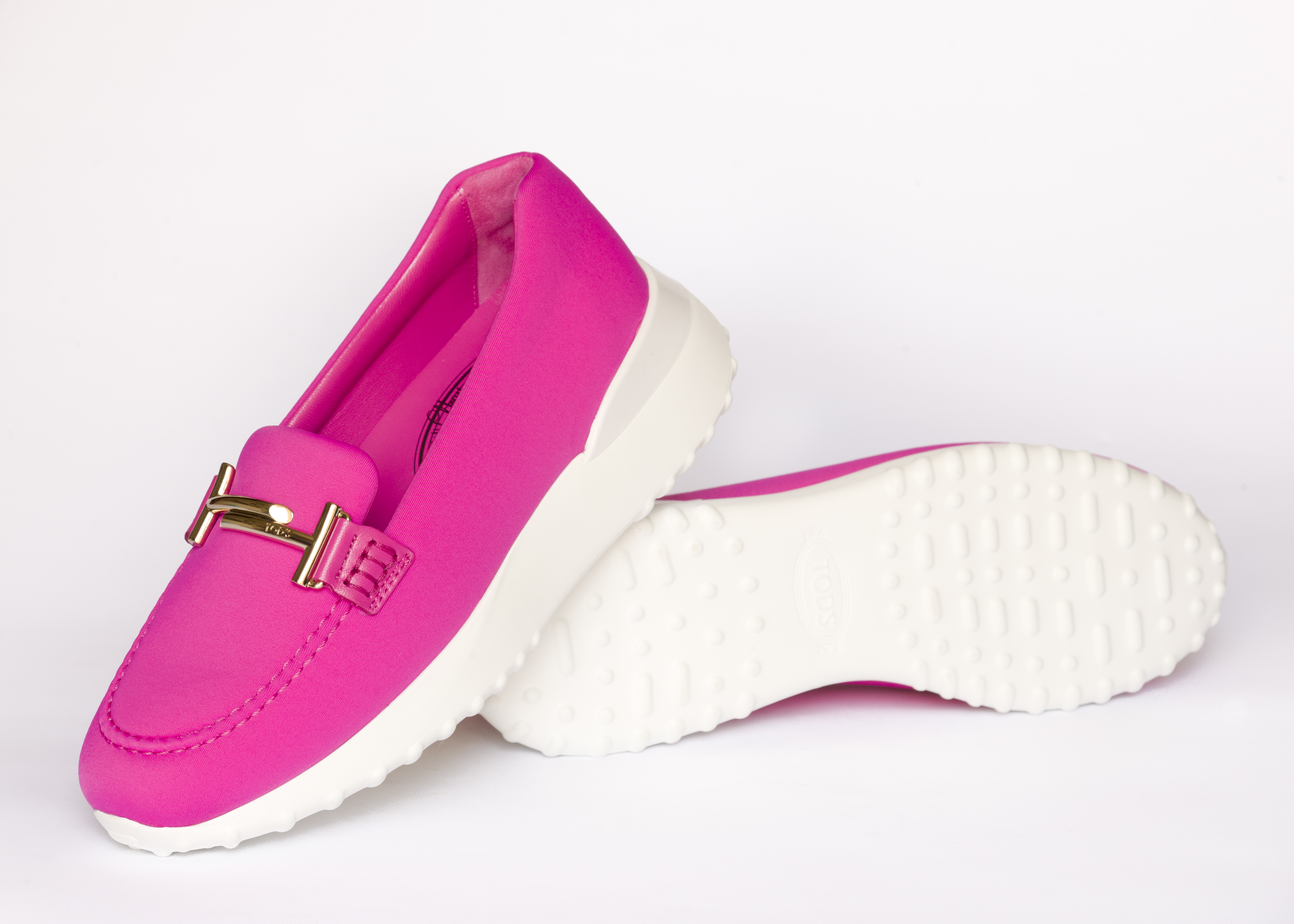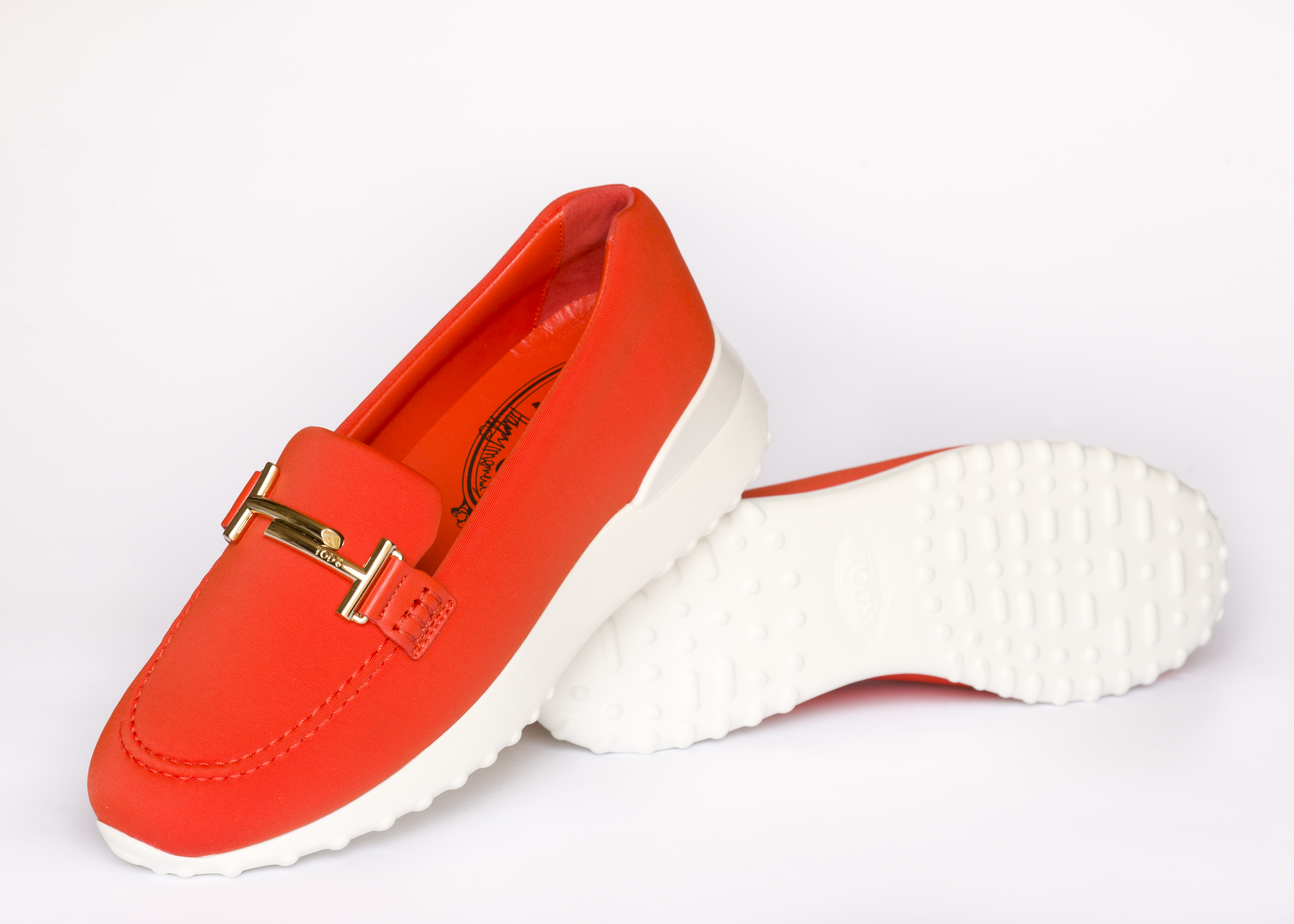 Pour ce pop-up, Tod’s et Alber Elbaz ont d’ailleurs imaginé deux coloris exclusifs de ce mocassin sneaker, en mettant notamment en scène un néoprène orange acidulé et un néoprène rose pétillant.