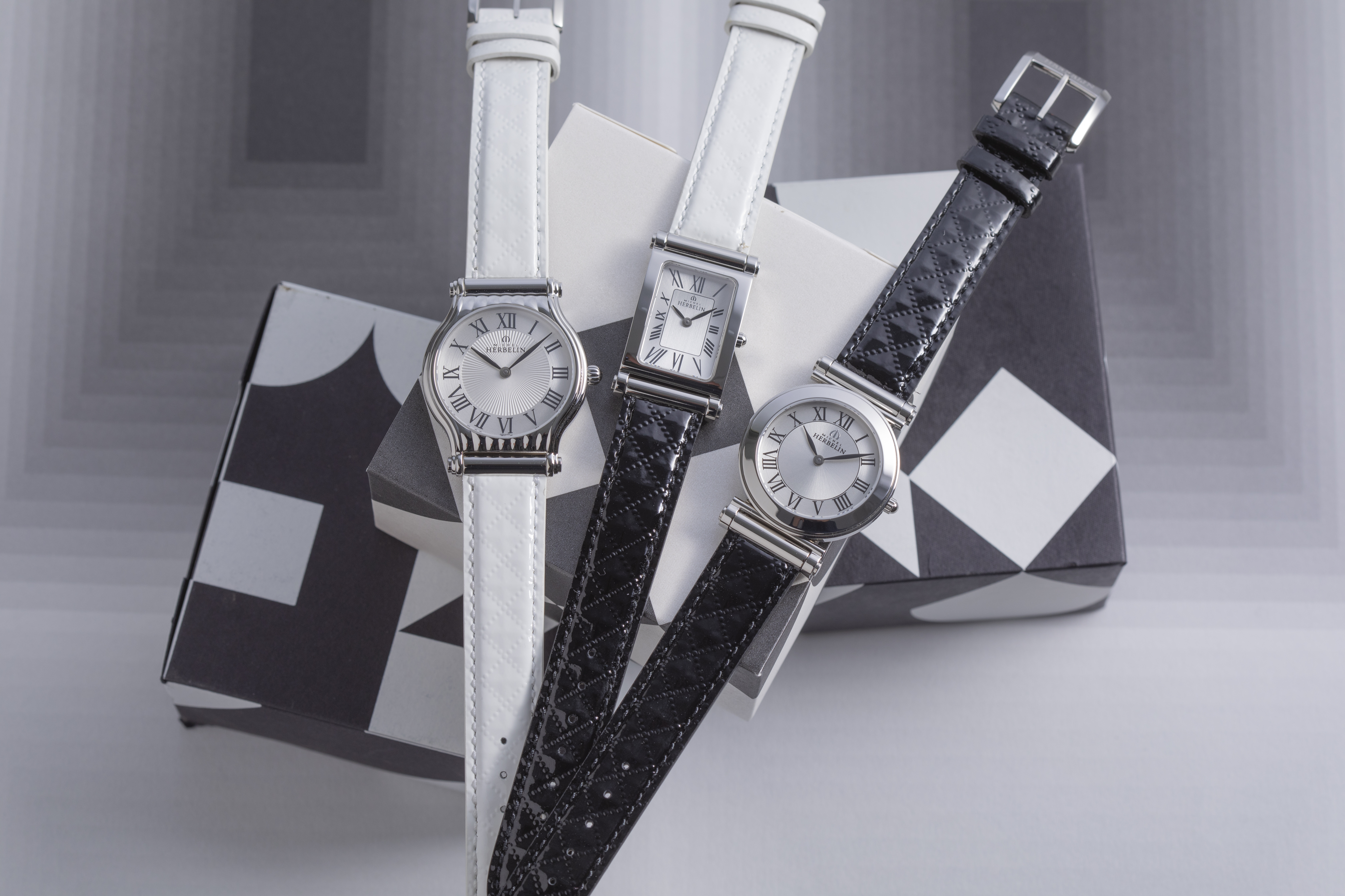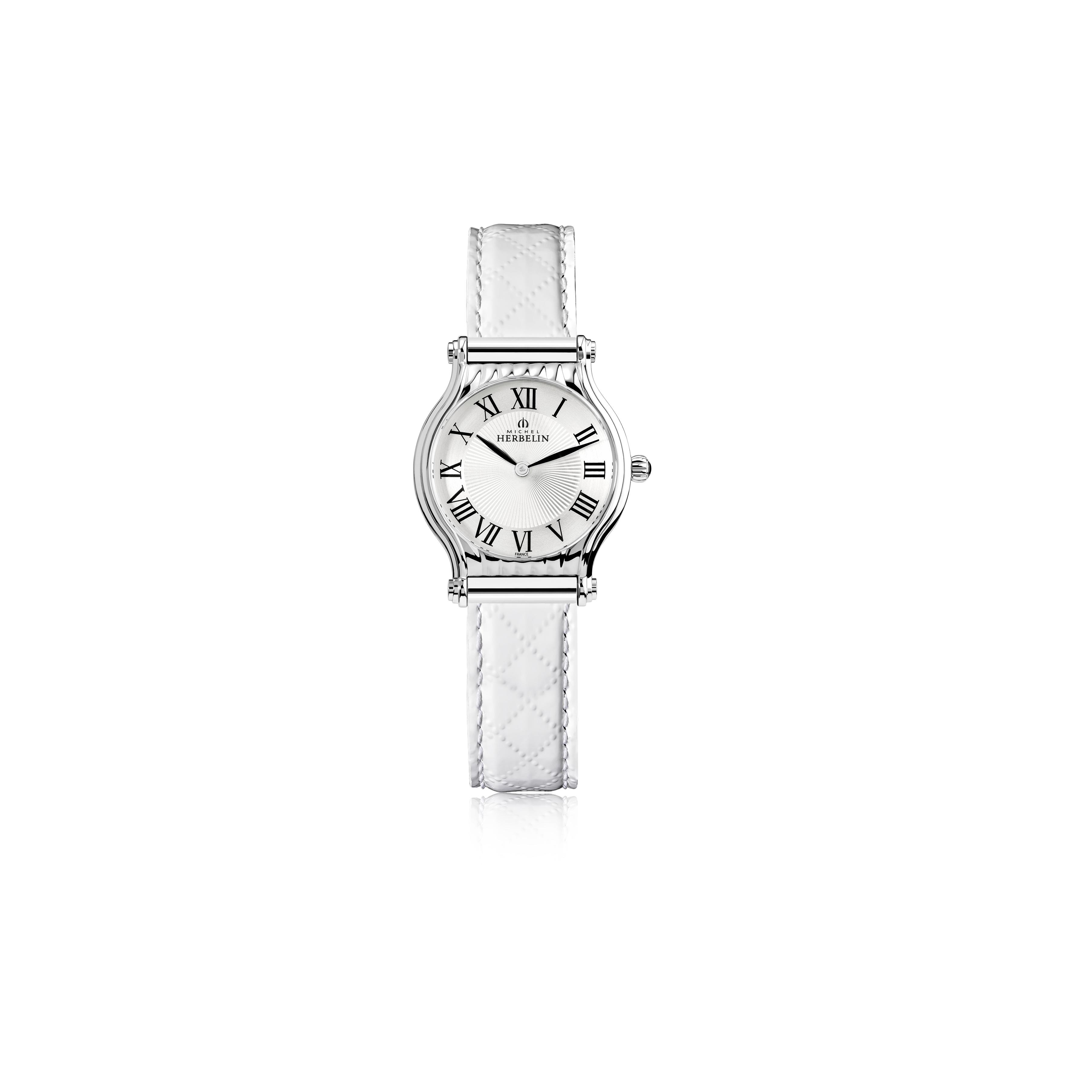 A choisir parmi trois formes de boîtiers, l’Antarès à bracelet interchangeable de l’Atelier d’Horlogerie Française Michel Herbelin séduit par son côté versatile. Associé à ces nouveaux bracelets en cuir de veau vernis matelassé noir ou blanc, ce garde-temps ose la mode « rebelle chic ». .