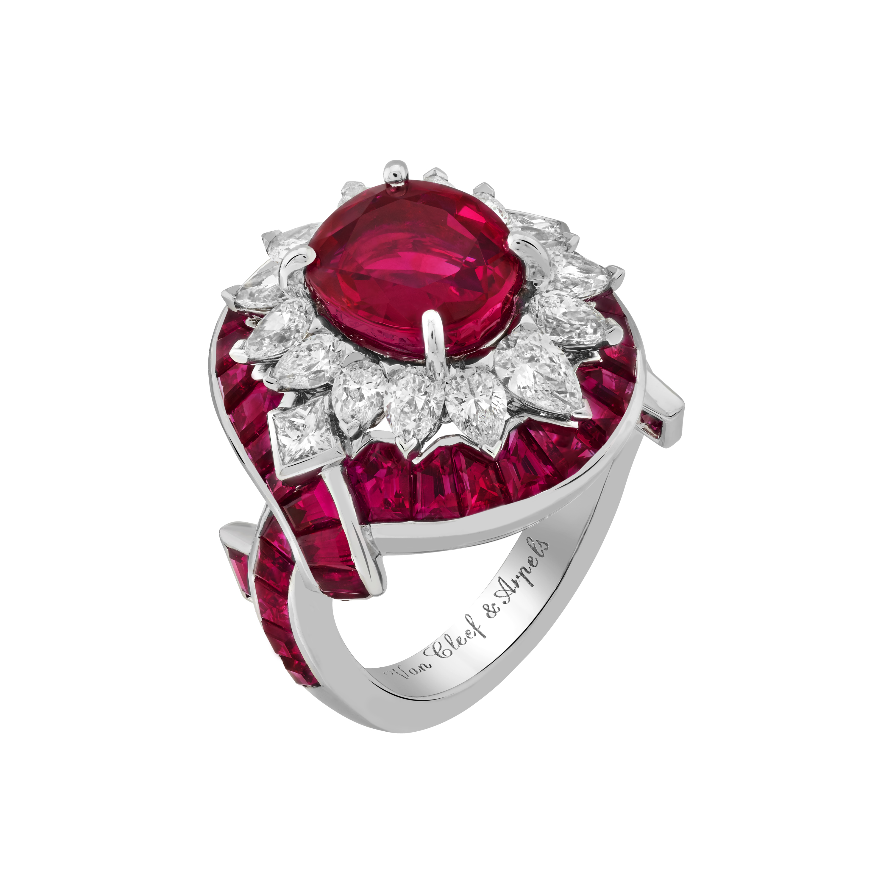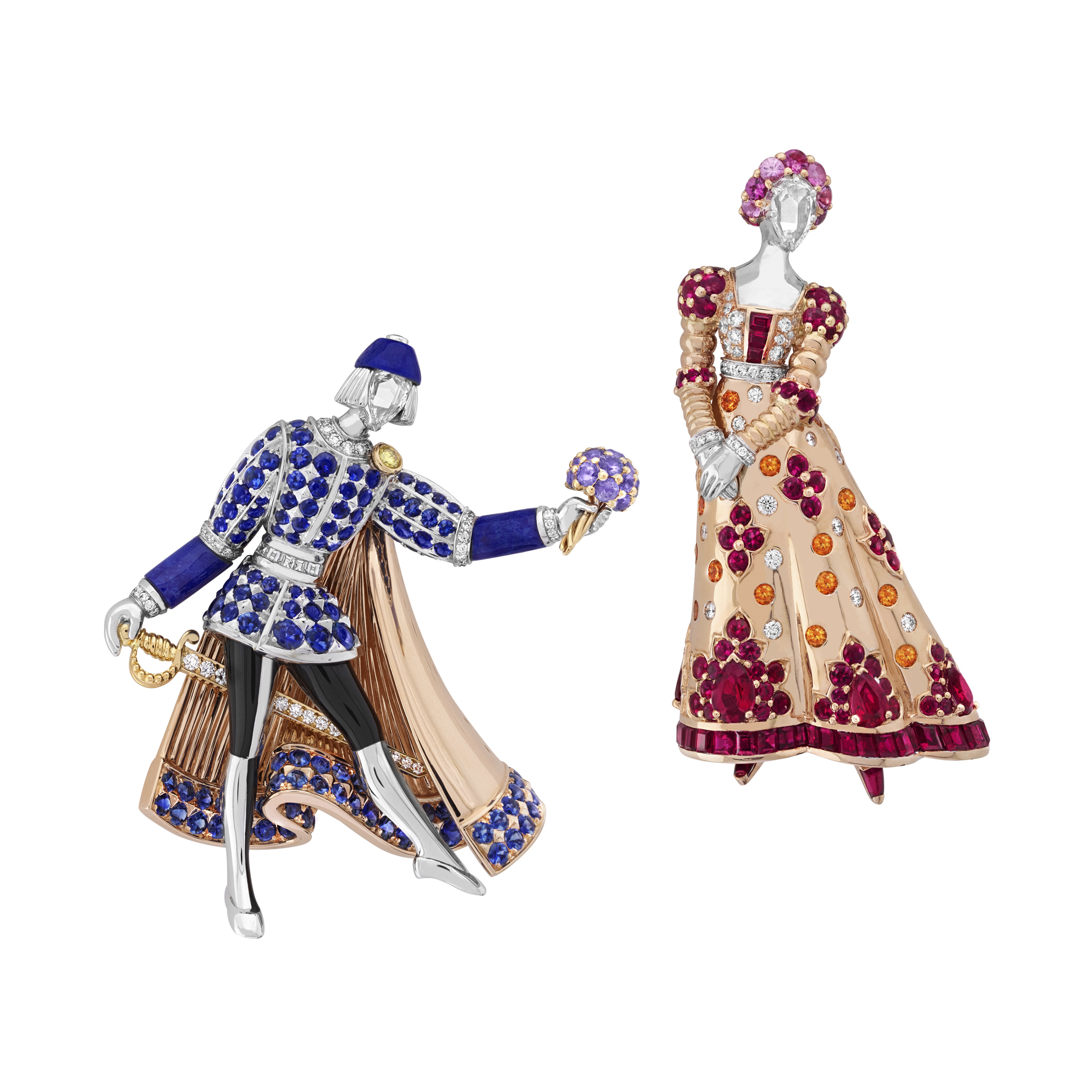 Chef-d’oeuvre mythique de William Shakespeare, Roméo et Juliette inspire à Van Cleef & Arpels une nouvelle collection de Haute Joaillerie où le langage de l’amour rencontre celui des gemmes. La destinée des jeunes amants se rejoue dans une Vérone de pierres précieuses où jardins d’émeraudes et remparts flamboyants abritent leurs secrets. L’esthétique de la Renaissance italienne souffle ainsi sur des créations virtuoses, traduisant en joyaux cette passion éternelle.