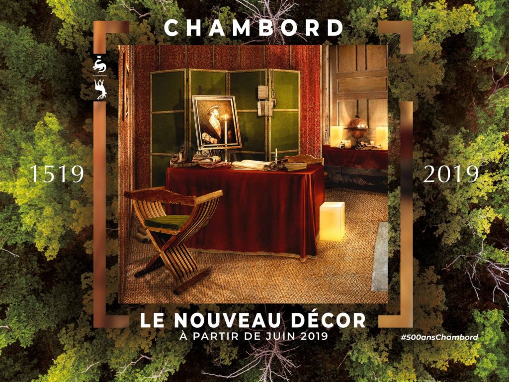 Dans le cadre des célébrations de son 500e anniversaire, le Domaine national de Chambord souhaite replacer François Ier, le commanditaire du château, au cœur de la visite. Ce réaménagement, qui s’étend du rez-de-chaussée jusqu’à l’aile royale, a été confié à Jacques Garcia, décorateur et scénographe. Le décor proposé est le seul exemple en France d’évocation d’un décor de la cour itinérante à la Renaissance. L’idée est d’accueillir le visiteur comme un invité du roi et de suggérer l’atmosphère d’un Chambord préparé pour l’arrivée de la cour.