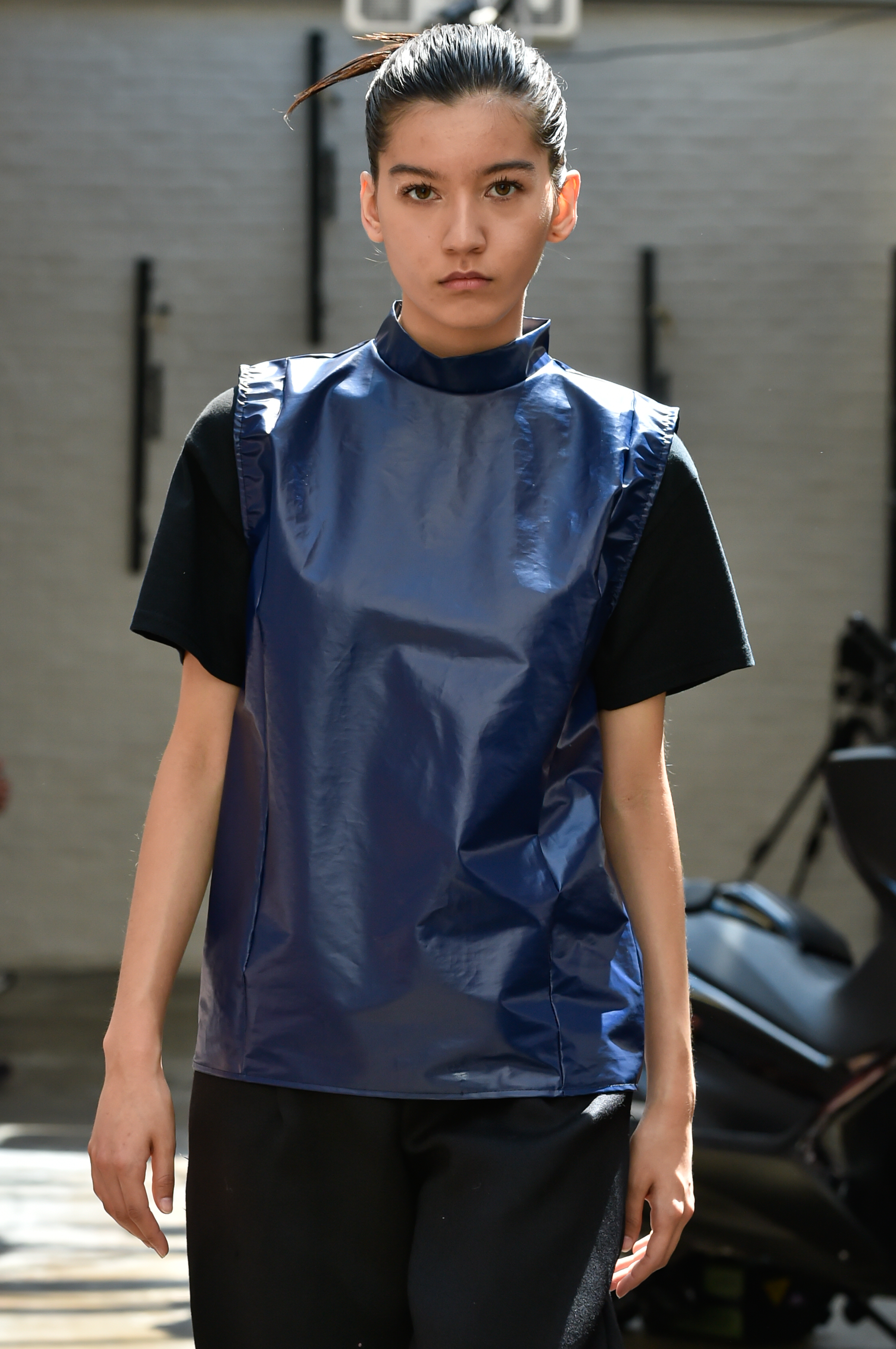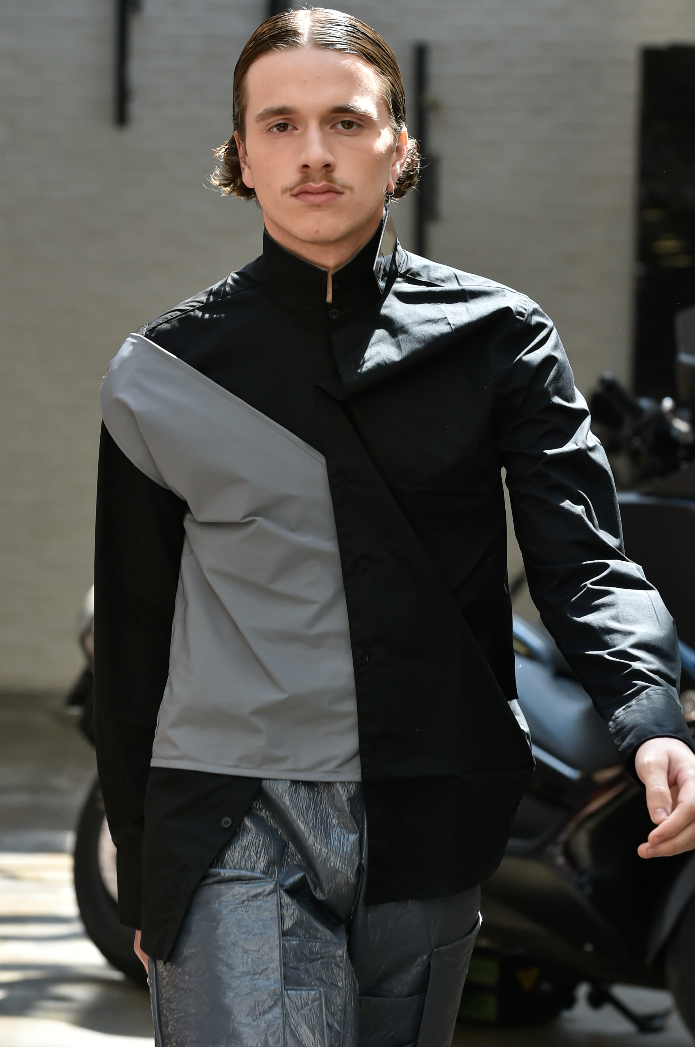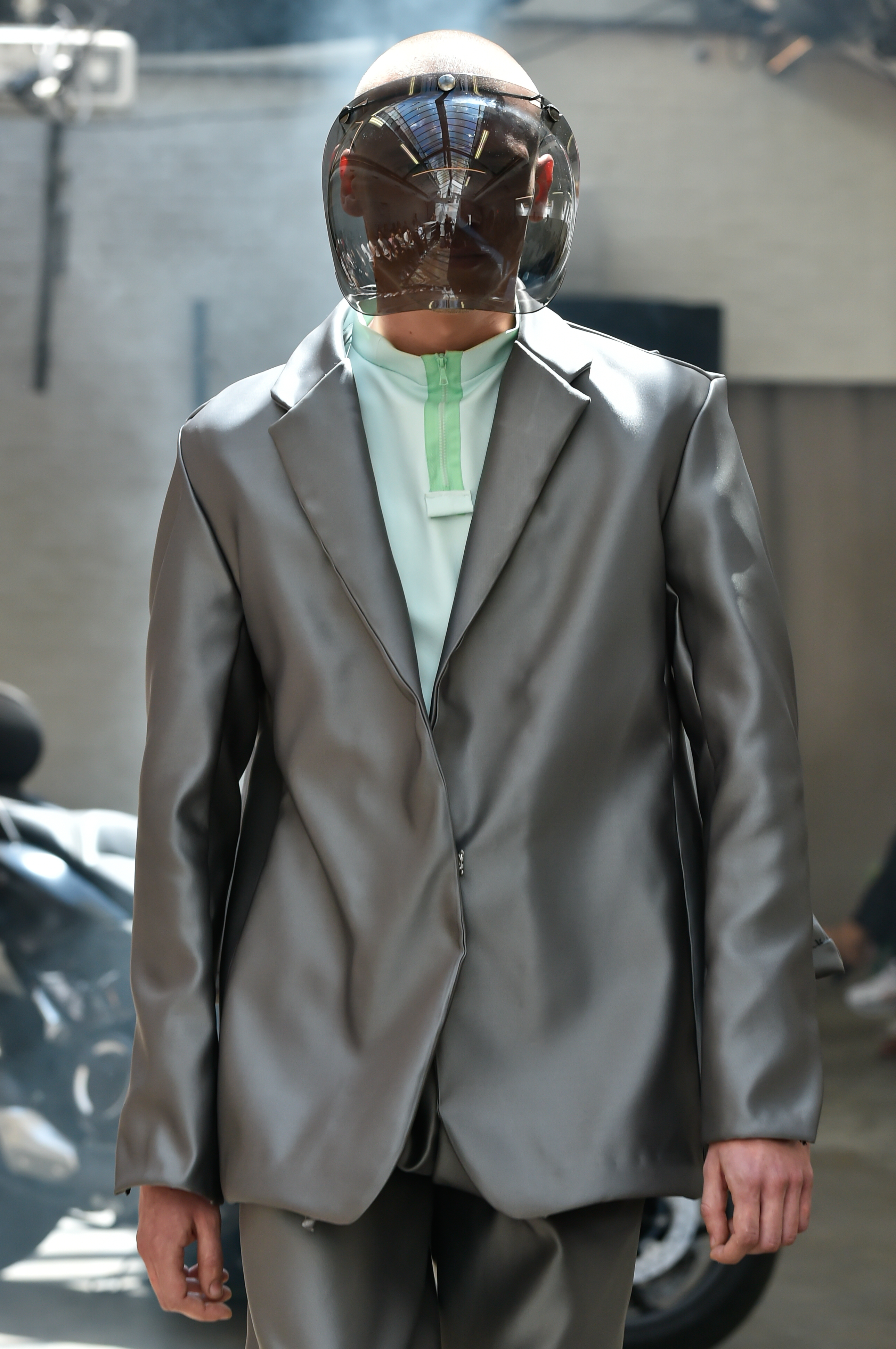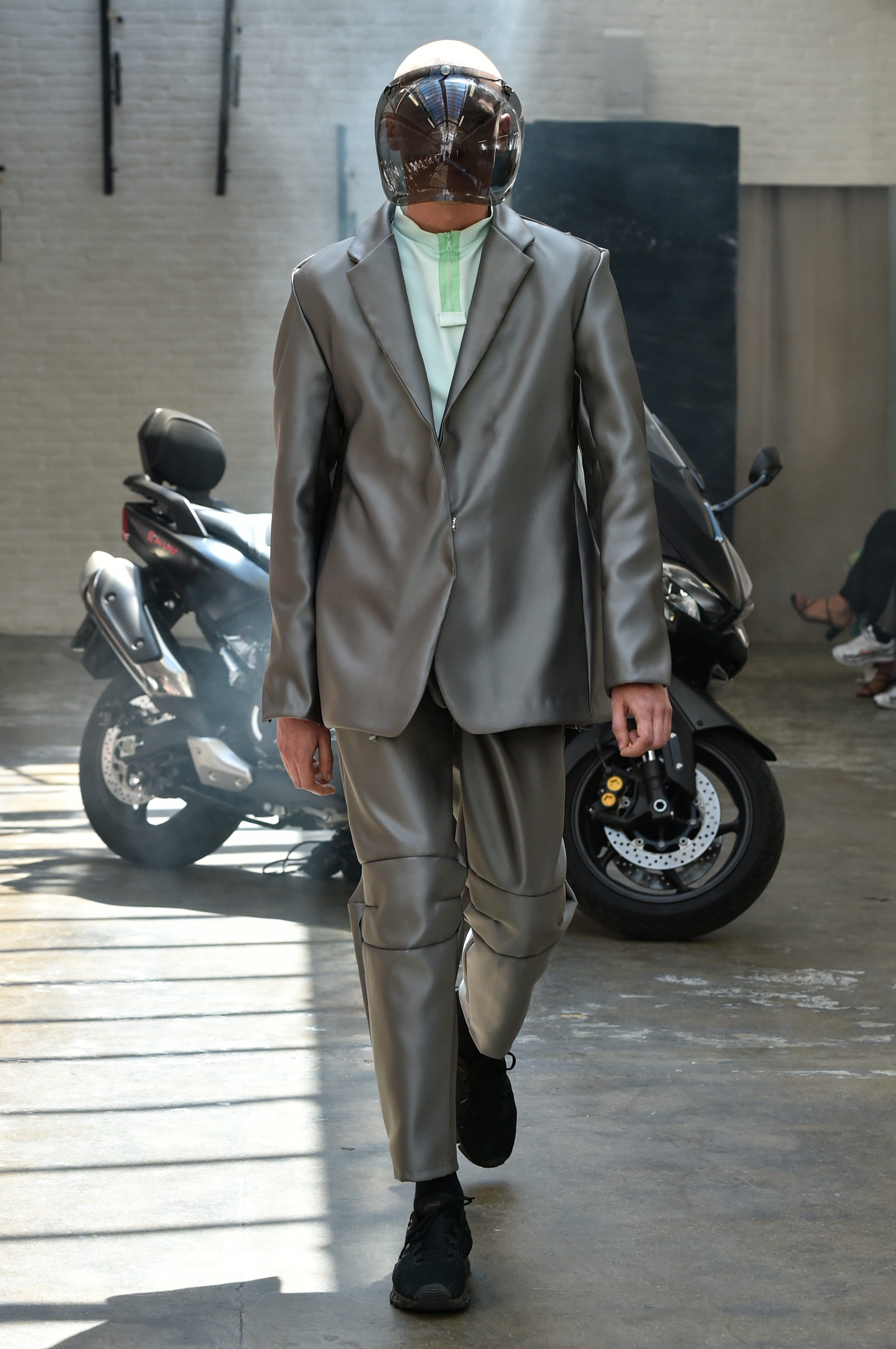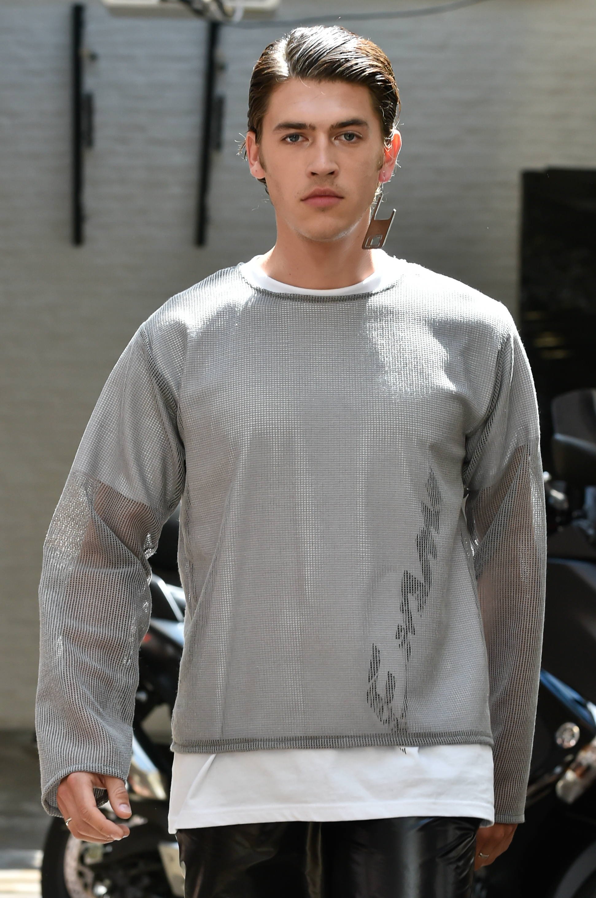 Les silhouettes composées de davantage de couleurs, sont agrémentées d’accessoires et de bijoux fais en collaboration avec Thismx Jewelry à partir de tôle d’acier automobiles et de pièces électroniques.