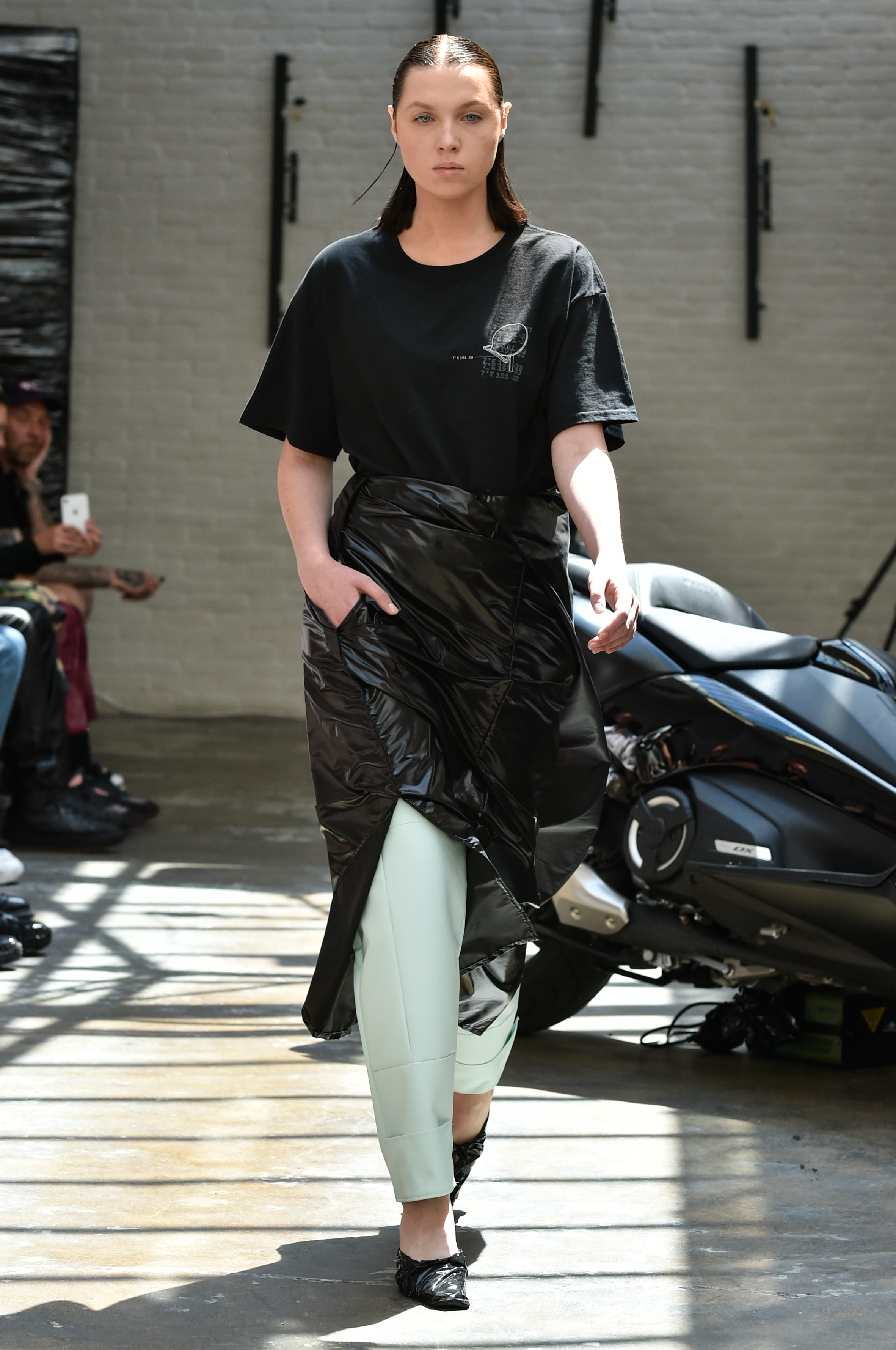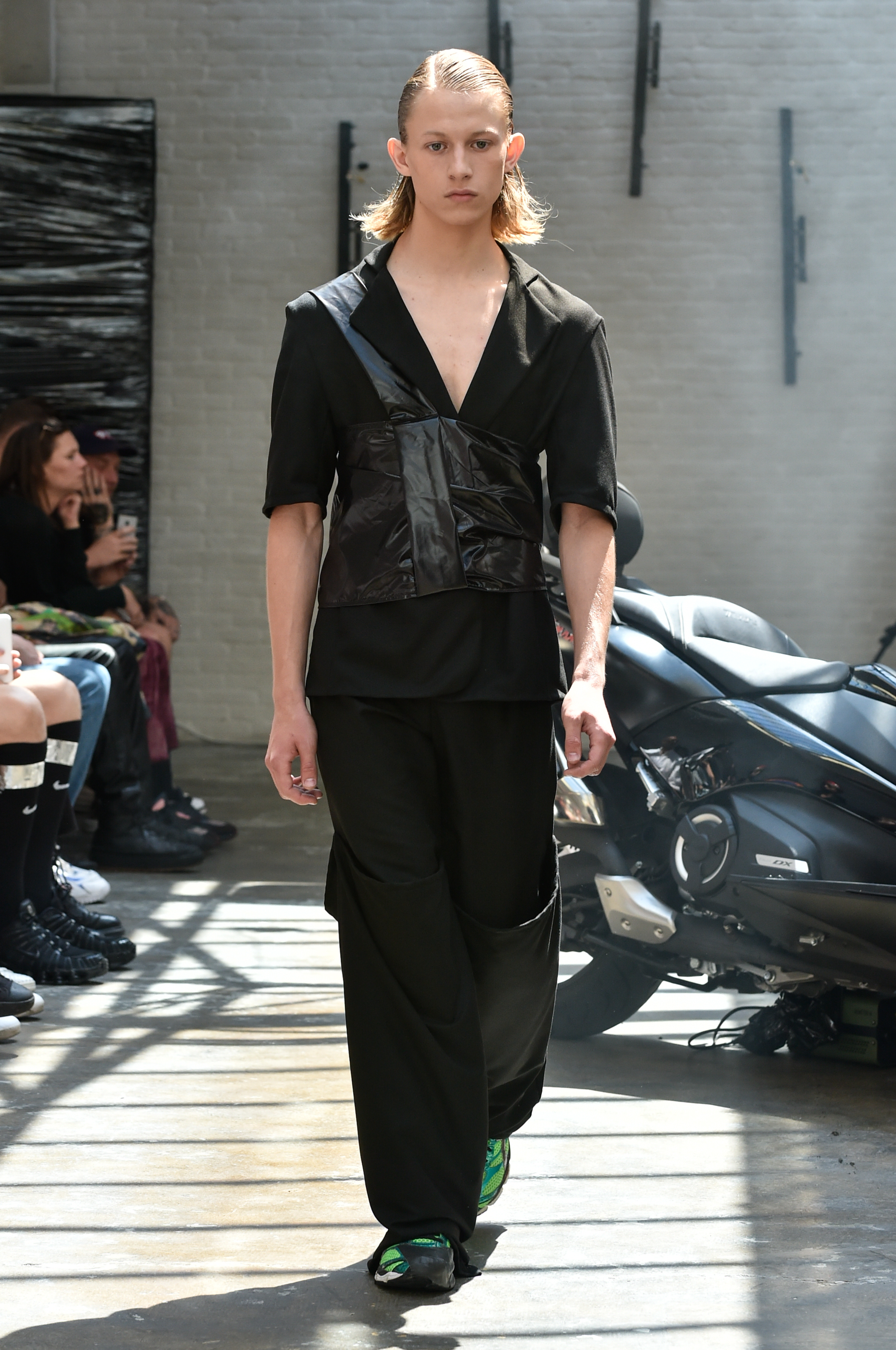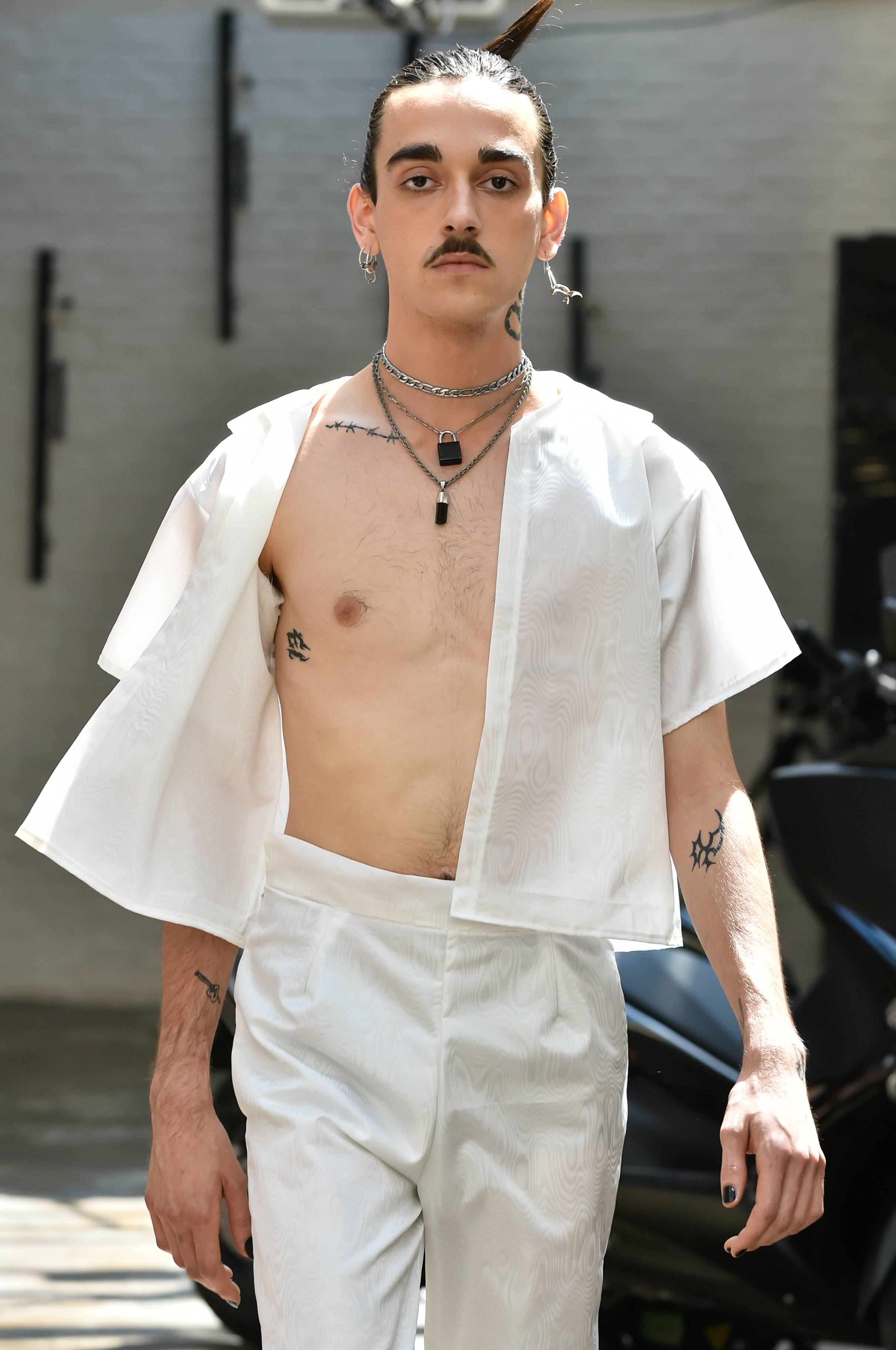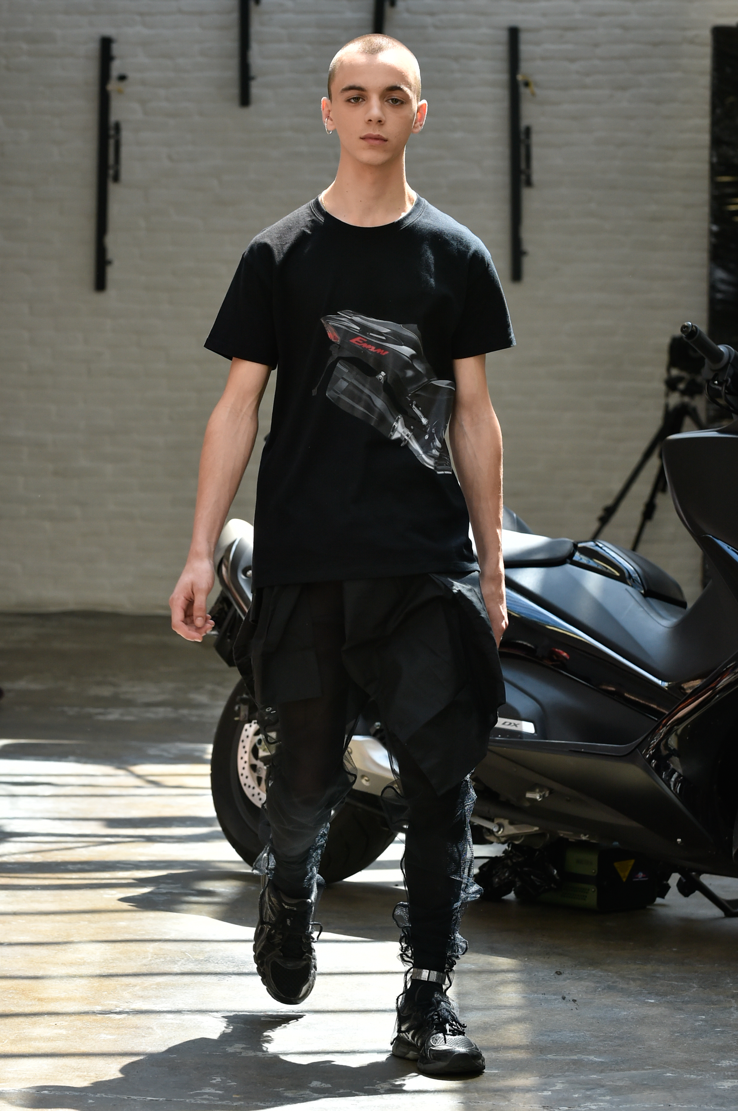 Les silhouettes composées de davantage de couleurs, sont agrémentées d’accessoires et de bijoux fais en collaboration avec Thismx Jewelry à partir de tôle d’acier automobiles et de pièces électroniques.