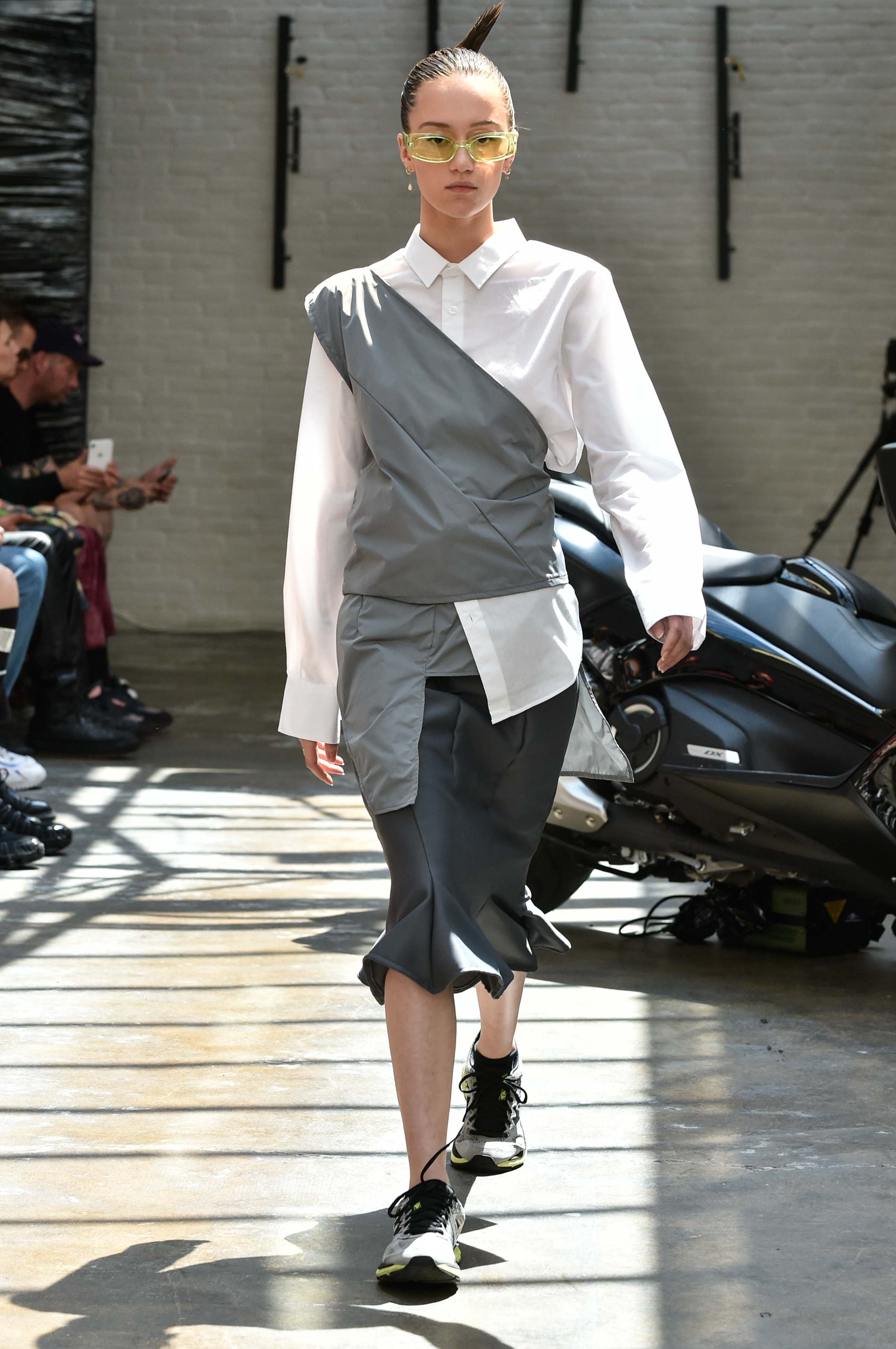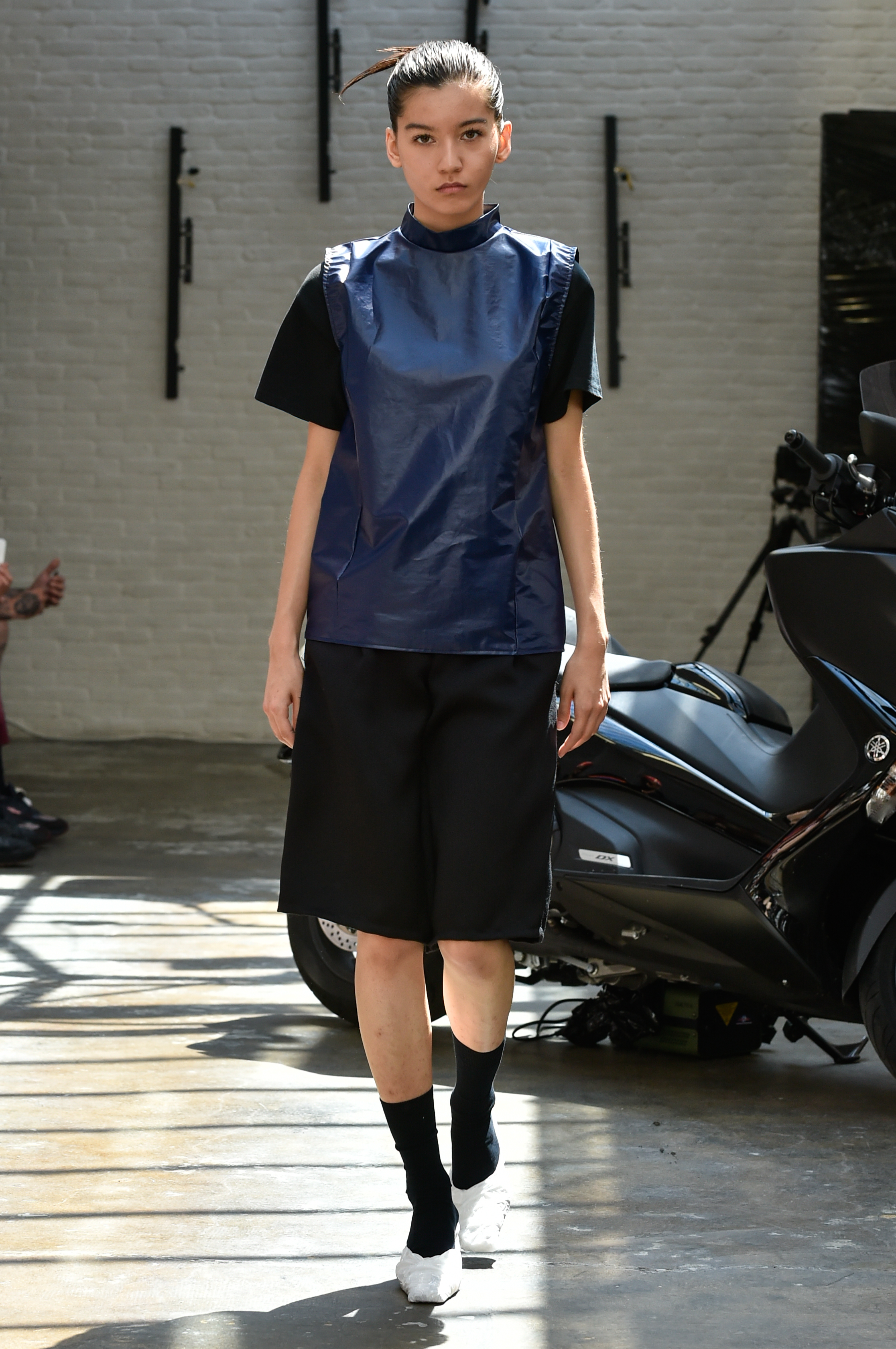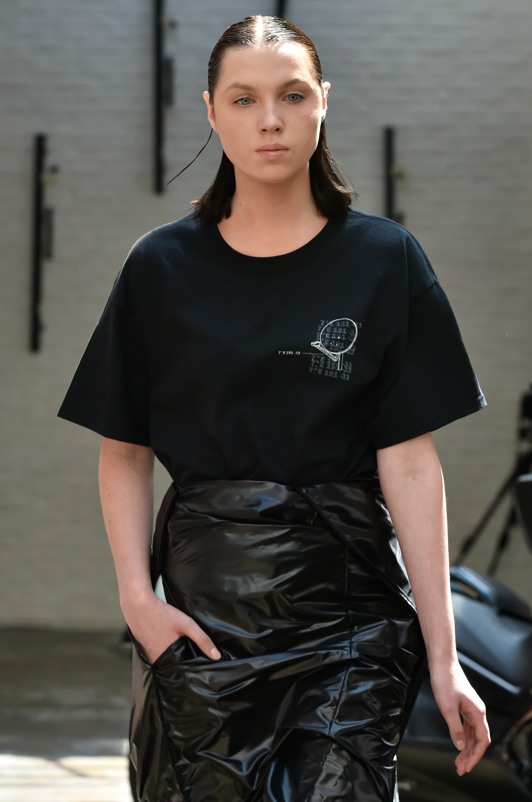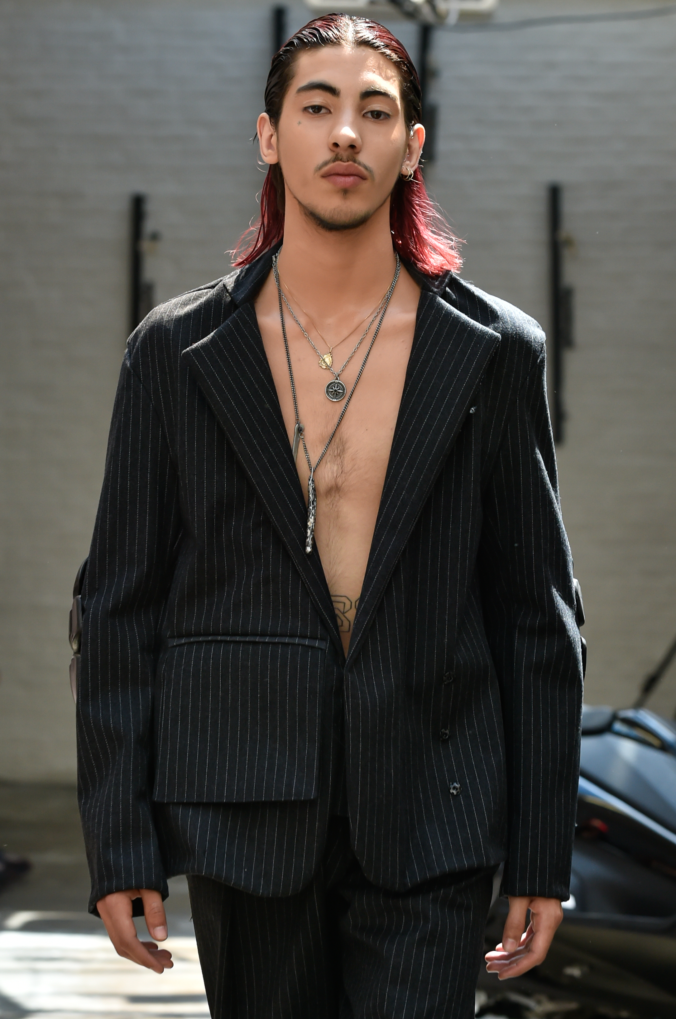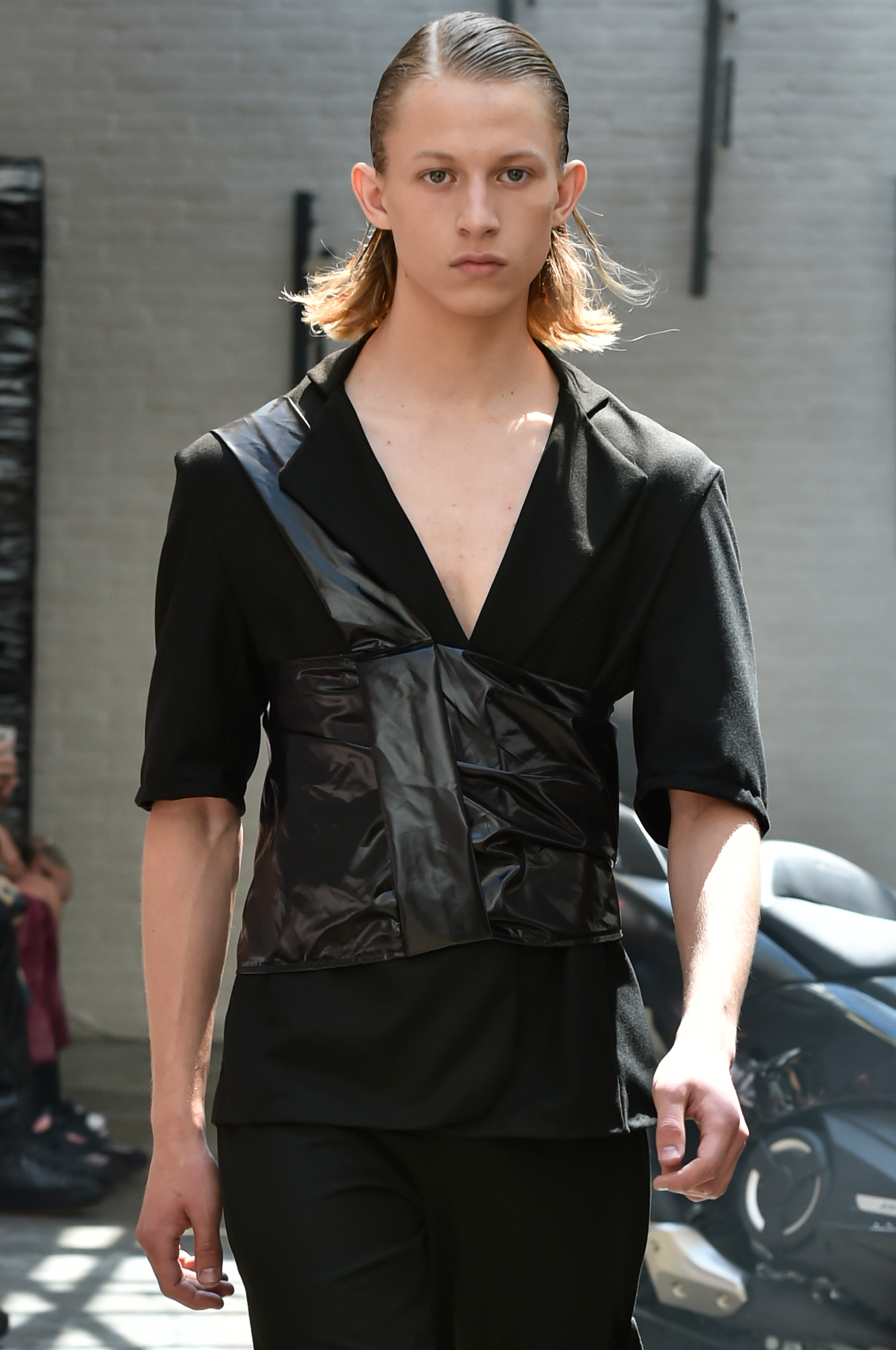 Les silhouettes composées de davantage de couleurs, sont agrémentées d’accessoires et de bijoux fais en collaboration avec Thismx Jewelry à partir de tôle d’acier automobiles et de pièces électroniques.