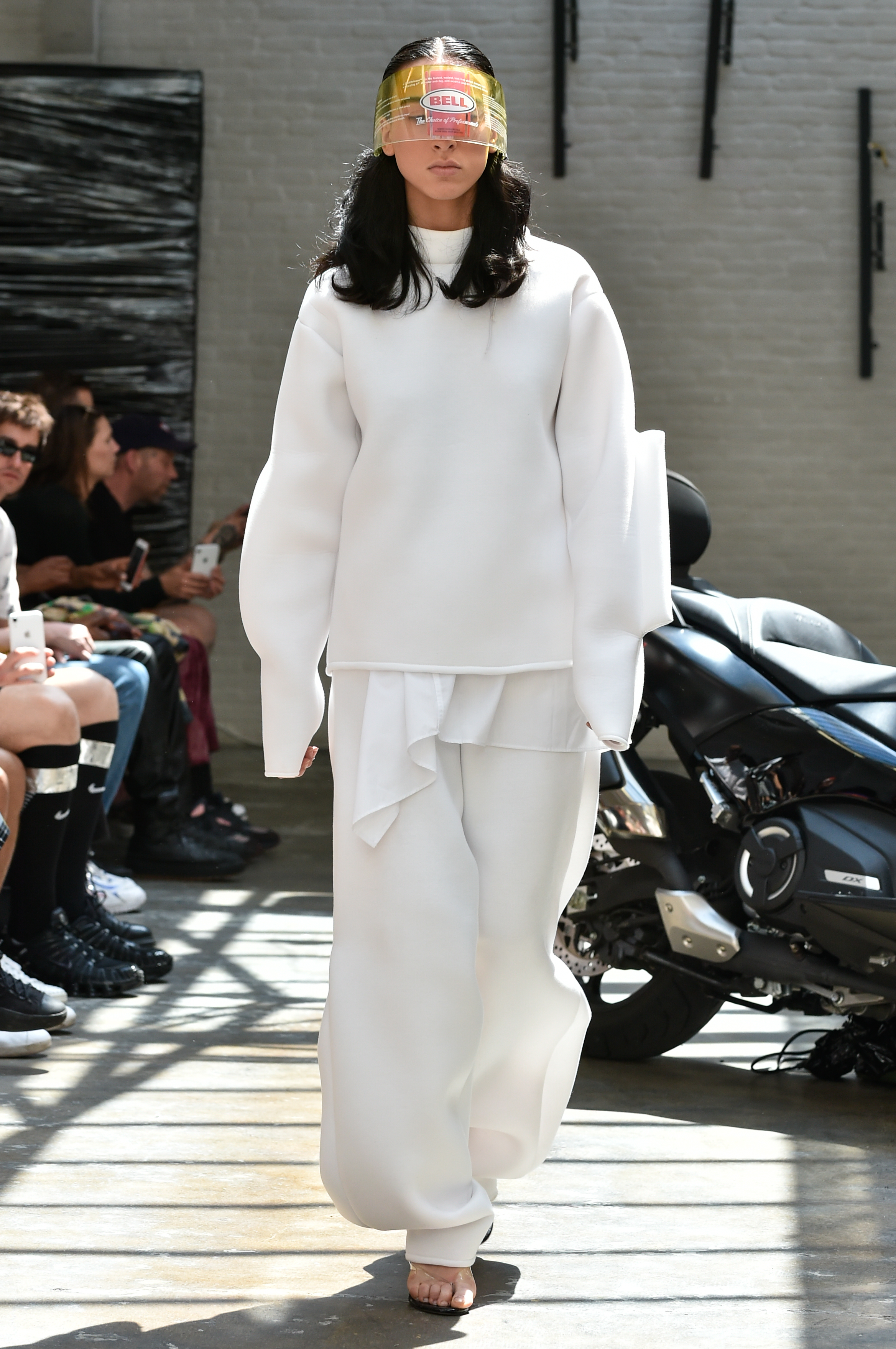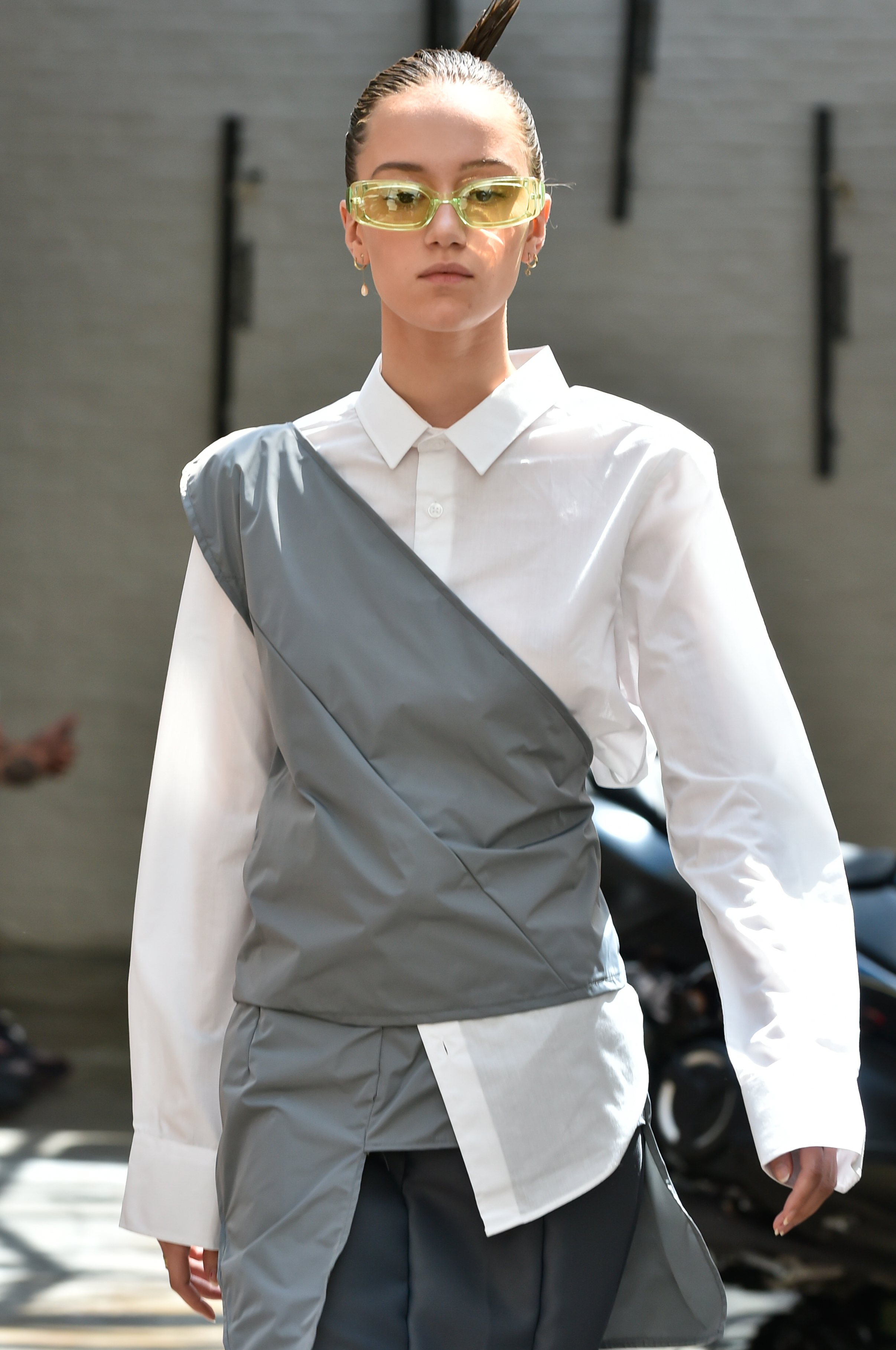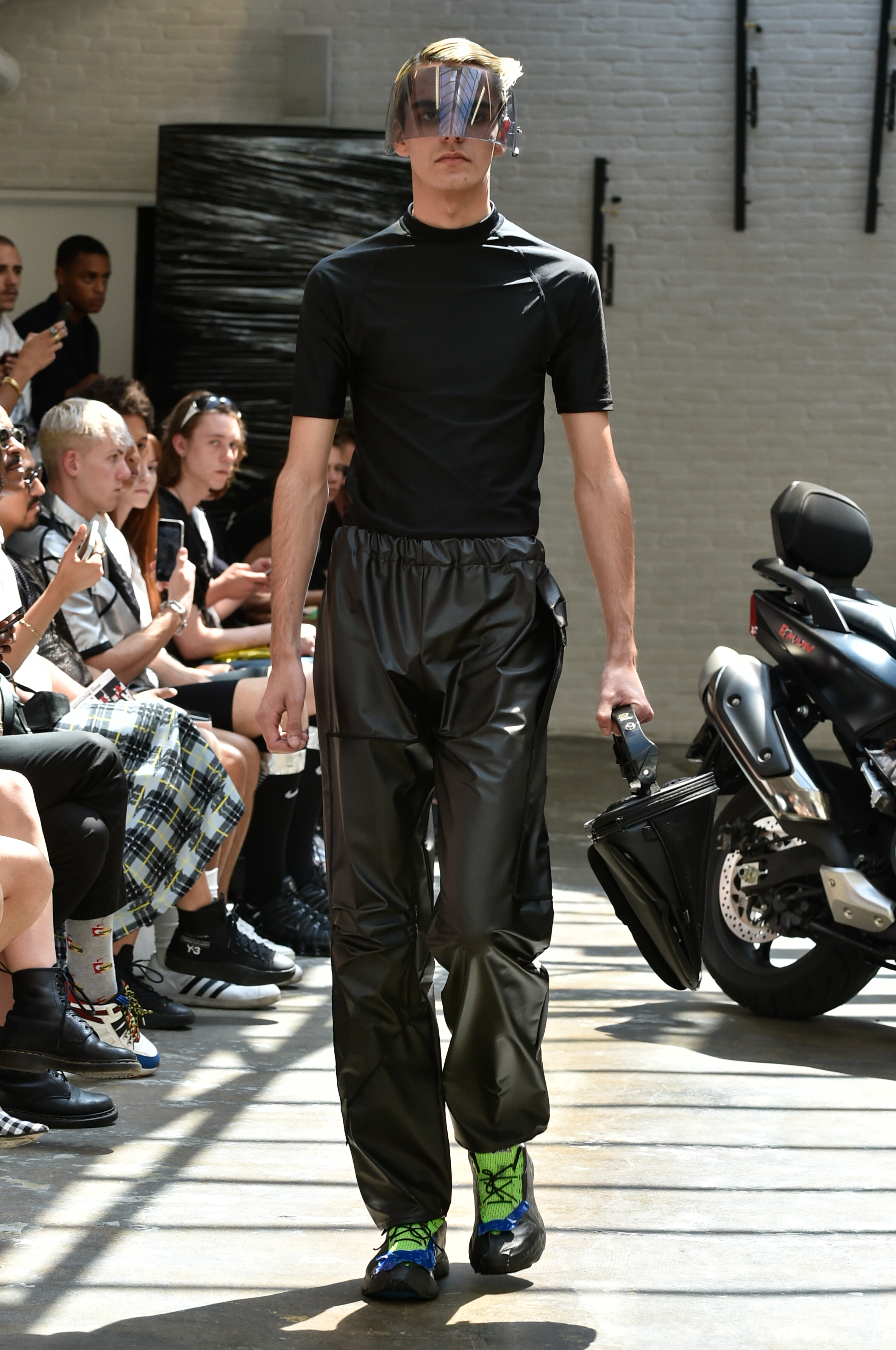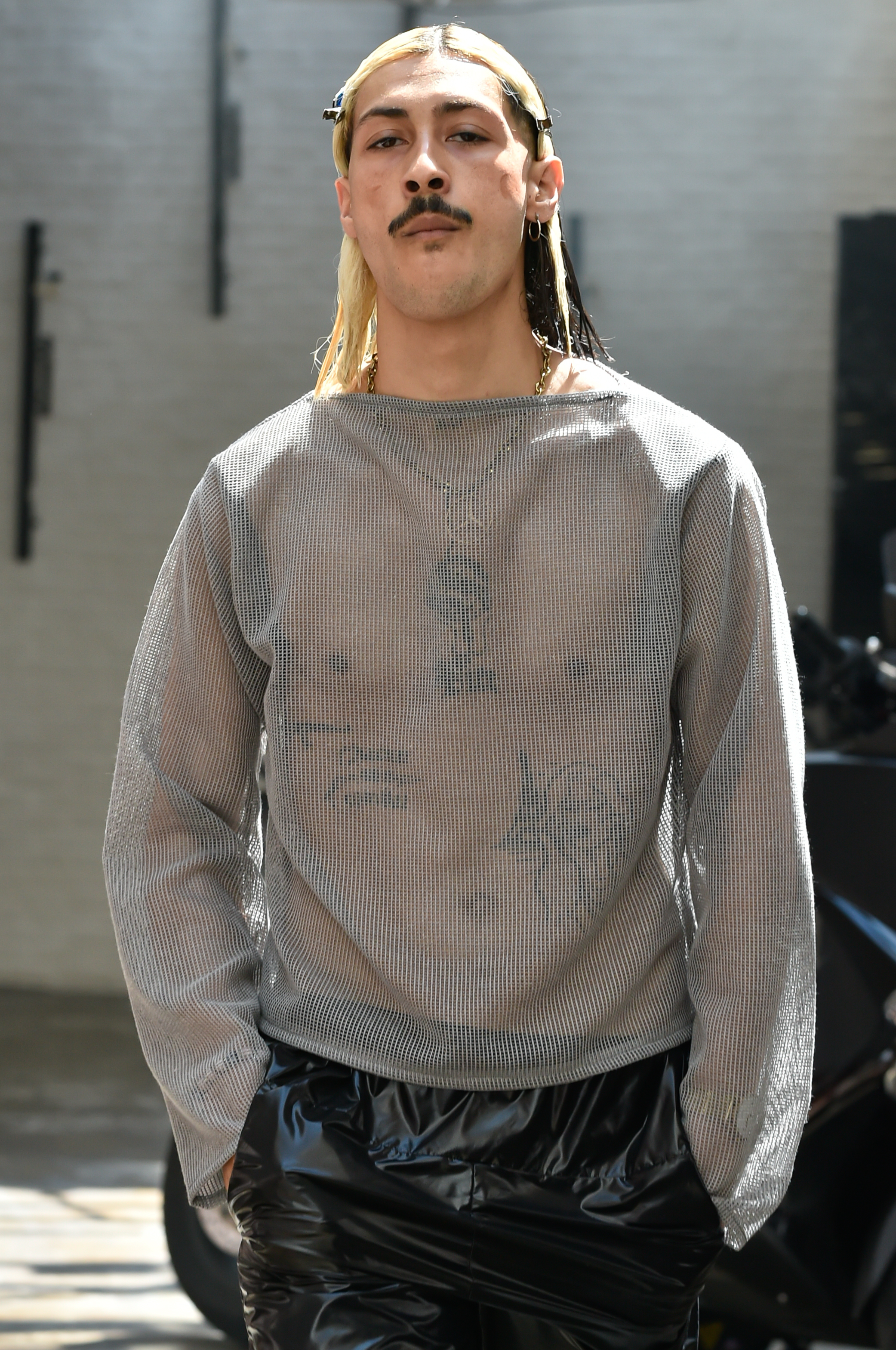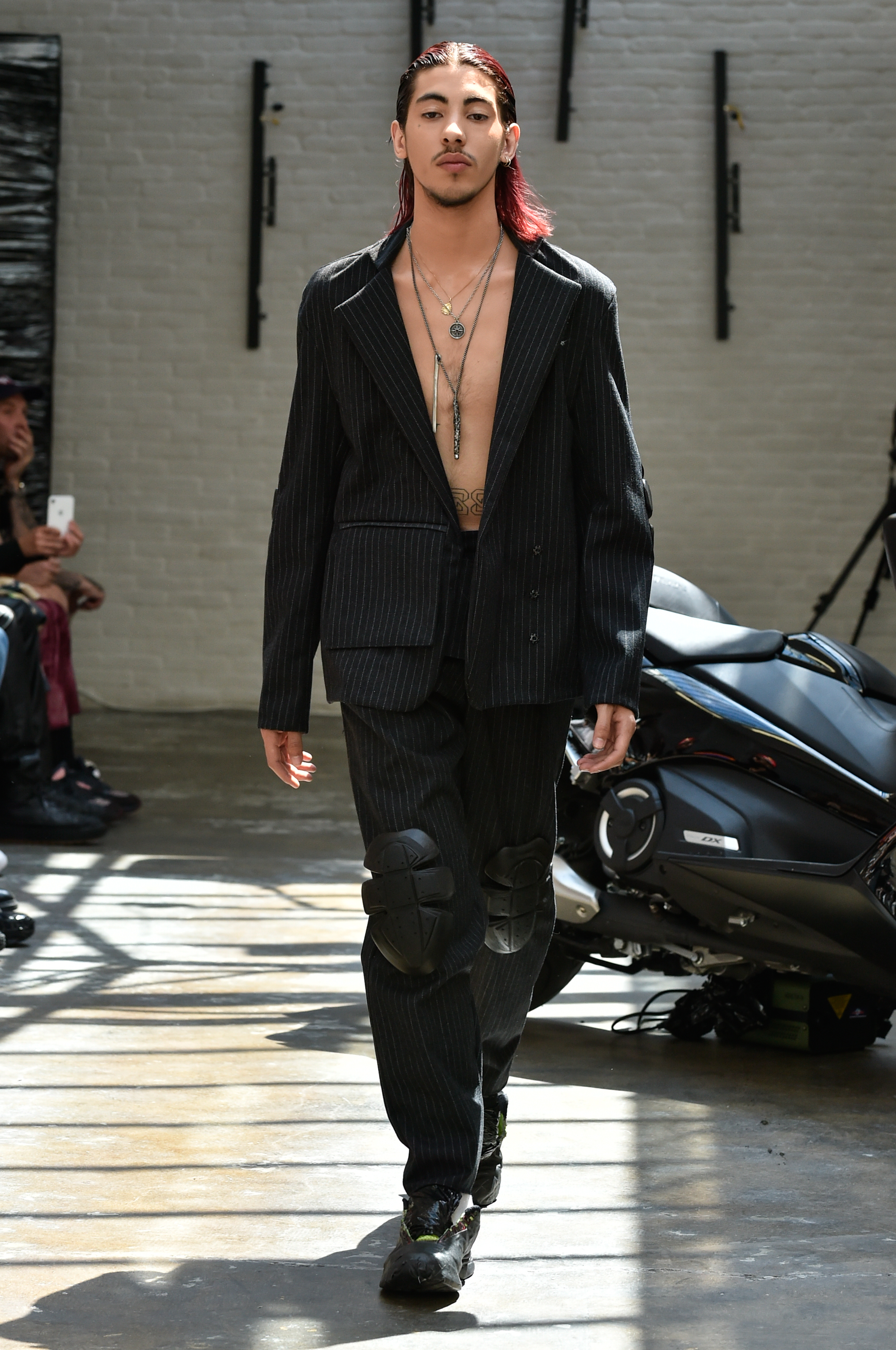 Les silhouettes composées de davantage de couleurs, sont agrémentées d’accessoires et de bijoux fais en collaboration avec Thismx Jewelry à partir de tôle d’acier automobiles et de pièces électroniques.