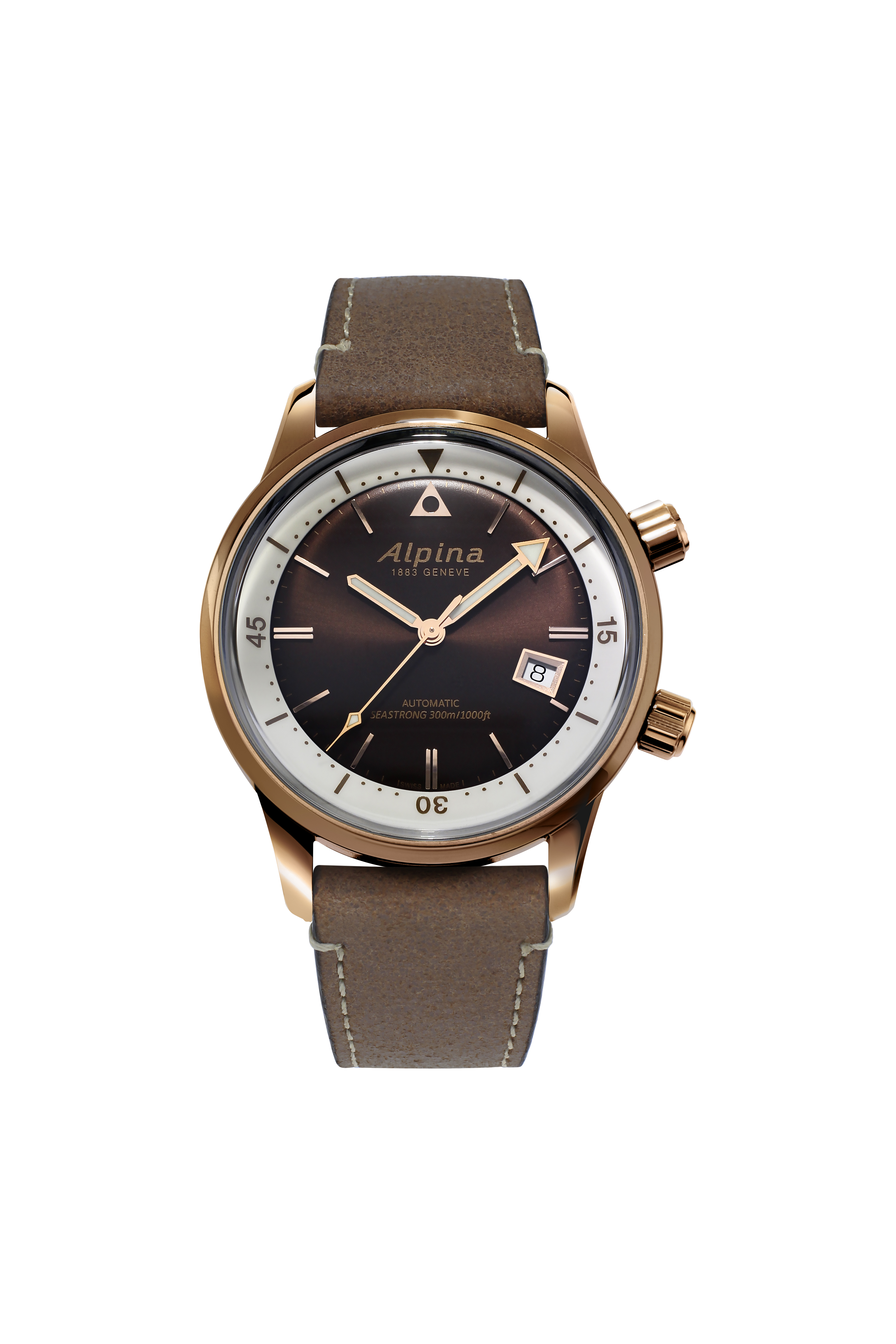 En 2016, la manufacture horlogère suisse Alpina dévoile la Seastrong Diver Heritage, une collection rendant hommage à sa première montre de plongée lancée en 1969 : la « Seastrong 10 » Super Compressor. Fort du succès remporté, la maison présente aujourd’hui deux nouveaux modèles. Parés d’un boîtier en acier revêtu de PVD Bronze, ces précieux garde-temps automatiques, étanches jusqu’à 300 mètres, sont bien plus qu’une réplique. Ils représentent une réinterprétation moderne de l’esthétique classique de l’horlogerie suisse.