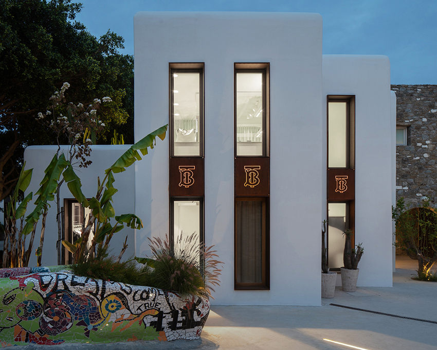 Burberry a ouvert sa première boutique temporaire dans le quartier de Nammos Village, à Mykonos.