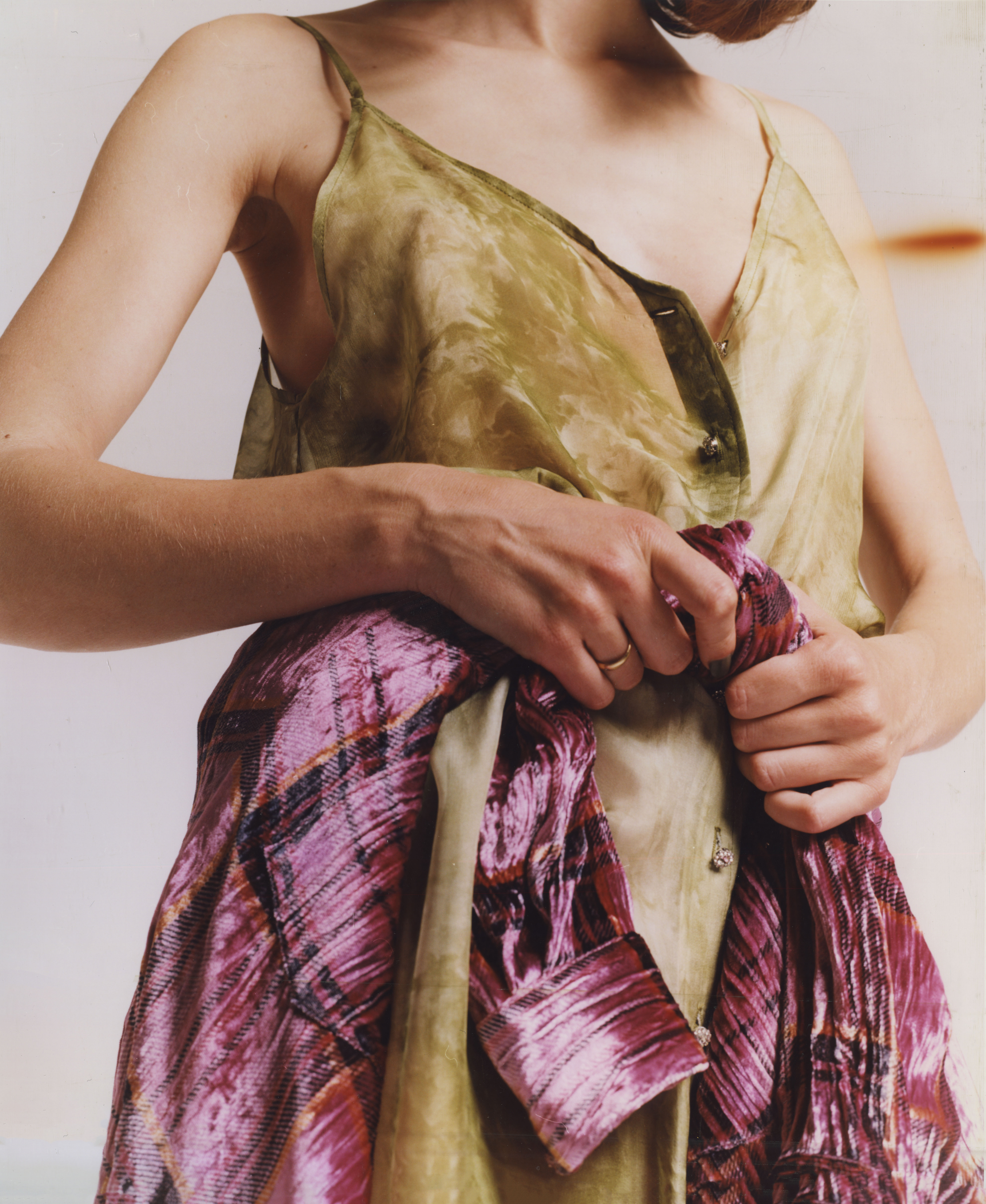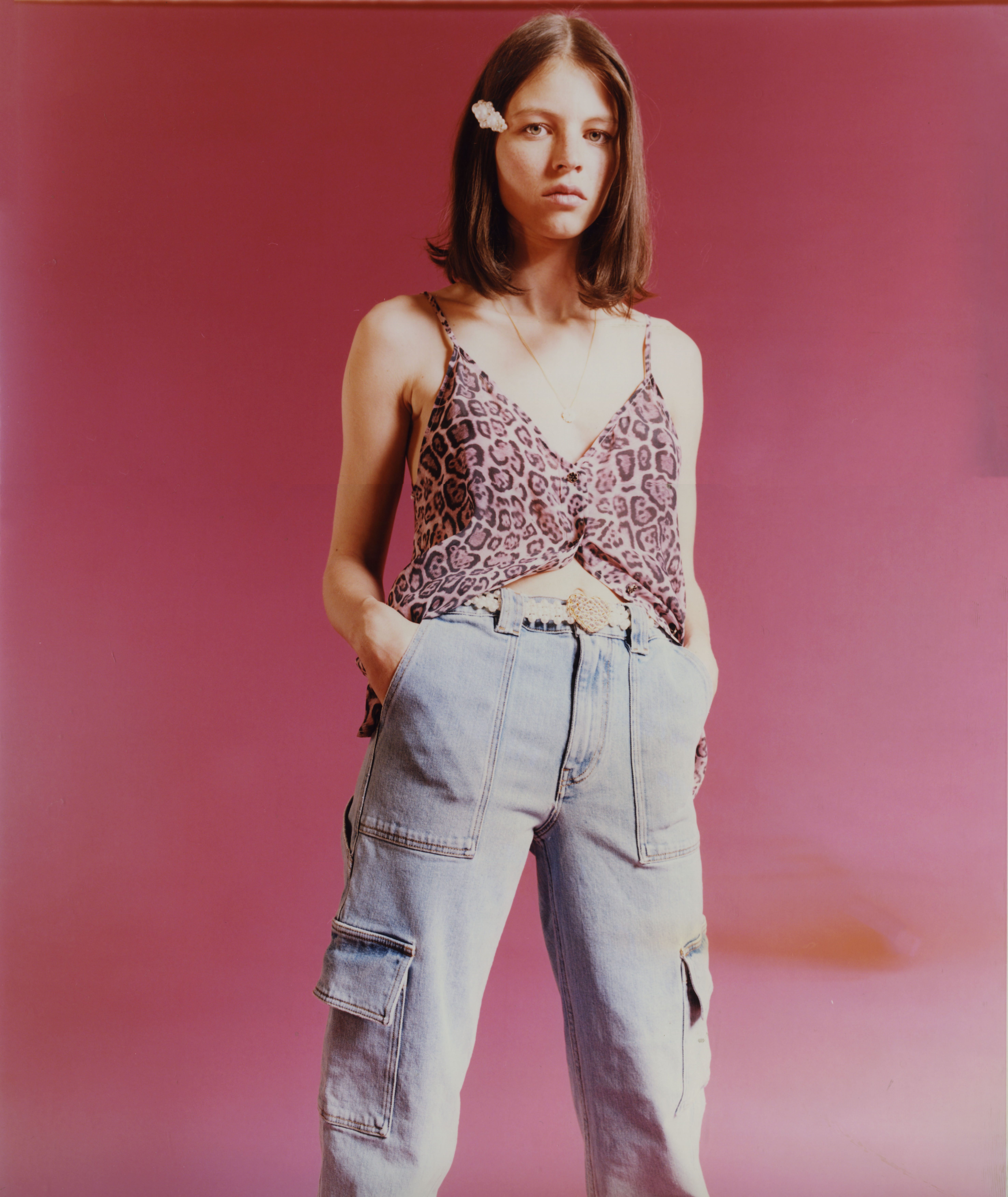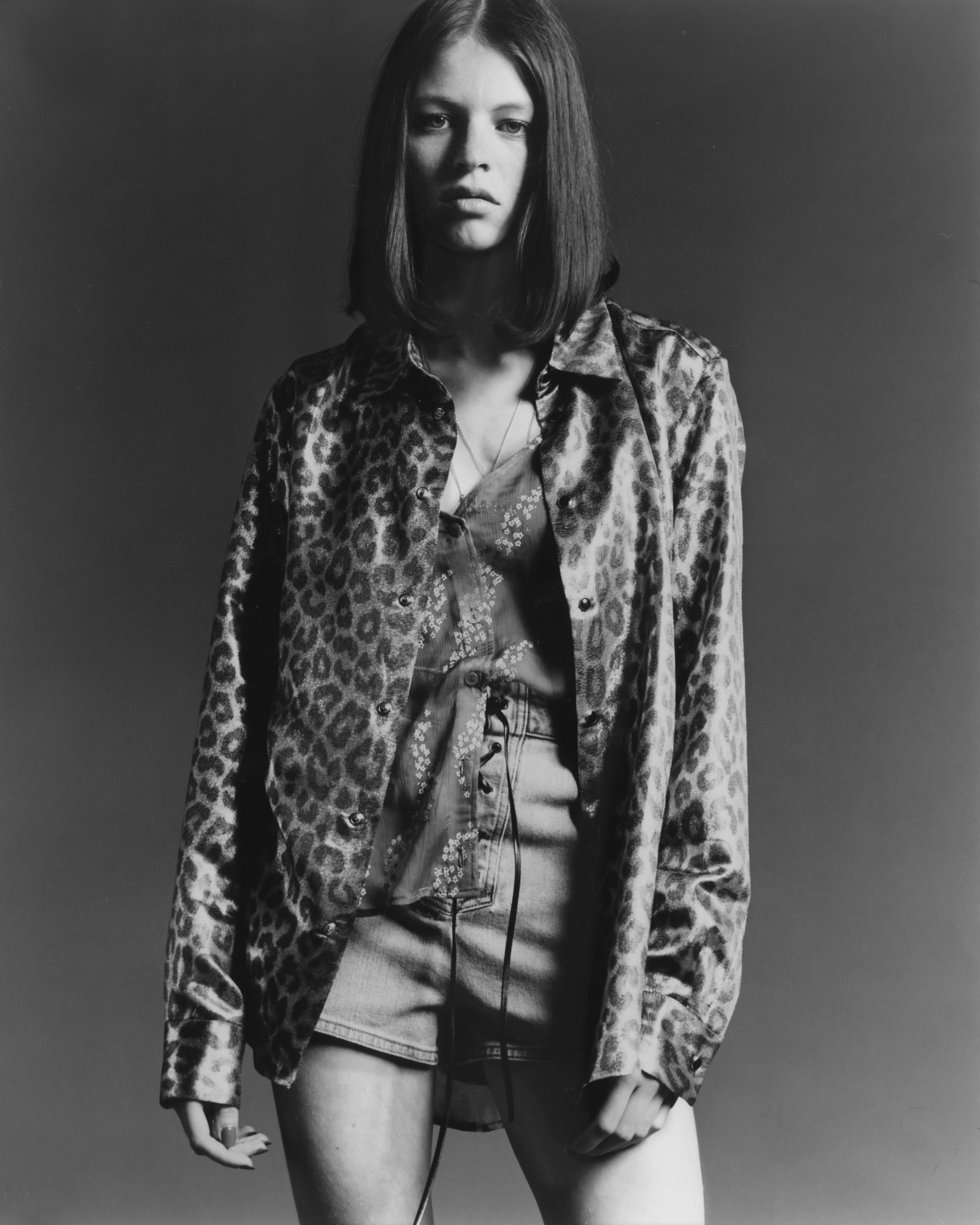 Pour la première fois la marque présente 15 pièces dédiées à la femme, notamment des robes et débardeurs à fines bretelles en mousseline de soie. La marque surprend également avec une ligne de denim inédite réalisé en Italie.