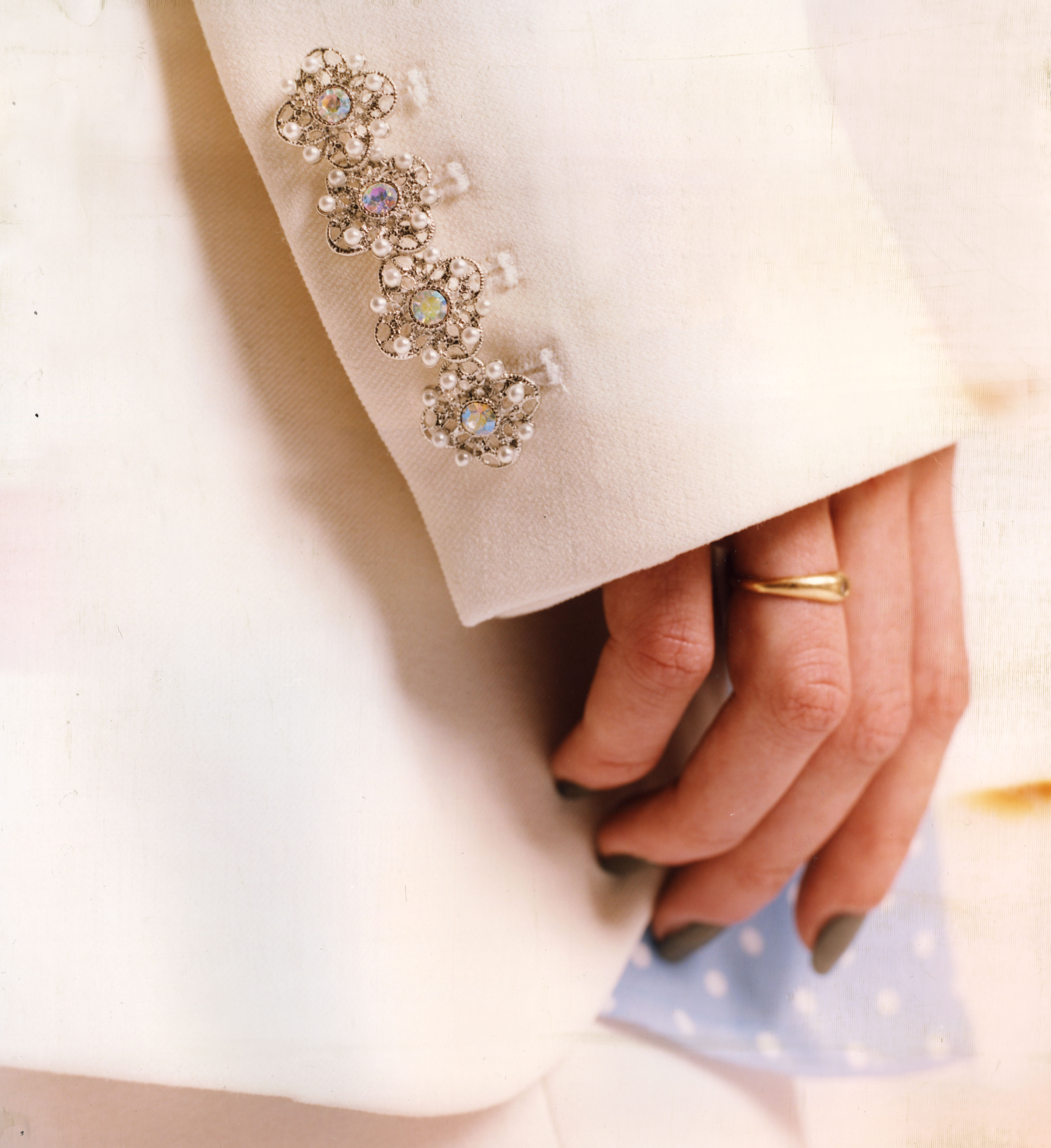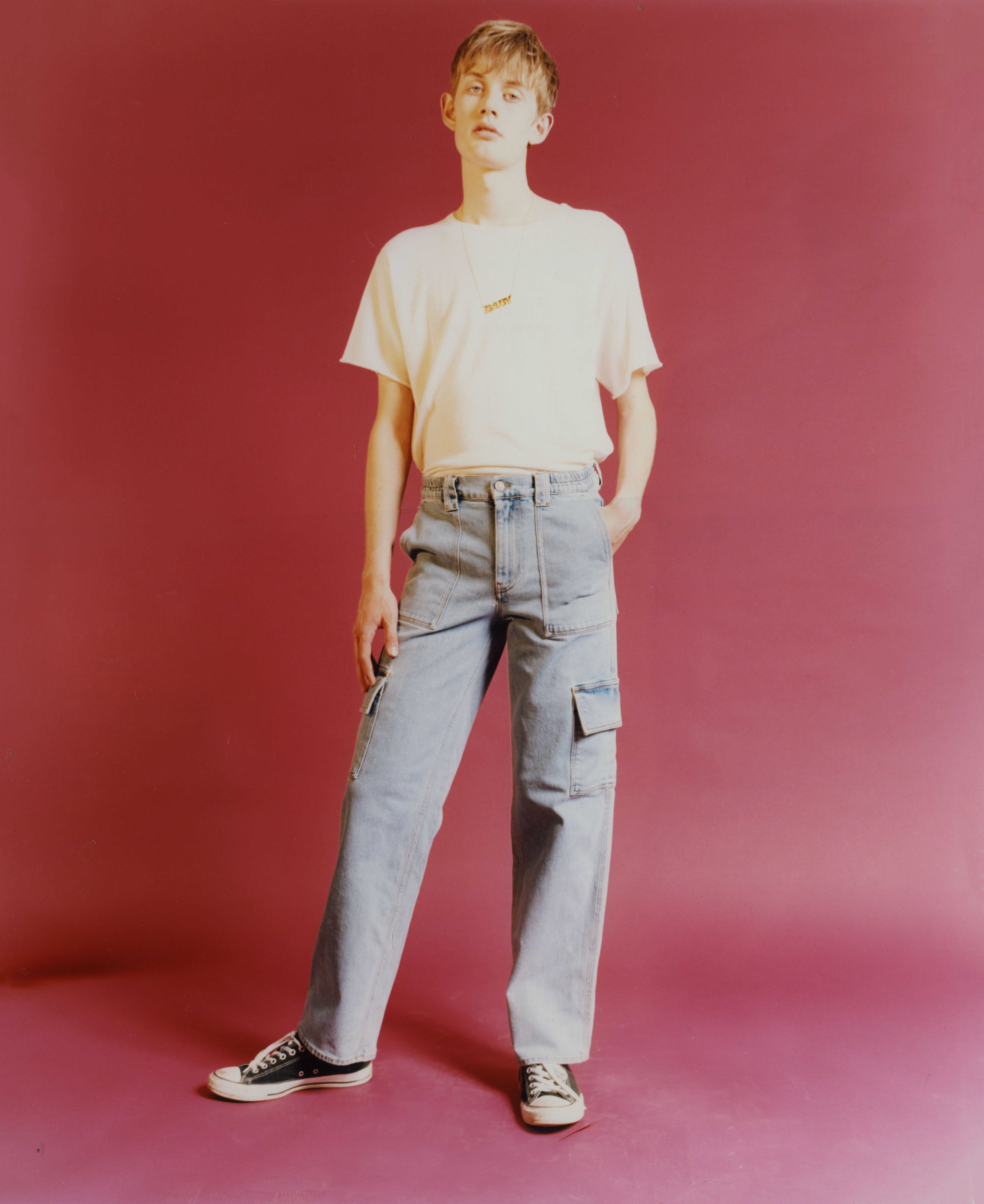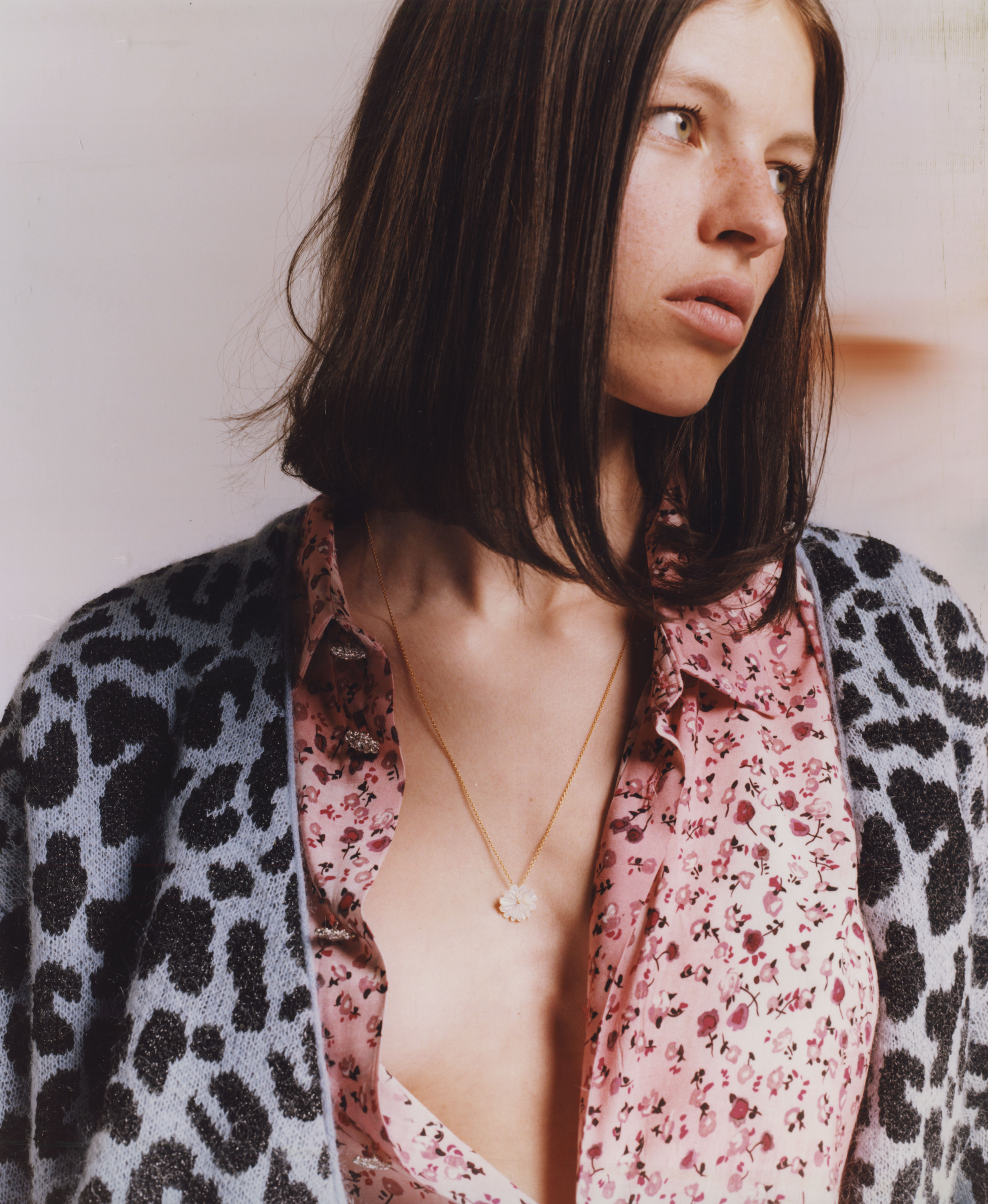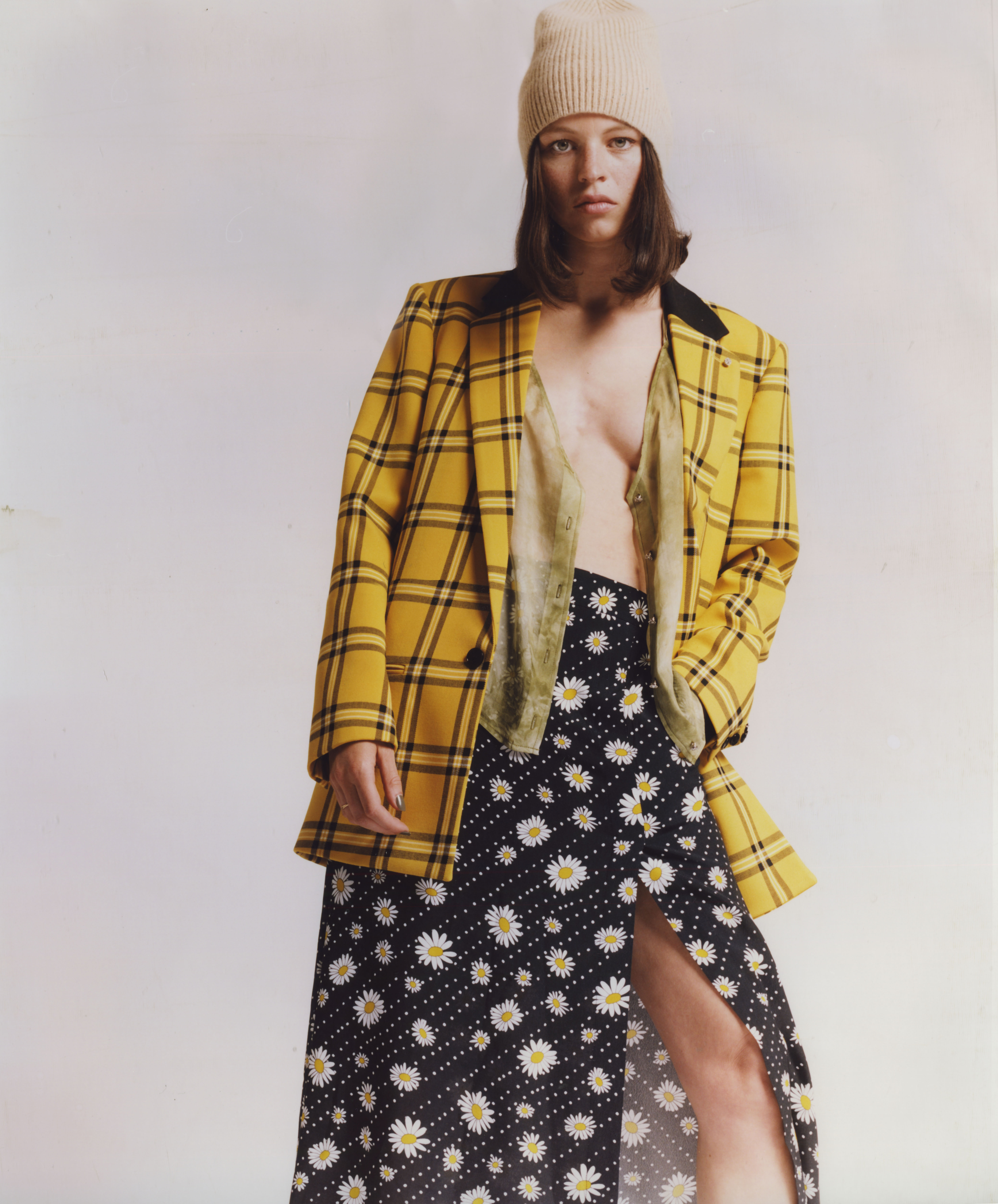 Pour la première fois la marque présente 15 pièces dédiées à la femme, notamment des robes et débardeurs à fines bretelles en mousseline de soie. La marque surprend également avec une ligne de denim inédite réalisé en Italie.