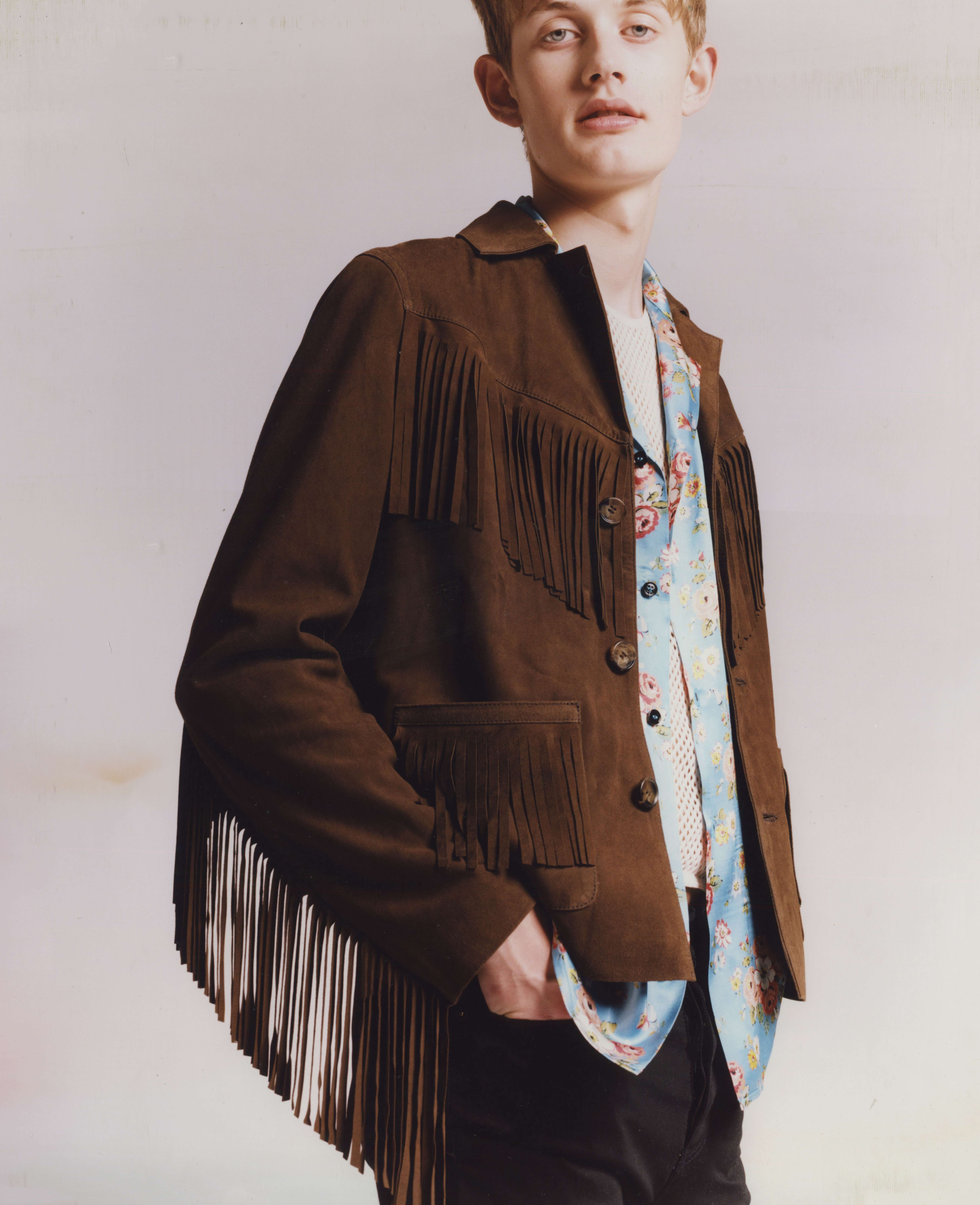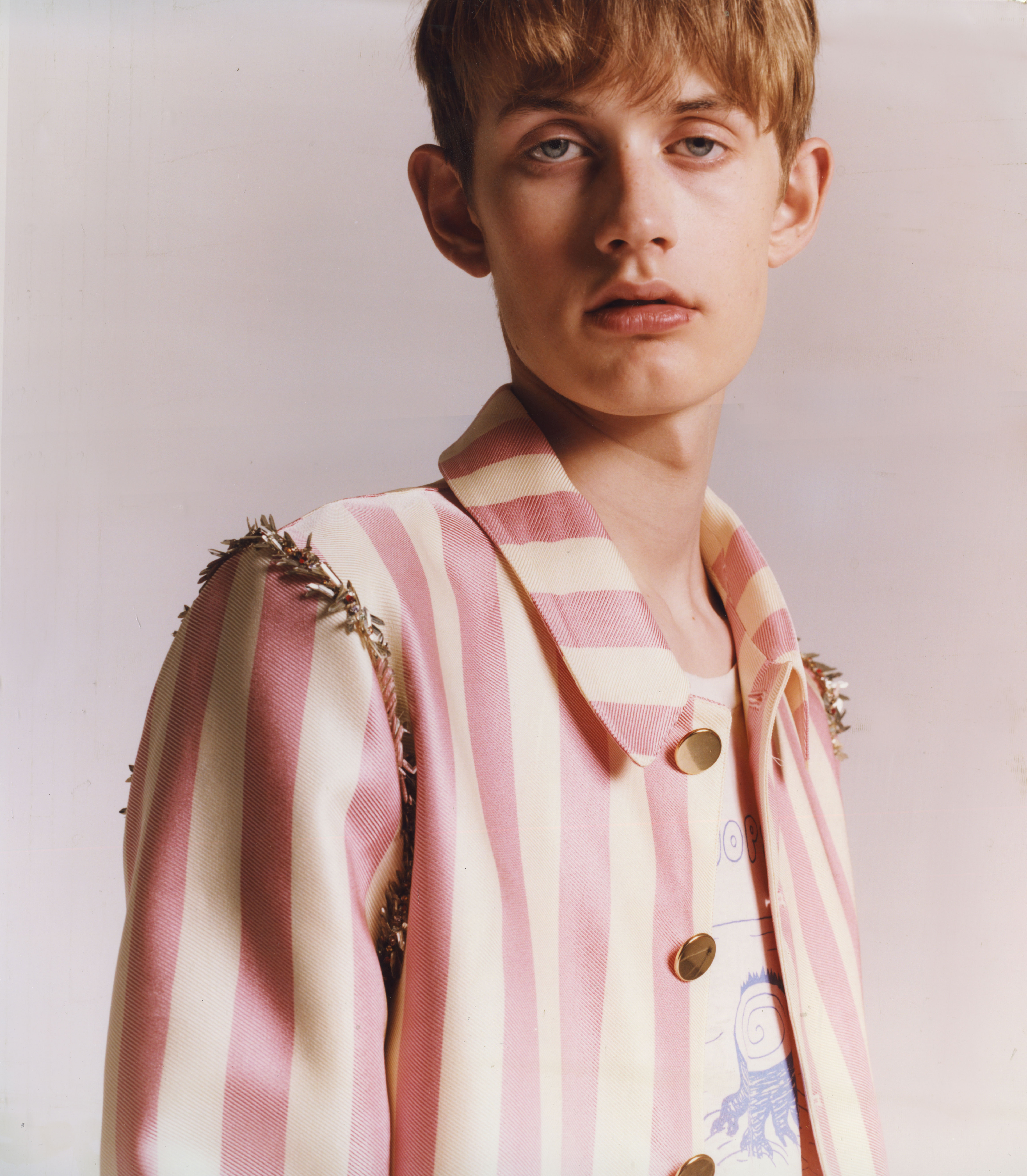 La jeune marque française, crée en 2015 par Adrien Albou, présente une collection à l’esprit rock et colorés d’une vingtaine de silhouettes. Le vestiaire unisexe s’approprie les codes vestimentaires iconiques du courant grunge – chemises à manches courtes en soie, t-shirt destroy, costumes à carreaux, santiags – et les plonge dans un univers joyeux aux nombreuses teintes pastels et imprimés colorés