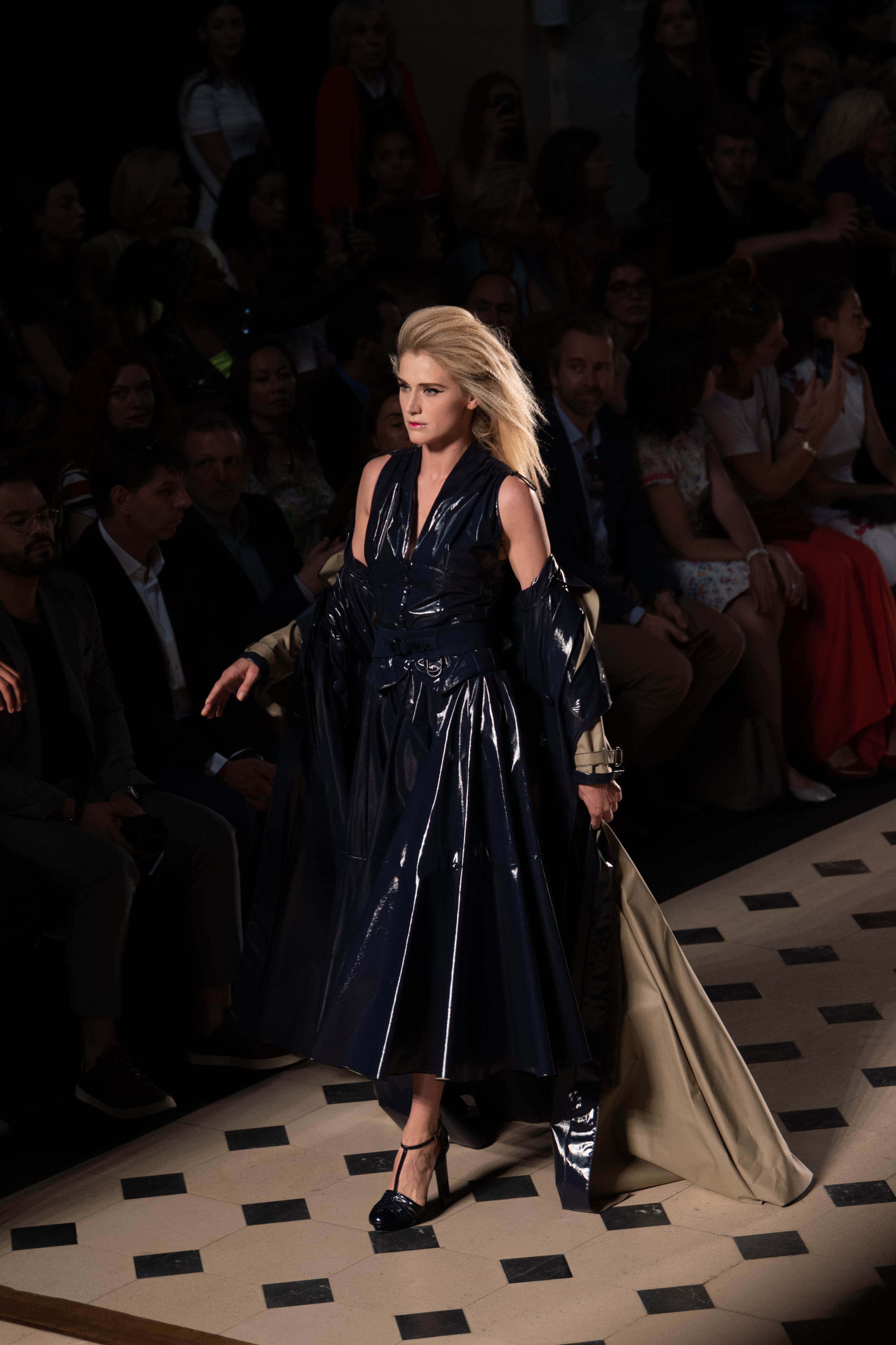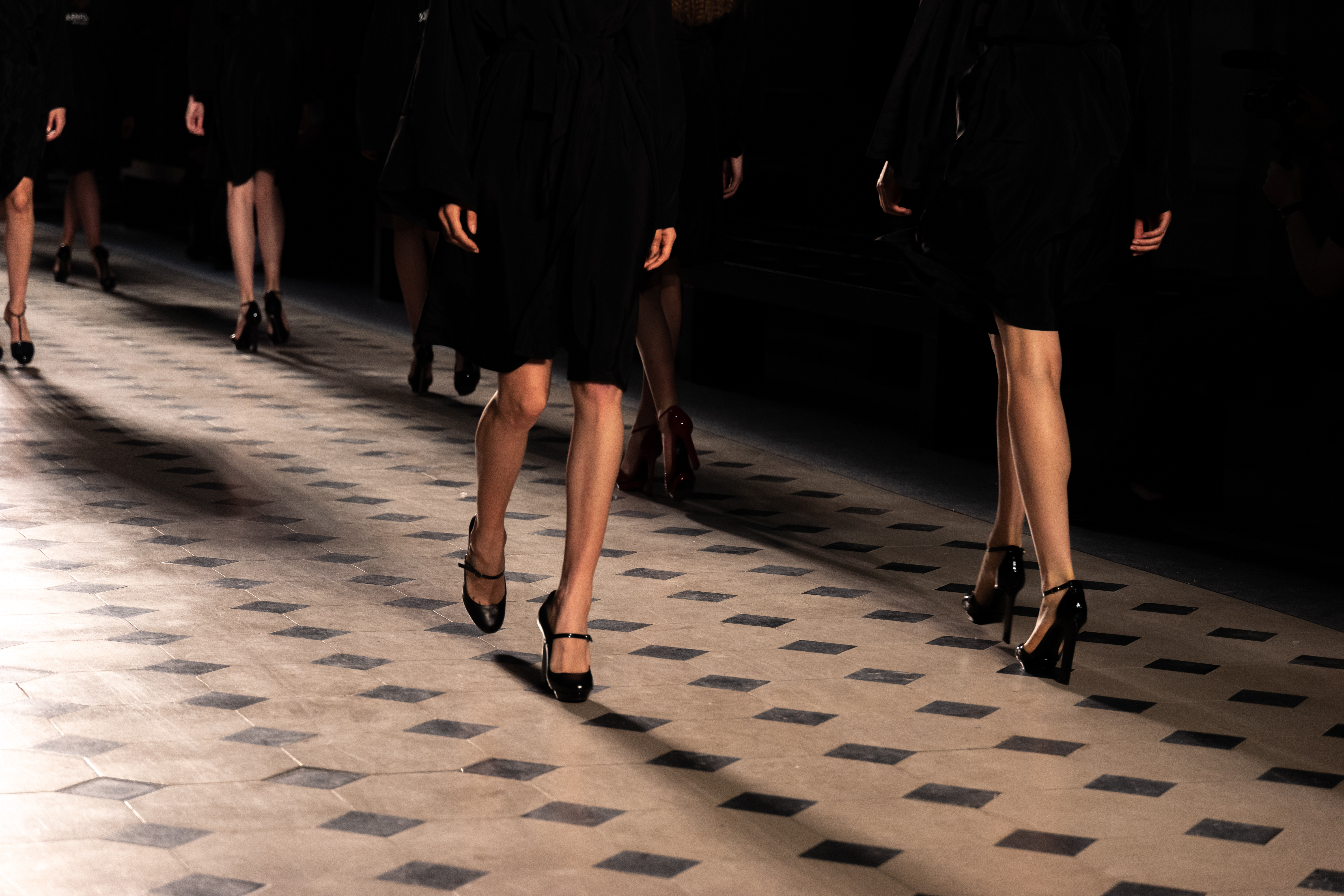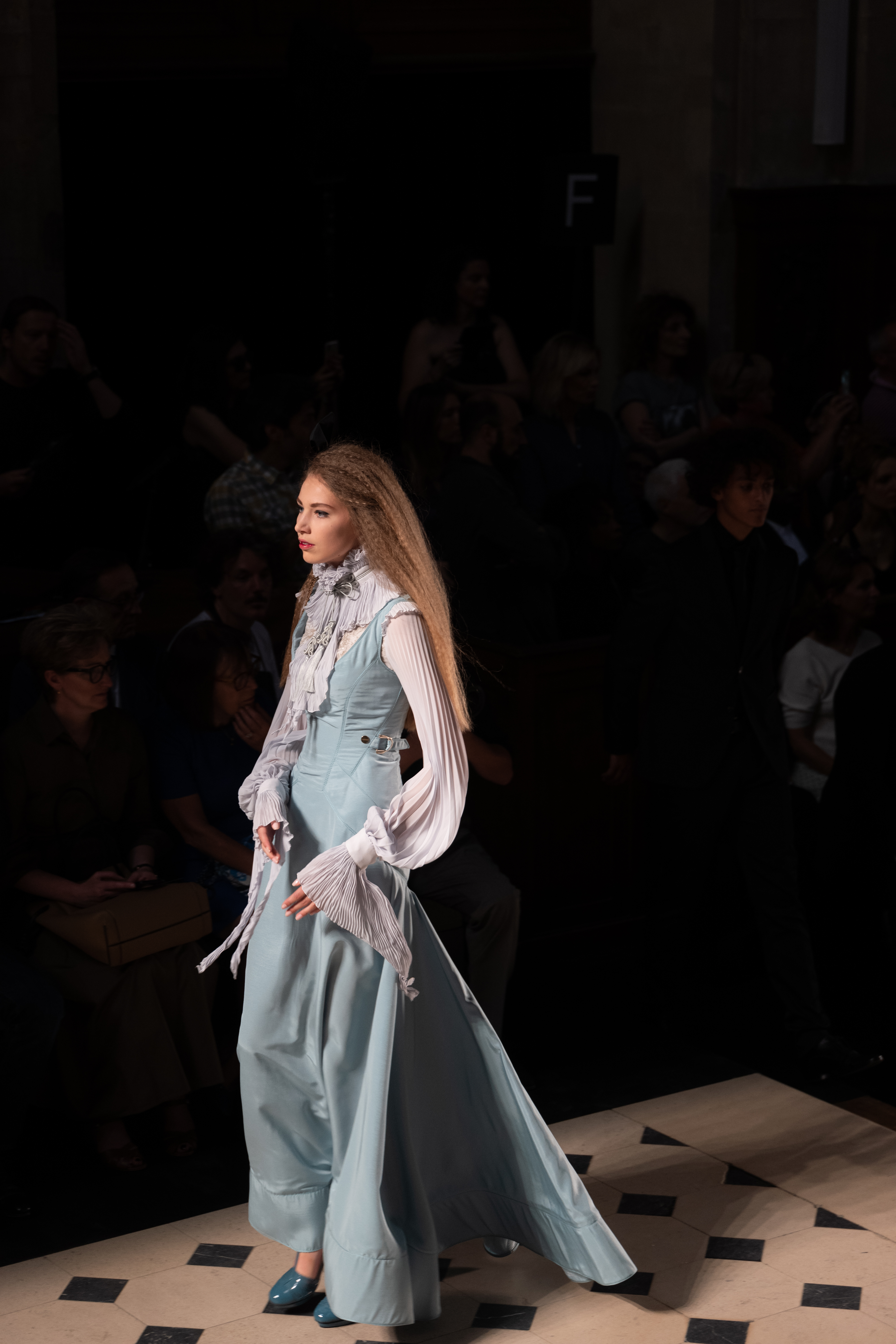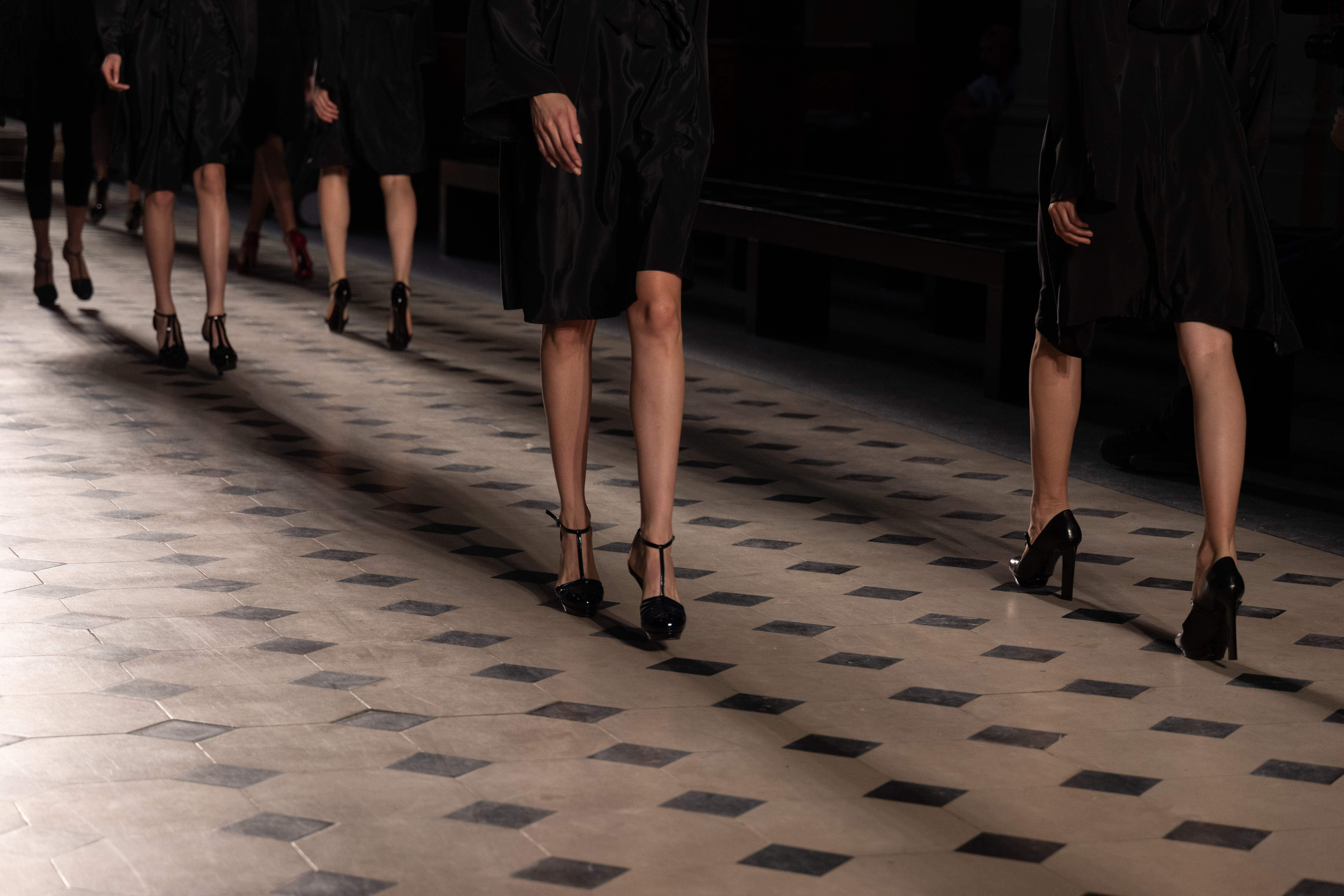 Maîtrisant toutes les arcanes de la coupe, le couturier français modernise en diaboliques beautés les silhouettes mythiques des magiciennes, des empoisonneuses, des héroïnes de romans gothiques ou des stars de films noirs. Cols montants, plastrons brodés sur chemisiers en mousseline plissée s’associent à de longues jupes. La coupe des vestes, des manteaux et des robes trompe-l’œil de manteau, empruntent au vocabulaire militaire sa rigueur. L’autorité d’une carrure renforcée et de boutonnages apparents sur le haut, laisse le tissu se déployer sous la taille dans les plis de basques arrière ou ajouter de l’ampleur à la marche dans les pièces qui descendent à la cheville.