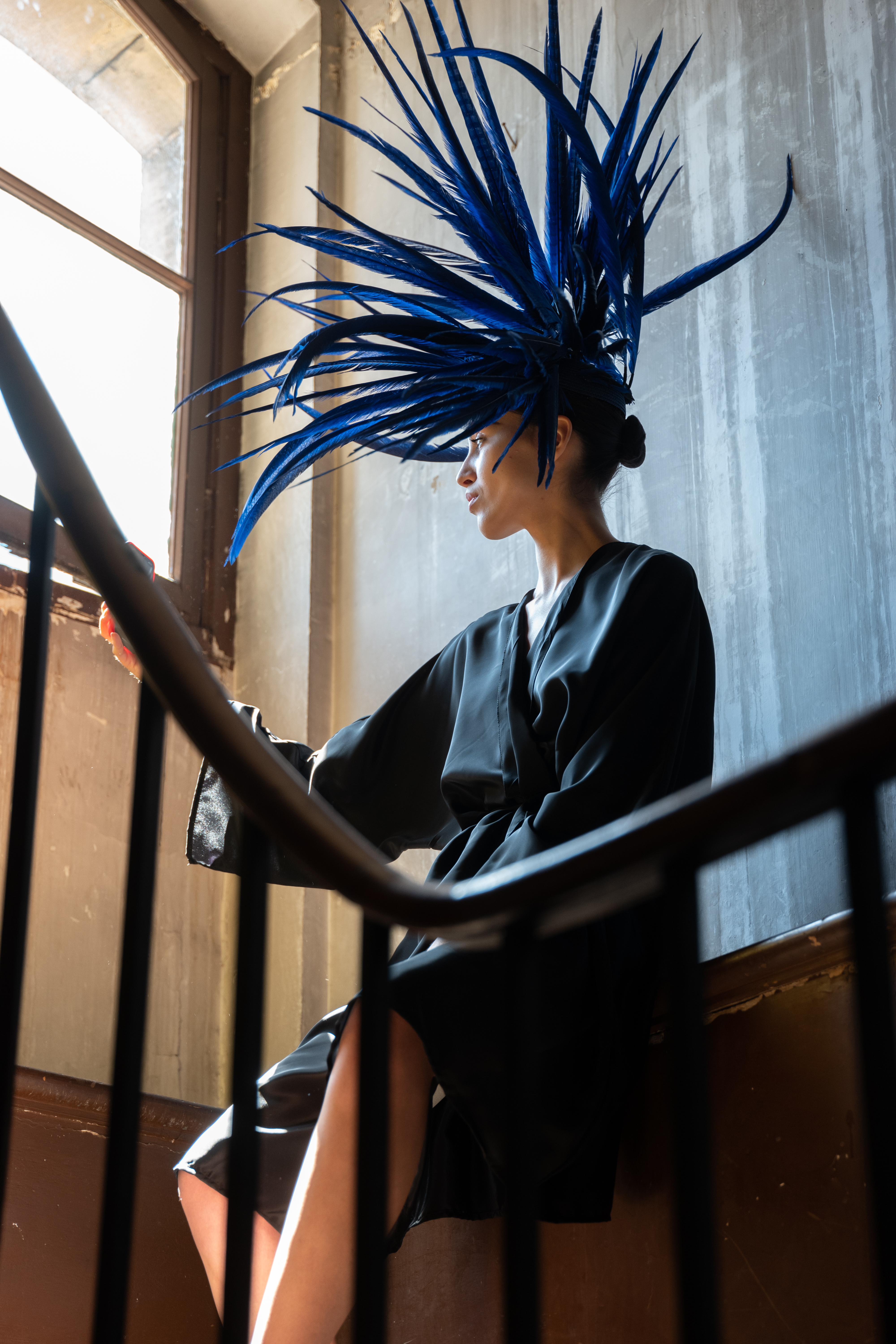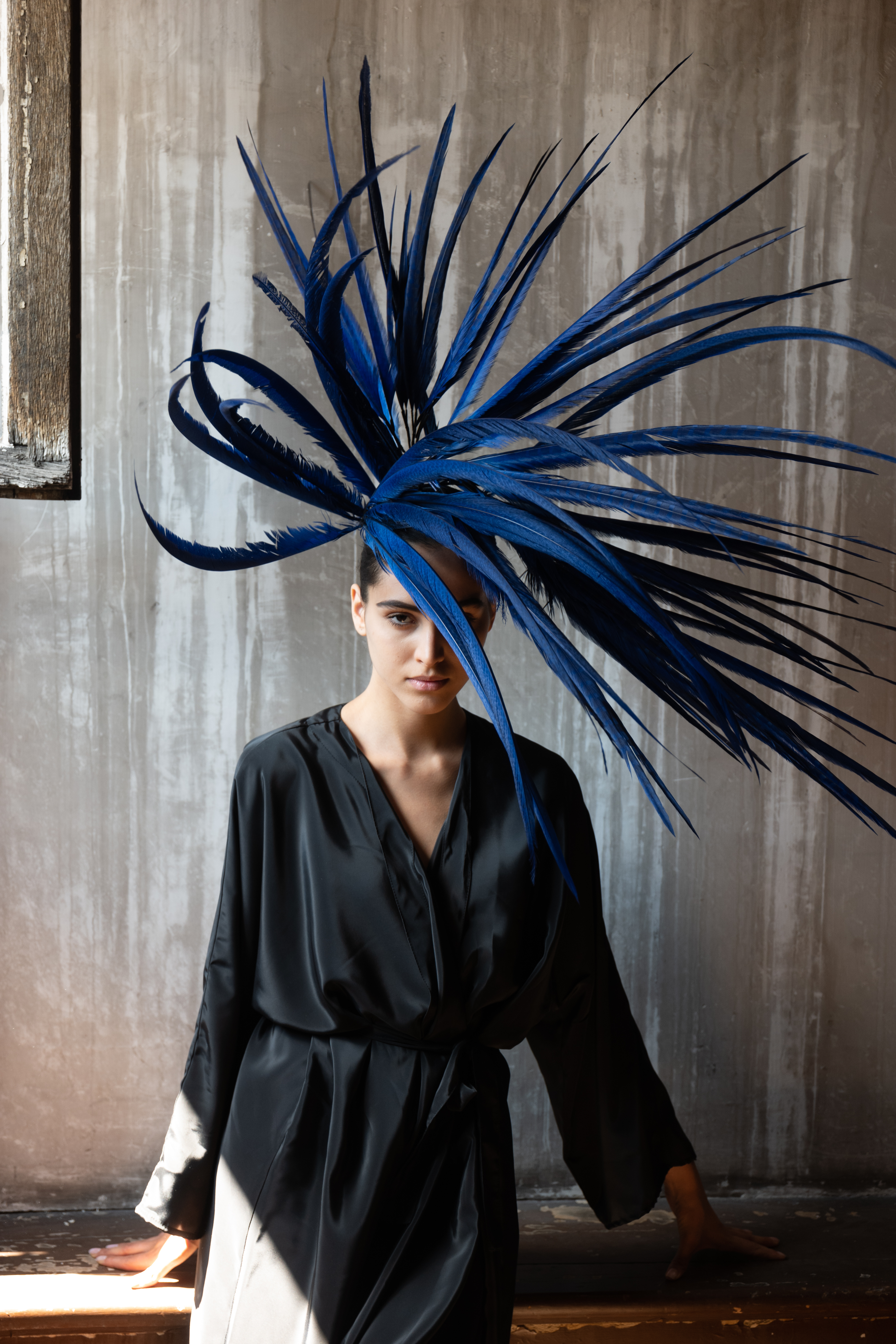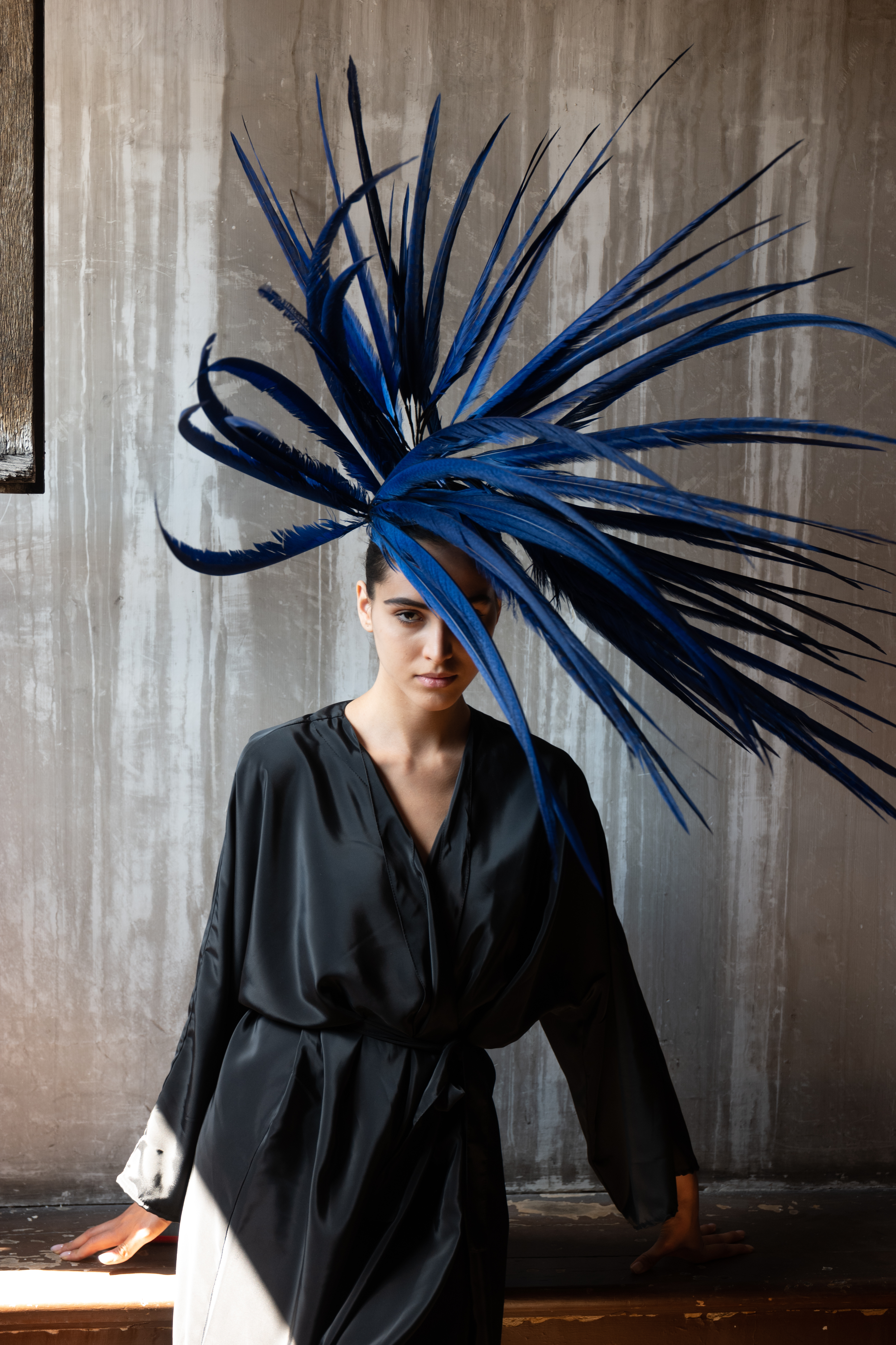 Corbeaux et autres oiseaux de malheur sont convoqués sur les coiffes, bonnet, capeline, via des plumes brodées, et même tissées, dans une version du sac iconique de la Maison. La salomé signature s’orne pour la saison d’un motif de diadème sur son embout.