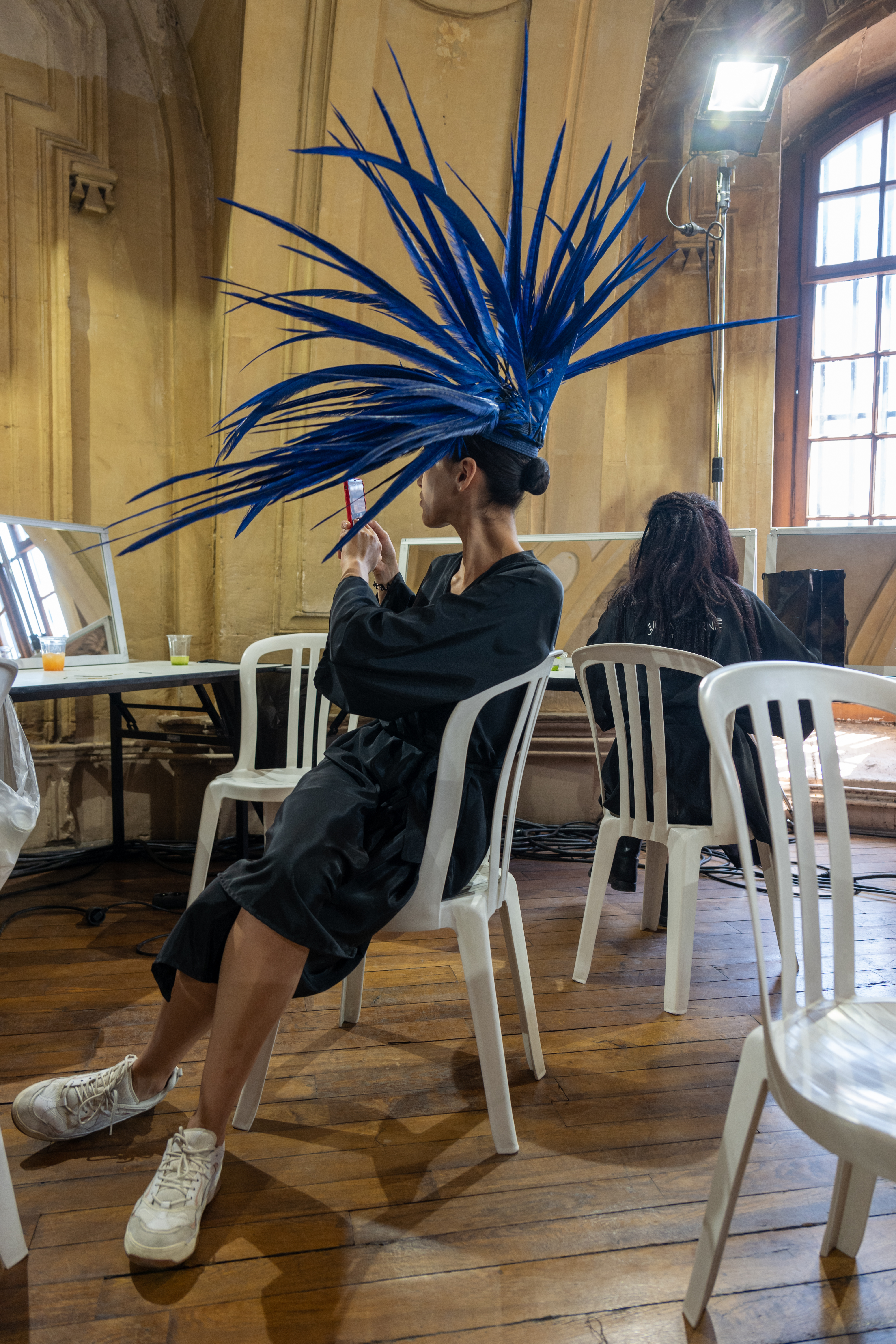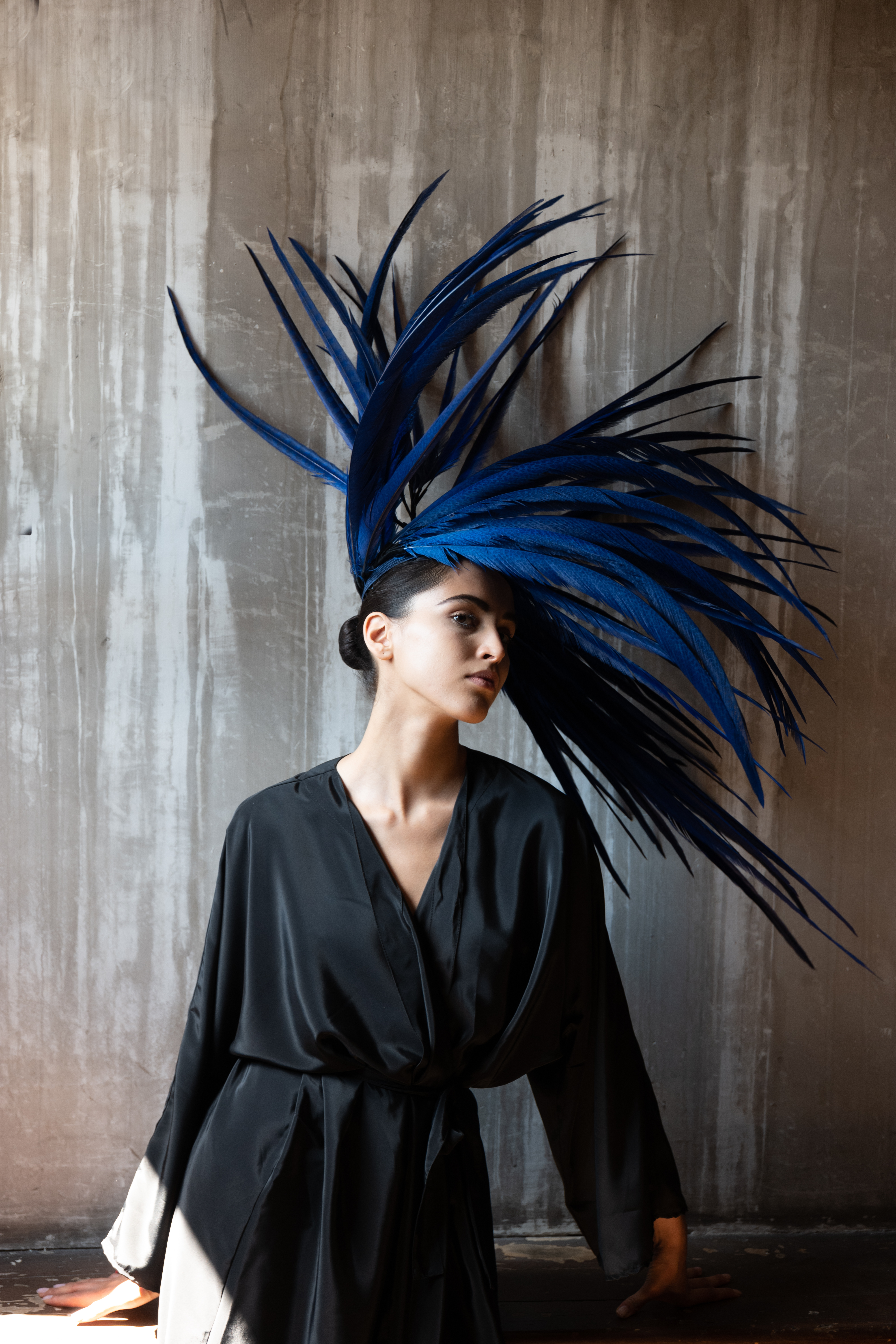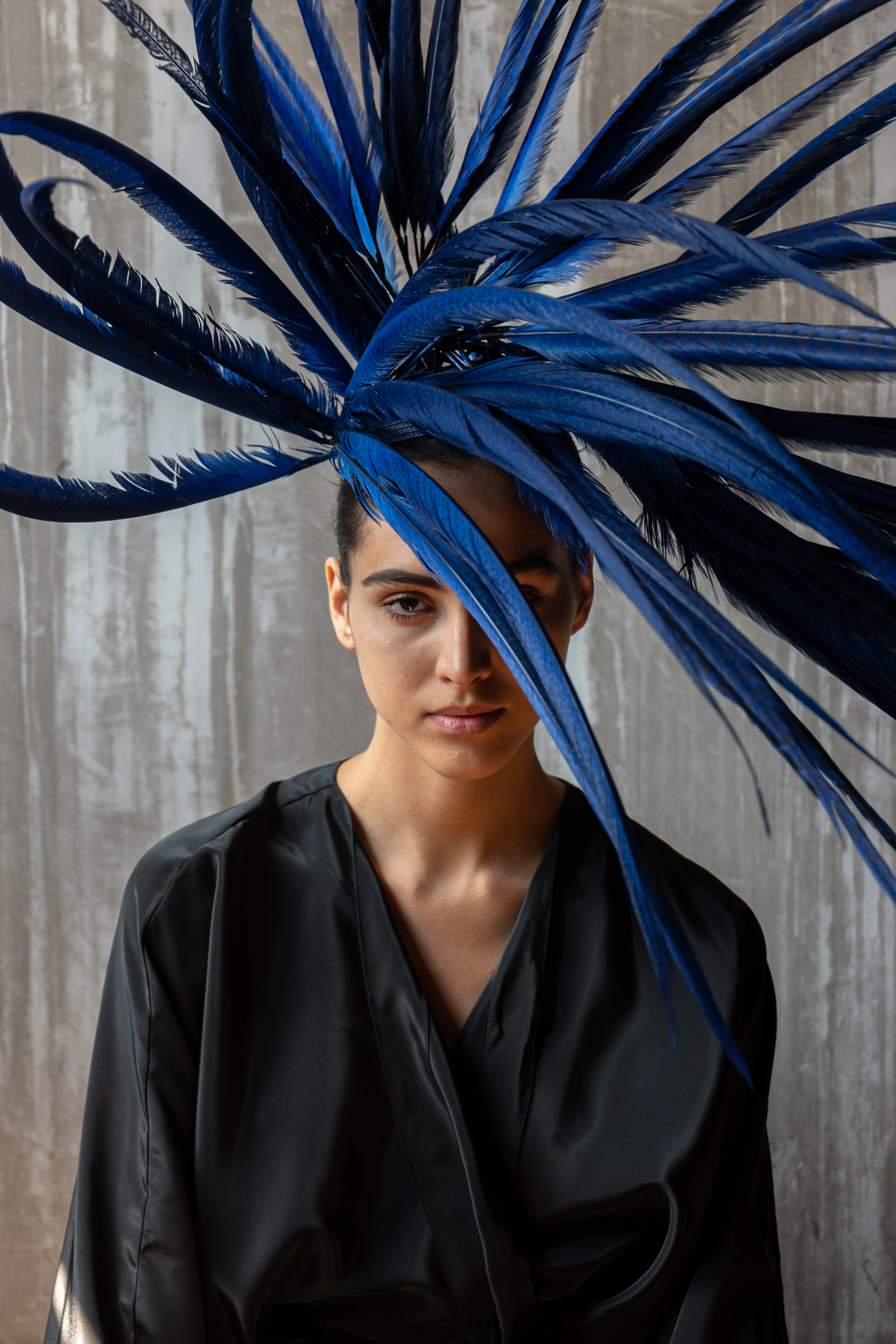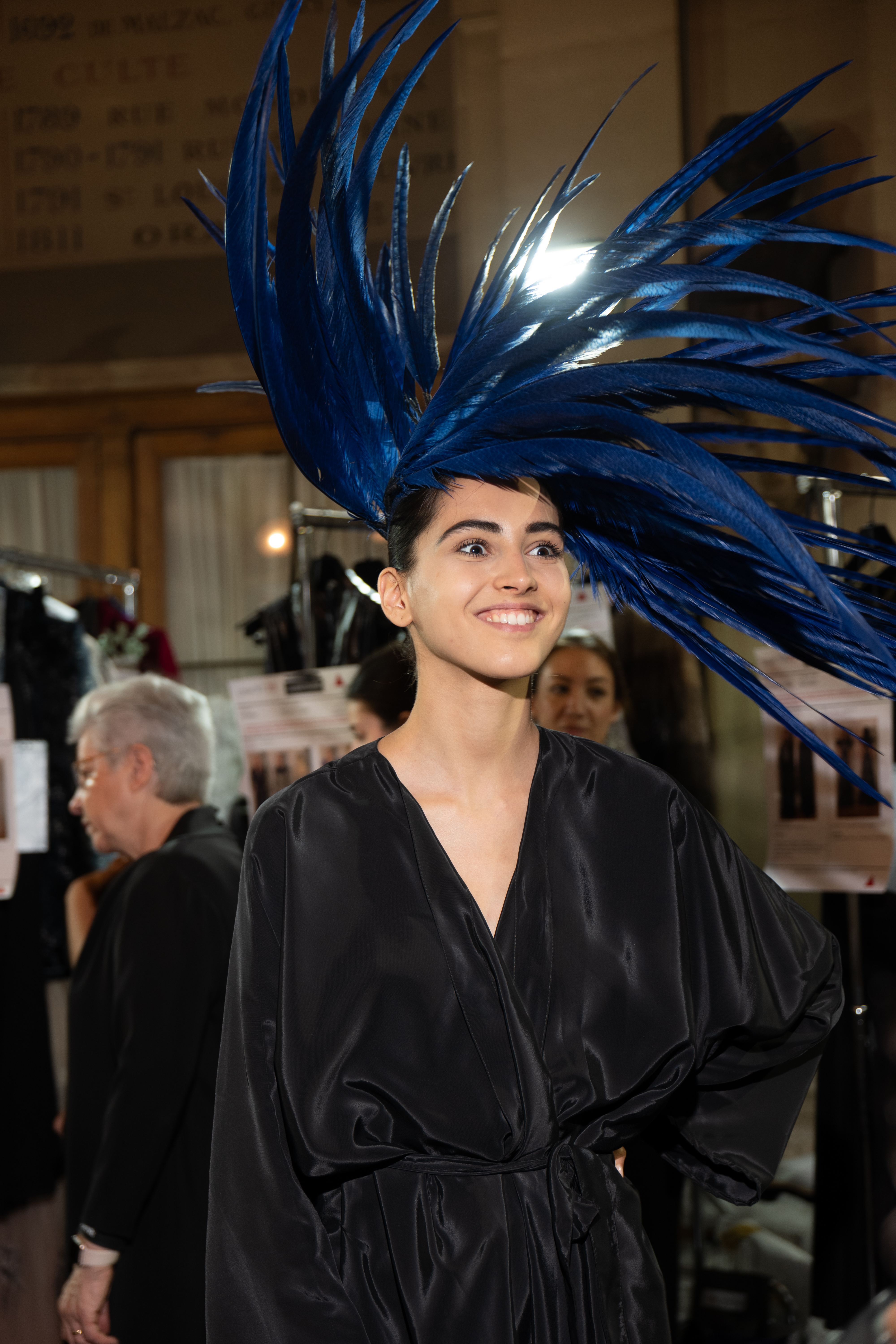 Corbeaux et autres oiseaux de malheur sont convoqués sur les coiffes, bonnet, capeline, via des plumes brodées, et même tissées, dans une version du sac iconique de la Maison. La salomé signature s’orne pour la saison d’un motif de diadème sur son embout.