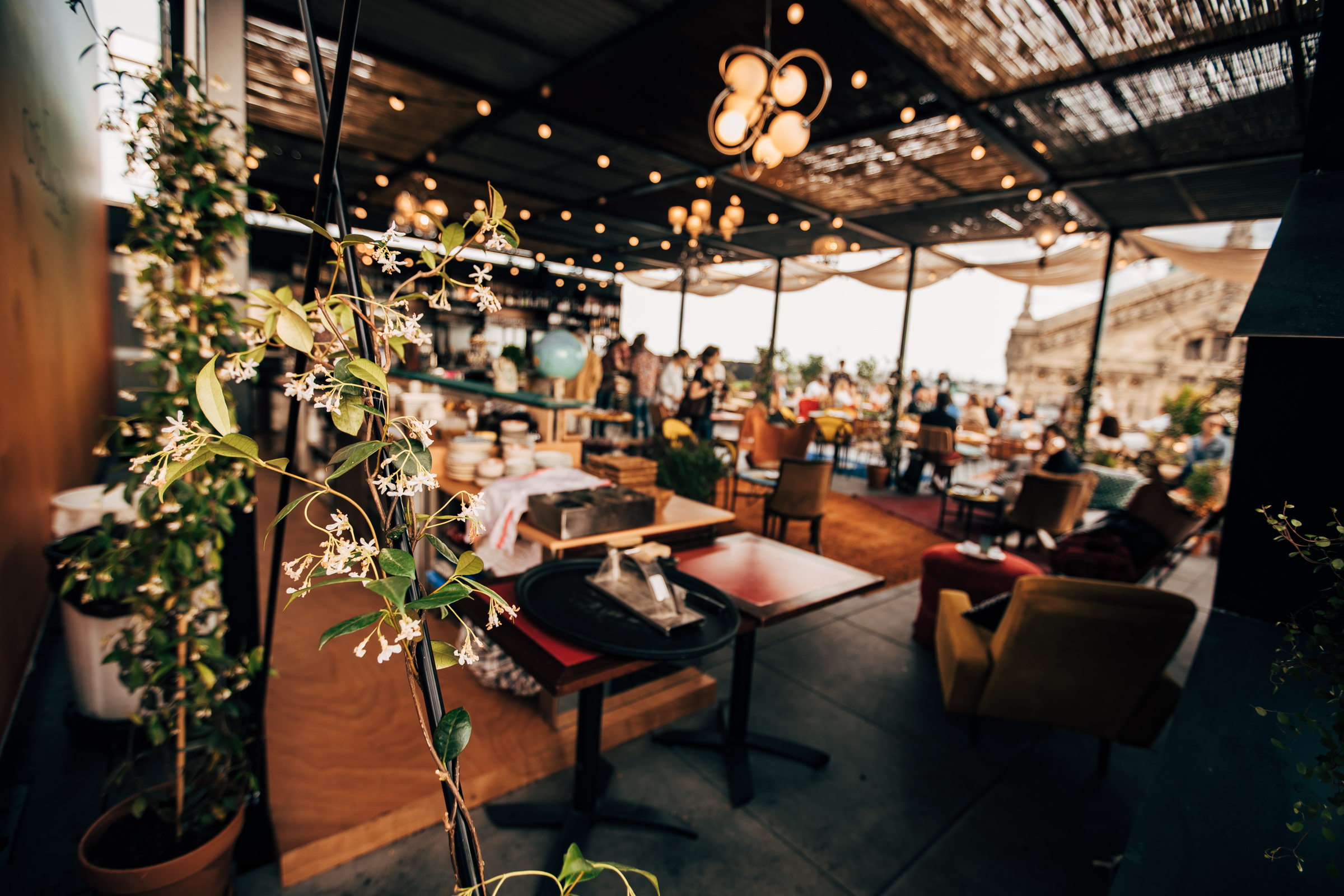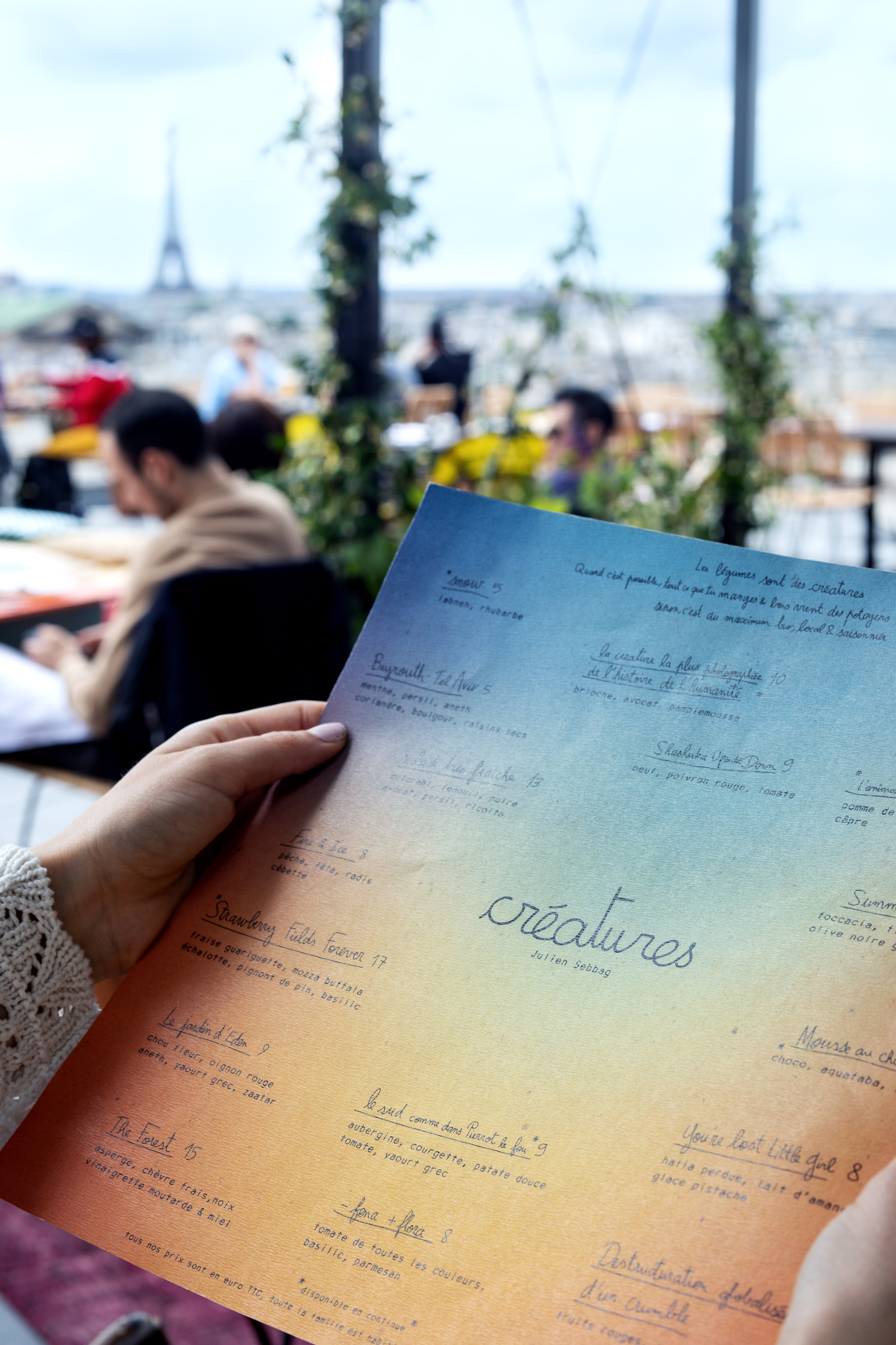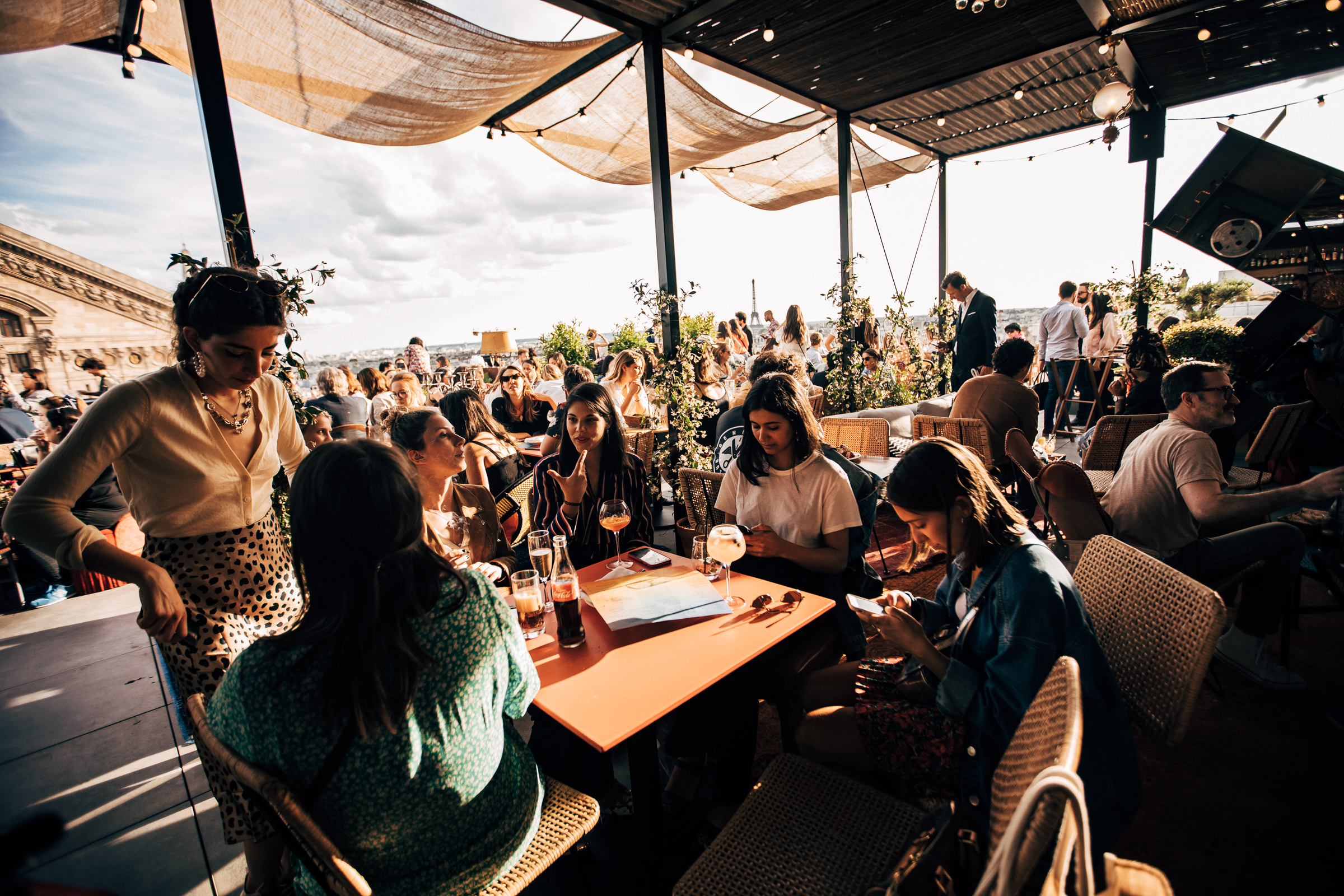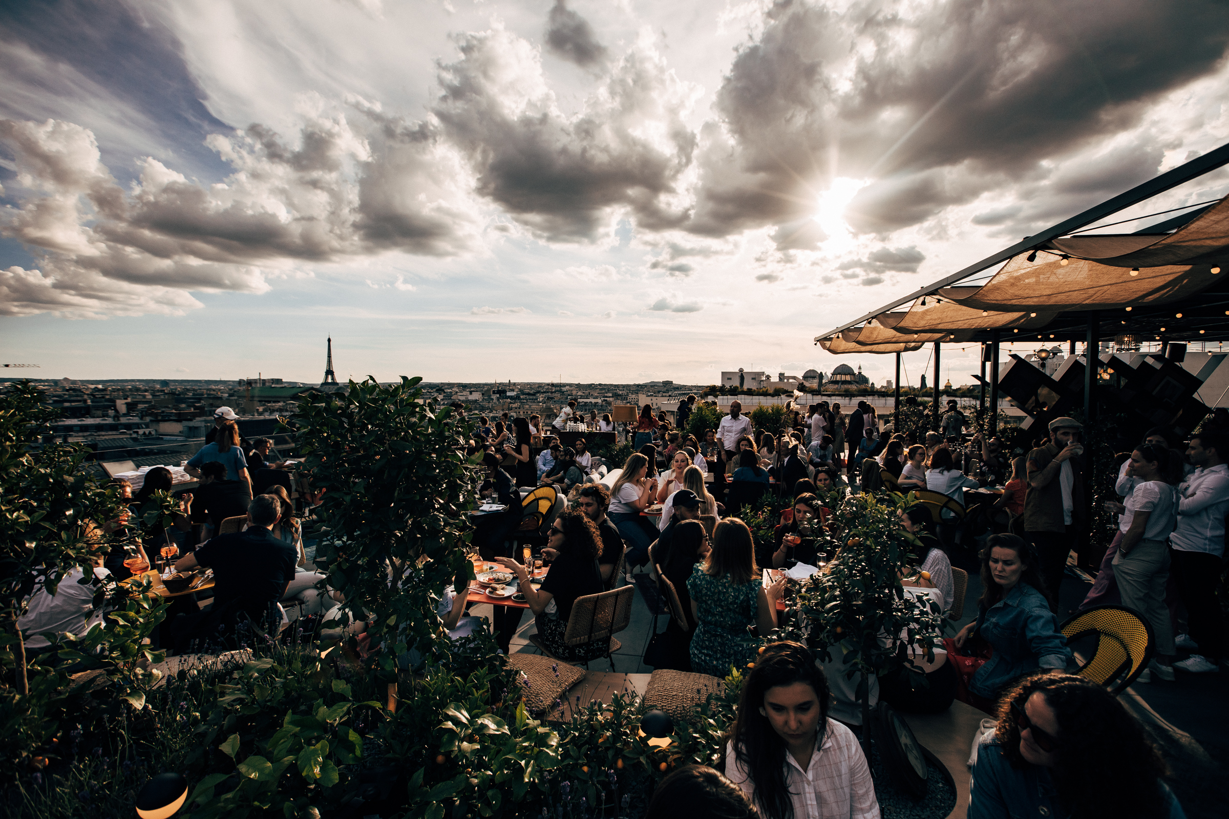 Pour Julien Sebbag, CRÉATURES n’est pas un énième « rooftop parisien ». C’est CRÉATURES, un espace de vie ouvert à tous, toute la journée. « On peut chiller au soleil autour d’un verre, s’installer sur nos podiums pour admirer la merveilleuse vue, se promener autour des potagers et prendre le risque de cueillir une tomate sans se faire repérer, ressentir l’énergie qui s’émane des cuisines ouvertes et du bar, sous la pergola, piocher dans la bibliothèque de vinyles en libre-service…
