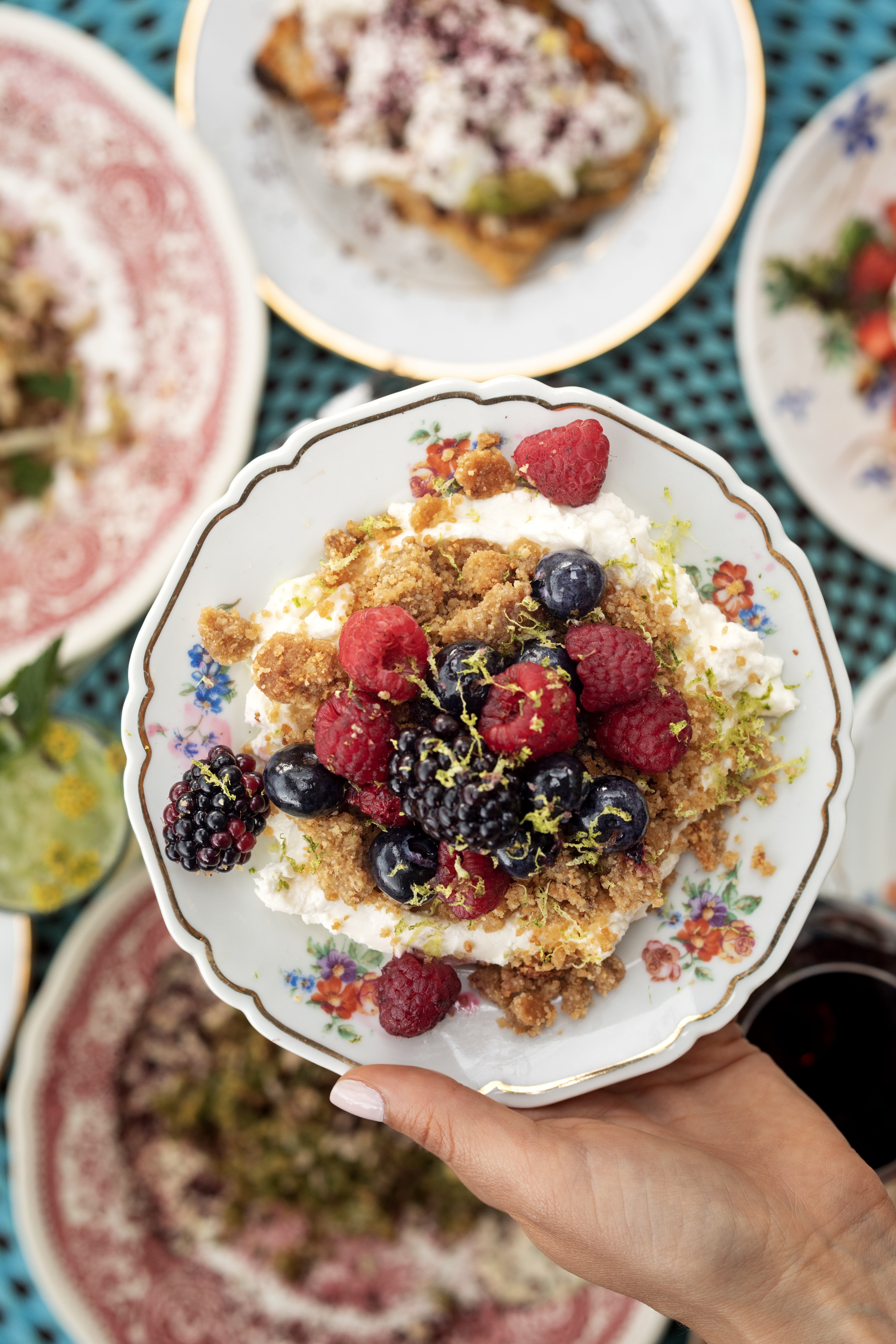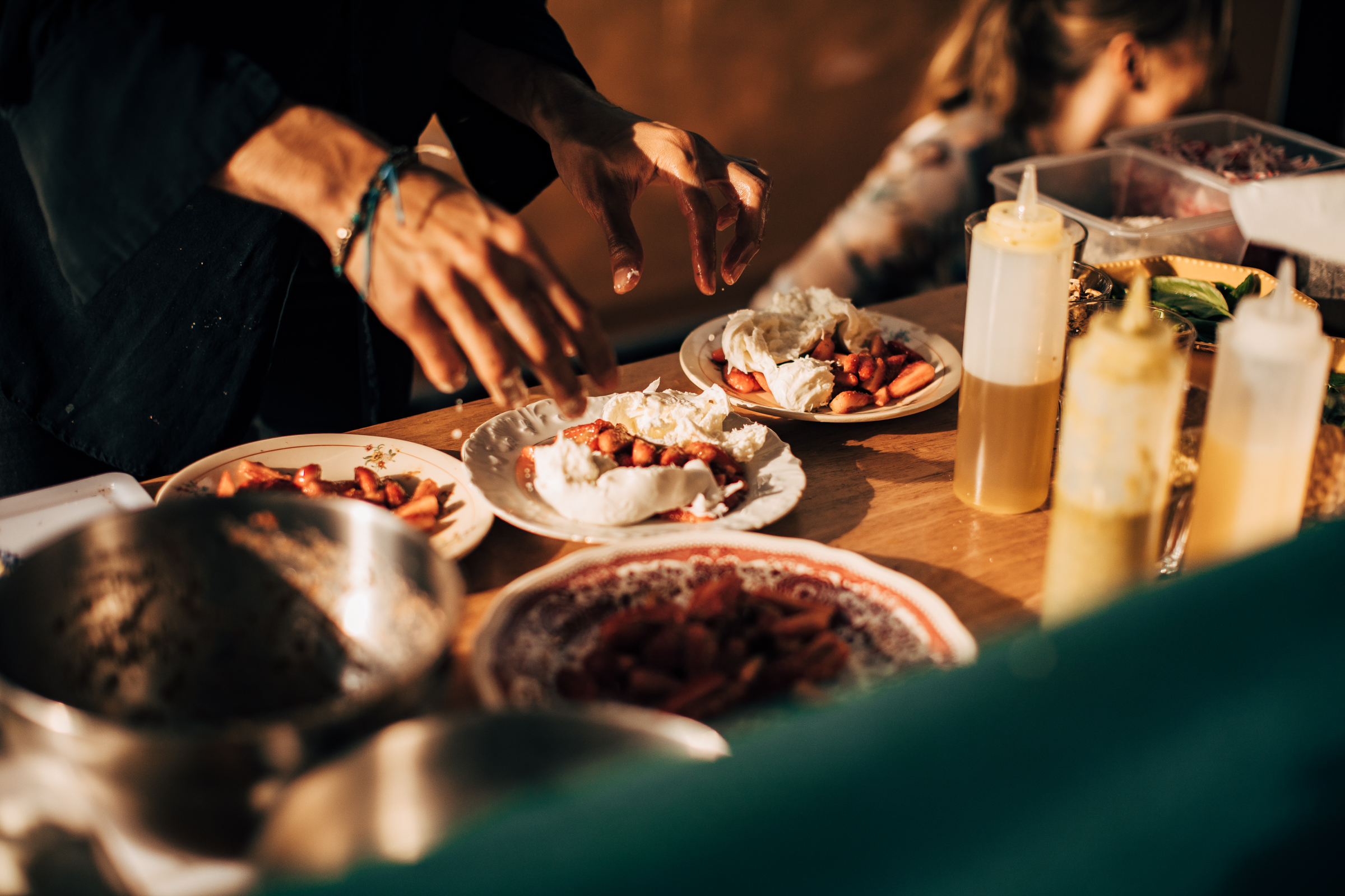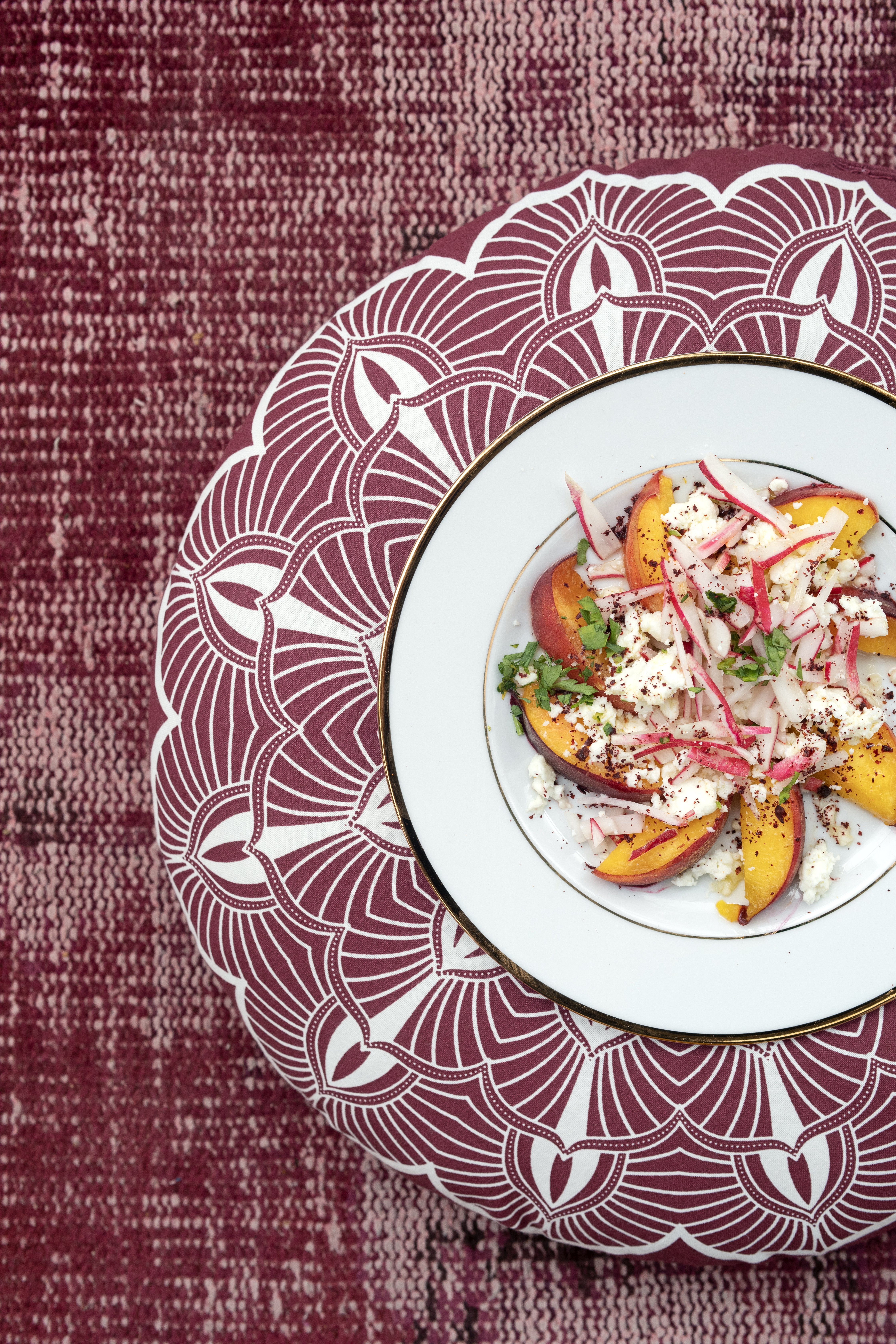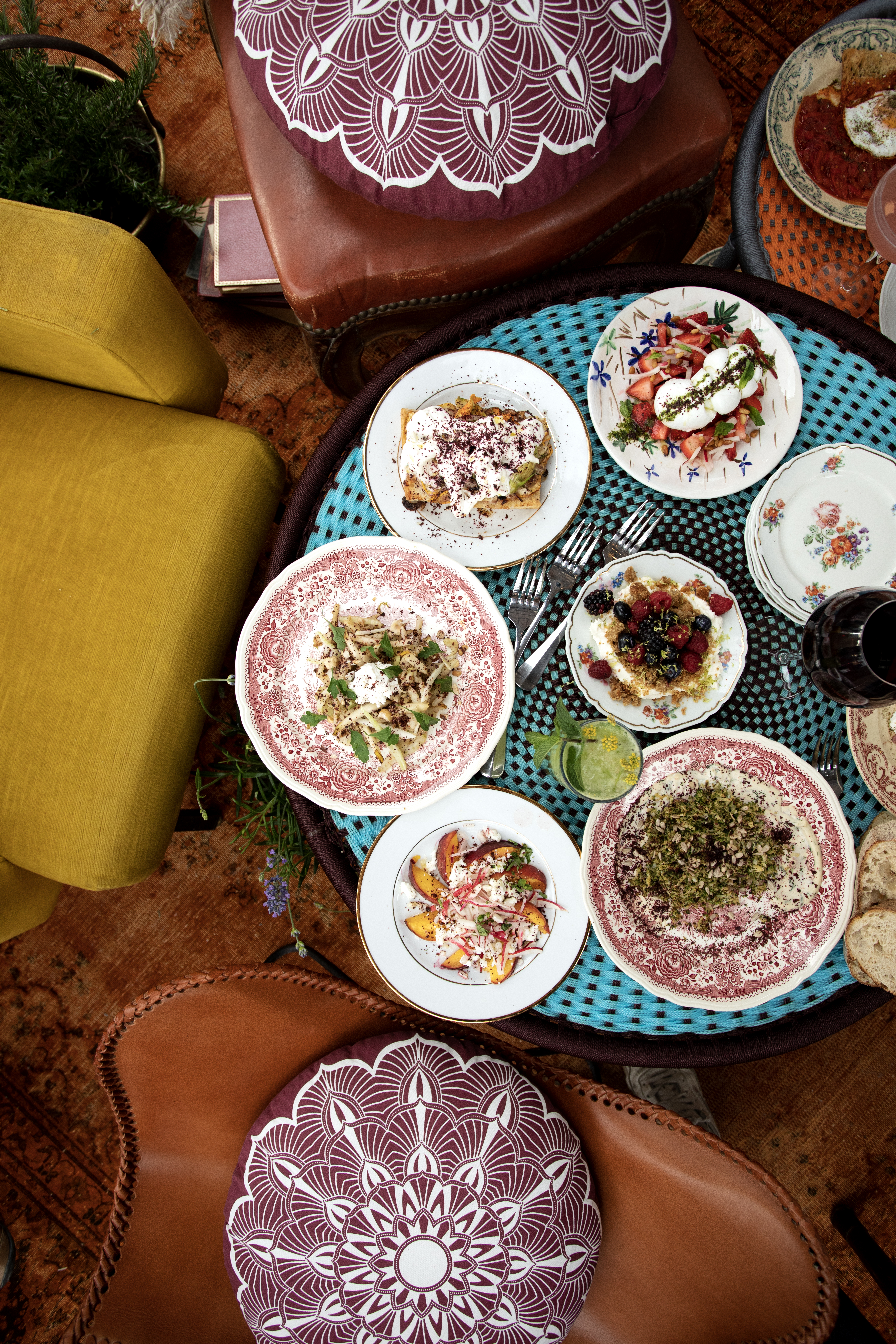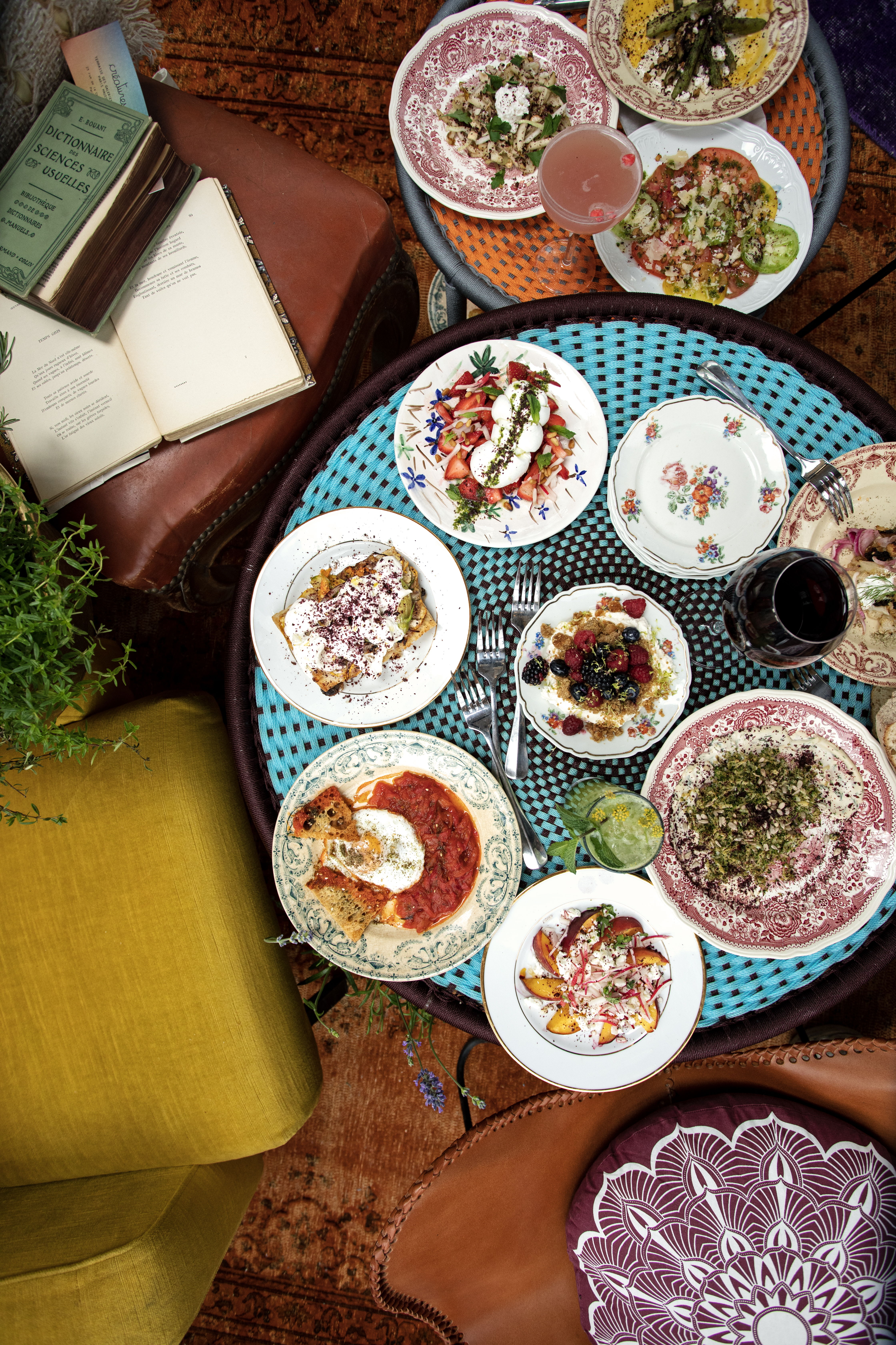 Petits déjeuners végétariens & vegan, belles salades colorées (concombre, groseilles noires & basilic ou encore fenouil, colorabi, ricotta, avocat & poire d’été), pêches rôties à la Féta, fraises à la Mozzarella di Buffala fumée, chou-fleur rôtis, Humus à foison, généreuses focaccia de courgettes ou encore sublimes galettes d’aubergines. Une multitude de goûts, de couleurs, de vitamines et de gourmandises qui sauront séduire tous les palais, y compris les plus réticents aux fruits et légumes.