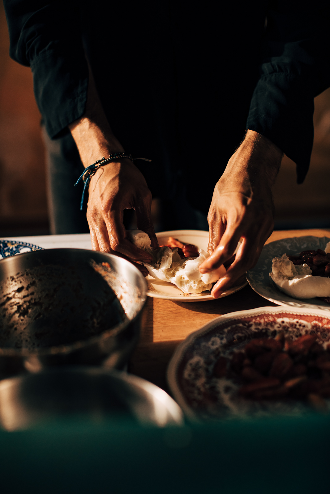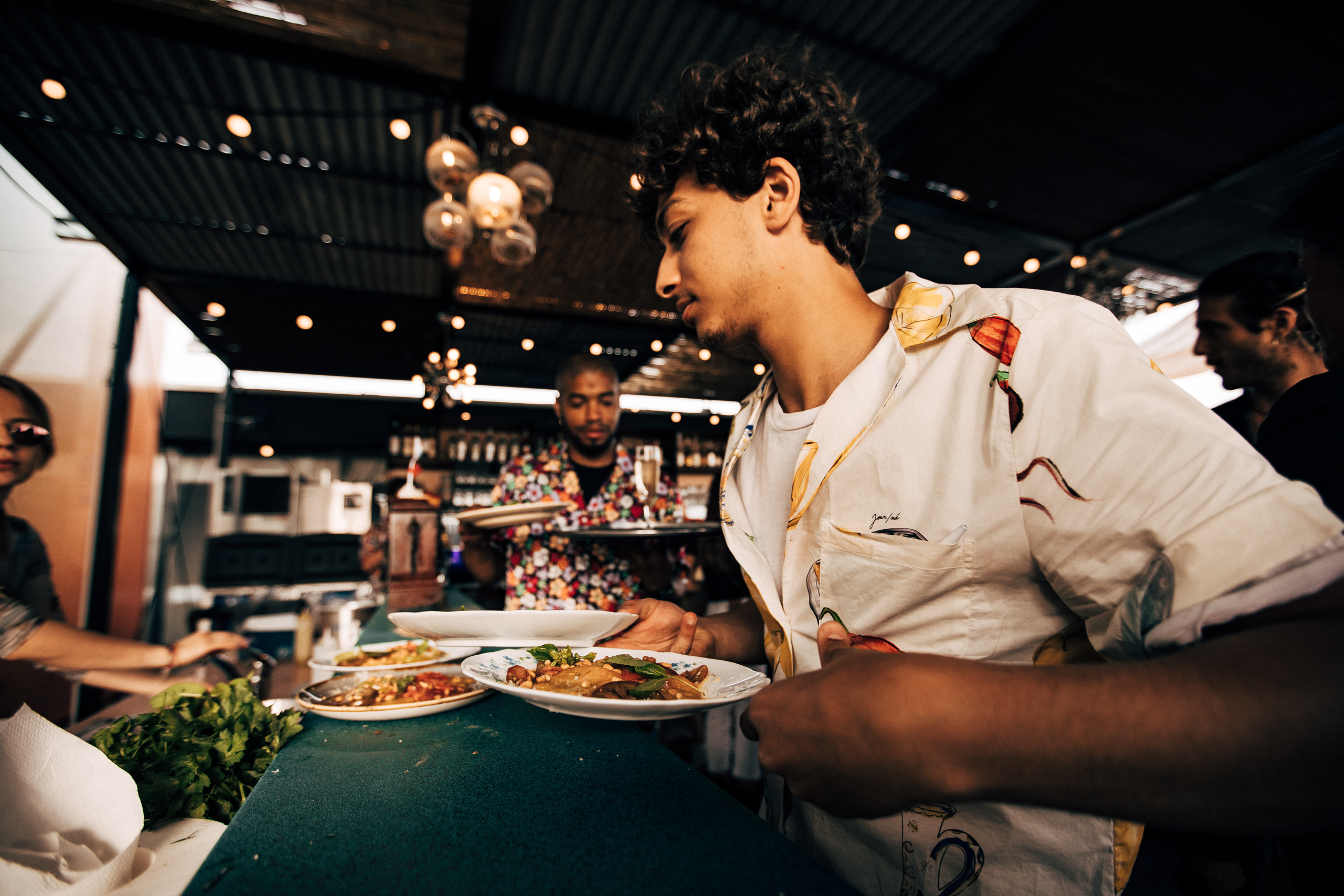Comme la tradition le veut avec Julien Sebbag, sa cuisine de partage est toujours généreuse, et servie dans des assiettes ou sur du papier kraft à même la table, avec la particularité d’être dressée devant les convives par le chef en personne et ses équipes.