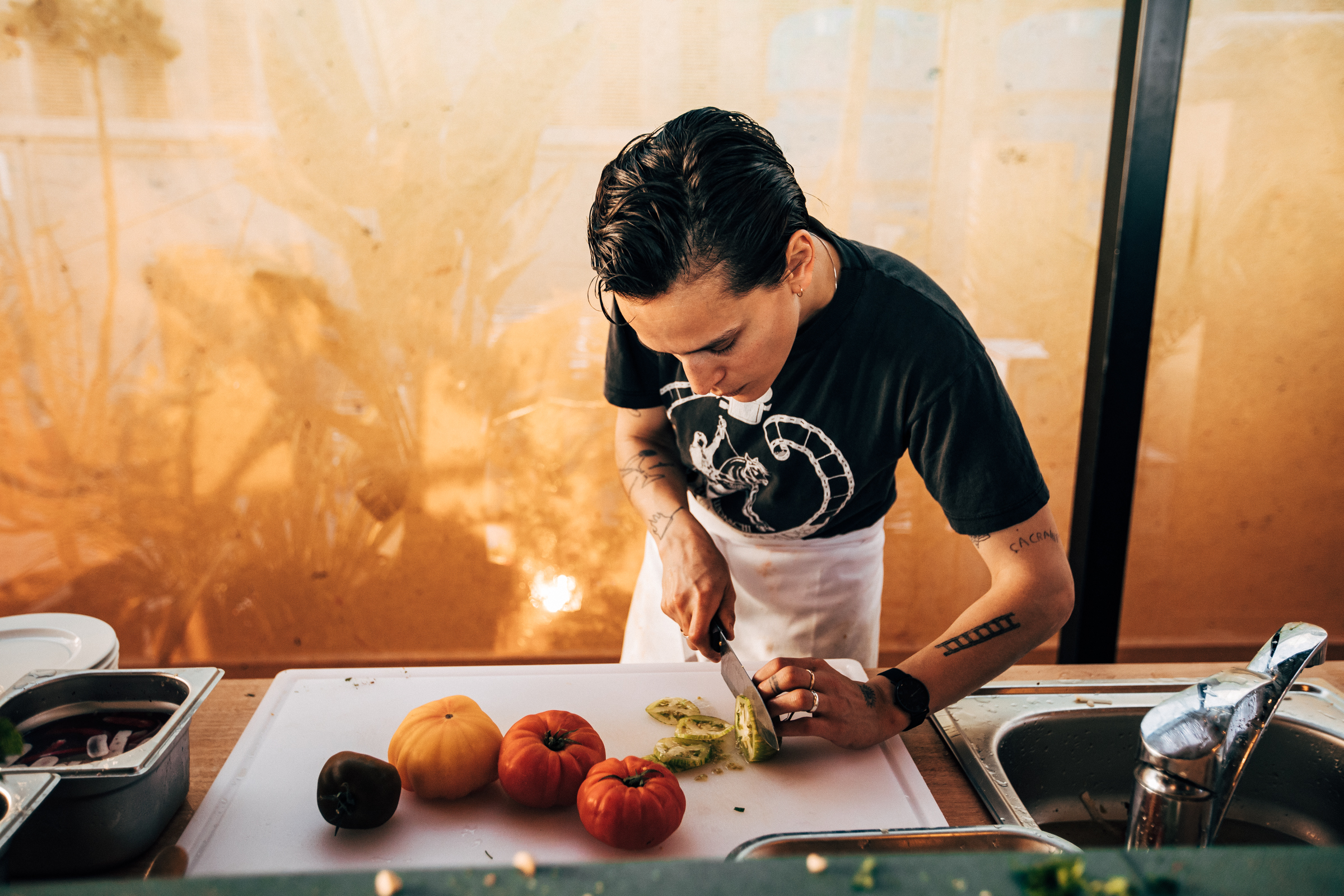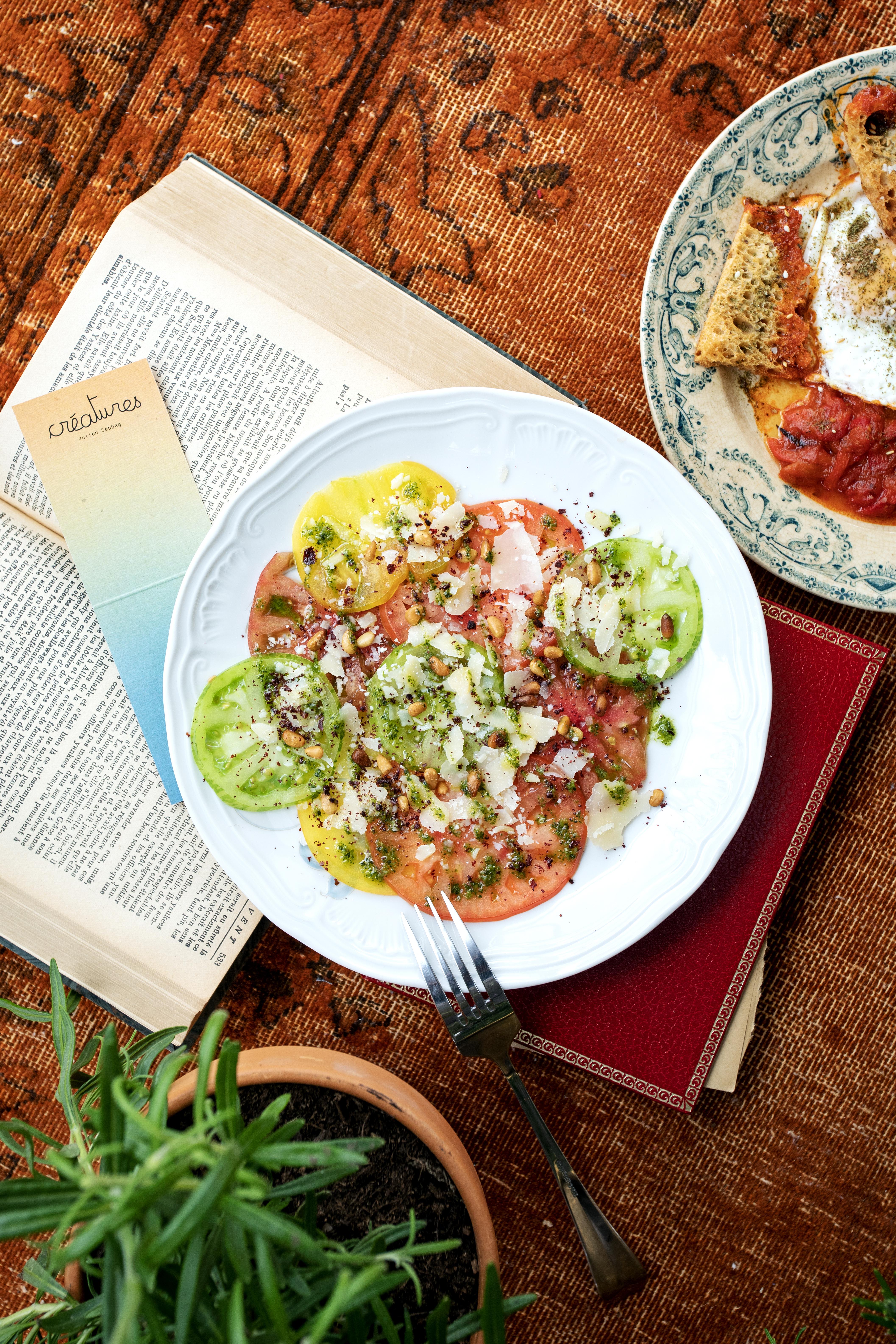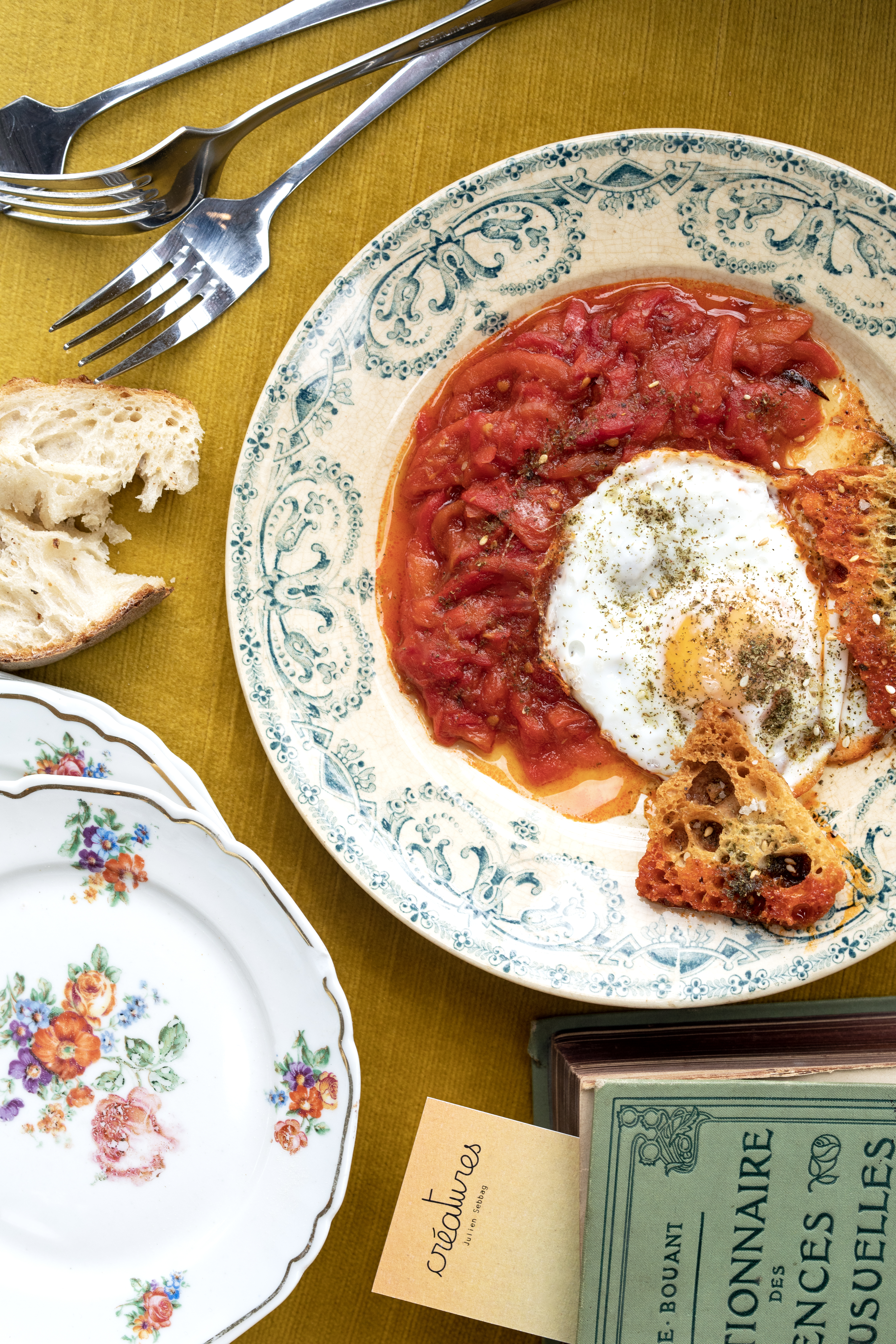 Tout le cérémonial de la cuisine méditerranéenne est aussi à l’honneur chez CRÉATURES. De la préparation du repas jusqu’au moment où on le partage, du service au rythme général, de l’environnement à la vaisselle, et de la cuisine ouverte au spectacle. Un panel de détails qui ont fait la réputation du chef, qui prend plaisir à cuisiner devant le client, piochant çà et là dans les herbes et le potager urbain pour agrémenter ses plats.