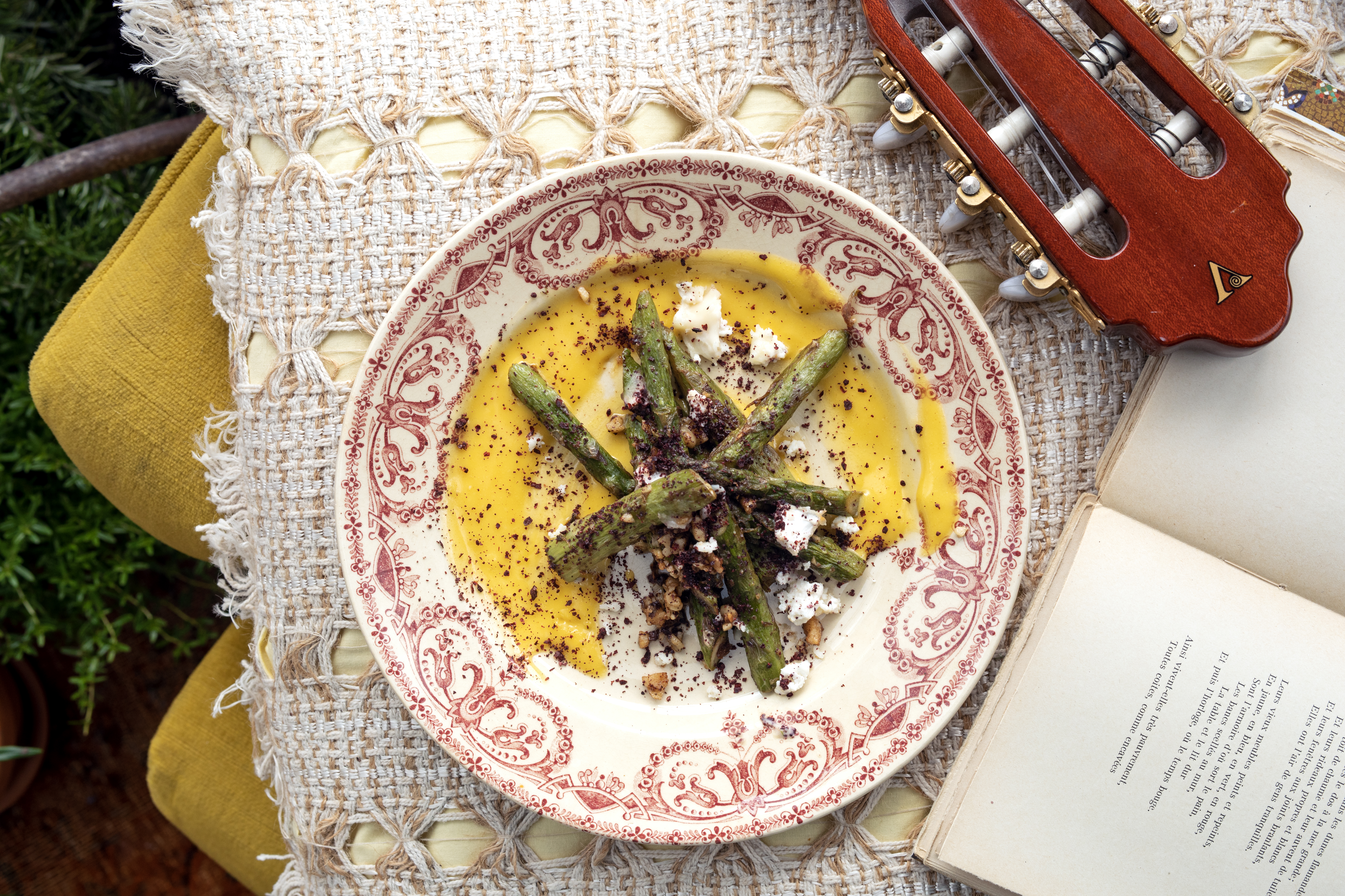 Le jeune chef développe un amour inconditionnel pour les légumes, lorsqu’il se met à la cuisine durant ses années d’études de commerce. Il les découvre surtout au terme de ses voyages et en Méditerranée essentiellement, où ils sont au cœur de l’assiette. Dans ses souvenirs, son premier Sabih Frishman (kiosque de pita à base d’aubergine à Tel Aviv). C’est à ce moment que Julien Sebbag prend conscience de la puissance des légumes et de ce qu’ils sont capables d’évoquer pour chacun de nous. La cannelle lui rappelle le Strudel, un gâteau aux pommes d’Europe de l’Est que fait sa mère. Le basilic lui évoque les pâtes au pesto de sa grand-mère. Les pêches, il y est allergique. Et la thina serait pour lui la preuve que Dieu existe. « Lors d’un voyage au Japon, dans un Izakaya, j’ai mangé de l’avocat rôti au miso. J’ai mis deux jours à m’en remettre. Chez Port Saïd à Tel-Aviv, c’est arrivé avec un simple yaourt retourné dans un fond d’huile d’olive, de piment et de graines de tomate. A Hoi Han au Vietnam, c’étaient des épinards à l’huile de sésame, et c’est sans doute à ce moment que la thina est entrée dans ma vie et dans ma cuisine. Voilà comment j’ai compris que la nourriture était une expérience. » Julien Sebbag