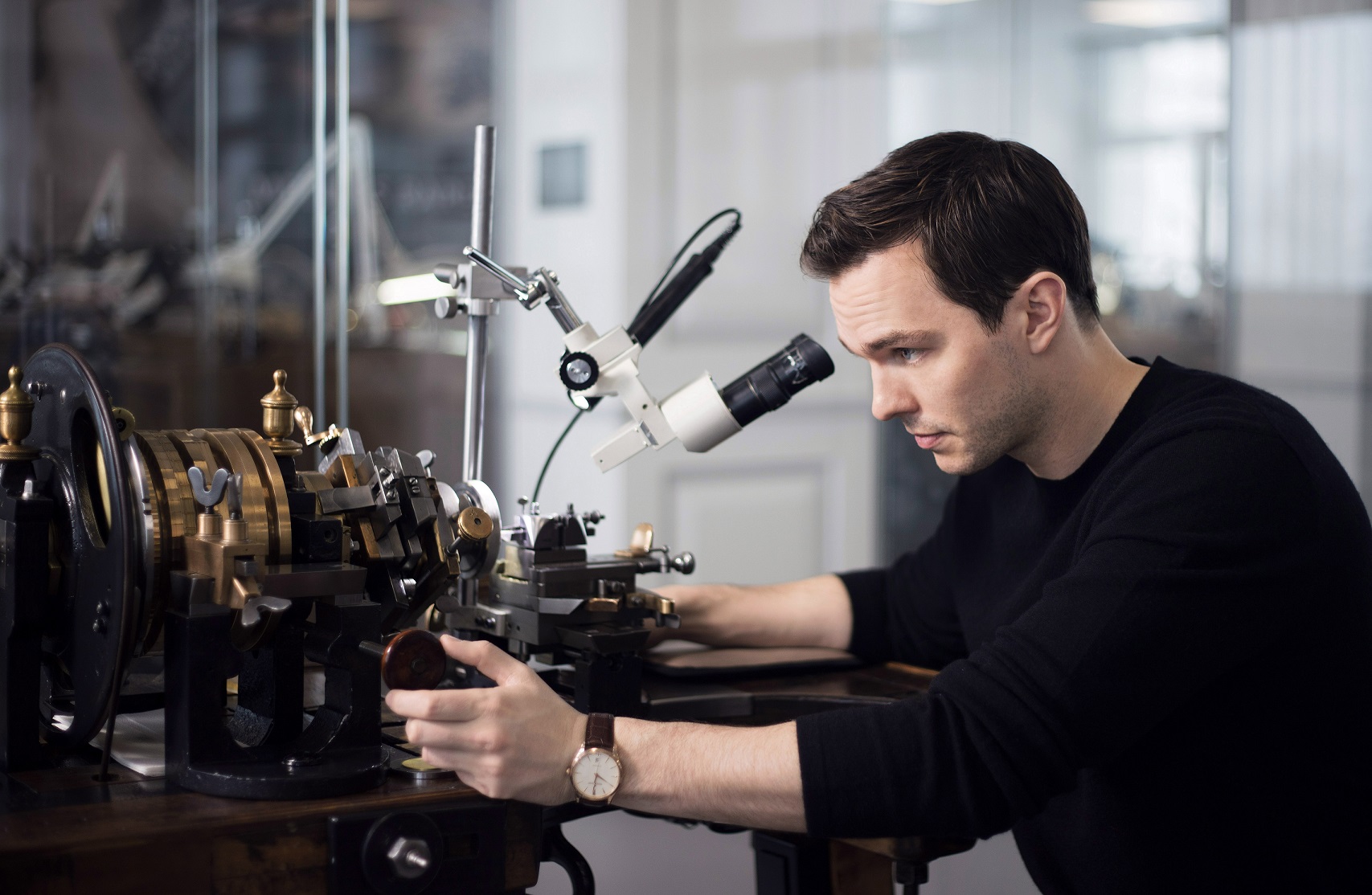 En janvier 2019, lors de sa visite au Salon international de la haute horlogerie, Nicholas Hoult a eu l’occasion de visiter la manufacture Jaeger-LeCoultre, au cœur de la vallée de Joux. Il a découvert les principaux ateliers de la Grande Maison, dont celui des Hautes Complications. Nicholas était fasciné par le savoir-faire et la passion des artisans avec qui il a pu échanger. De la production de composants à l’assemblage des différentes pièces, en passant par les opérations de finition délicates, ce visiteur exceptionnel a été initié à toutes les étapes du développement et de la fabrication d’une montre Jaeger-LeCoultre.