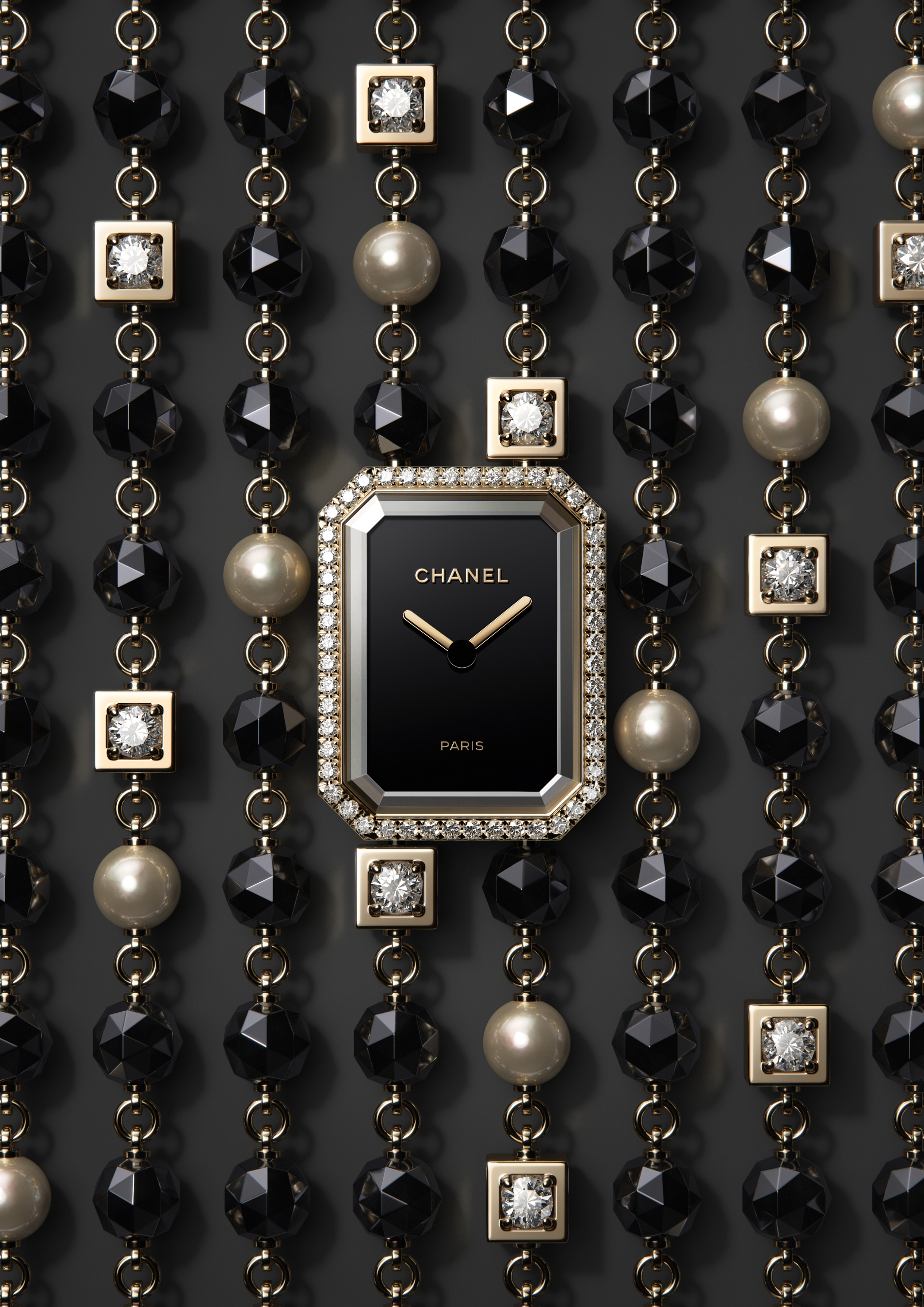 Première montre créée exclusivement pour les femmes par CHANEL en 1987, inspirée de la forme octogonale du bouchon du flacon du N°5 et de la place Vendôme, la Première est une icône depuis plus de 30 ans.