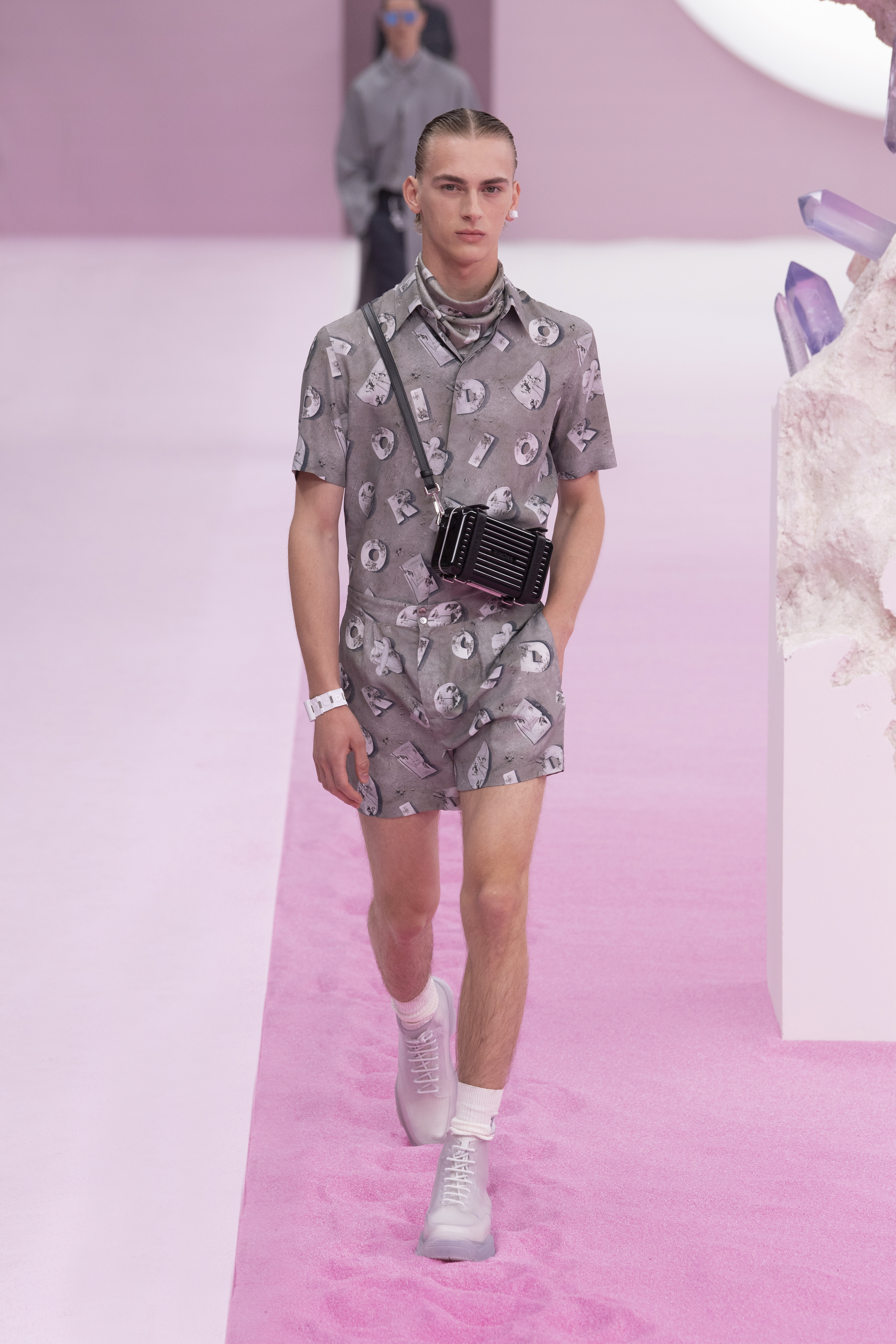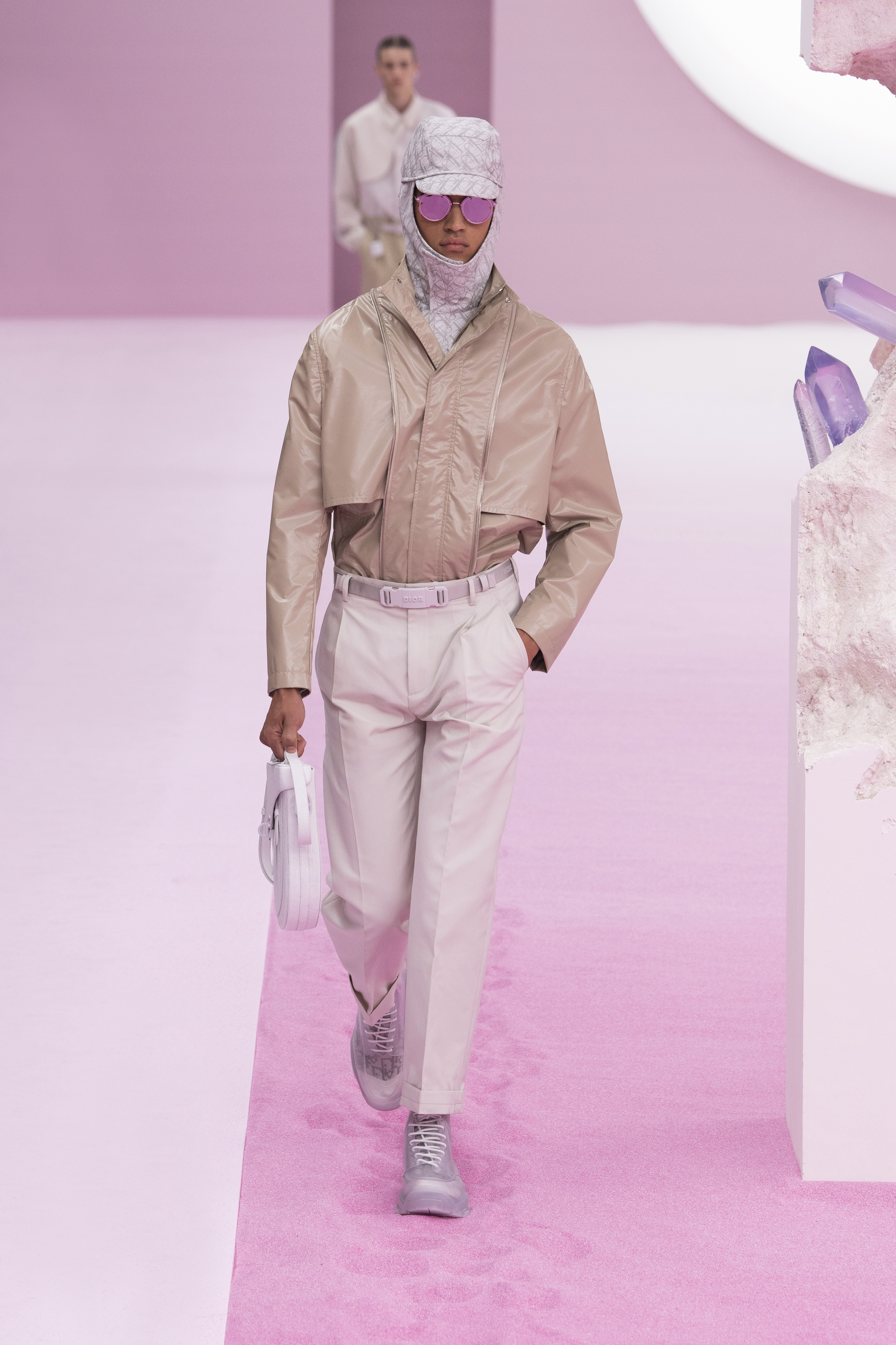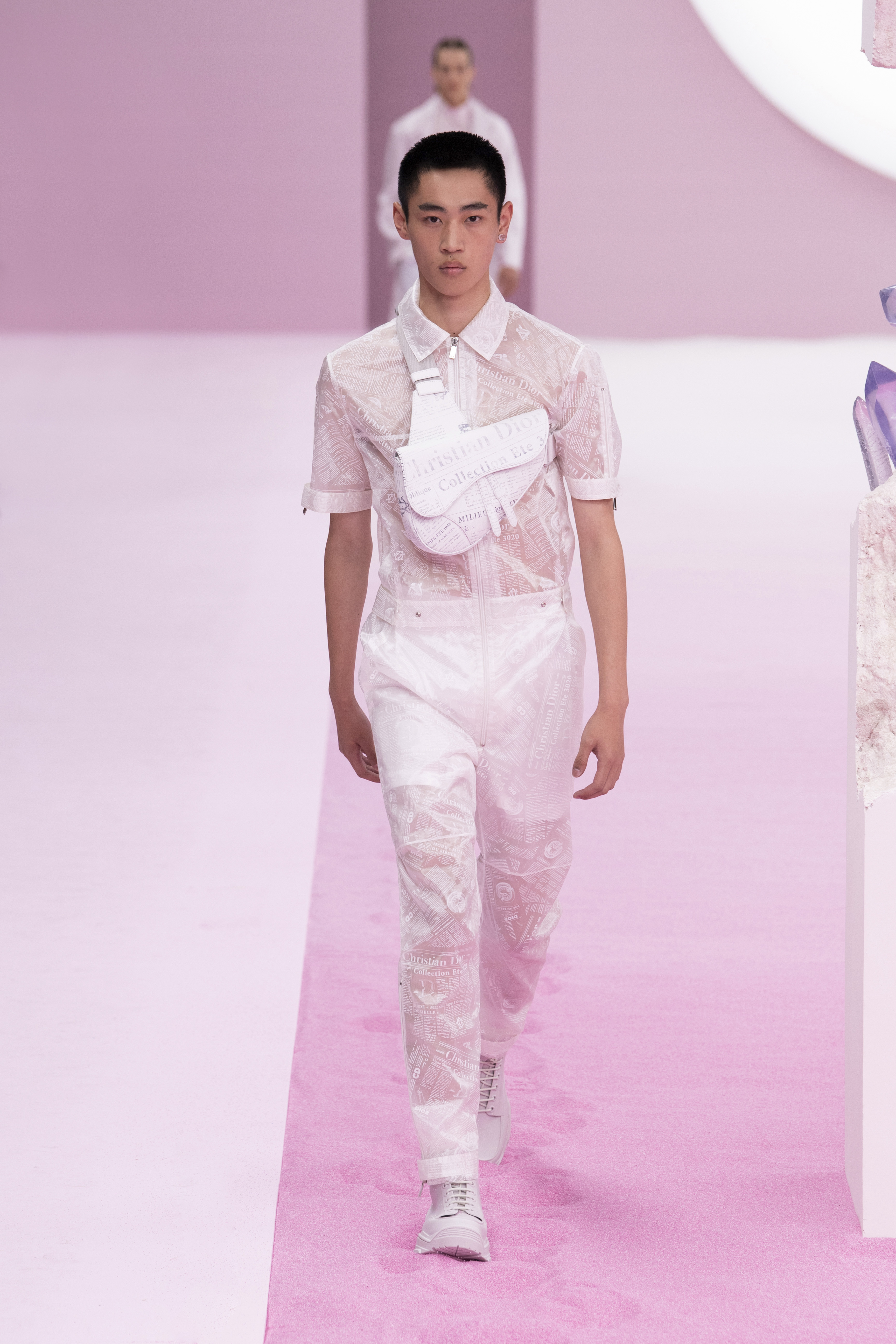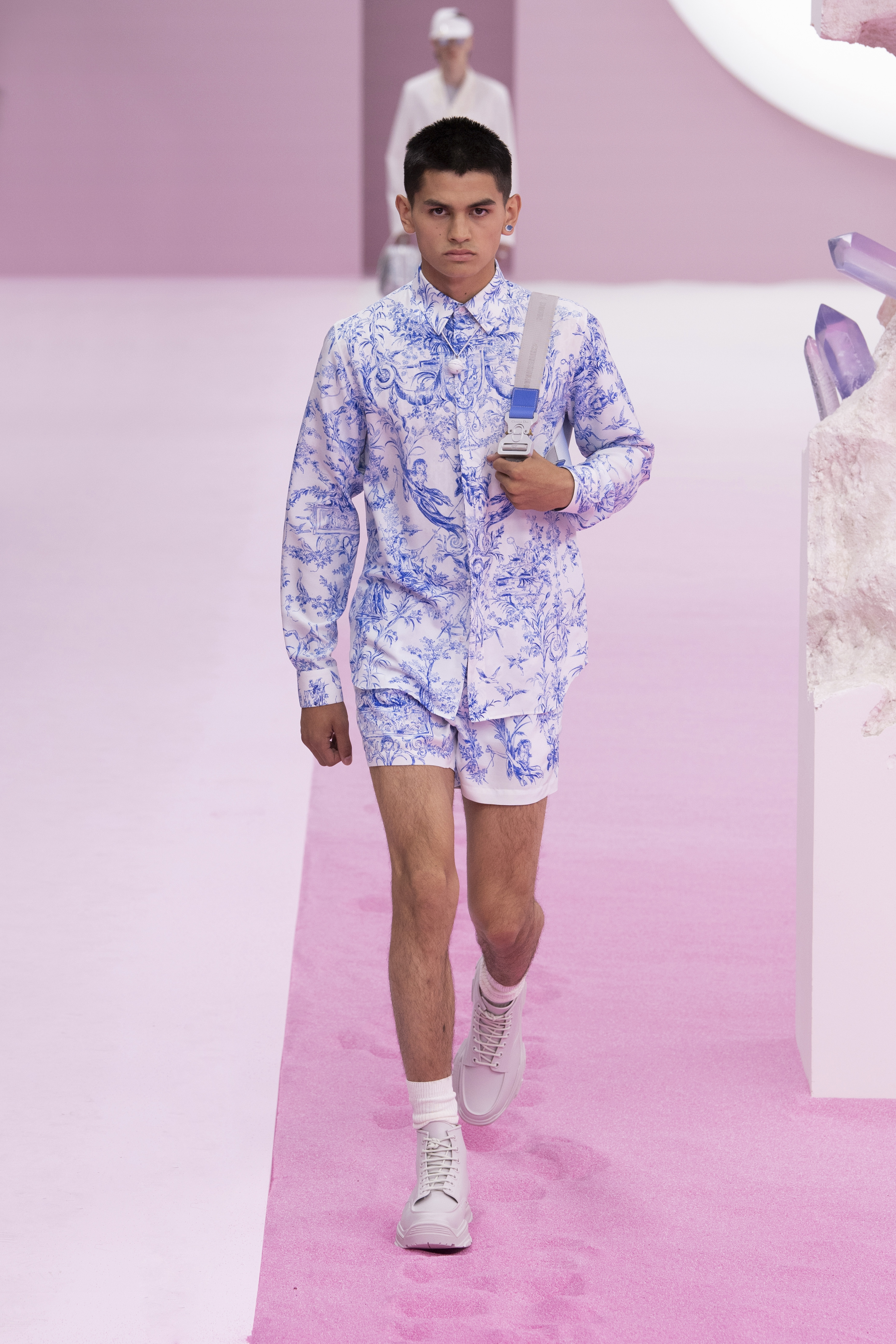 - Model wears an outfit , as part of the men s wear summer 2020, men fashion week, Paris, France, from the house of Dior