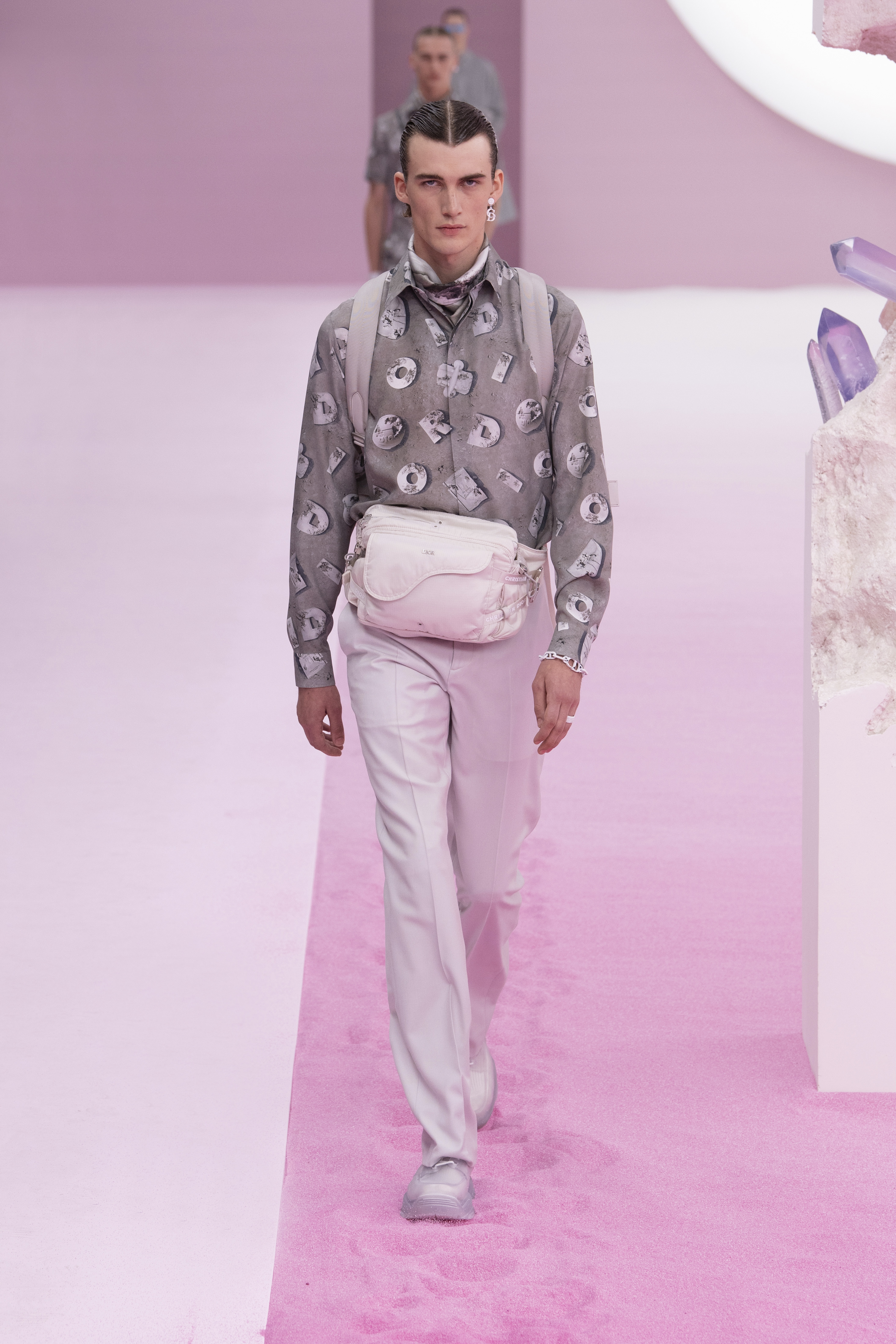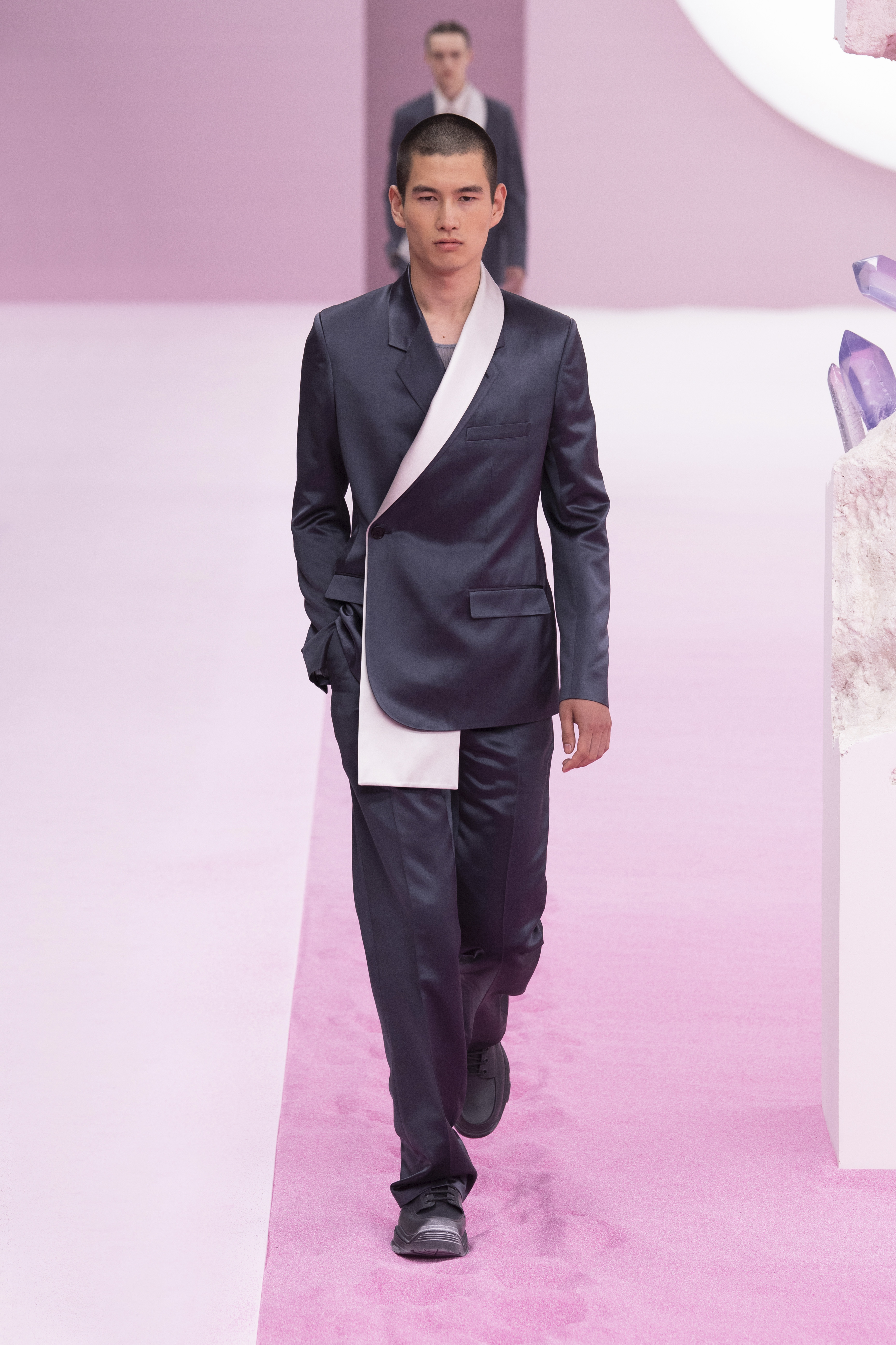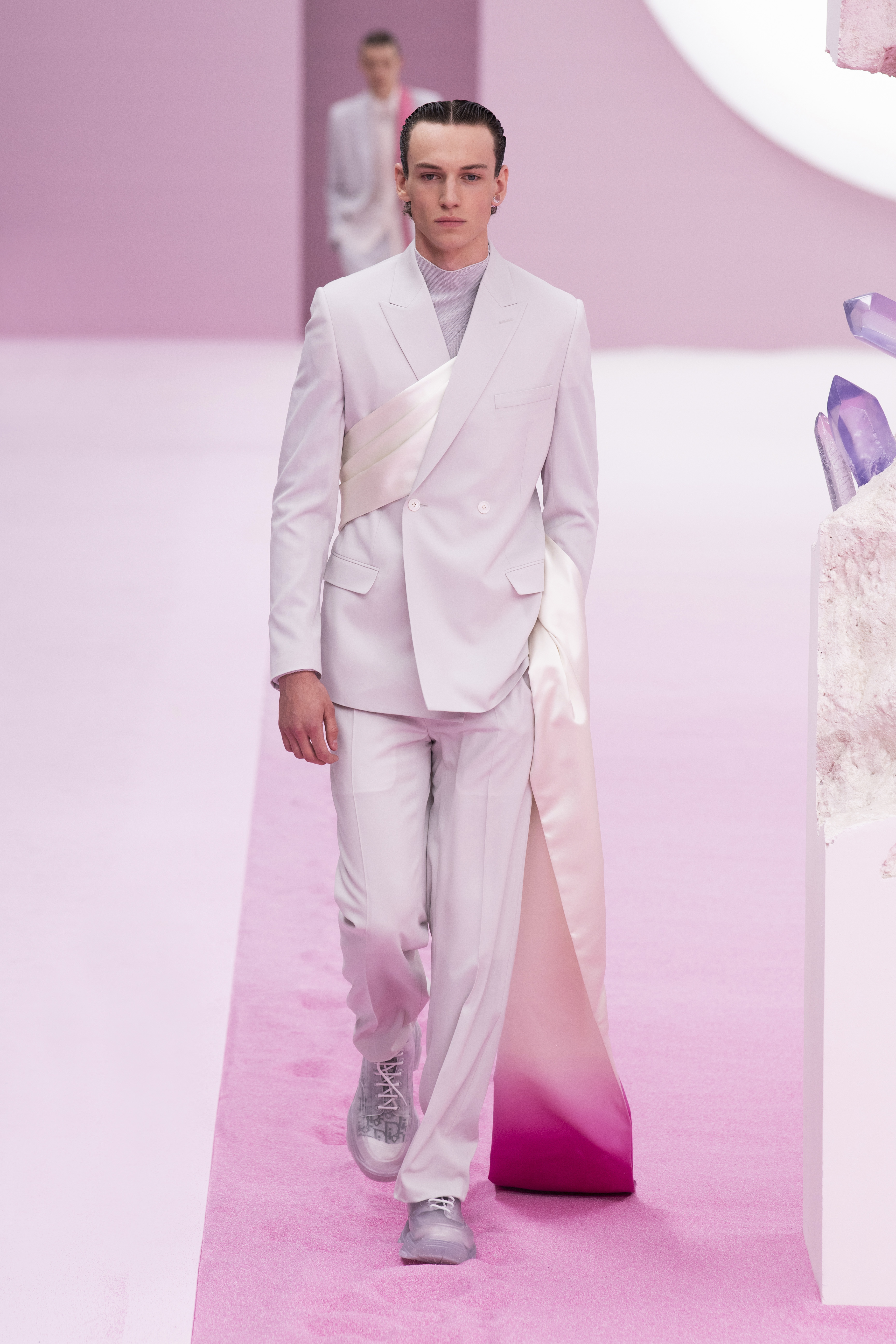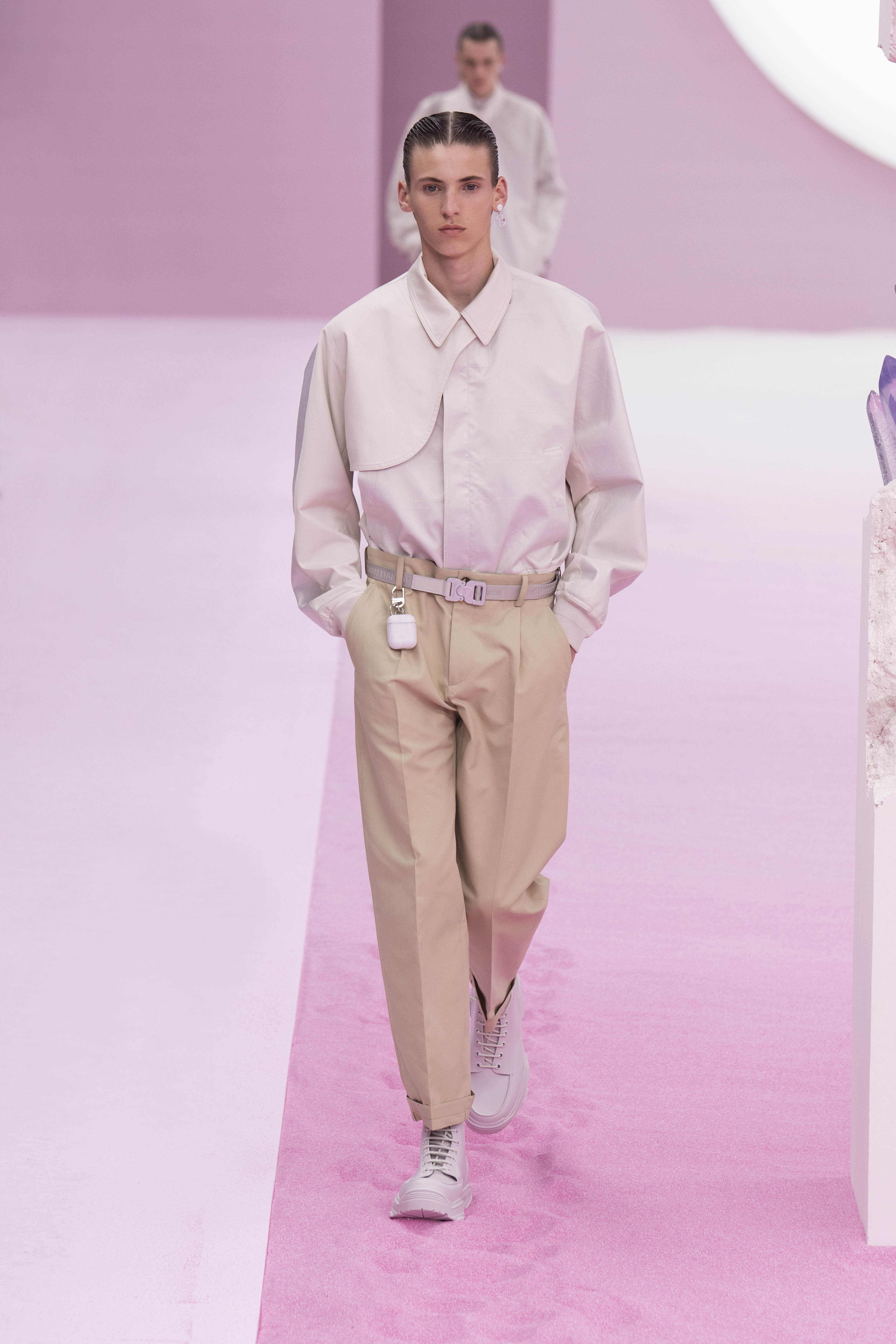 - Model wears an outfit , as part of the men s wear summer 2020, men fashion week, Paris, France, from the house of Dior