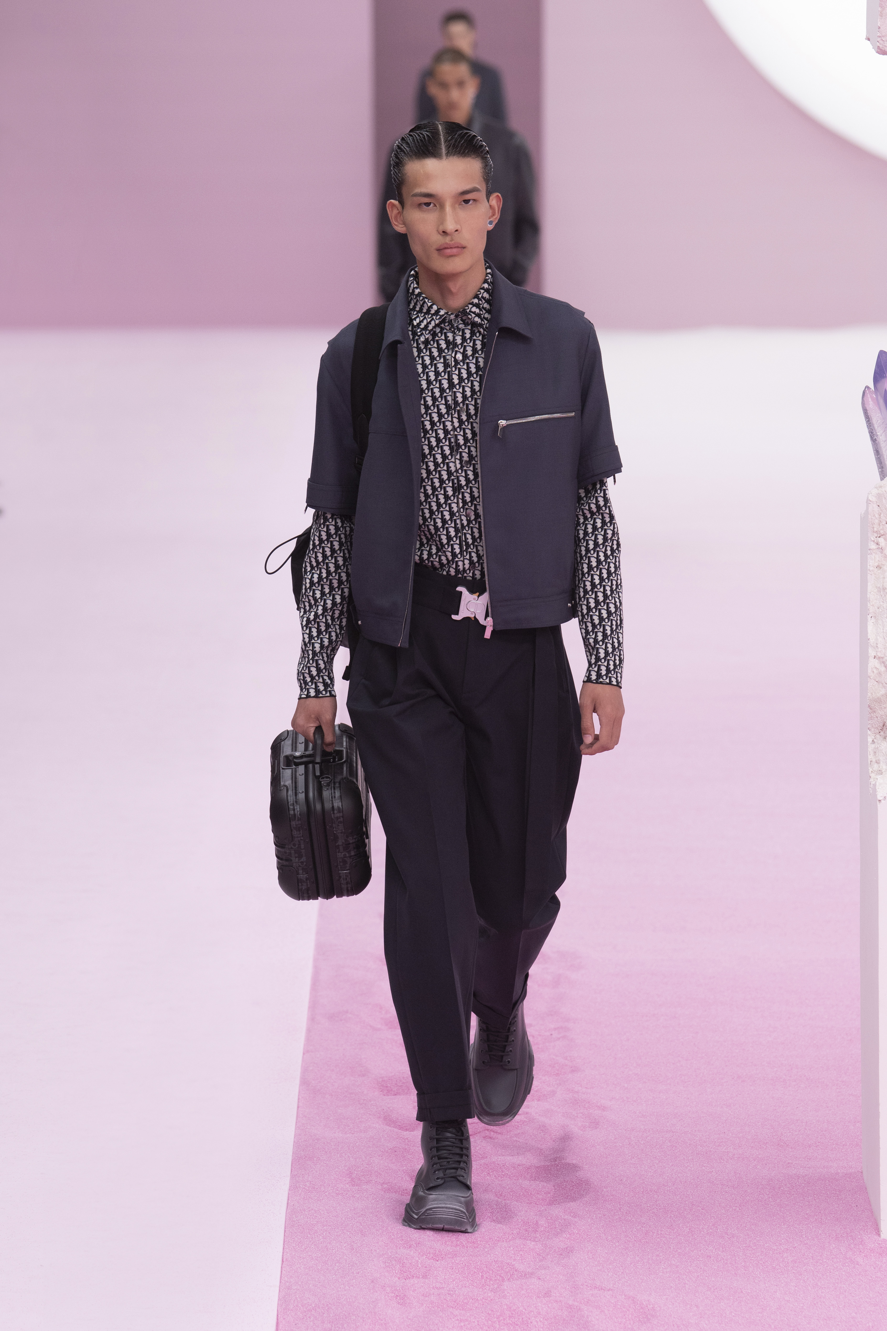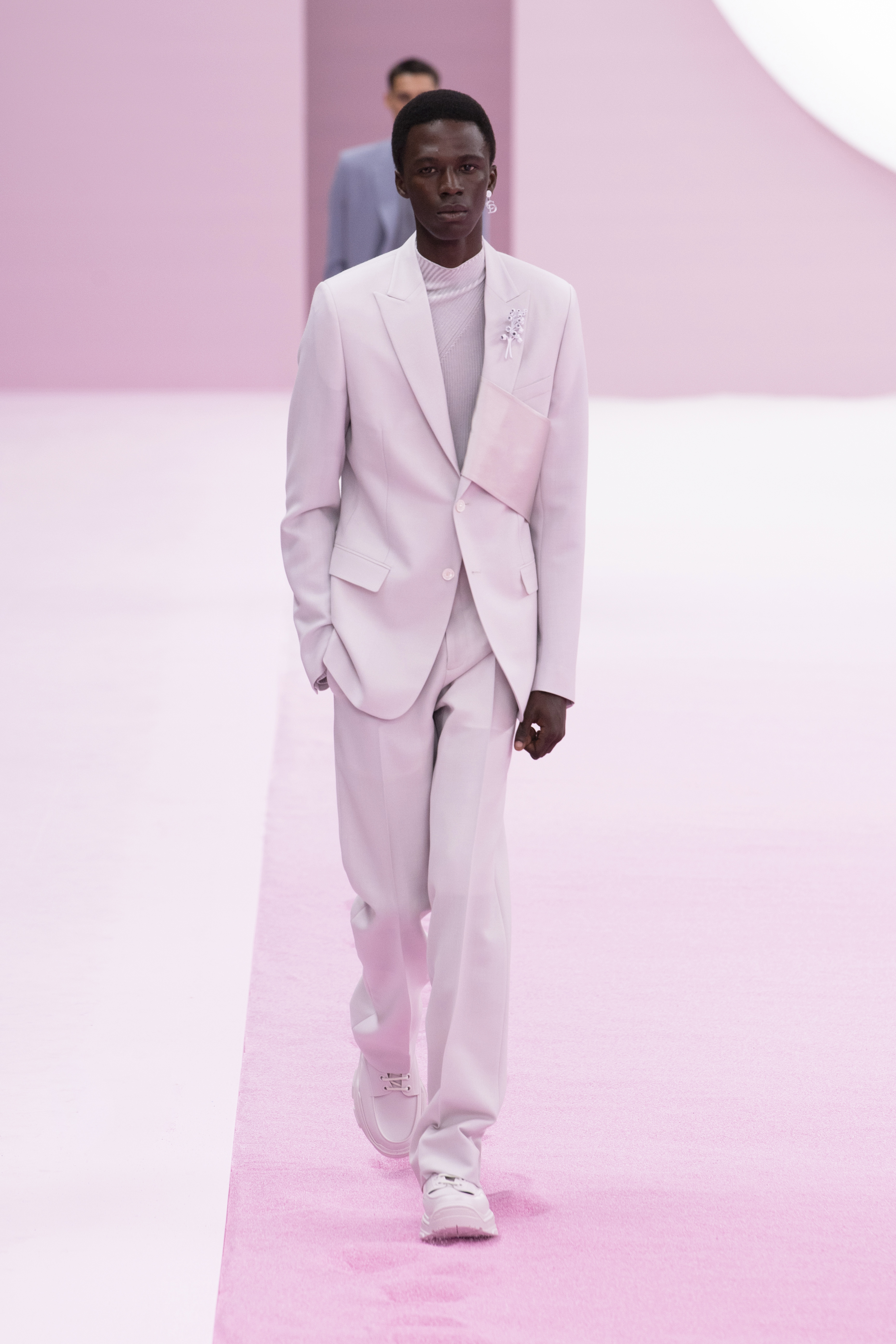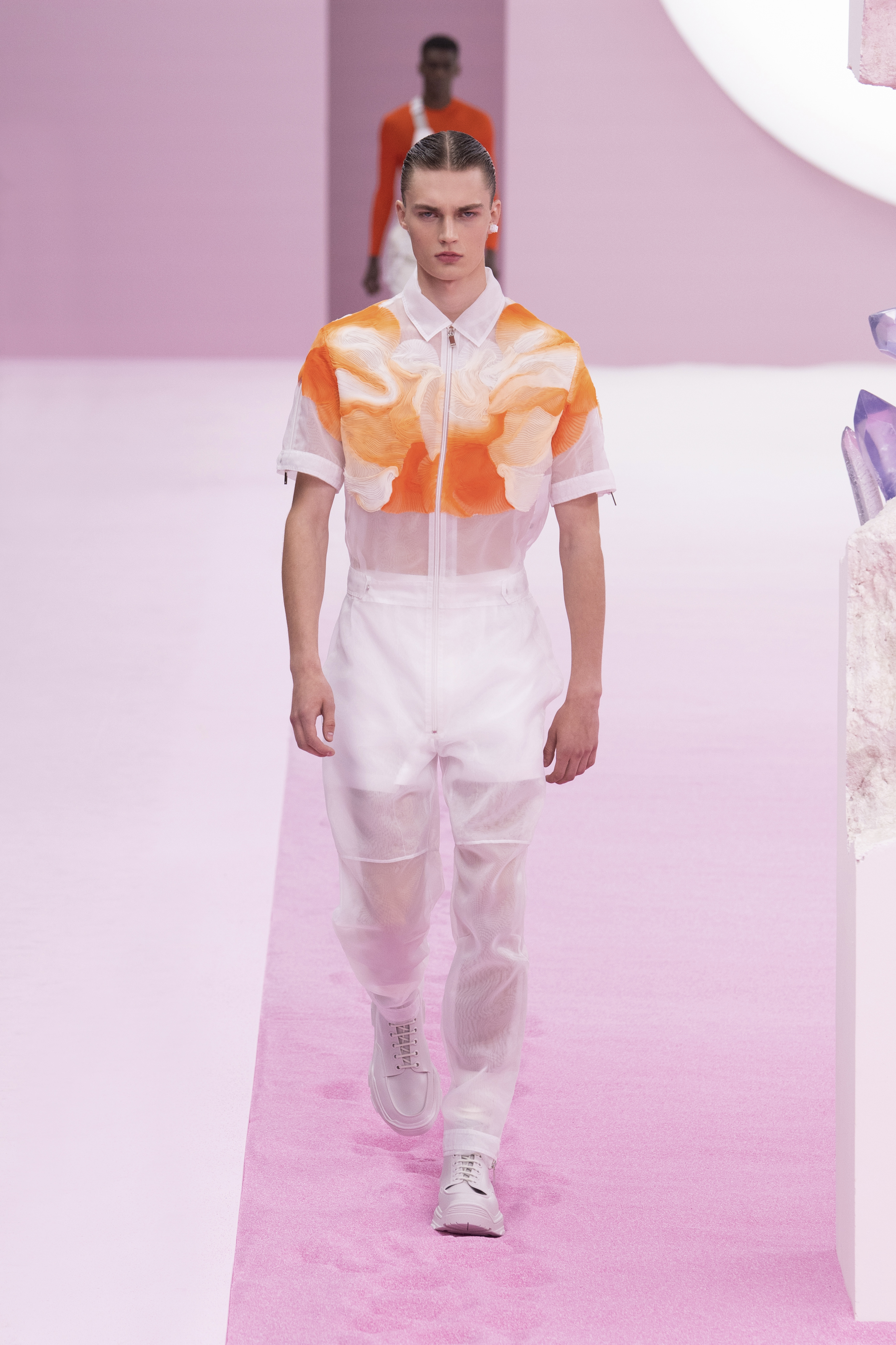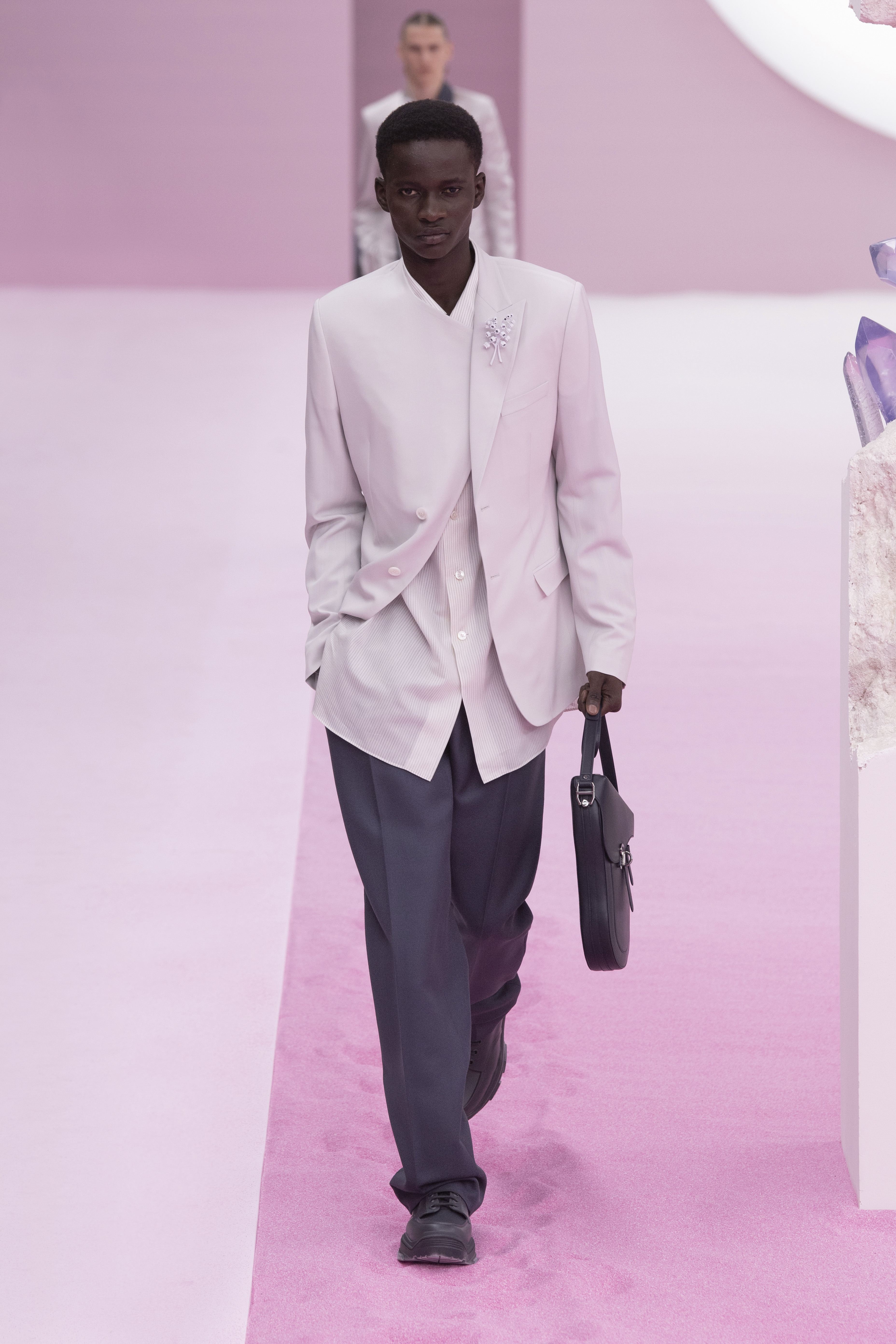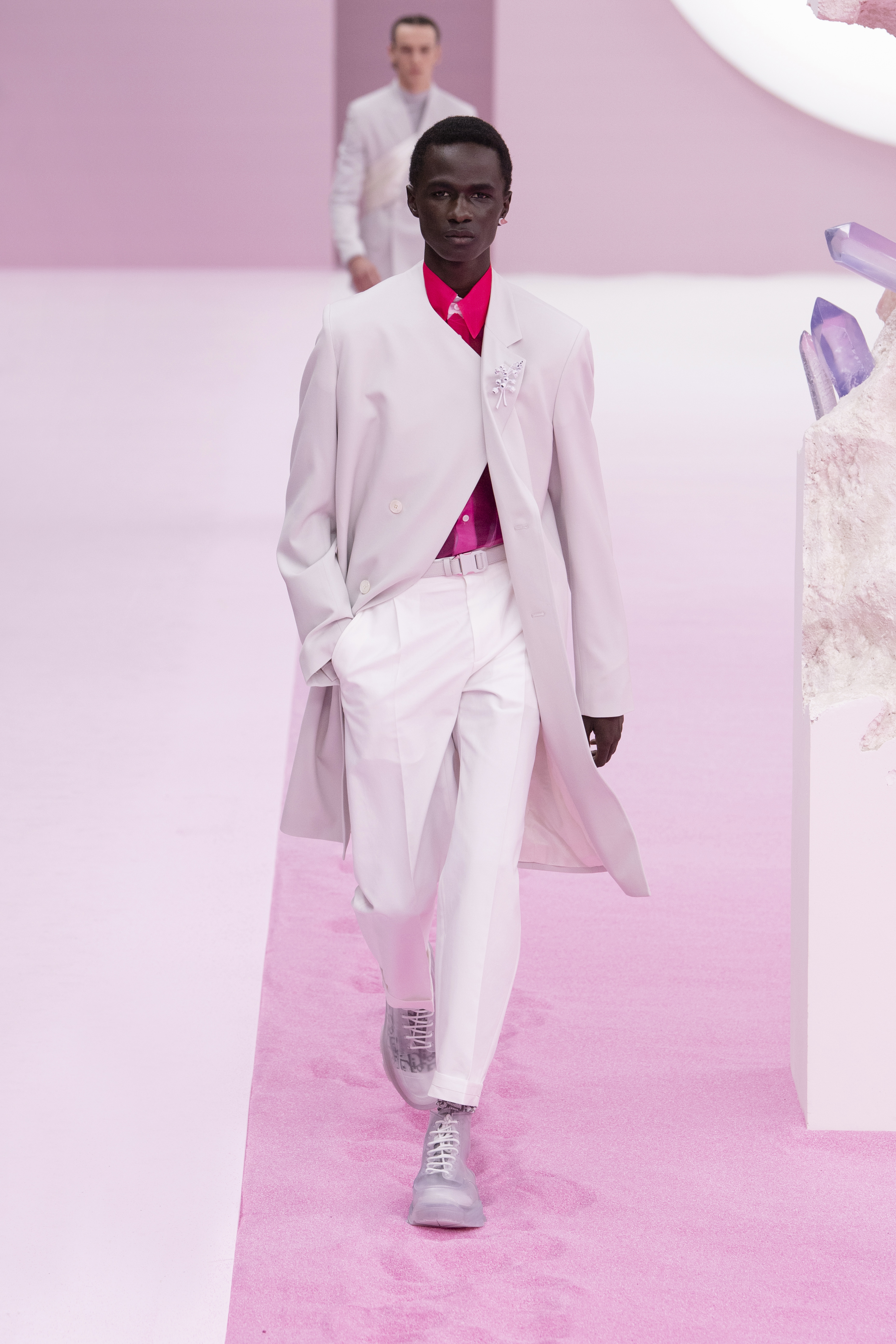 - Model wears an outfit , as part of the men s wear summer 2020, men fashion week, Paris, France, from the house of Dior