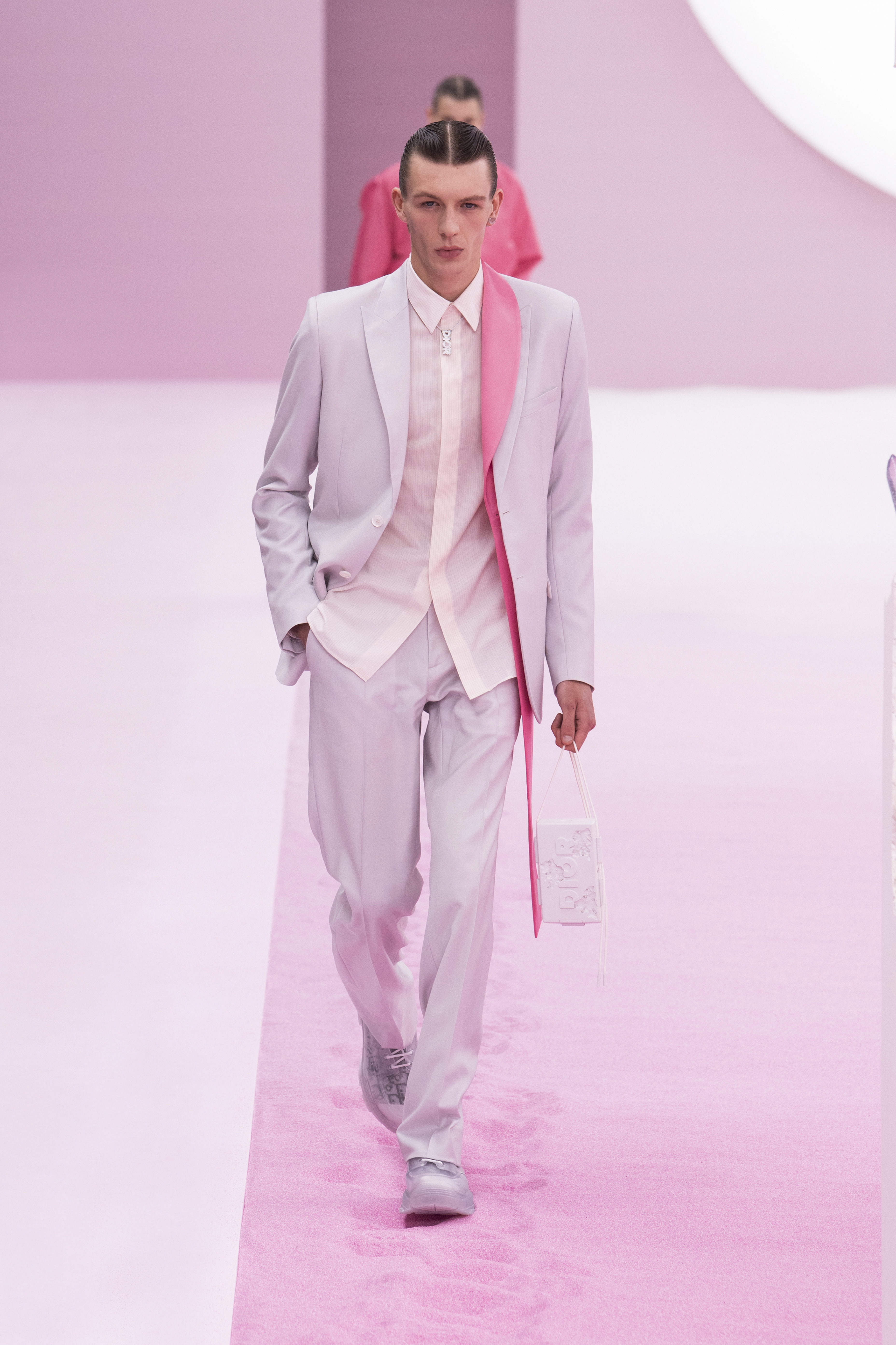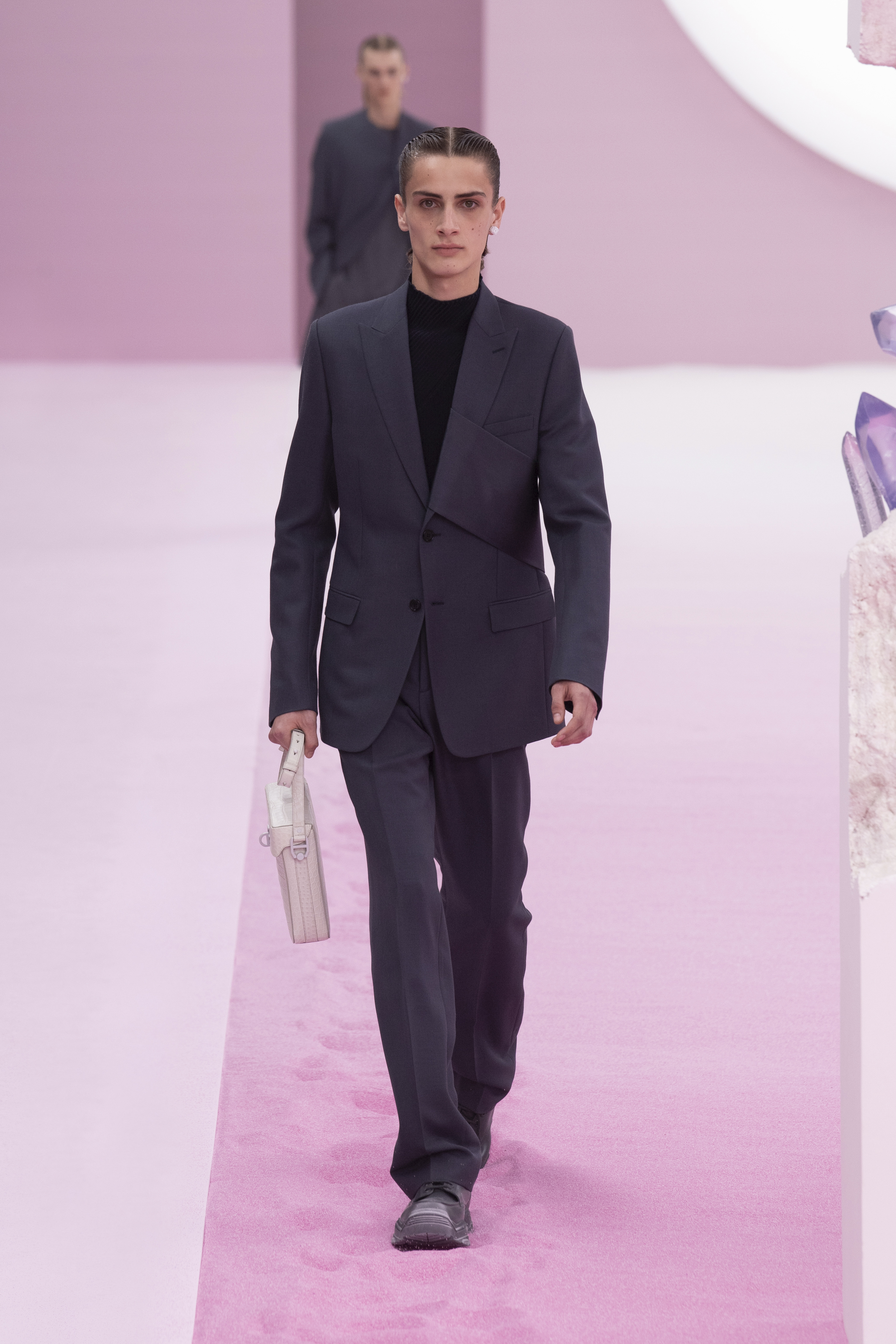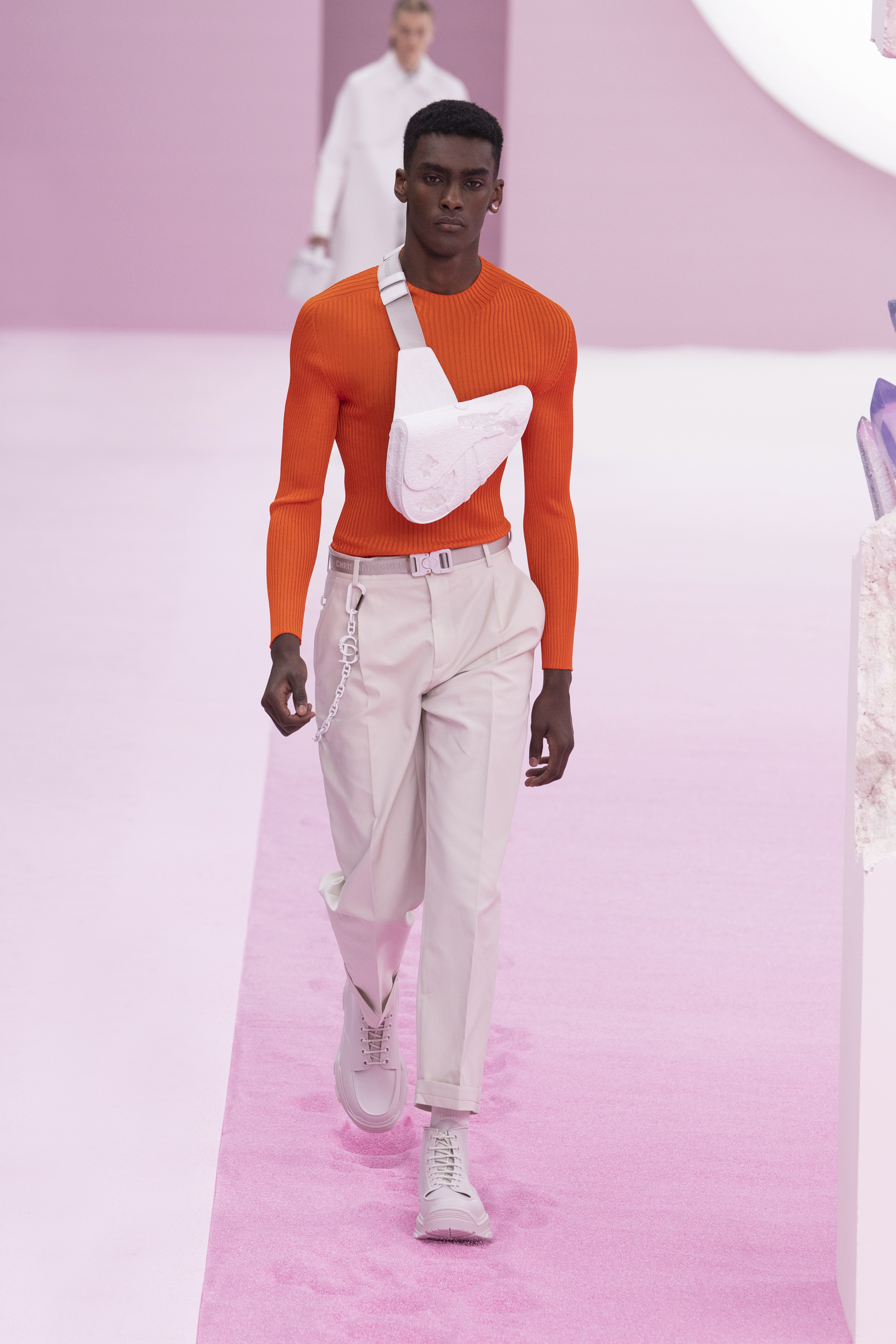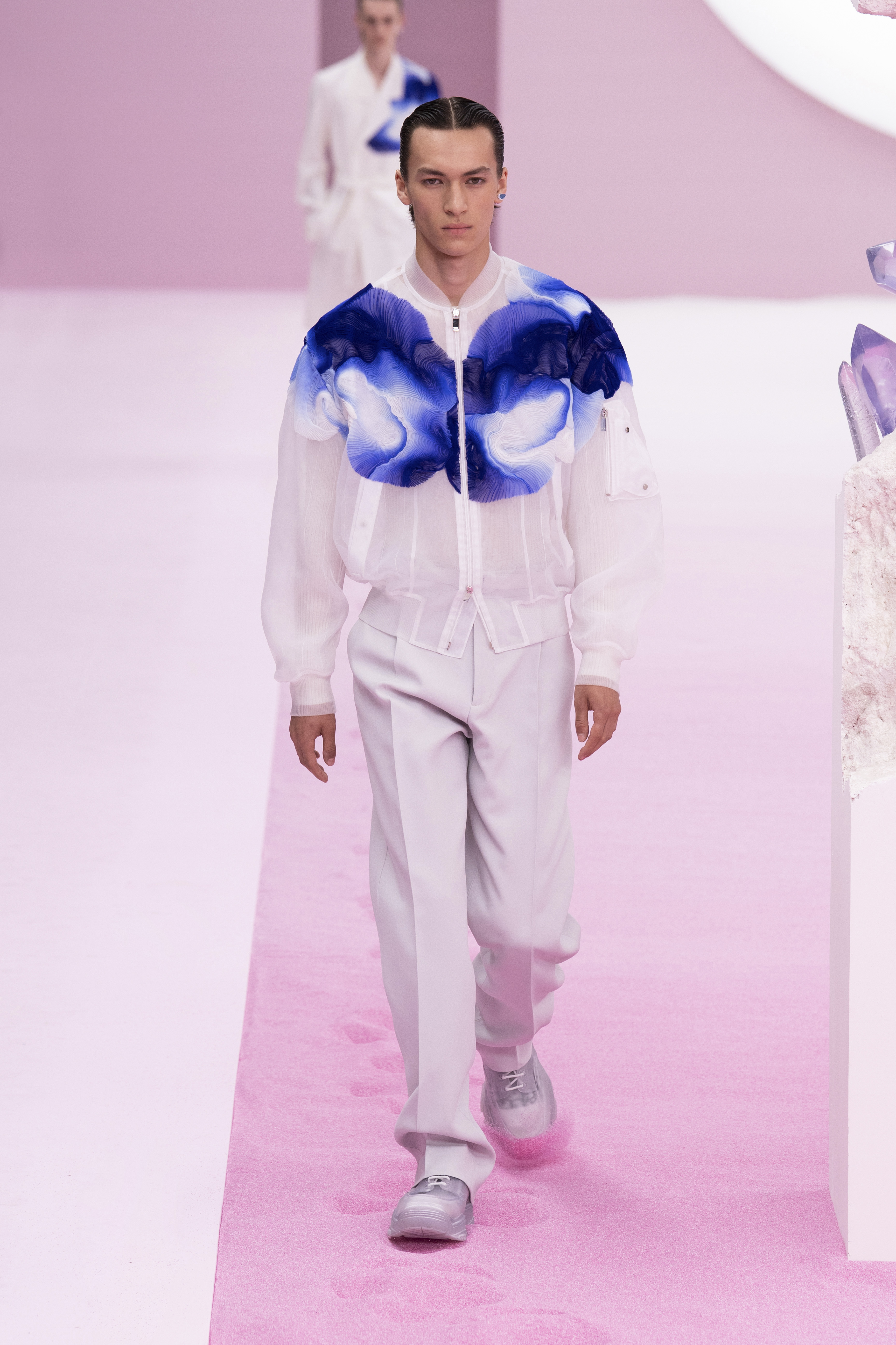 - Model wears an outfit , as part of the men s wear summer 2020, men fashion week, Paris, France, from the house of Dior
