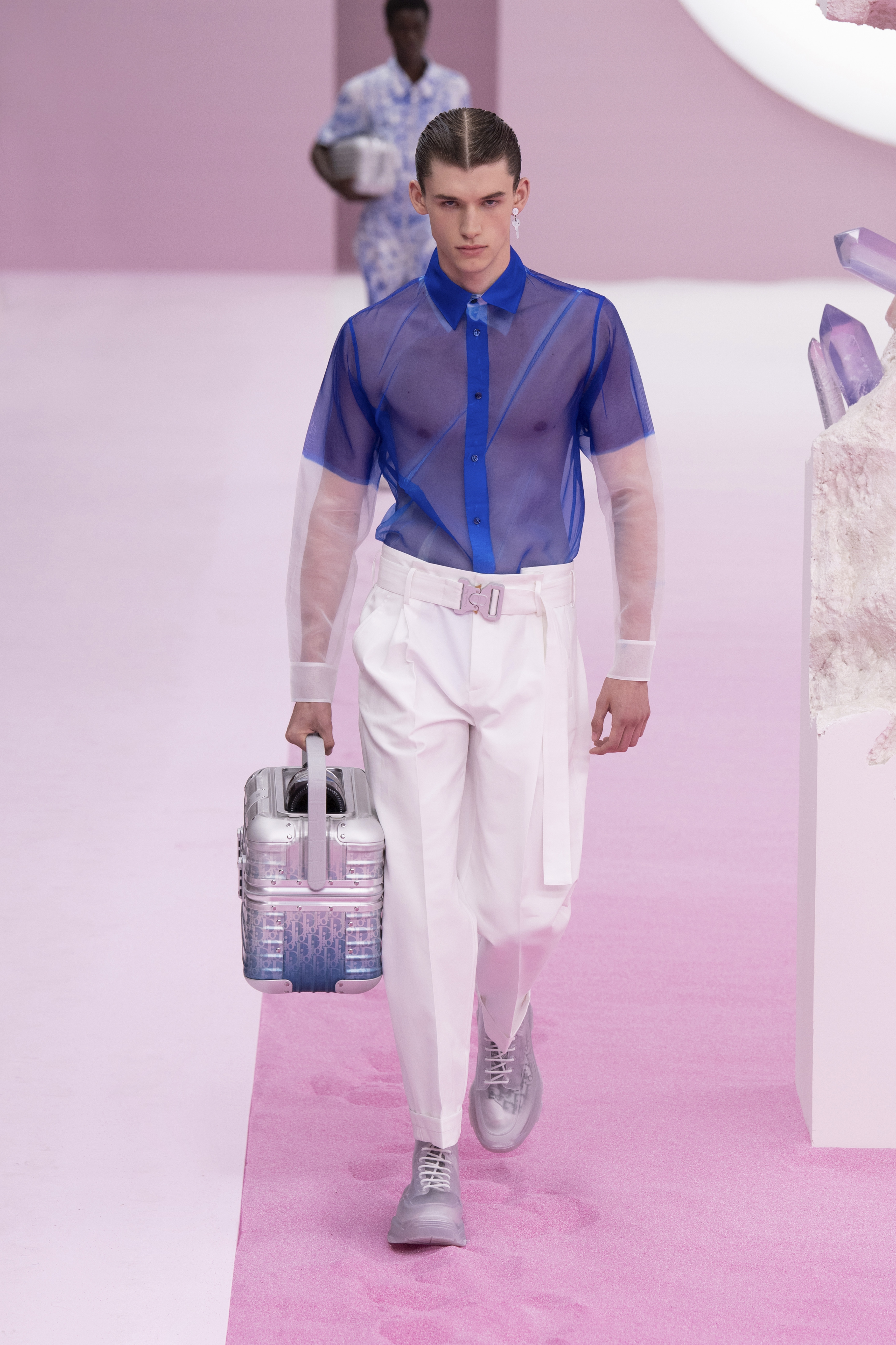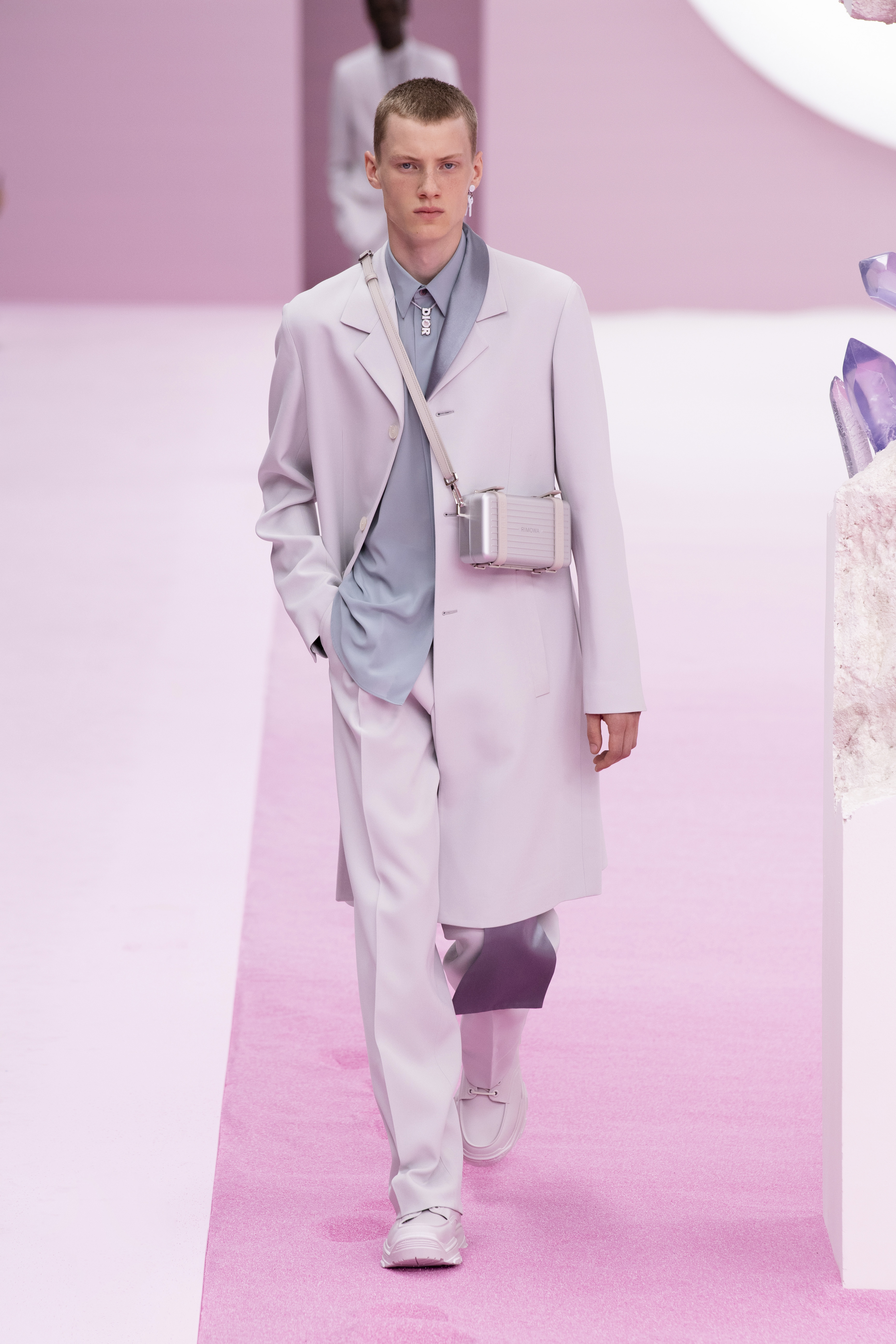 A L’OCCASION D’UNE PREMIÈRE COLLABORATION AVEC RIMOWA, MAISON DÉDIÉE AUX BAGAGES DE LUXE, DIOR DÉVOILE UNE CAPSULE INÉDITE COMPOSÉE D’UN SAC À DOS, D’UN CHAMPAGNE CASE, D’UN BAGAGE À MAIN, D’UNE MINAUDIÈRE ET D’UNE VALISE, ORNÉS DE RAINURES EN ALUMINIUM, CODE EMBLÉMATIQUE DE LA MAISON ALLEMANDE. CONFECTIONNÉE AVEC UN SAVOIR-FAIRE D’EXCELLENCE, CETTE ÉDITION SPÉCIALE « DIOR ET RIMOWA » RECÈLE UNE TECHNIQUE INNOVANTE QUI A PERMIS D’INSCRIRE, TELLE UNE SIGNATURE INDÉLÉBILE AU CŒUR DE L’ALUMINIUM, LE MOTIF ICONIQUE DIOR OBLIQUE DÉCLINÉ DANS DES NUANCES VIBRANTES. UNE CÉLÉBRATION DU TRAVAIL DE LA MATIÈRE, PIERRE ANGULAIRE DE CE DÉFILÉ.