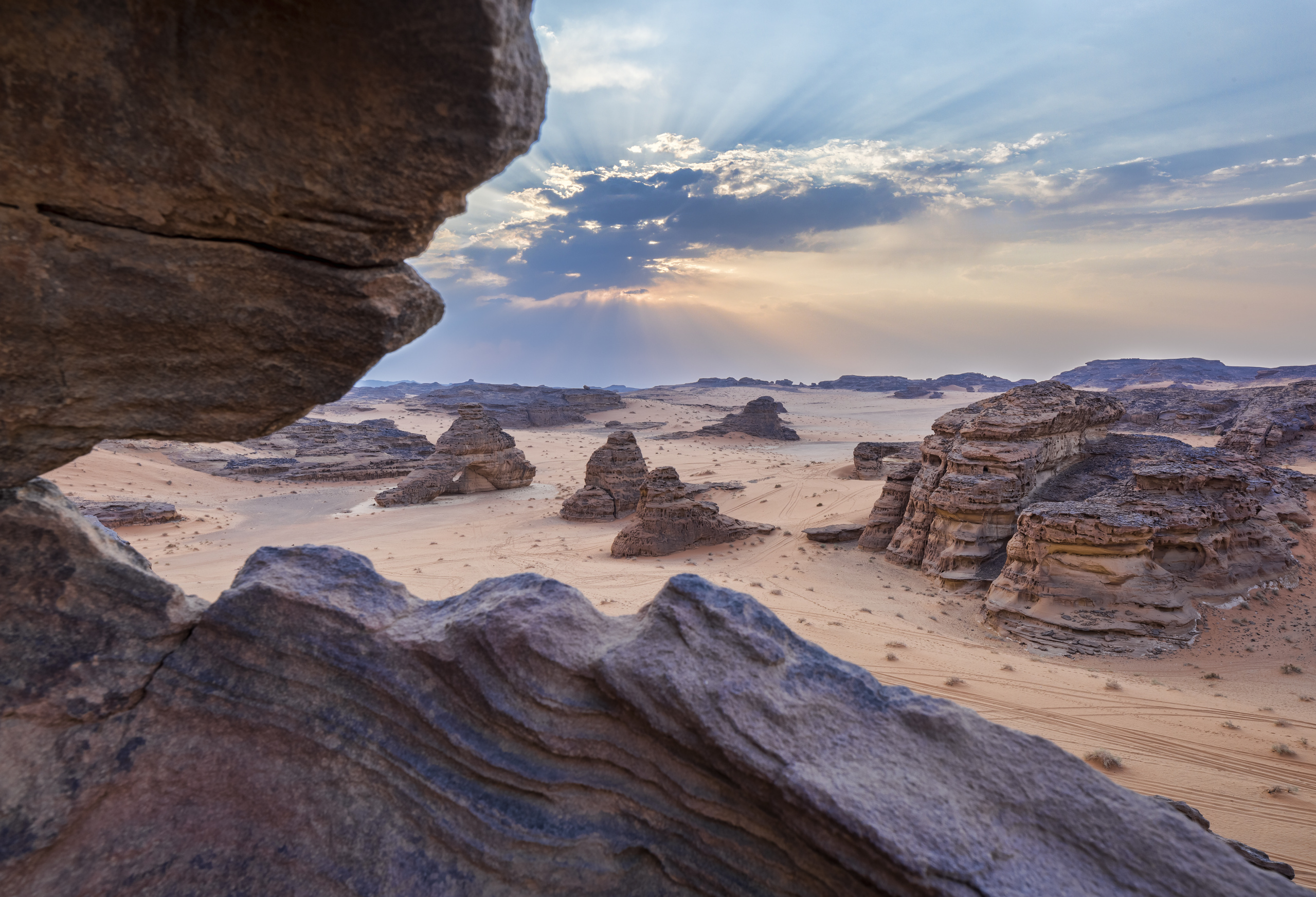 La vaste région d’AlUla couvre une superficie de 22 561 km2 et comprend des oasis et vallées luxuriantes, d’imposantes montagnes de grès et d’anciens sites archéologiques d’exception datant de plusieurs milliers d’années, sous les règnes des Lihyanites et des Nabatéens. Le site le plus connu et renommé d’AlUla est Hegra, le premier site d’Arabie Saoudite inscrit au patrimoine mondial de l’UNESCO. Ancienne ville vaste de 52 hectares, Hegra était la principale ville méridionale du Royaume Nabatéen. Elle comprend plus de 100 tombes extrêmement bien conservées aux façades élaborées et taillées dans les affleurements de grès entourant un village fortifié datant du IIe siècle AC.