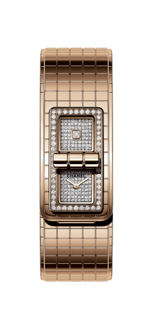 En 2019, CHANEL présente pour la première fois la montre CODE COCO en version OR BEIGE 18 carats, alliage exclusif CHANEL ainsi que des déclinaisons acier et céramique aux cadrans sertis et deux versions Haute Joaillerie.