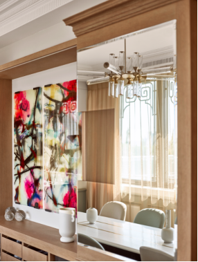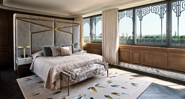 Paris était une muse toute trouvée pour nos décorateurs qui lui ont rendu hommage à travers chaque détail. Vous arriverez au coeur de nuages peints à la main dans le boudoir, qui vous donneront l’impression de vous élever vers les cieux. Ici, le savoir-faire unique des artisans français est à l’honneur. L’incroyable escalier inspiré des branches des arbres du jardin des Tuileries, les broderies Holland & Sherry, le somptueux mobilier Laval et les interrupteurs Meljac en sont la parfaite illustration. Les oeuvres colorées de l’artiste Carole Benzaken complètent magnifiquement le tableau. Les menuiseries en chêne pour leur part proviennent des Ateliers Perrault tandis que la Maison Lucien Gau signe les sublimes chandeliers qui contribuent à l’atmosphère chaleureuse de la suite. La majestueuse salle de bains en marbre n’est pas en reste. Dans ce large espace baigné de lumière, de grandes baies vitrées offrent une vue imprenable sur Montmartre et le Sacré-cœur.