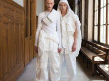 This collection focuses on rearranging different elements of clothing.