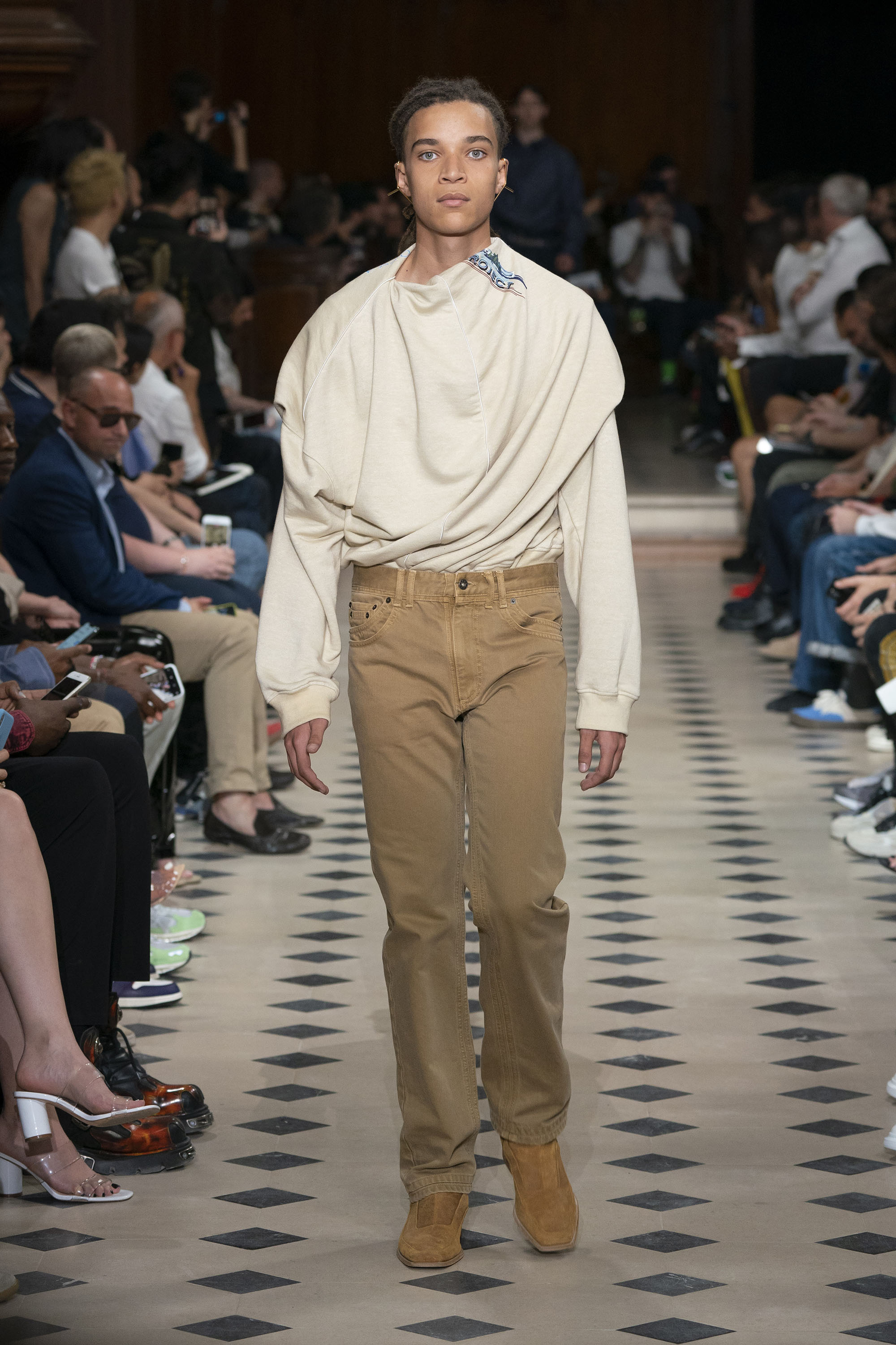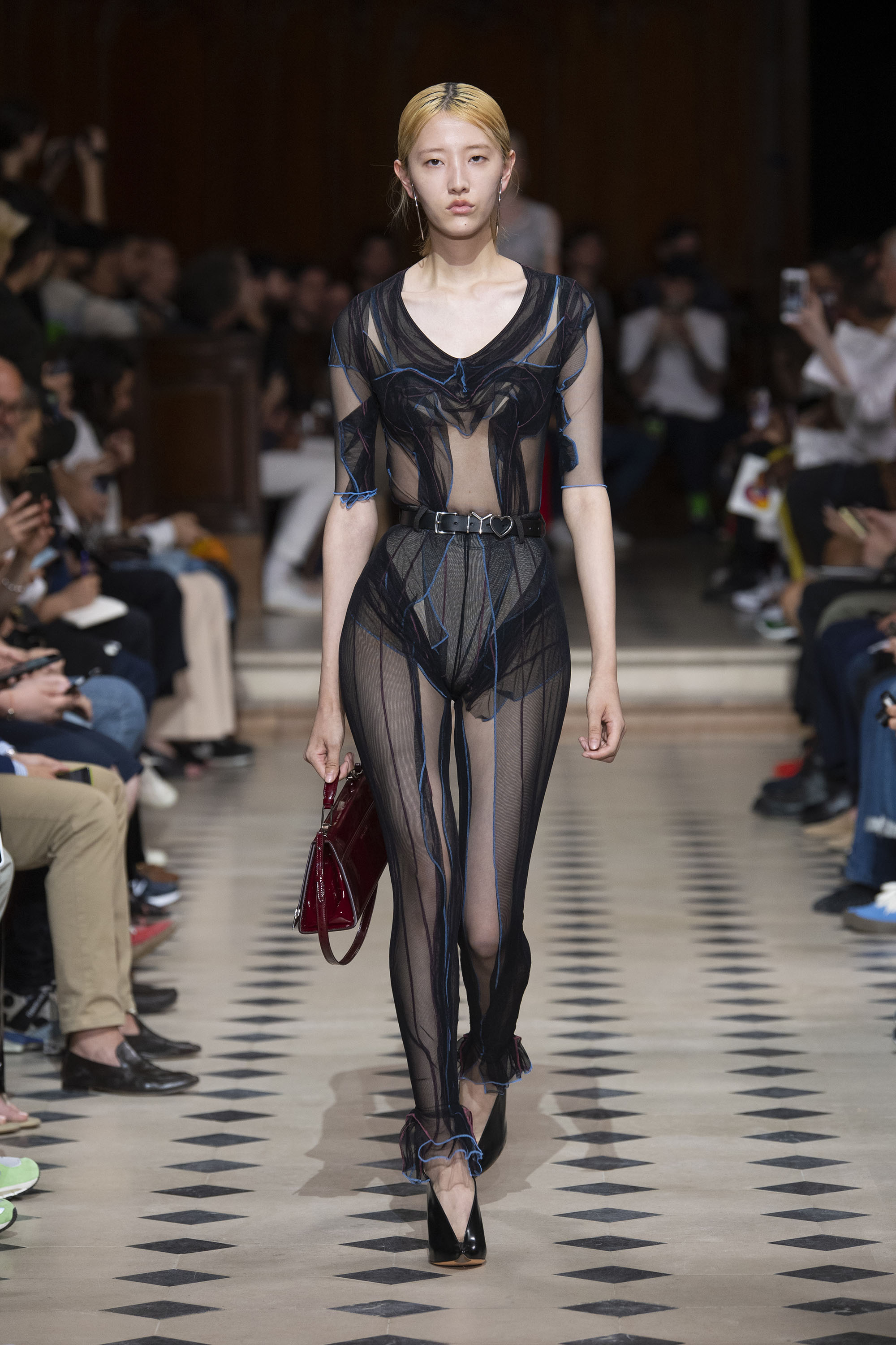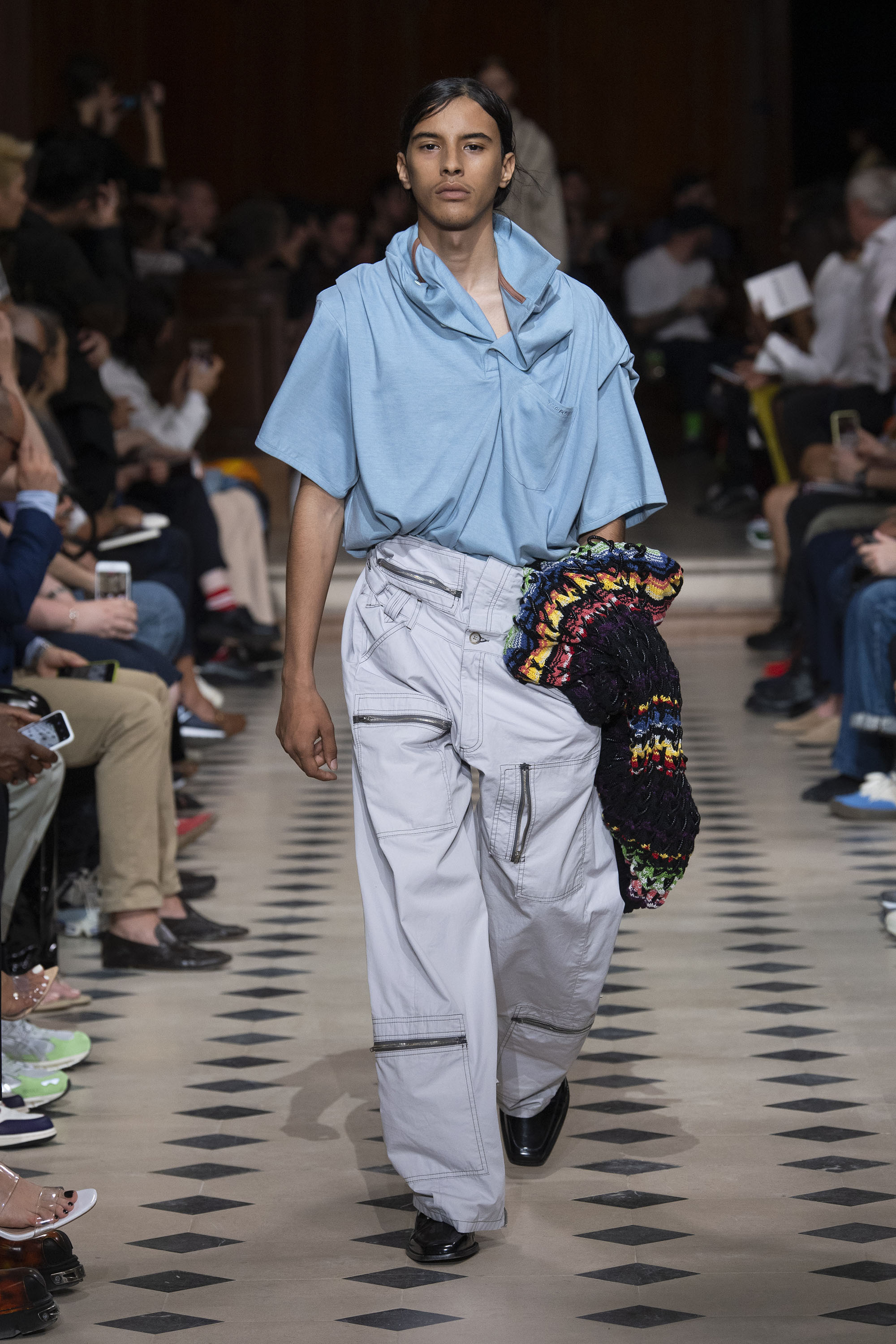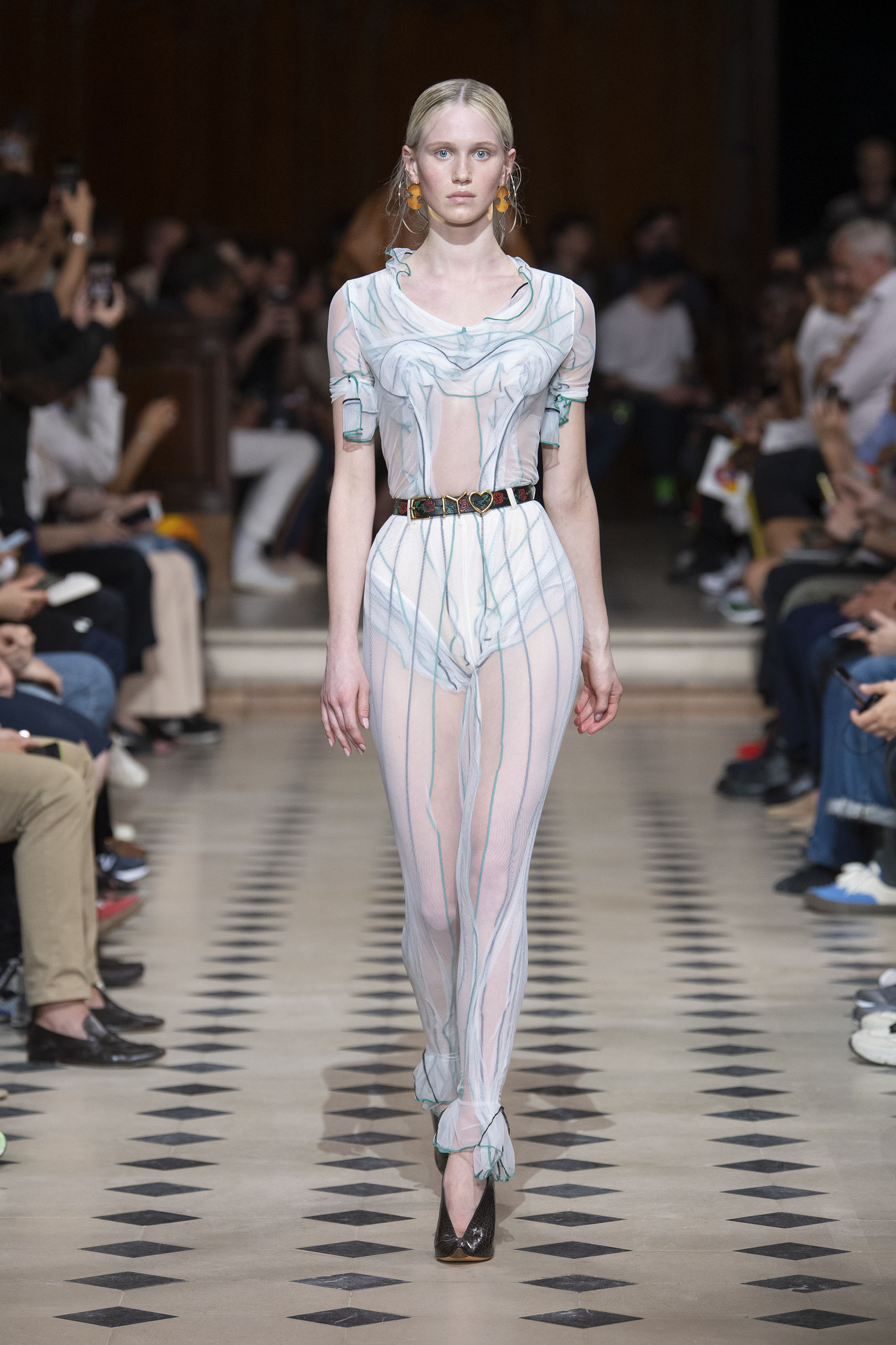 La créativité sans borne de Glenn Martens prend vie dans un défilé irrigué par des inspirations fluides, où les références éclectiques se mélangent et deviennent hybrides.