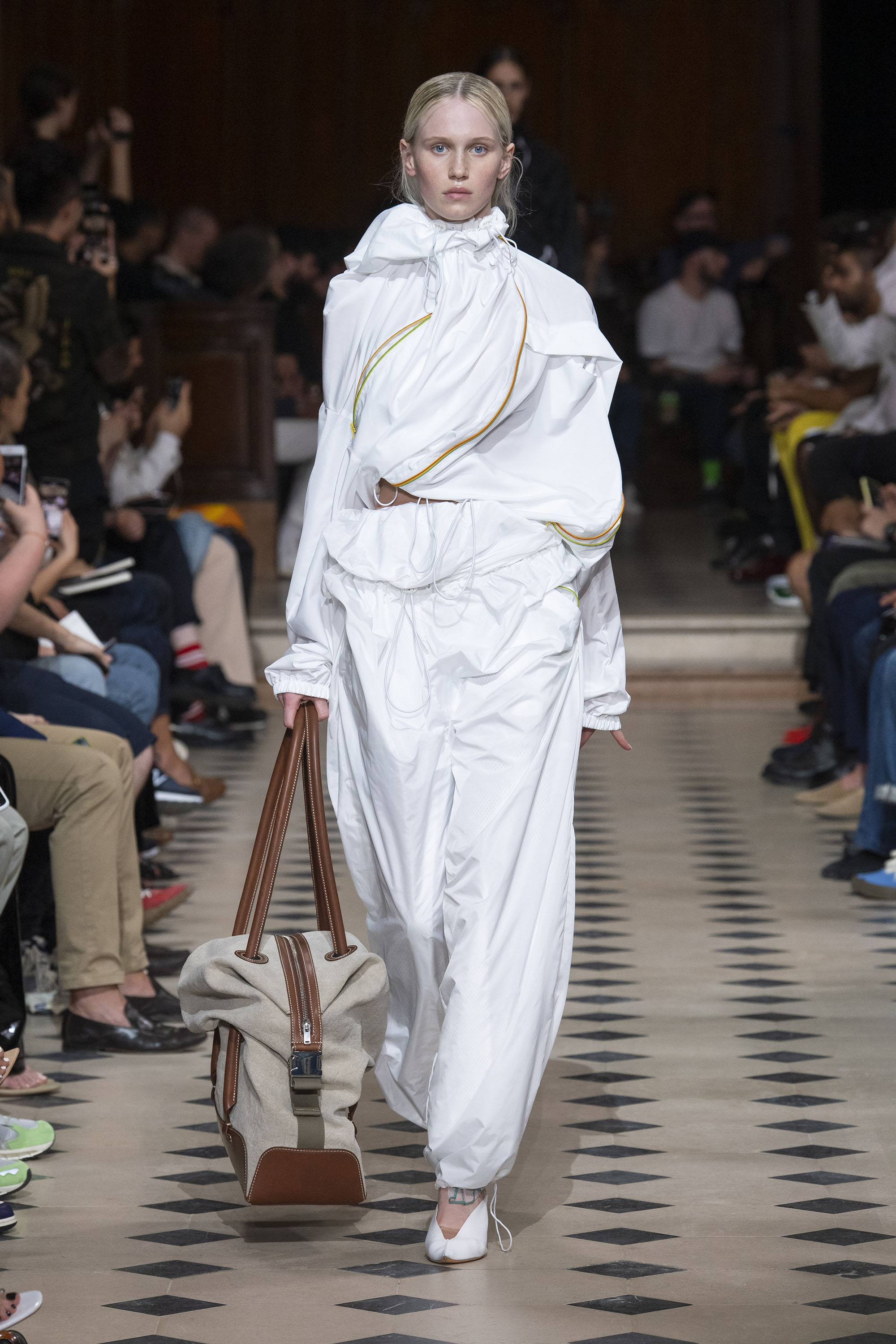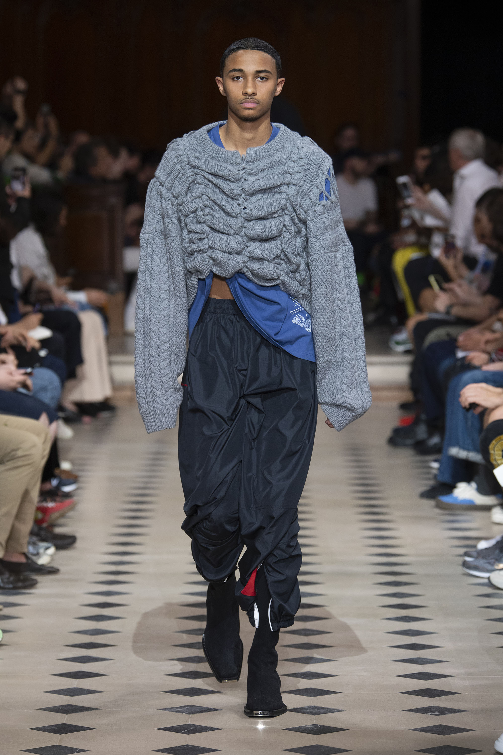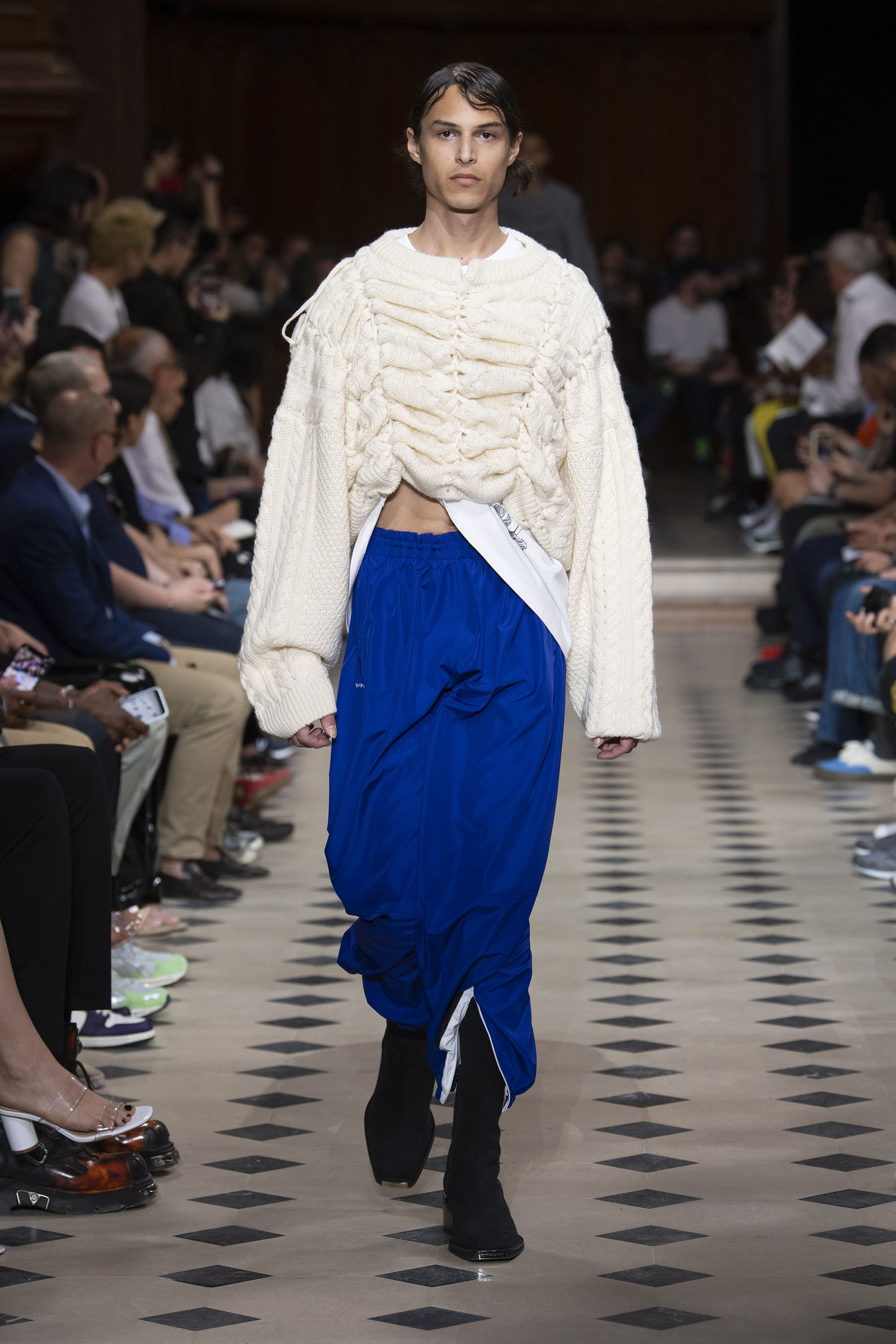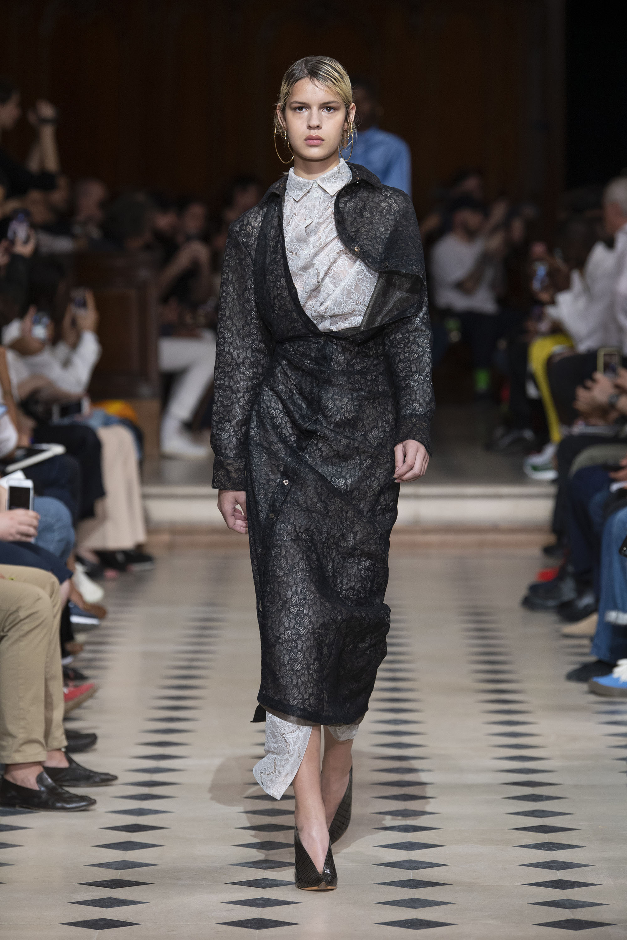 La créativité sans borne de Glenn Martens prend vie dans un défilé irrigué par des inspirations fluides, où les références éclectiques se mélangent et deviennent hybrides.