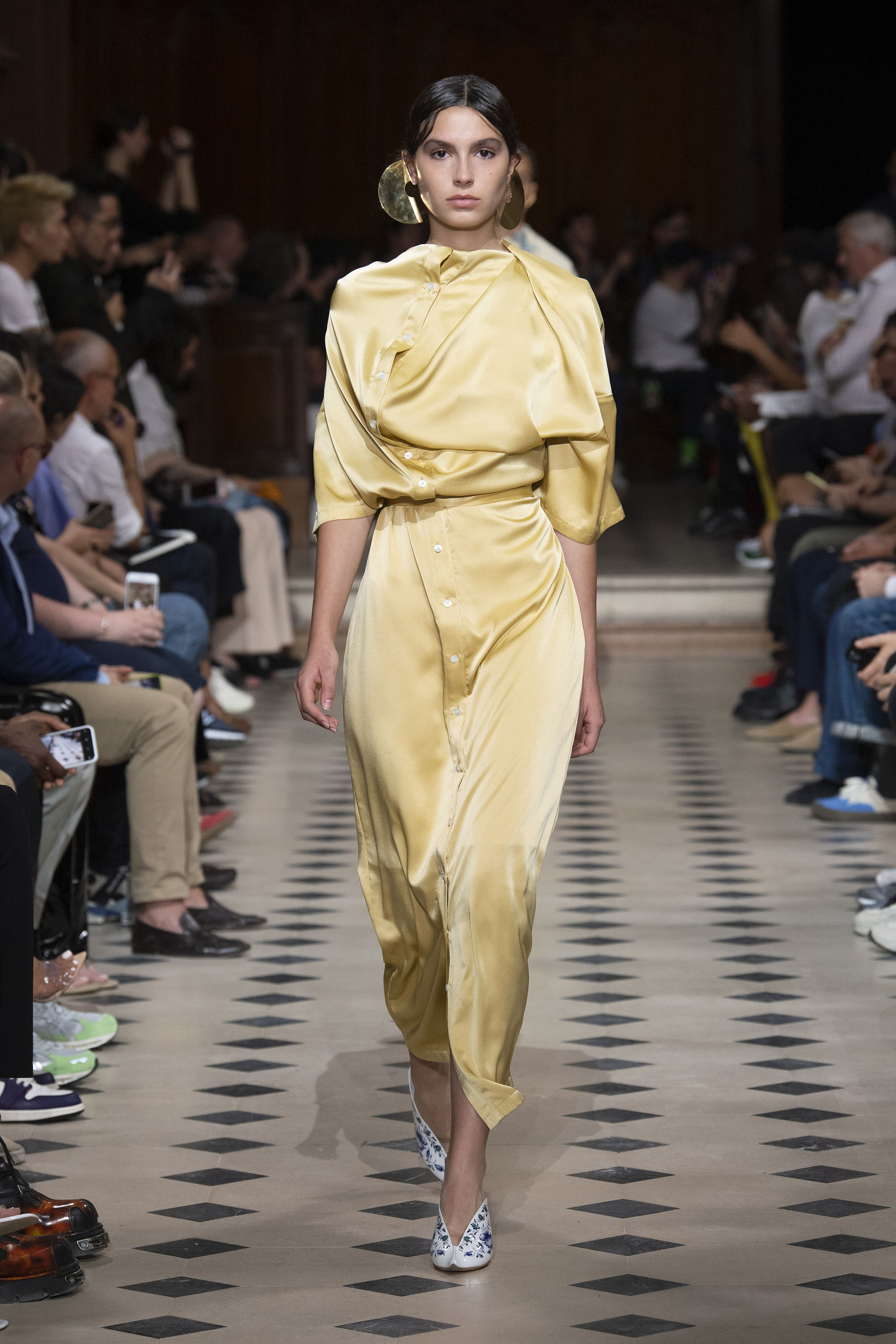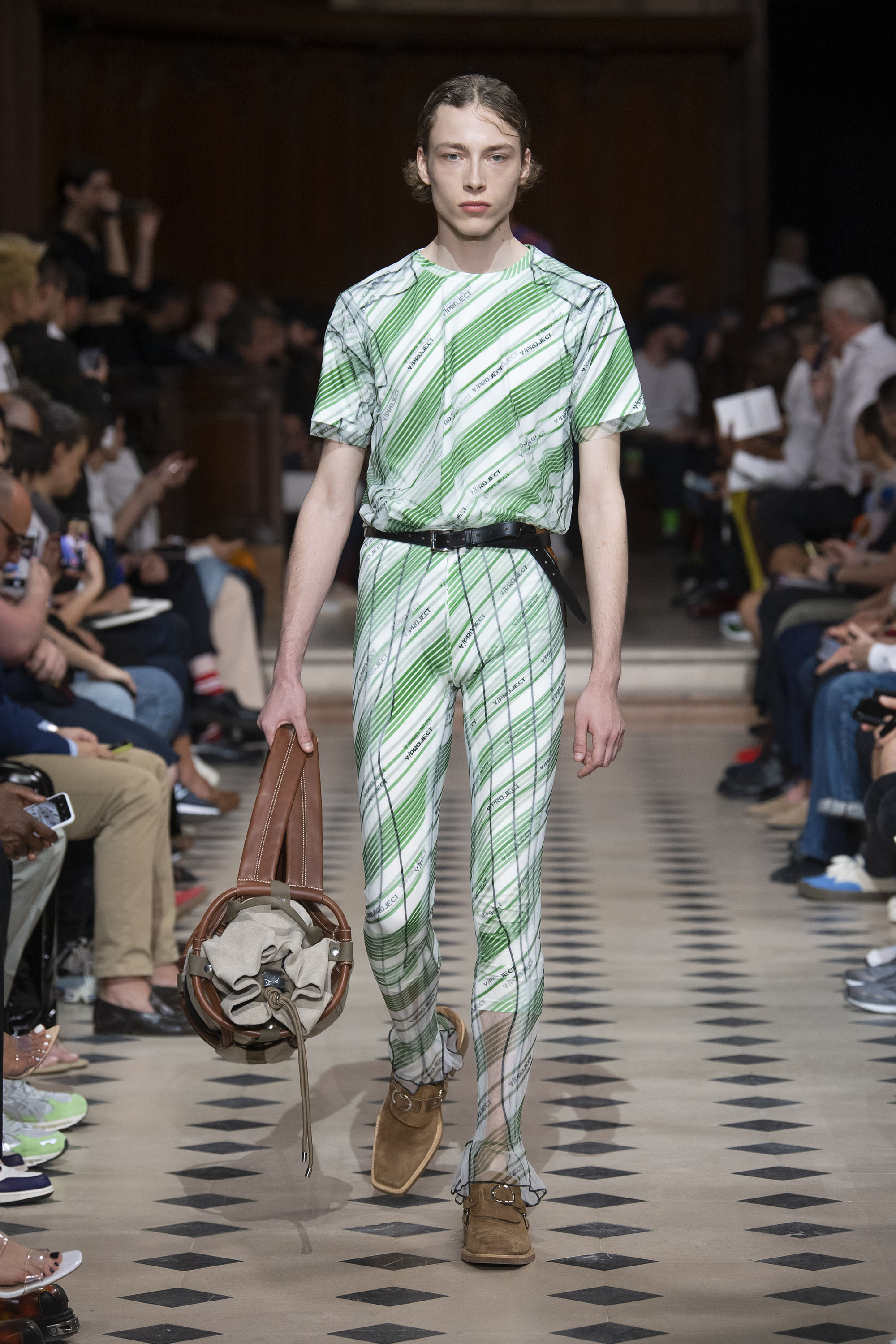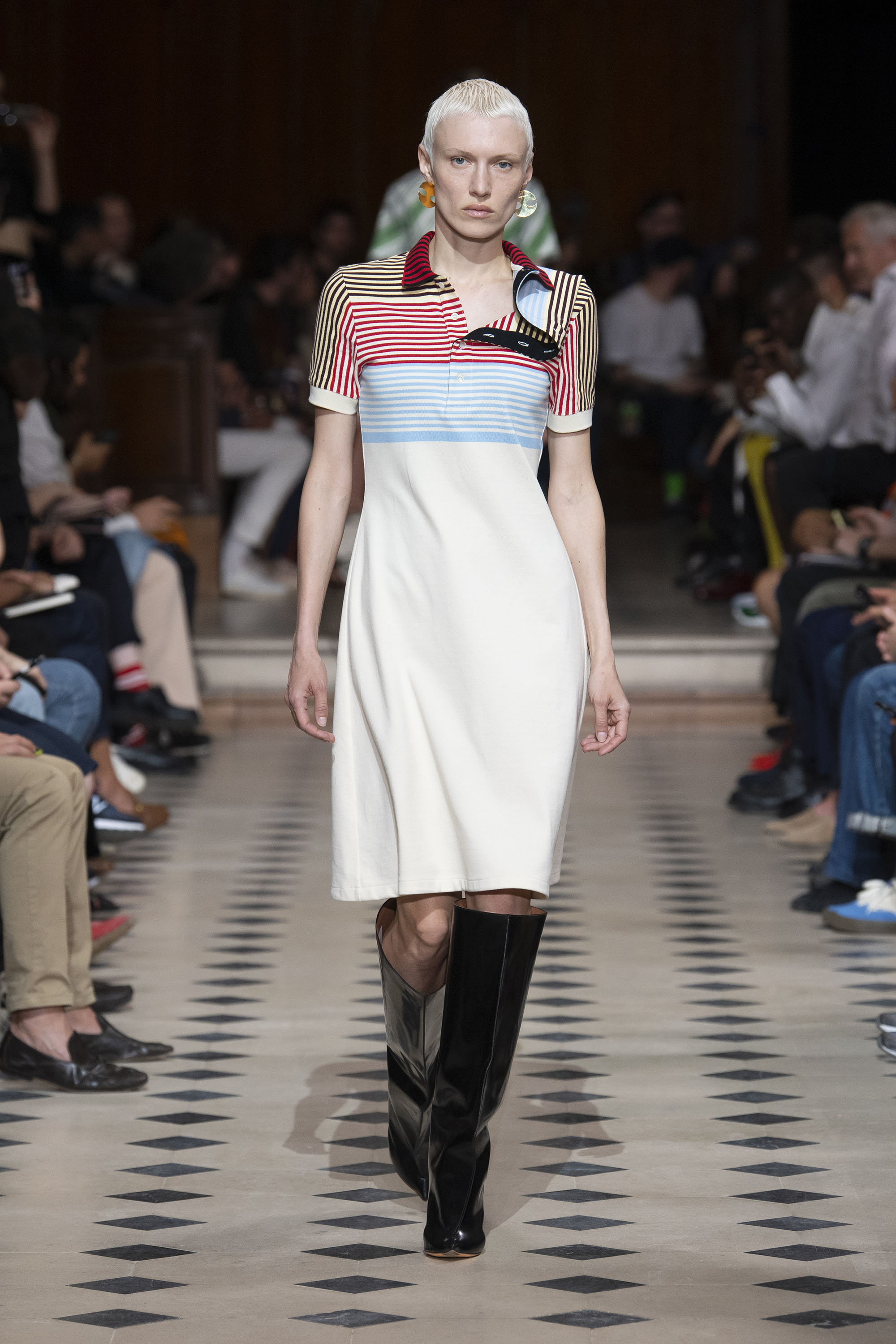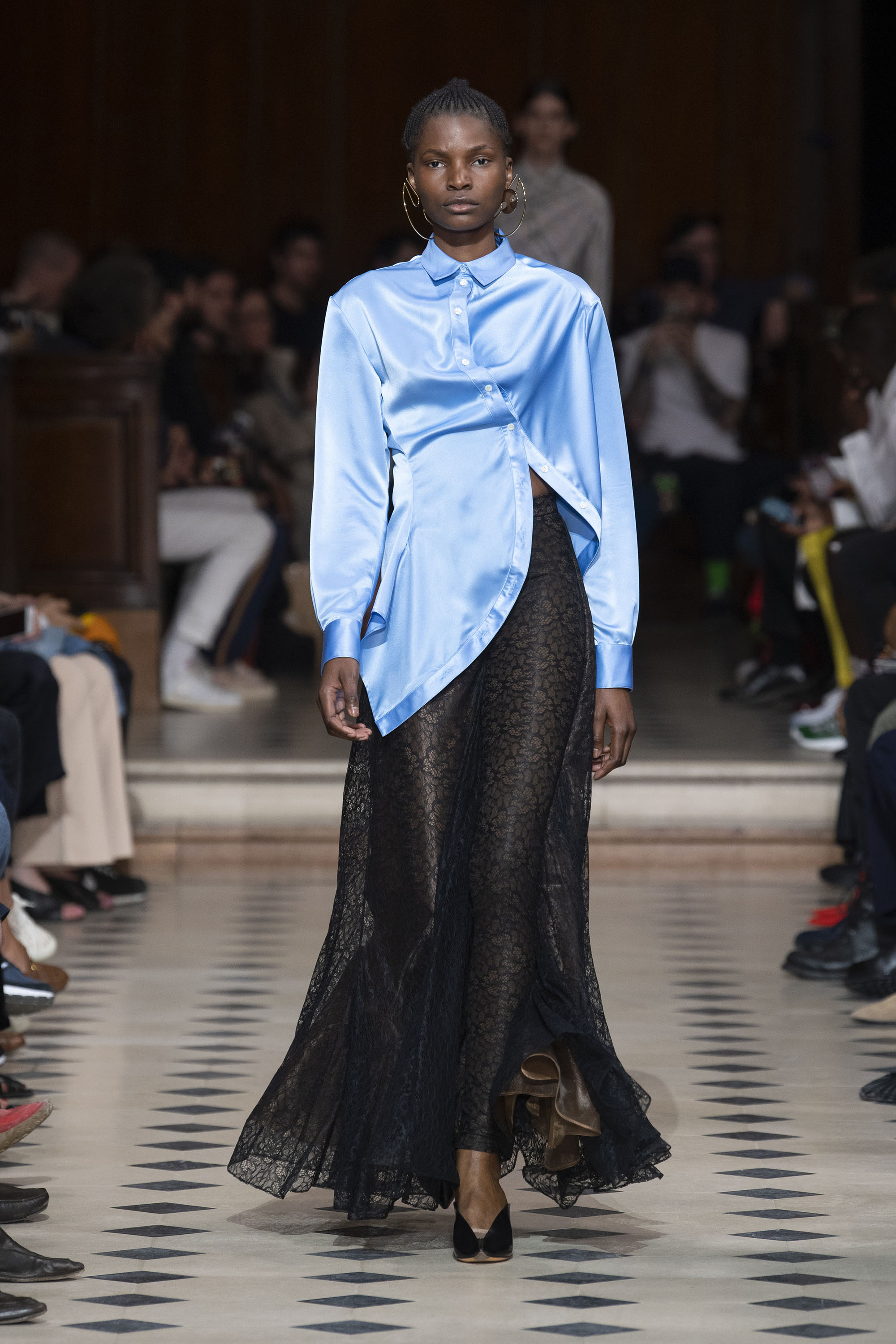 La créativité sans borne de Glenn Martens prend vie dans un défilé irrigué par des inspirations fluides, où les références éclectiques se mélangent et deviennent hybrides.