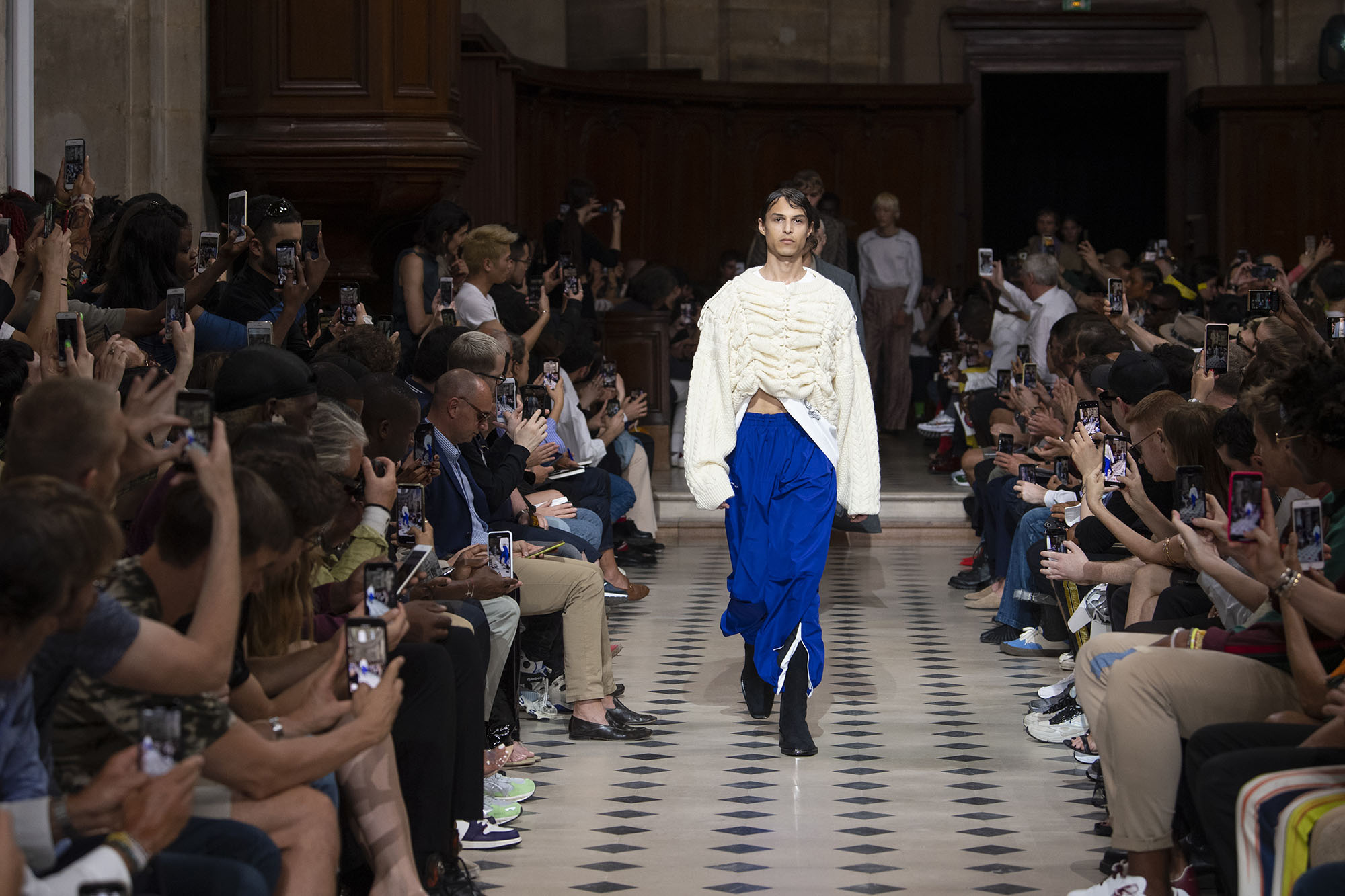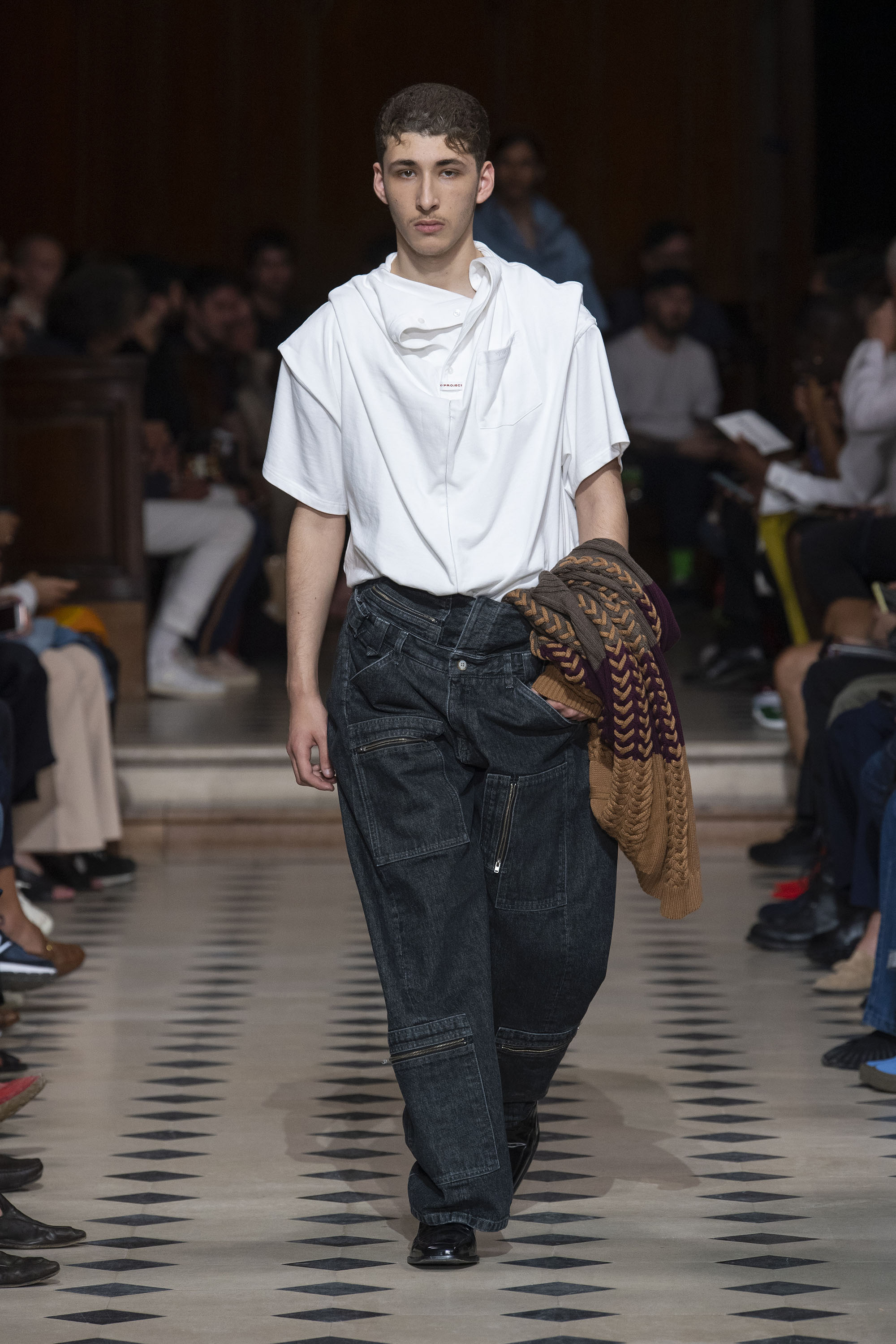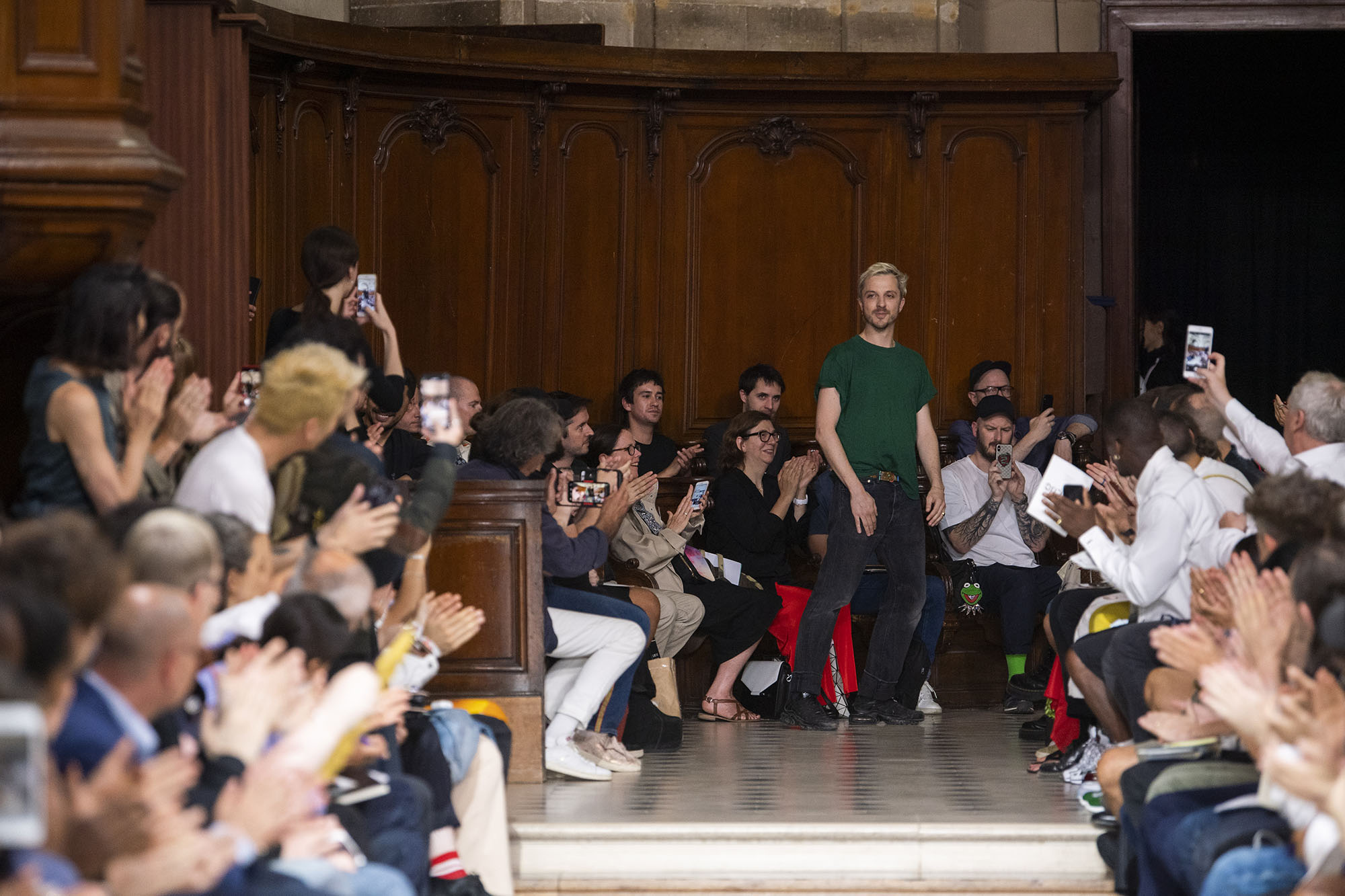Sous la nef du Temple de l’Oratoire du Louvre, Glenn Martens pousse toujours plus loin la démarche déconstructiviste de Y/PROJECT comme outil d’expression individuelle.