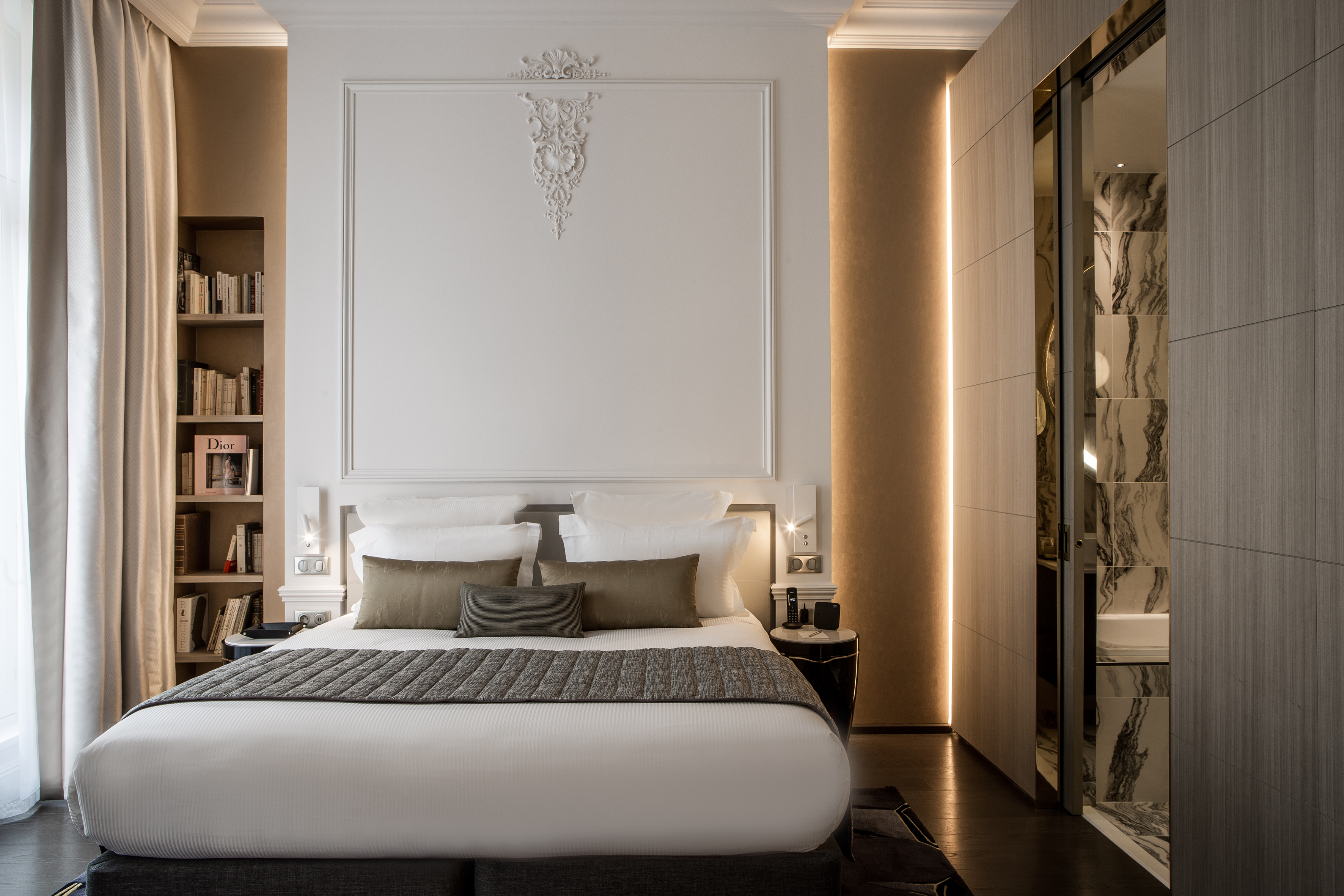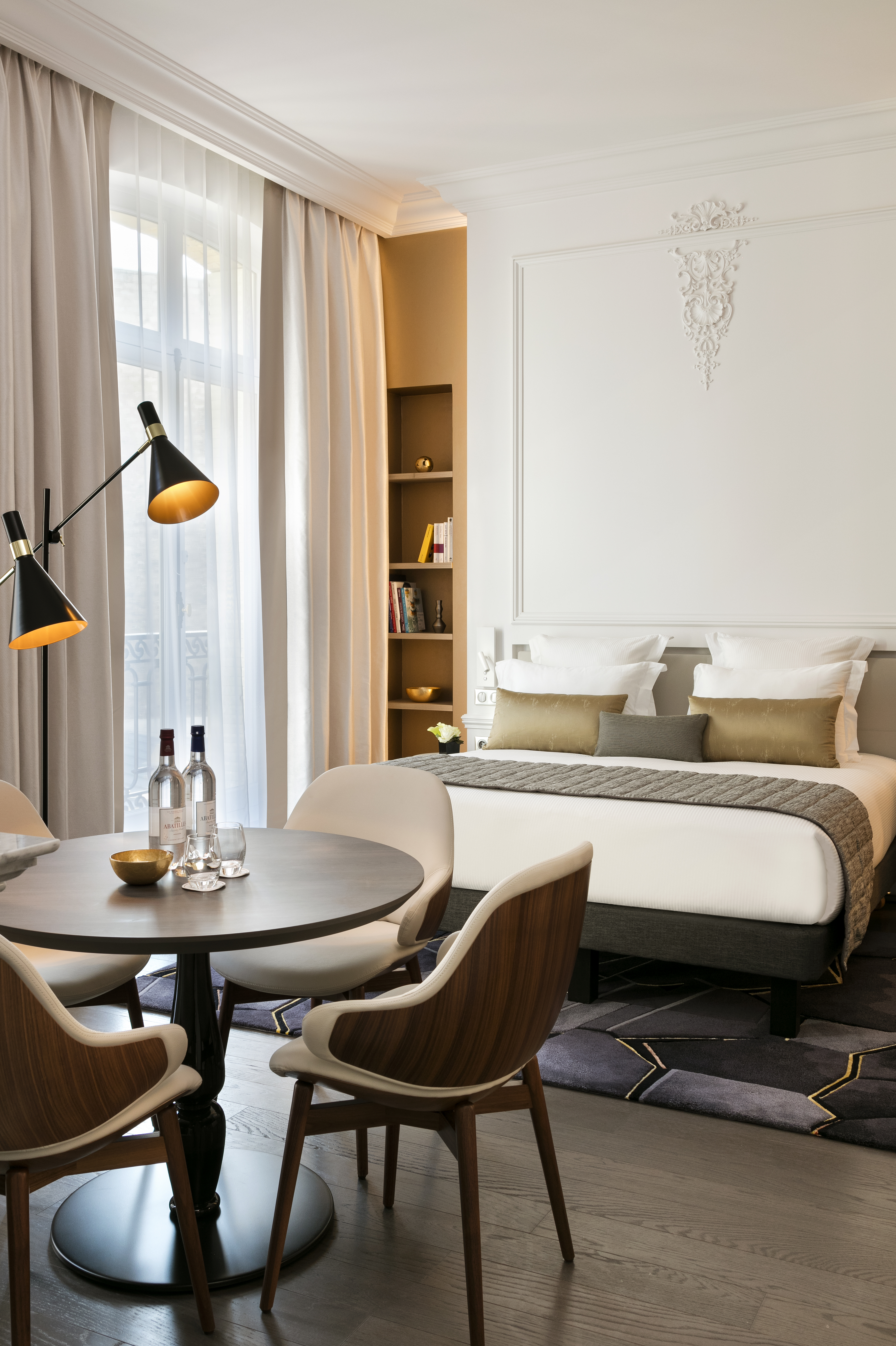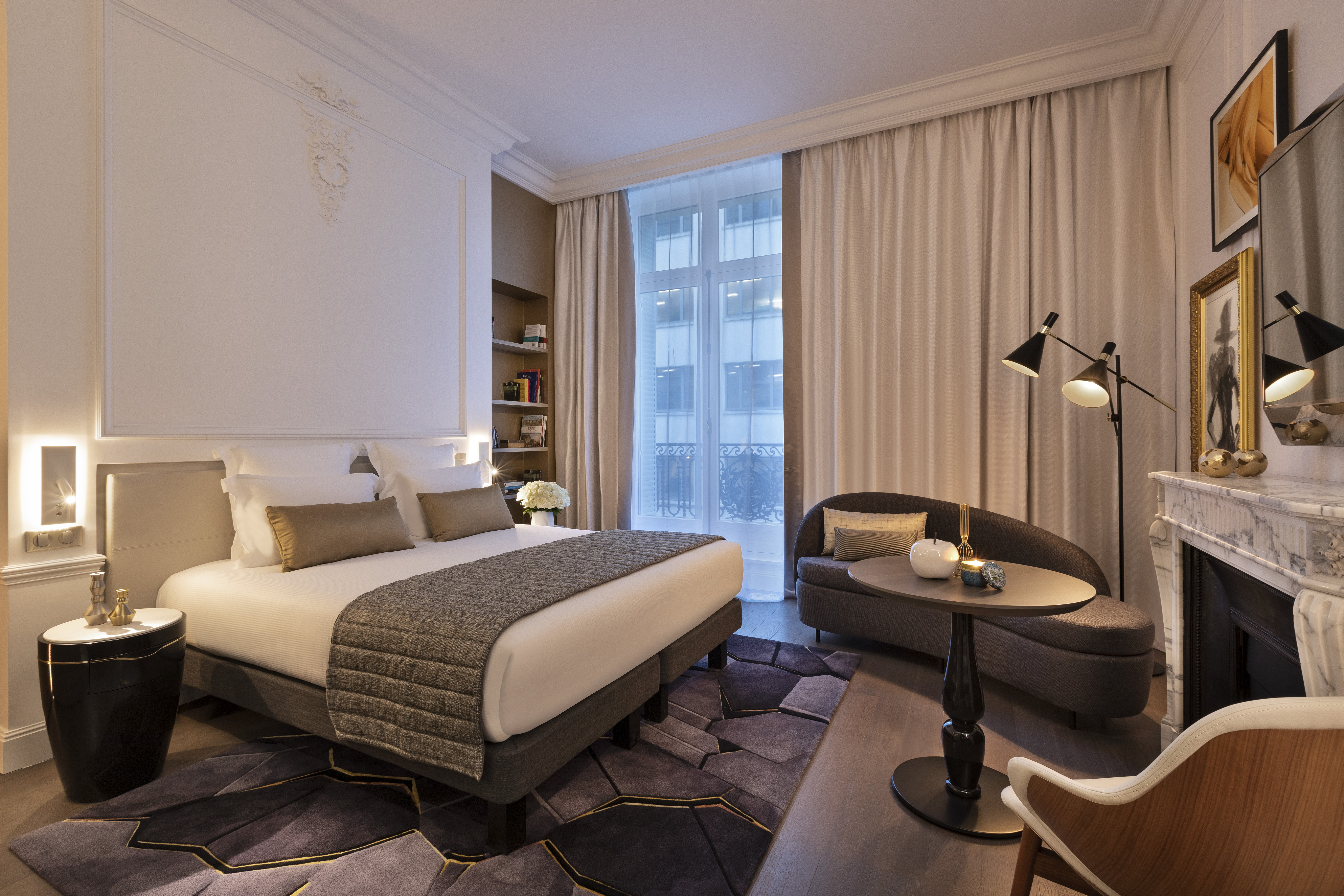 Tout au long de ce projet, Jean-Philippe Nuel a mis un point d’honneur à mettre en valeur le patrimoine architectural de cet immeuble. Pour être en phase avec les codes actuels, et offrir un juste équilibre entre contemporain et traditionnel, le Studio a accordé une attention toute particulière aux détails. « Sublimer les éléments historiques dans les parties communes et renouveler les codes de l’hôtellerie pour offrir une expérience de séjour unique dans les espaces de nuit, tel fût notre crédo sur ce projet » raconte Jean-Philippe Nuel.