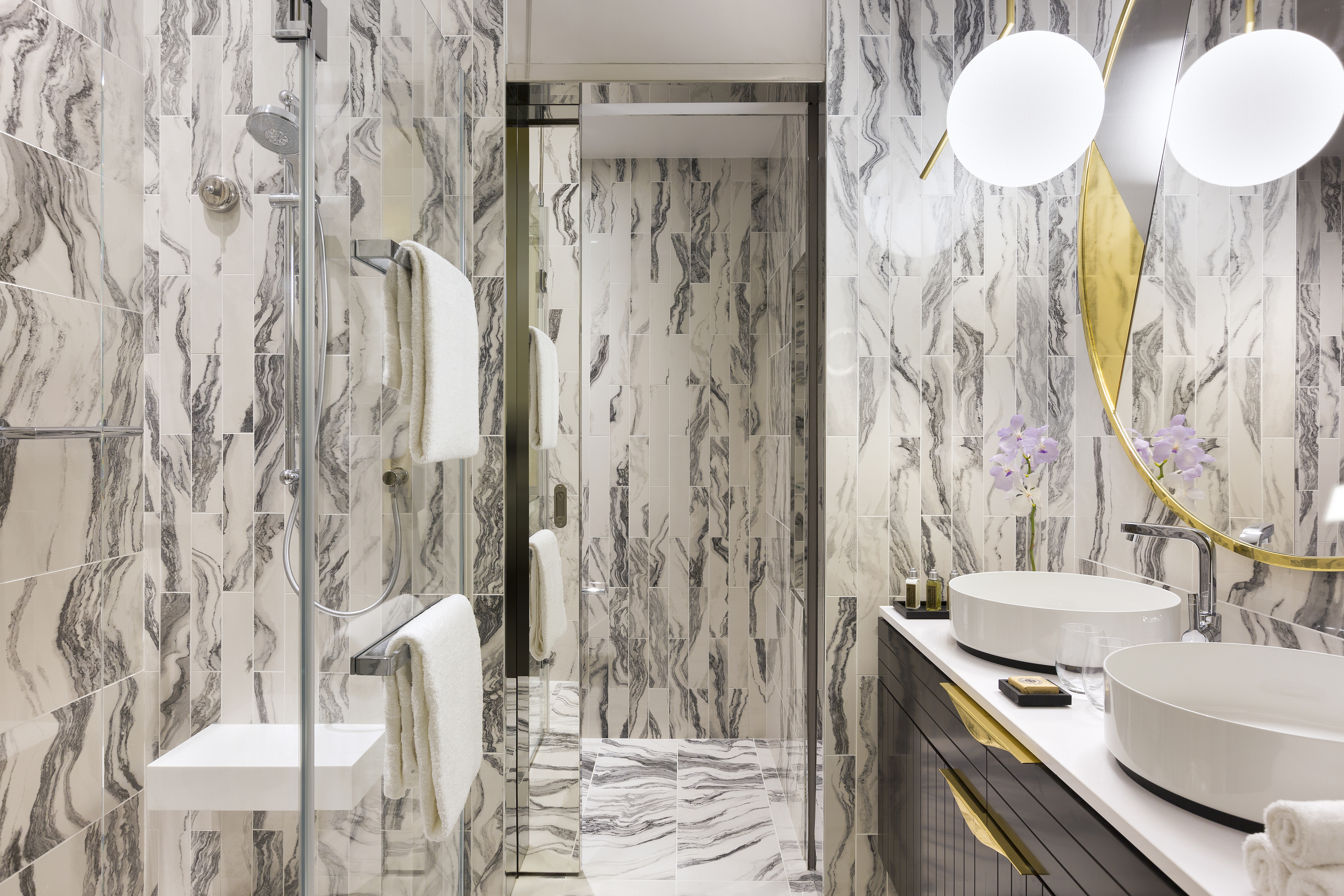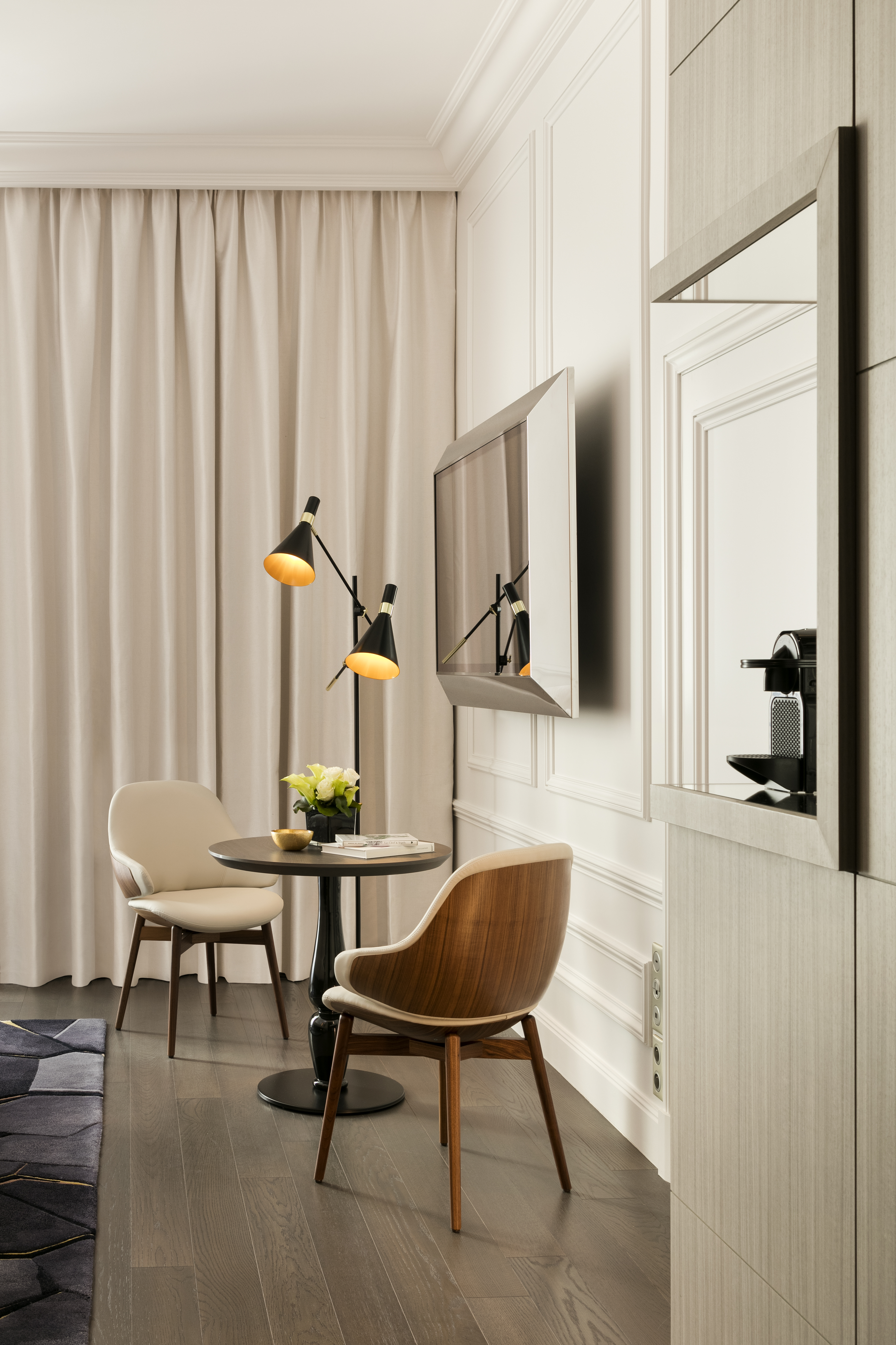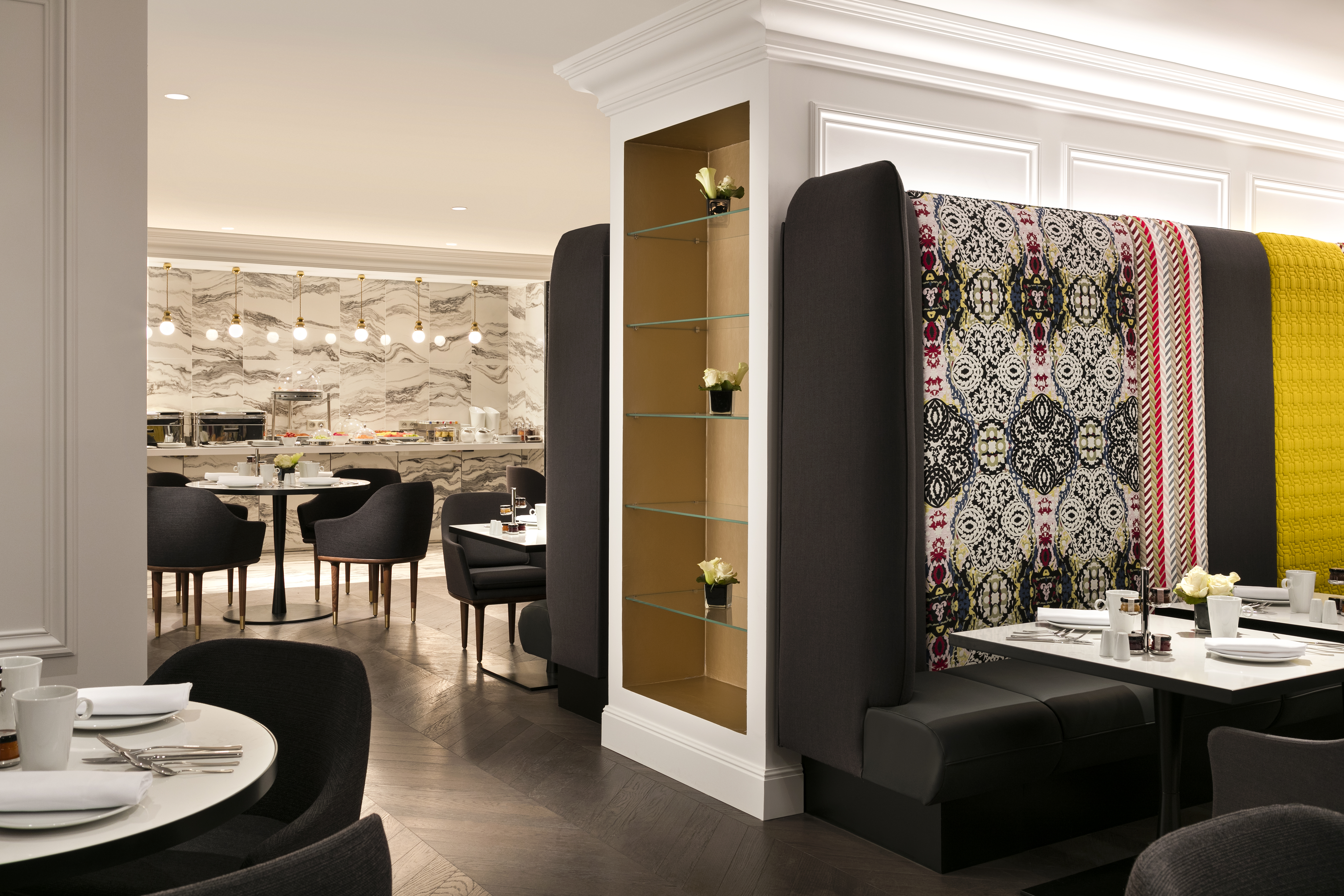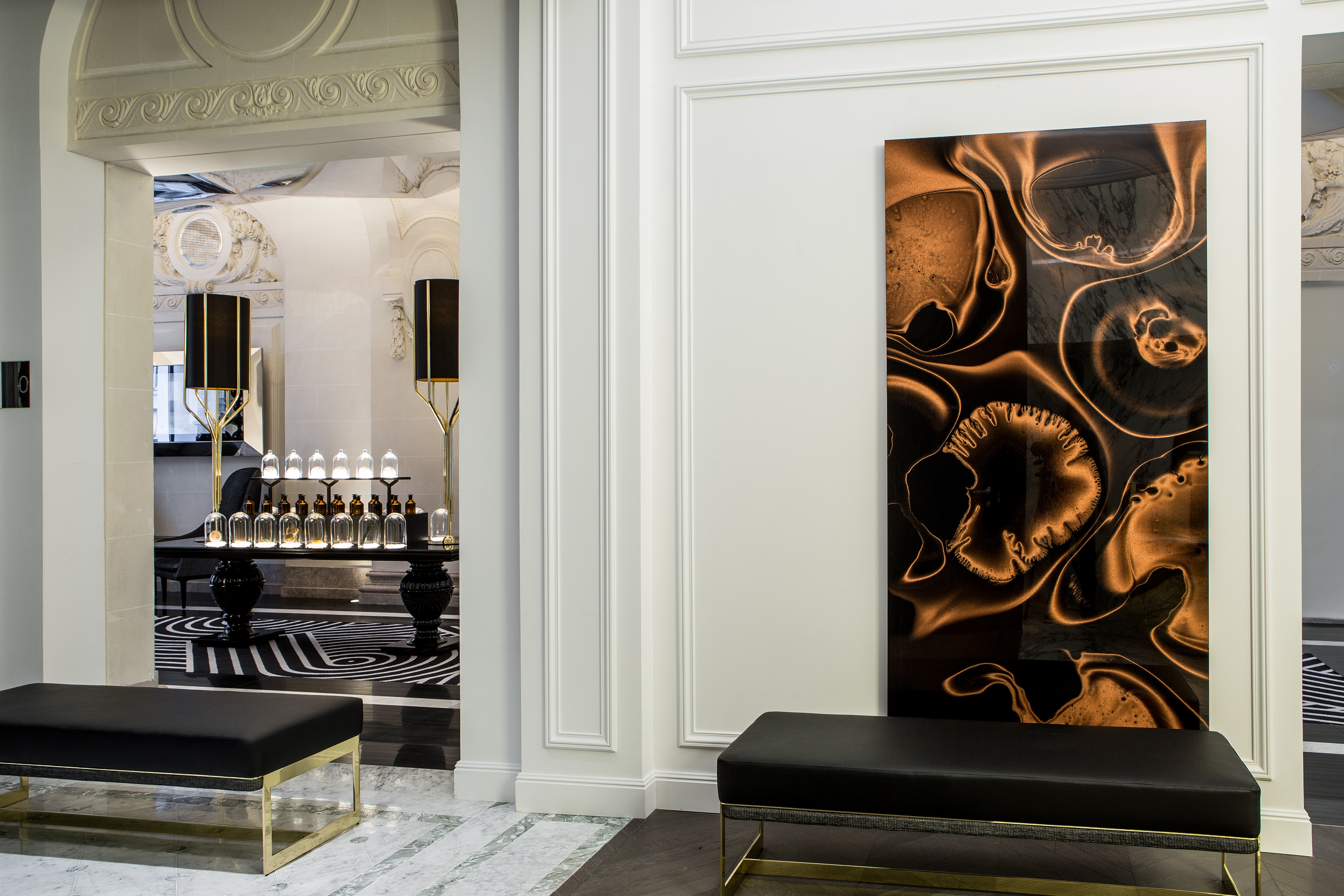 Tout au long de ce projet, Jean-Philippe Nuel a mis un point d’honneur à mettre en valeur le patrimoine architectural de cet immeuble. Pour être en phase avec les codes actuels, et offrir un juste équilibre entre contemporain et traditionnel, le Studio a accordé une attention toute particulière aux détails. « Sublimer les éléments historiques dans les parties communes et renouveler les codes de l’hôtellerie pour offrir une expérience de séjour unique dans les espaces de nuit, tel fût notre crédo sur ce projet » raconte Jean-Philippe Nuel.