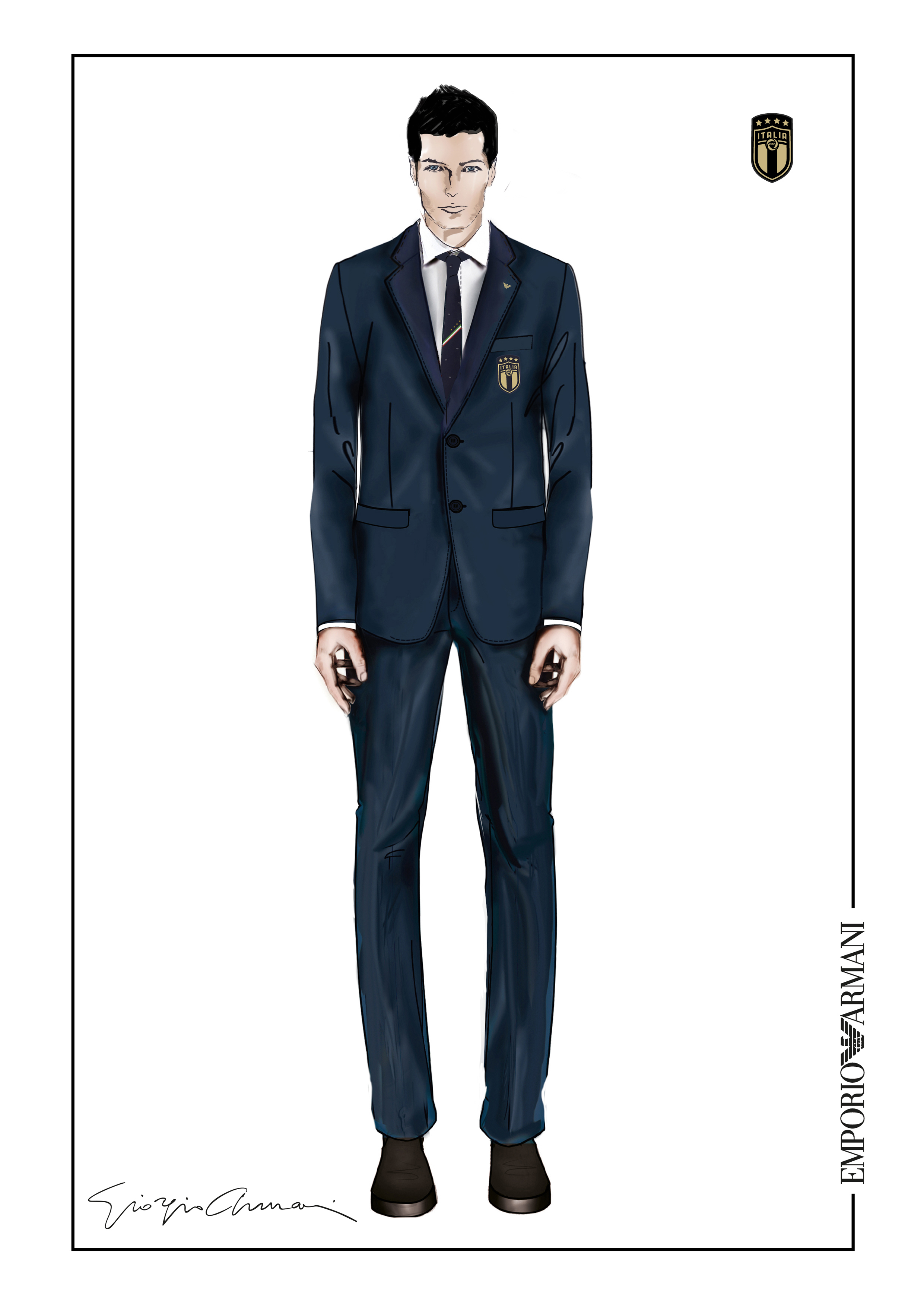 Les uniformes de l’équipe nationale Italienne seront désormais Emporio Armani et seront composés d’un costume assorti d’une chemise et d’un pardessus. Dans le style Armani, l’uniforme sera formel mais confortable: le jersey étant le premier choix de par sa praticité. Les vêtements d’extérieur peuvent être portés pendant toutes les saisons grâce aux doublures détachables. Toutes les pièces sont frappées de l’écusson de la FIGC. L’uniforme comprend les chaussures et les accessoires tels qu’un sac kit, un sac à dos, une ceinture, de la petite maroquinerie et des lunettes Emporio Armani.