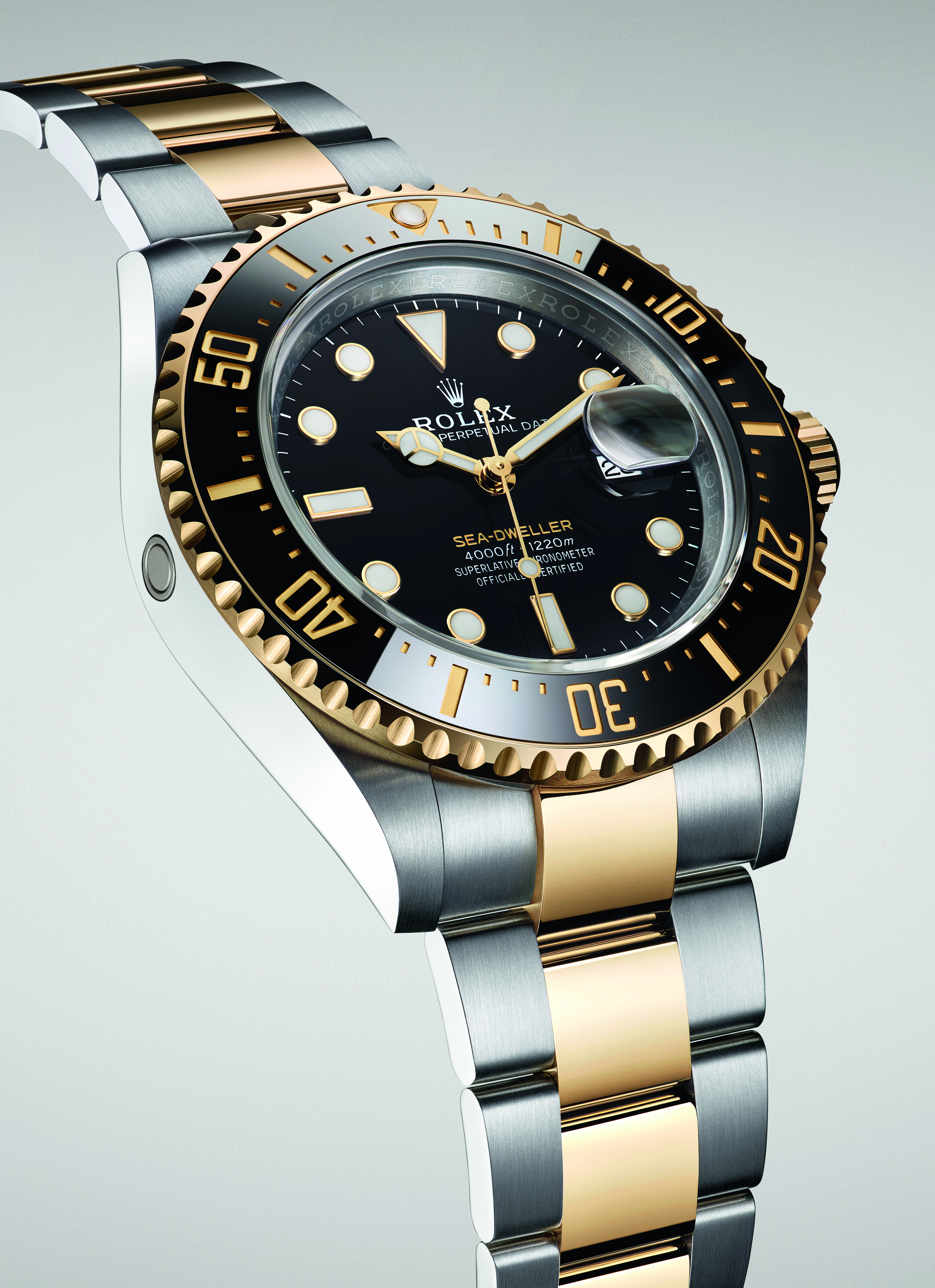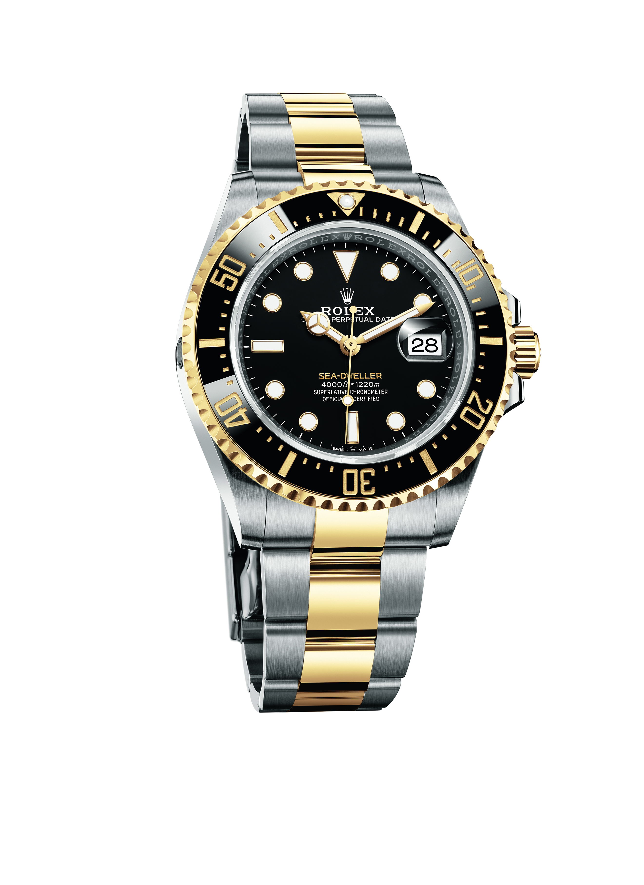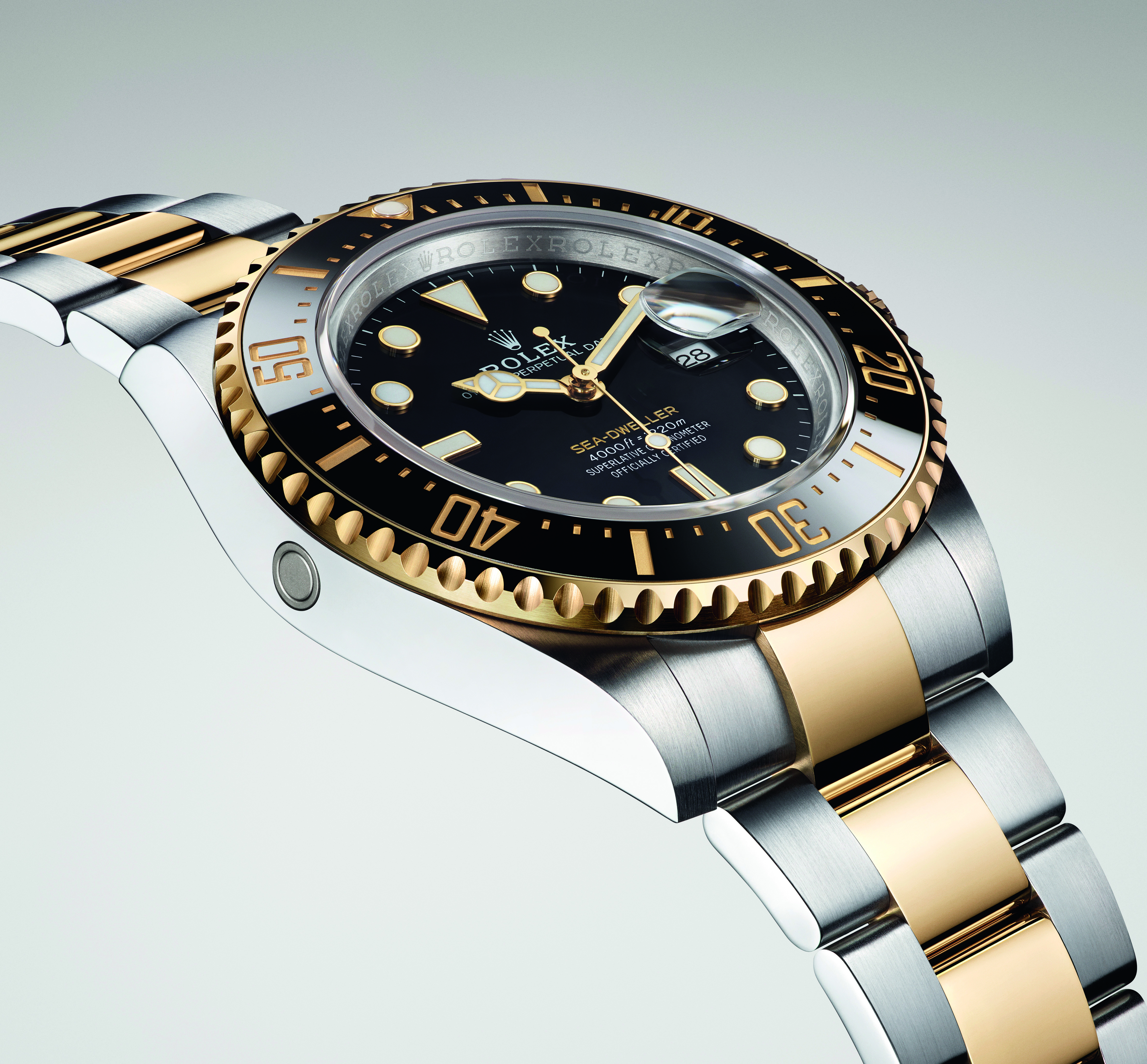 SEA-DWELLER L’Oyster Perpetual Sea-Dweller, dotée du calibre de nouvelle génération 3235, est pour la première fois proposée en version Rolesor jaune.