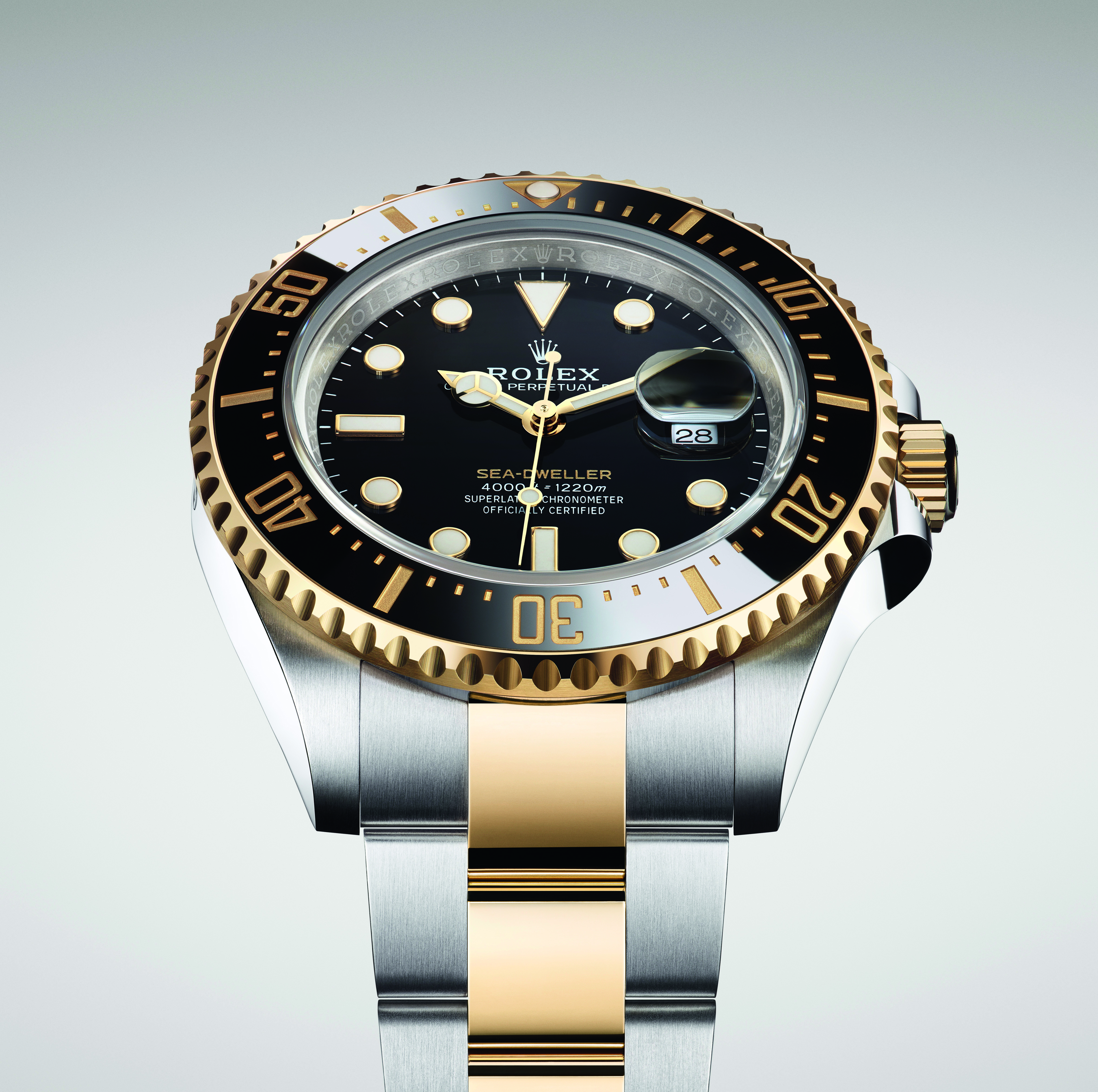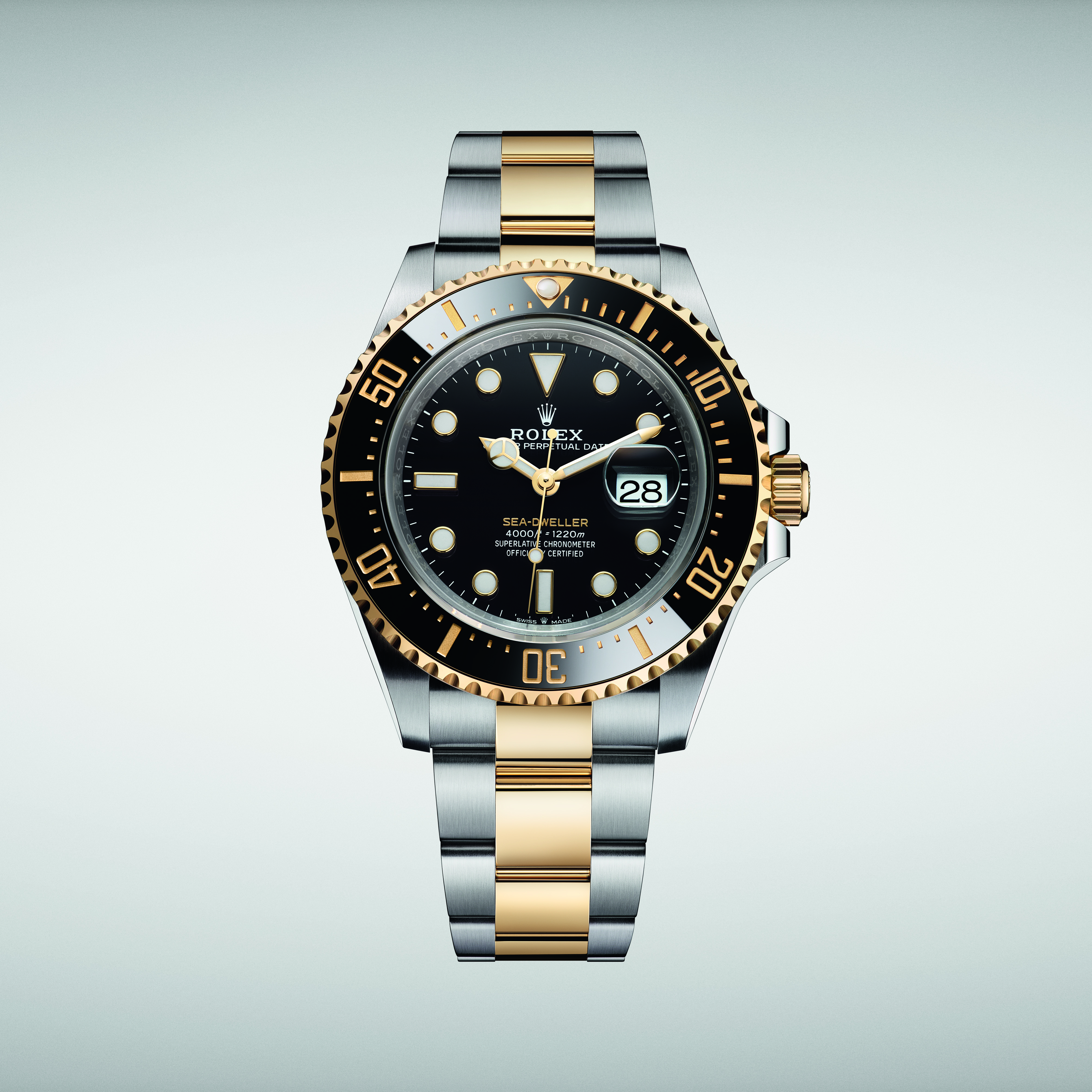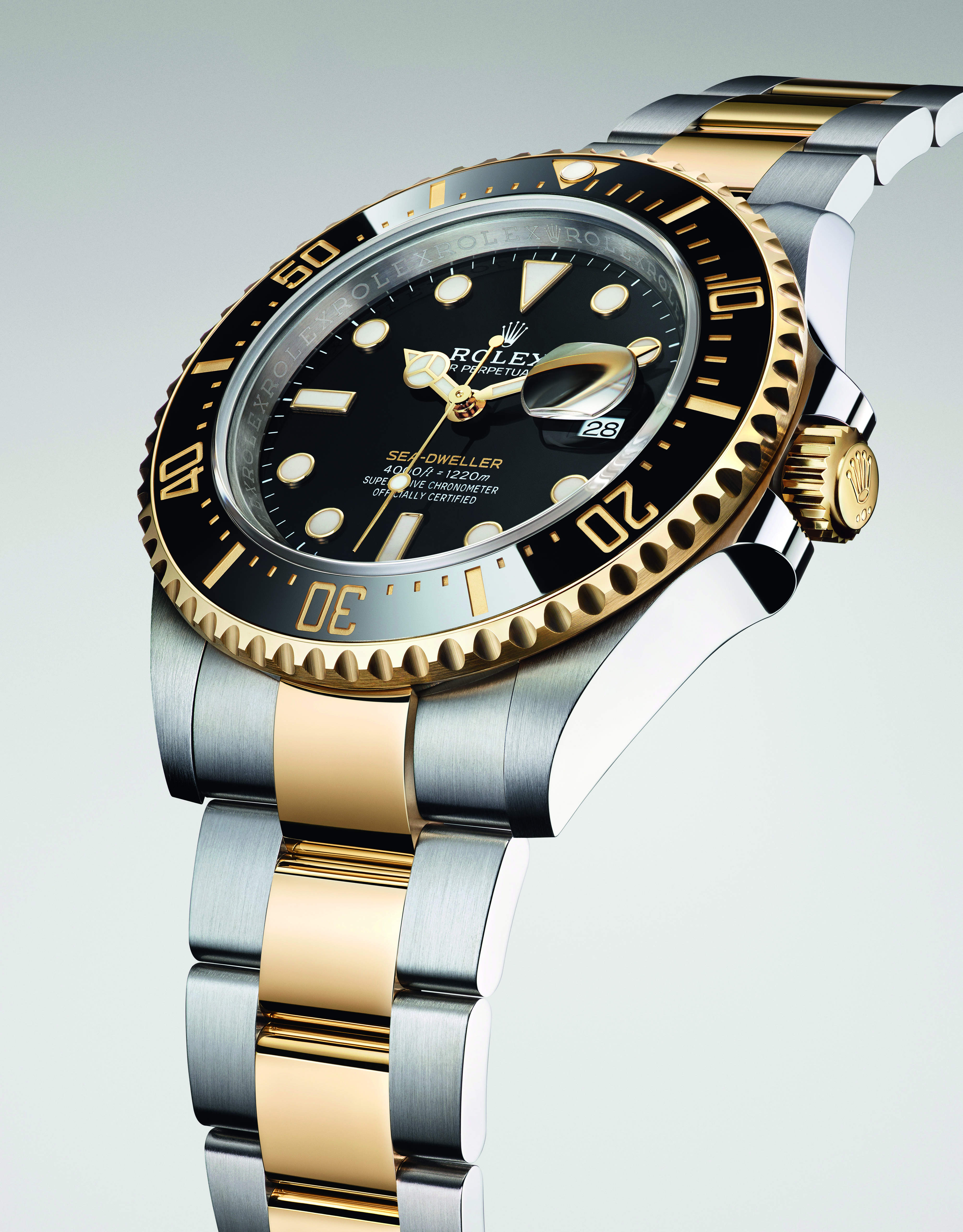 SEA-DWELLER L’Oyster Perpetual Sea-Dweller, dotée du calibre de nouvelle génération 3235, est pour la première fois proposée en version Rolesor jaune.