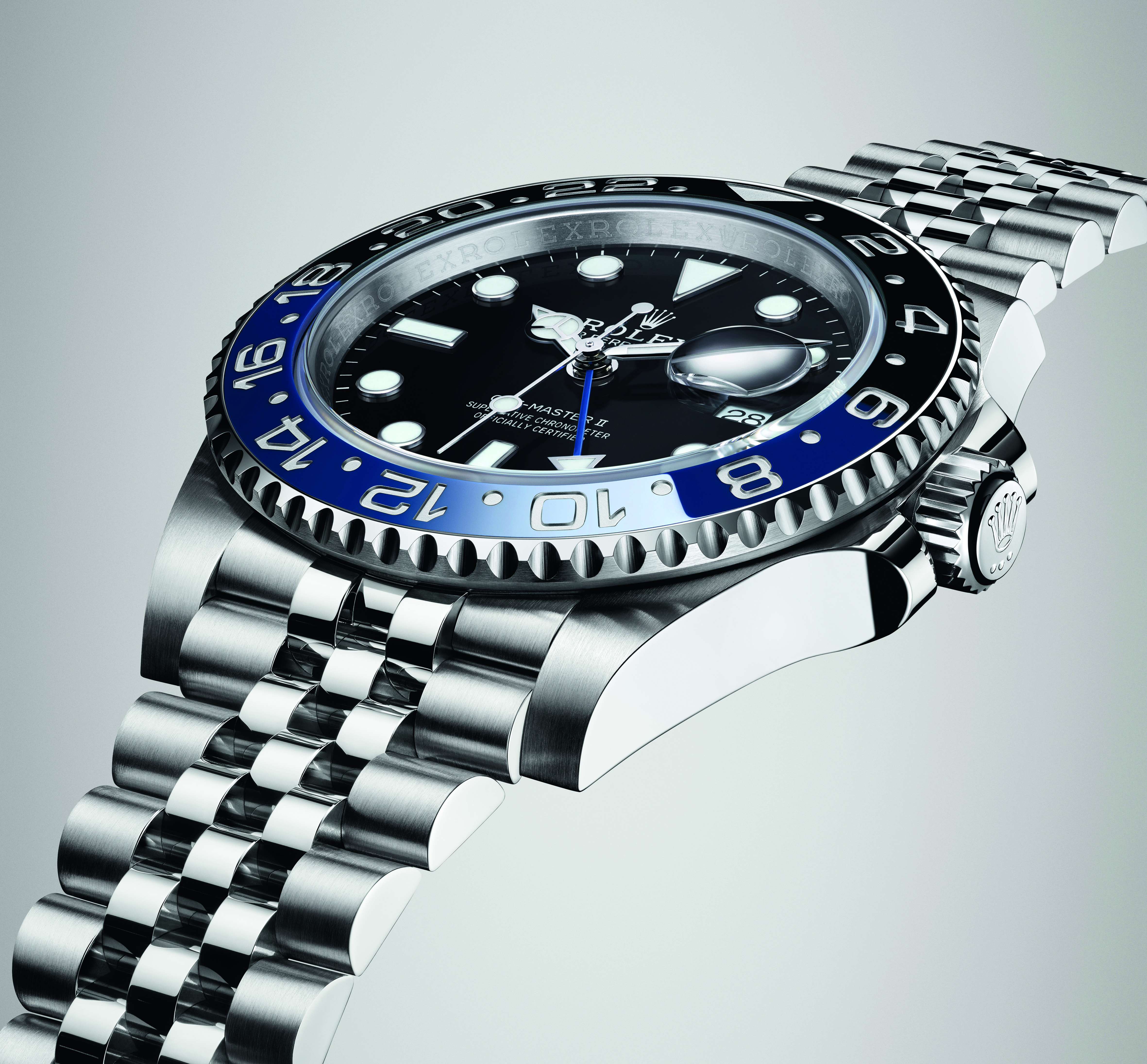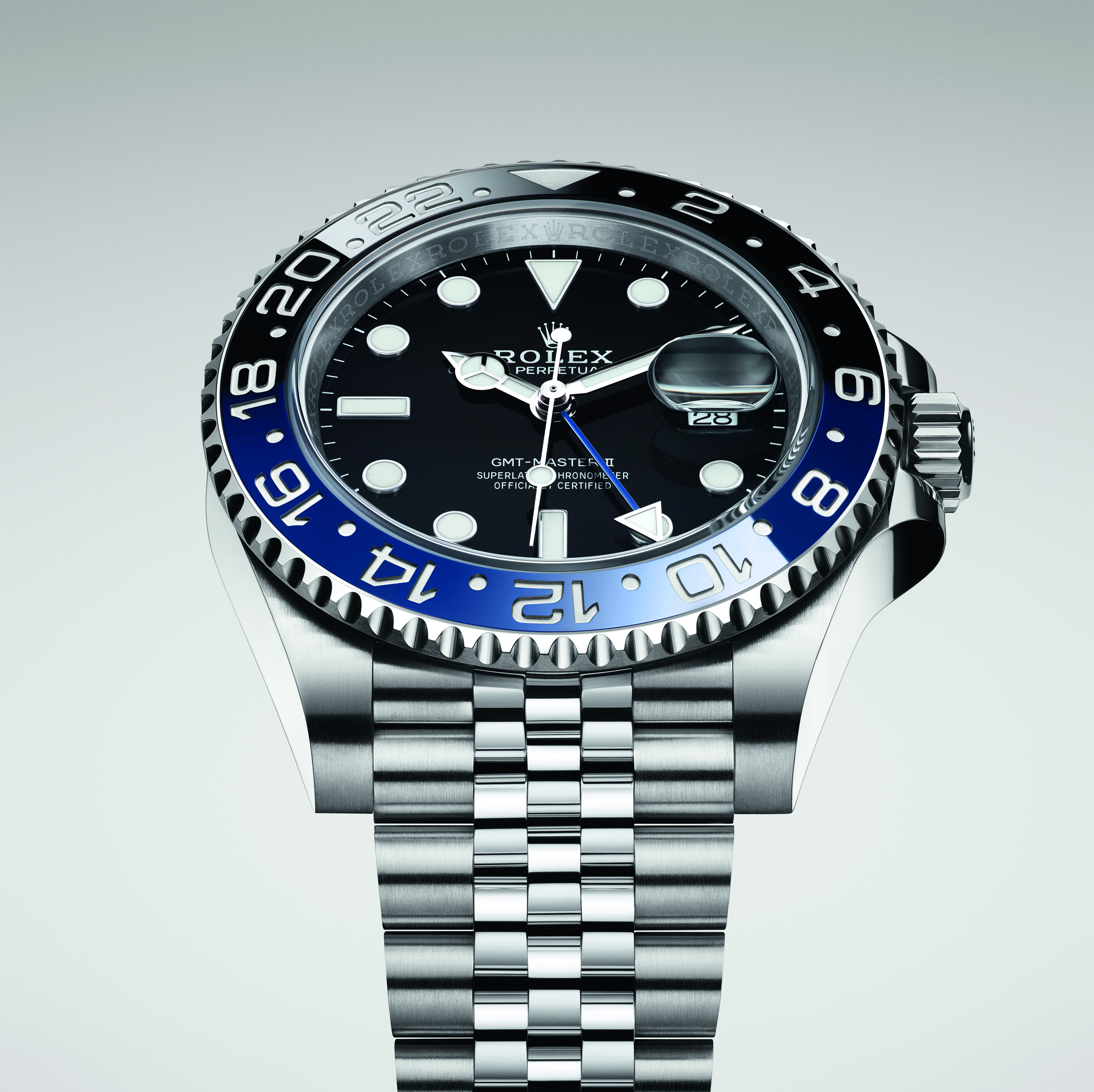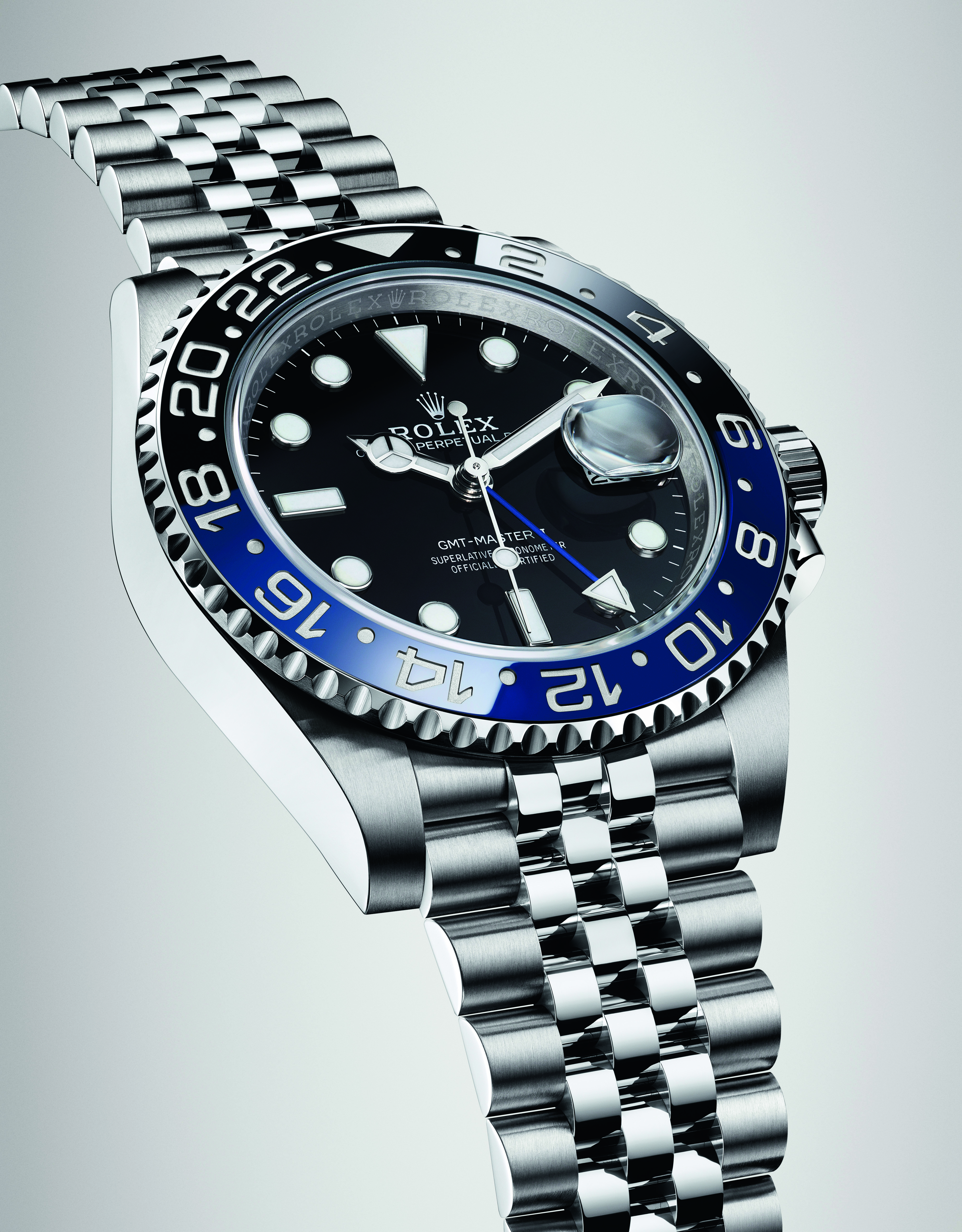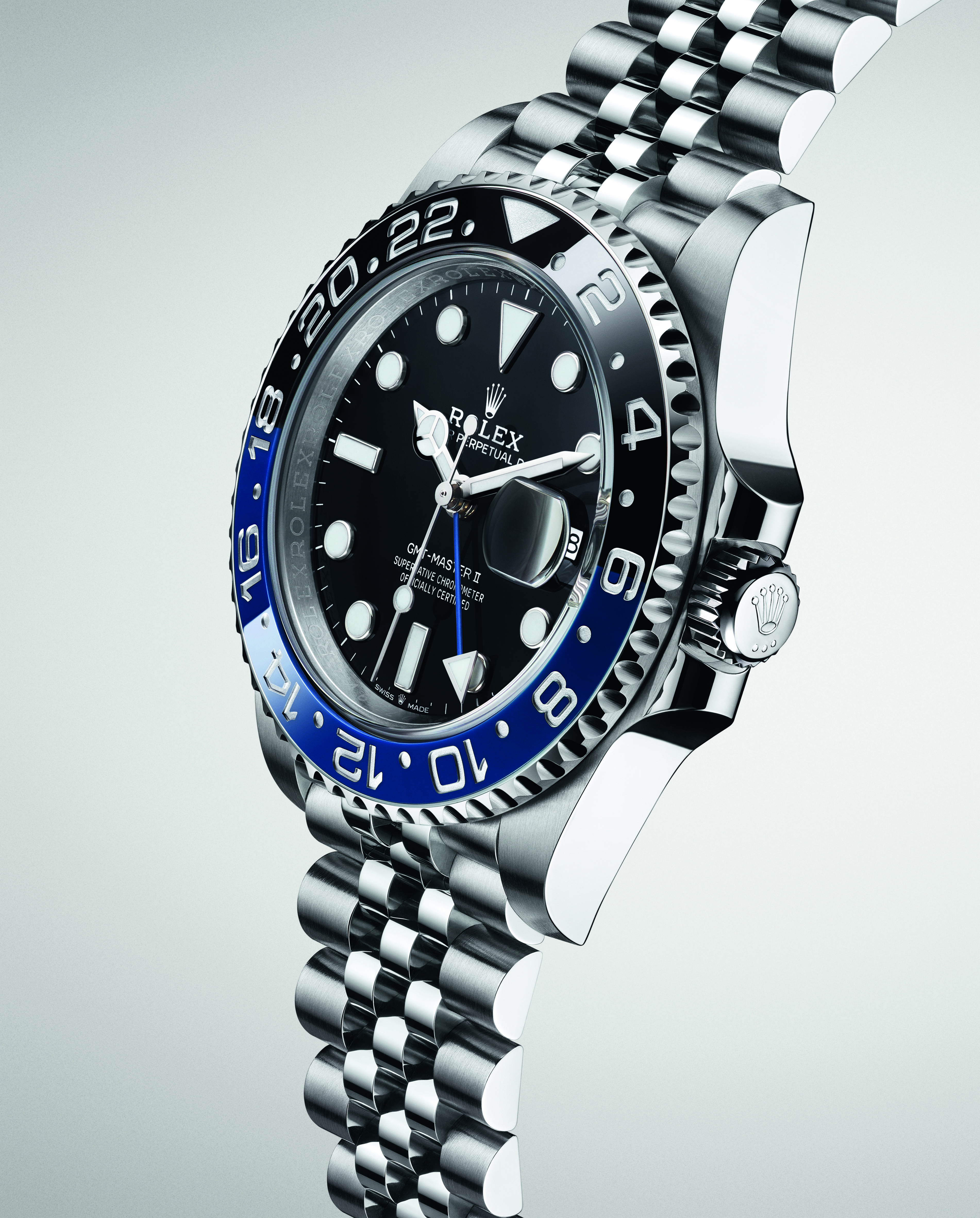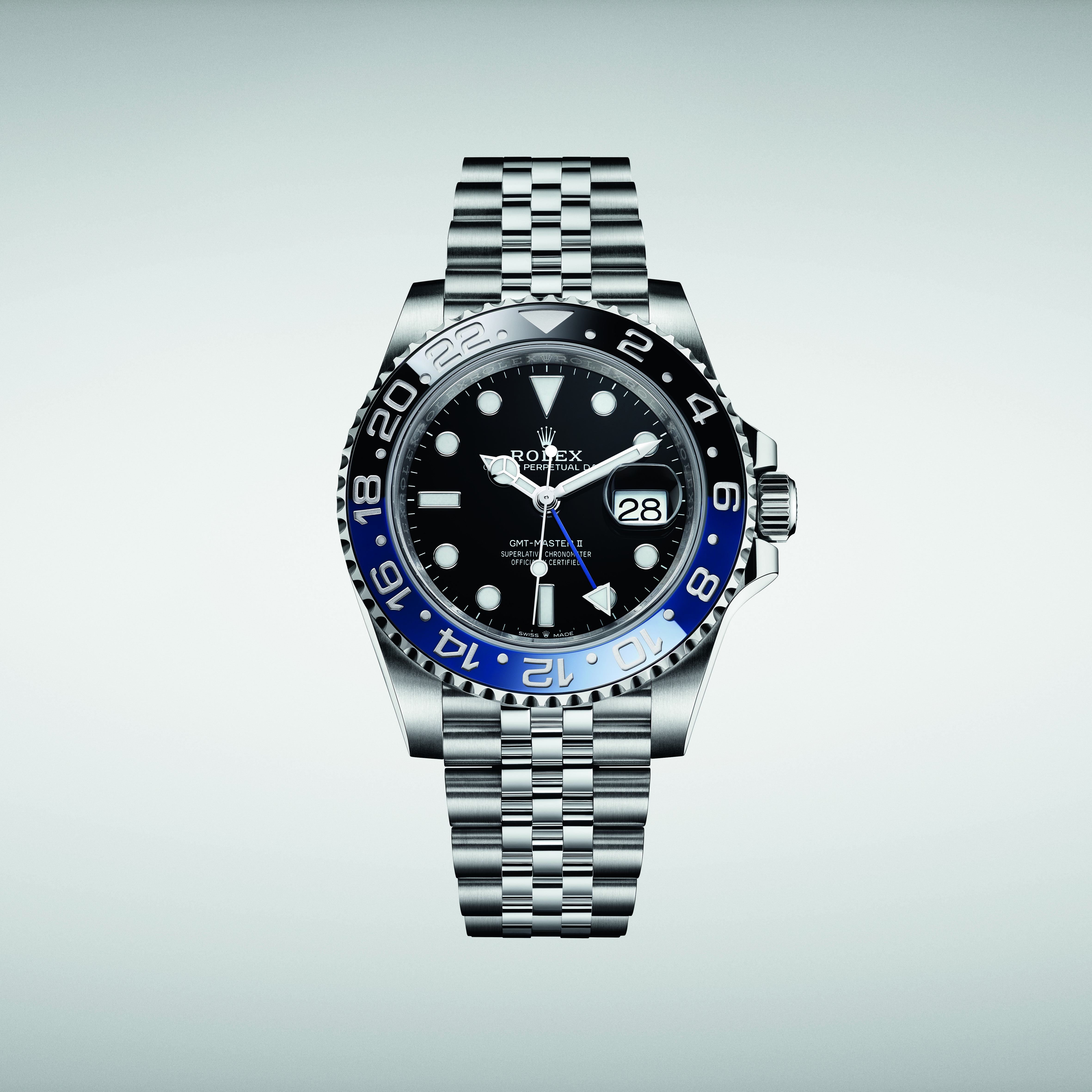 GMT-MASTER II La nouvelle déclinaison de l’Oyster Perpetual GMT-Master II en acier Oystersteel avec disque de lunette Cerachrom en céramique bicolore bleue et noire est assortie d’un bracelet Jubilé et équipée du calibre de nouvelle génération 3285.