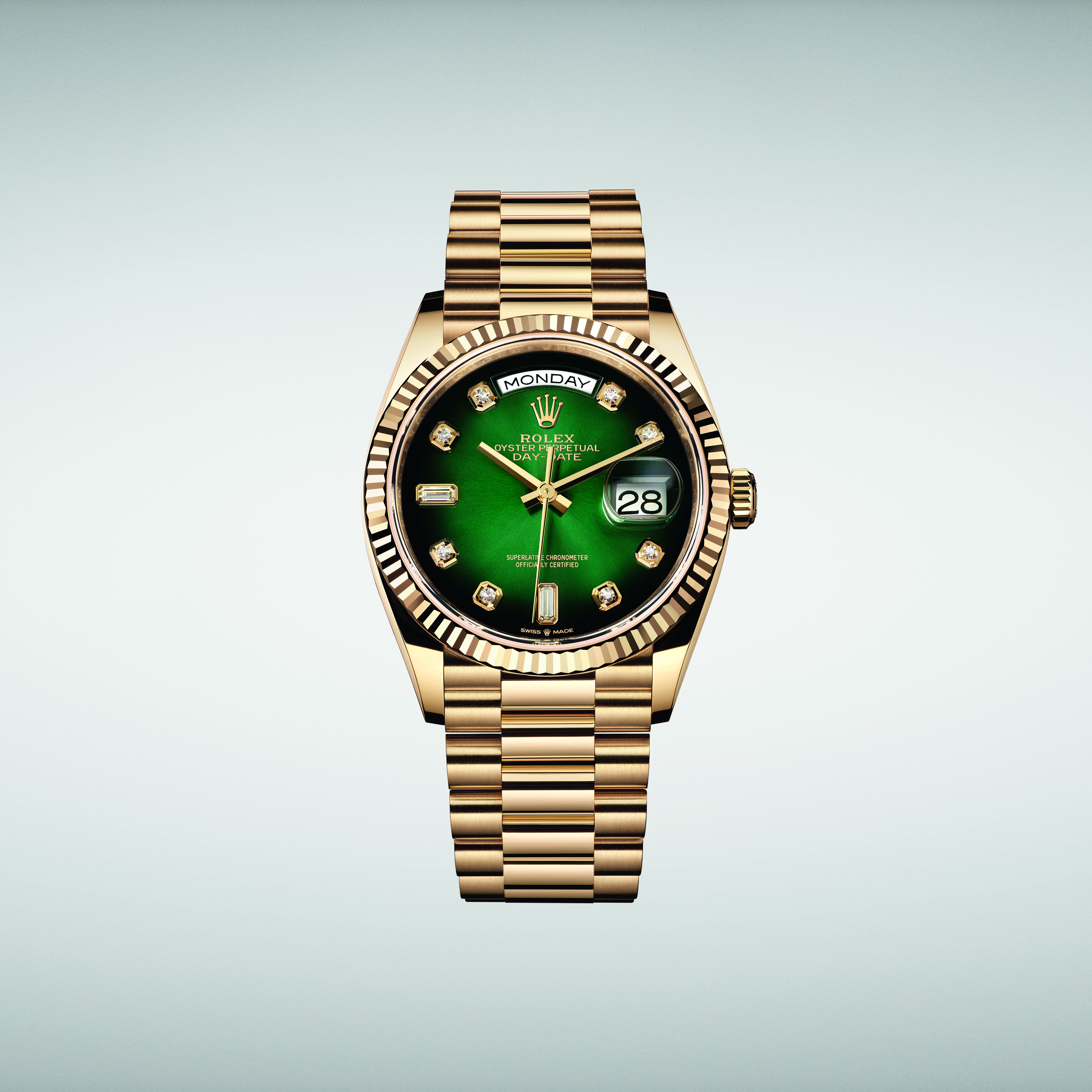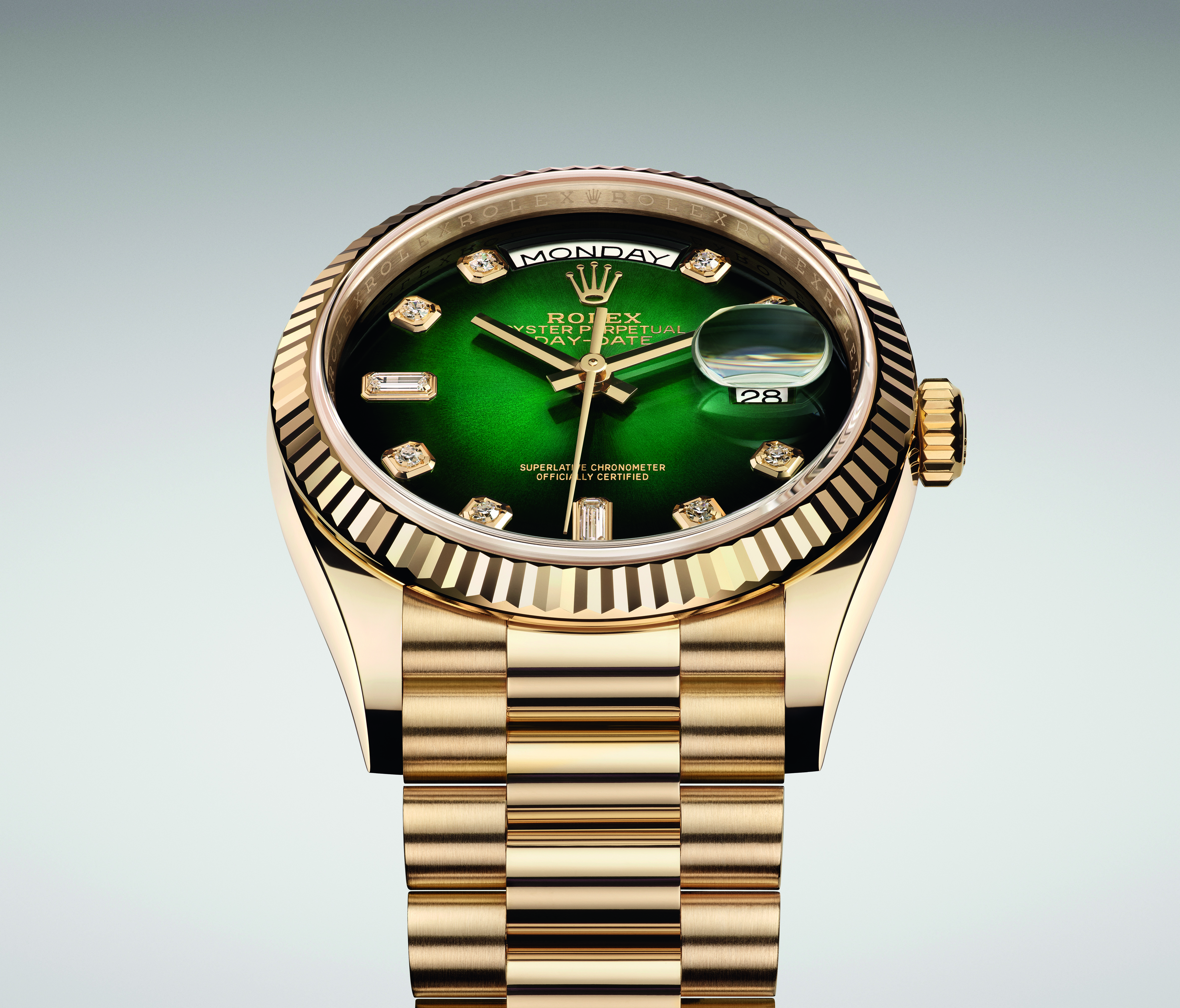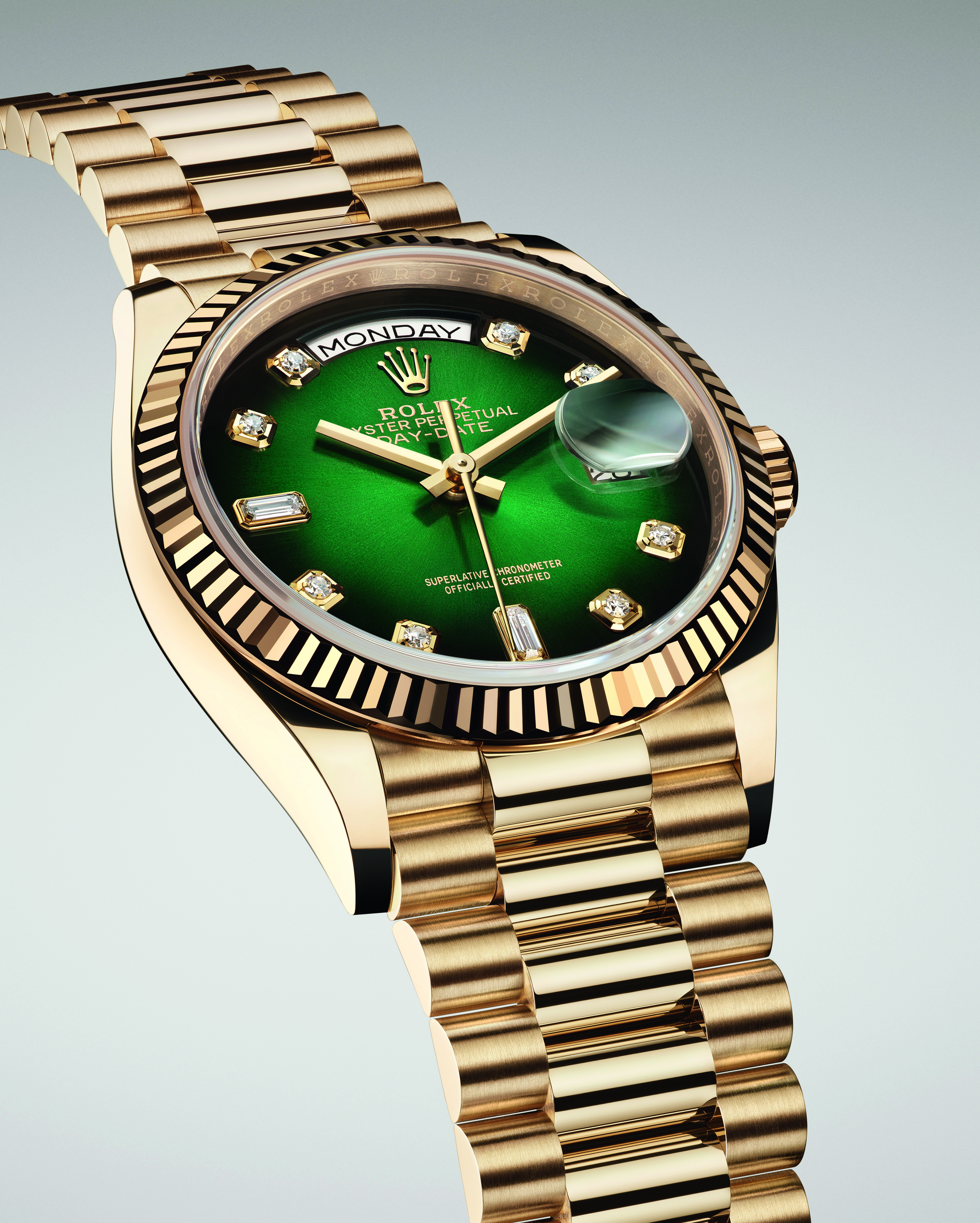 En or jaune, gris ou Everose 18 ct, les nouvelles déclinaisons de l’Oyster Perpetual Day-Date 36 sont proposées avec des cadrans inédits et accueillent le calibre de nouvelle génération 3255.
