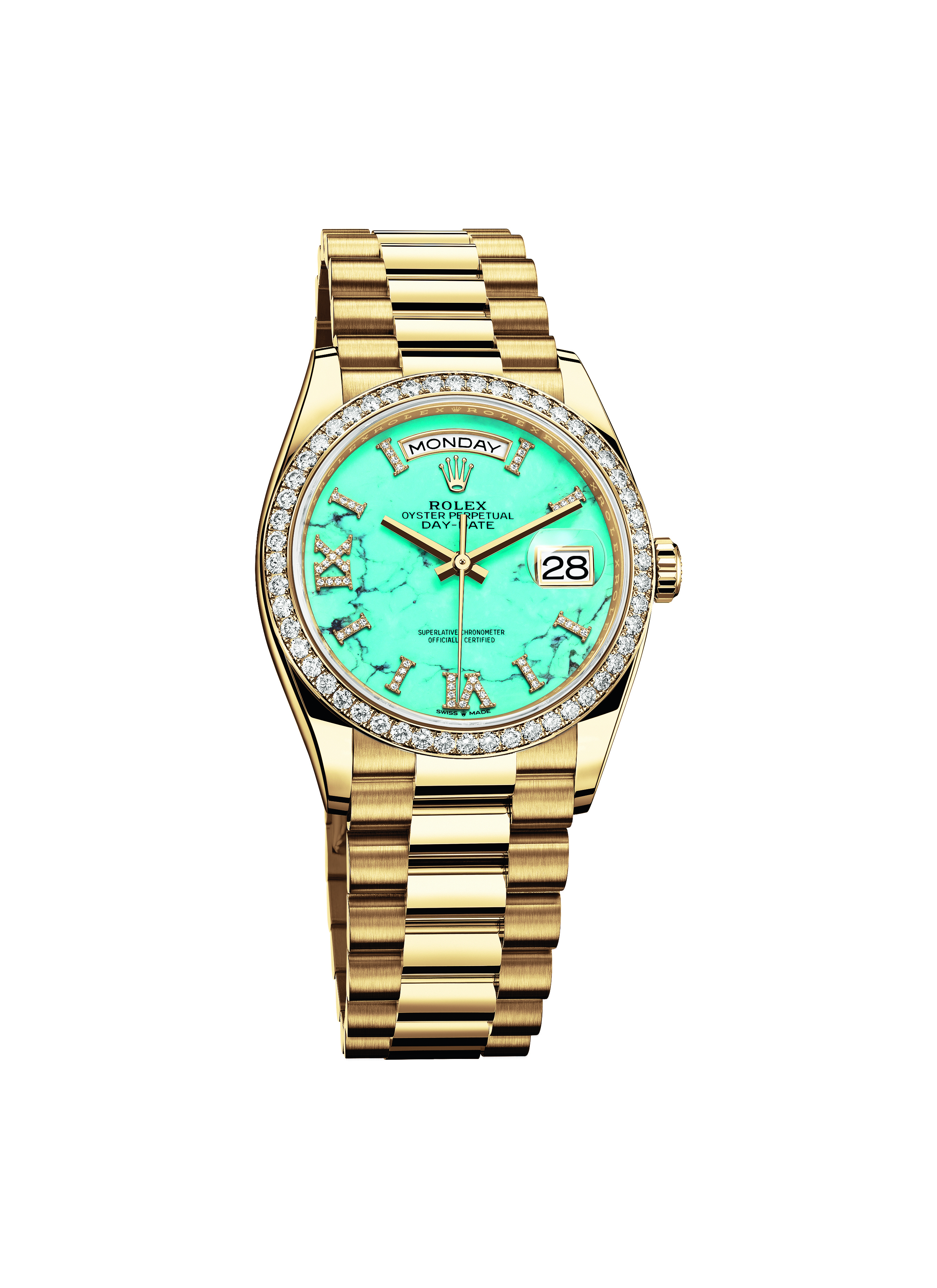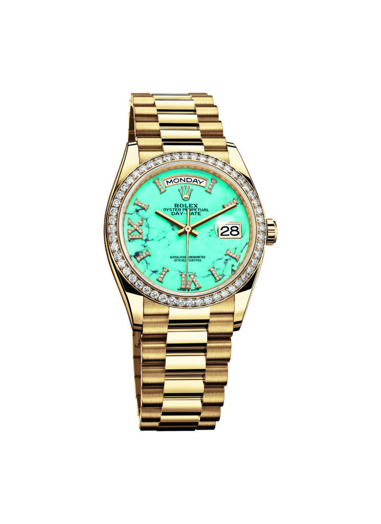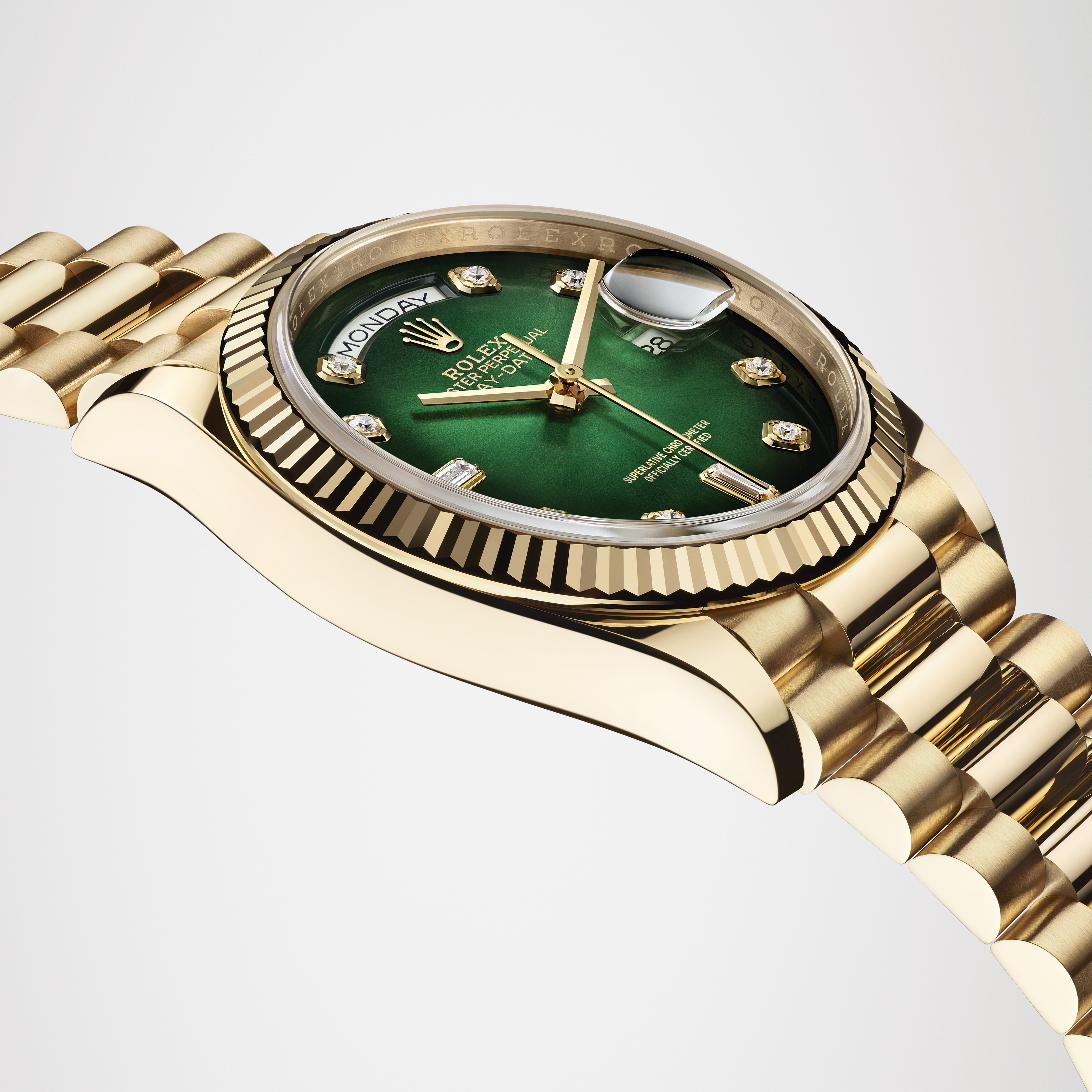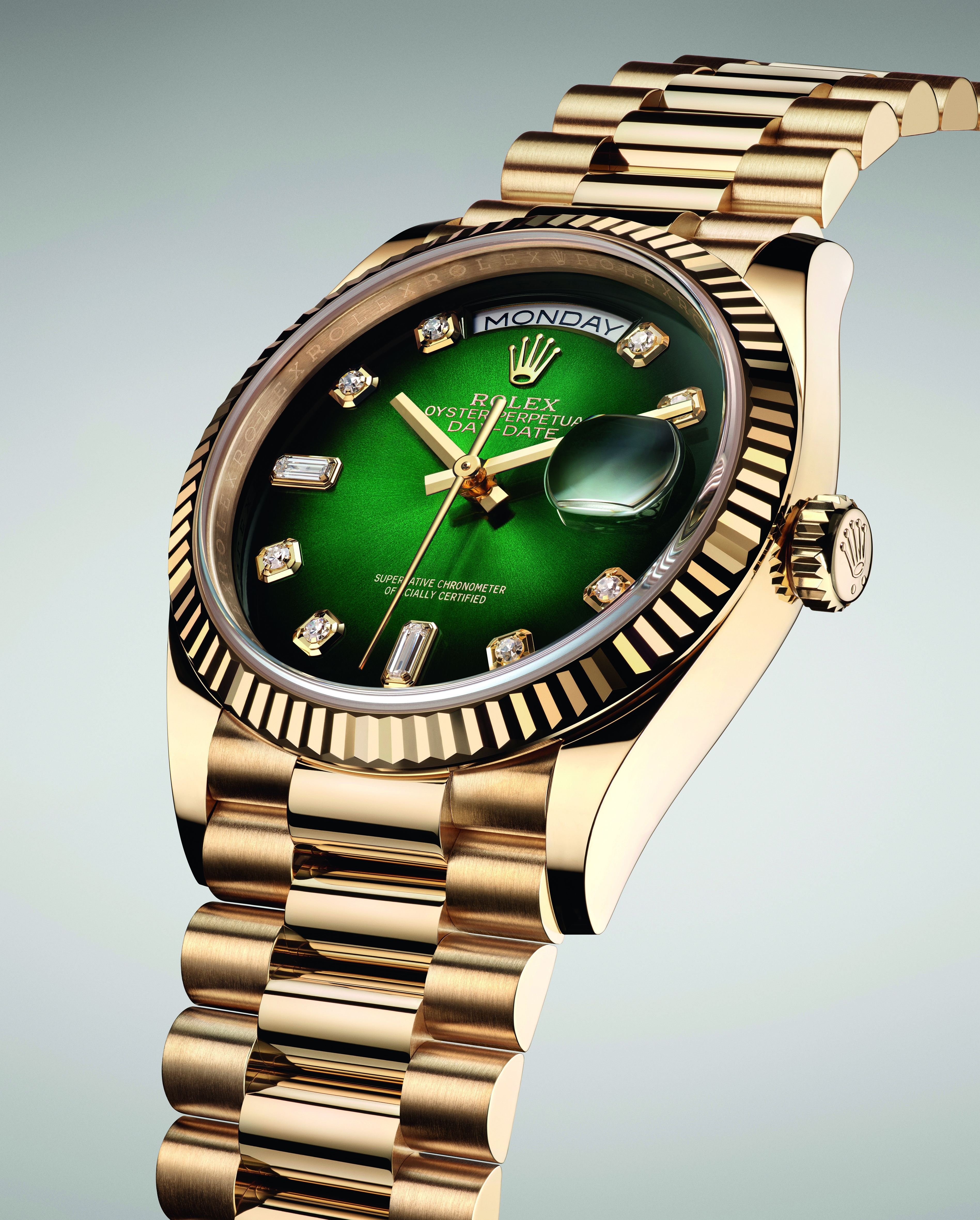 En or jaune, gris ou Everose 18 ct, les nouvelles déclinaisons de l’Oyster Perpetual Day-Date 36 sont proposées avec des cadrans inédits et accueillent le calibre de nouvelle génération 3255.
