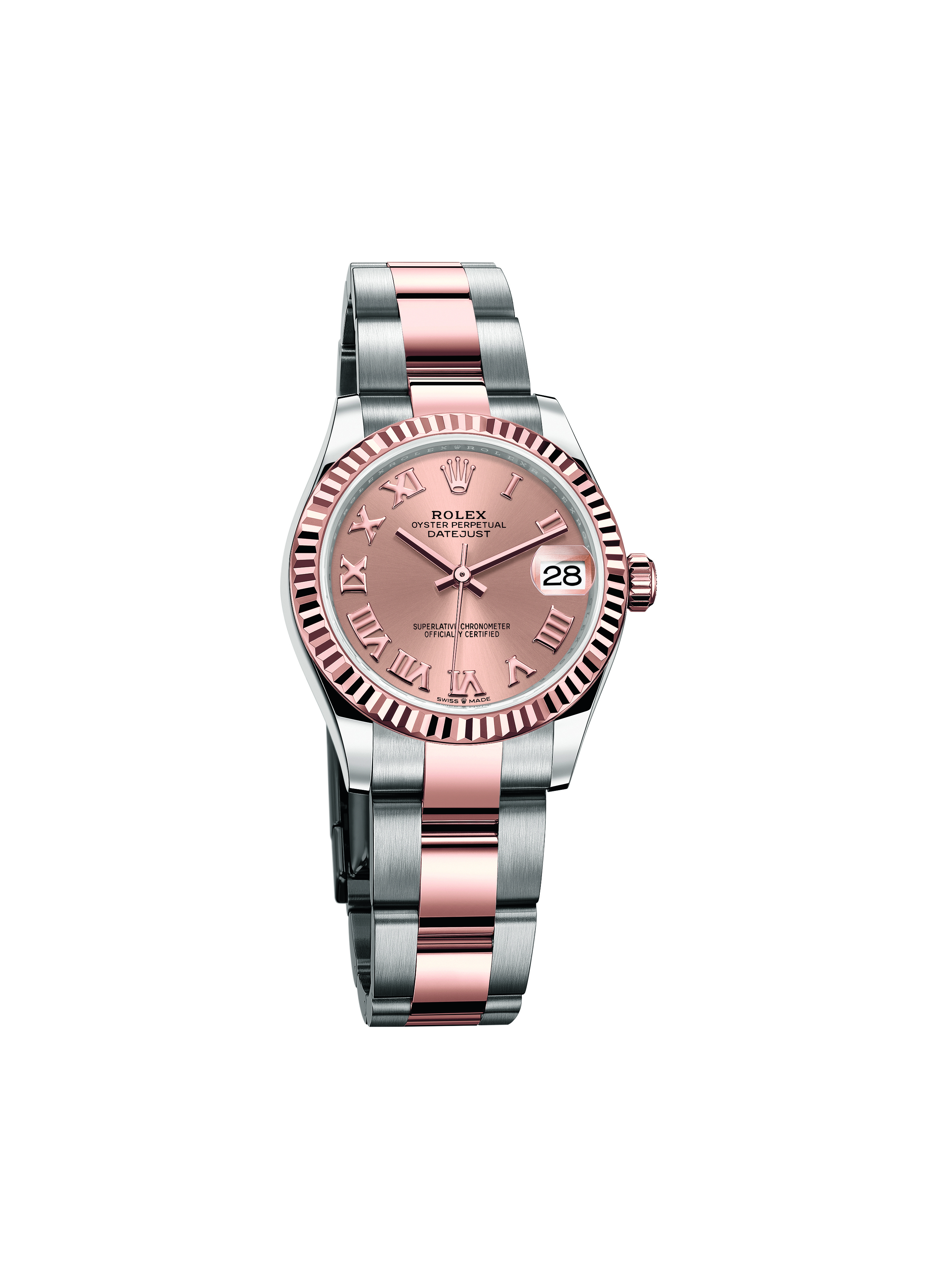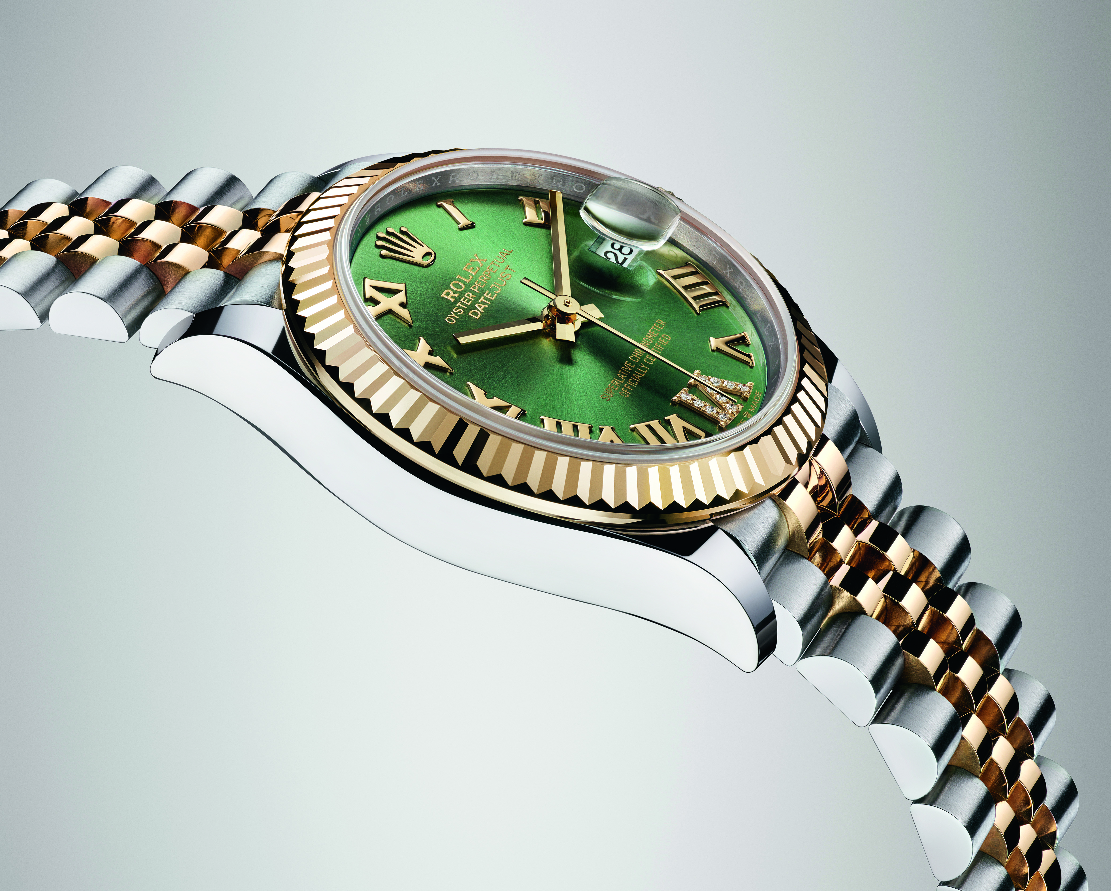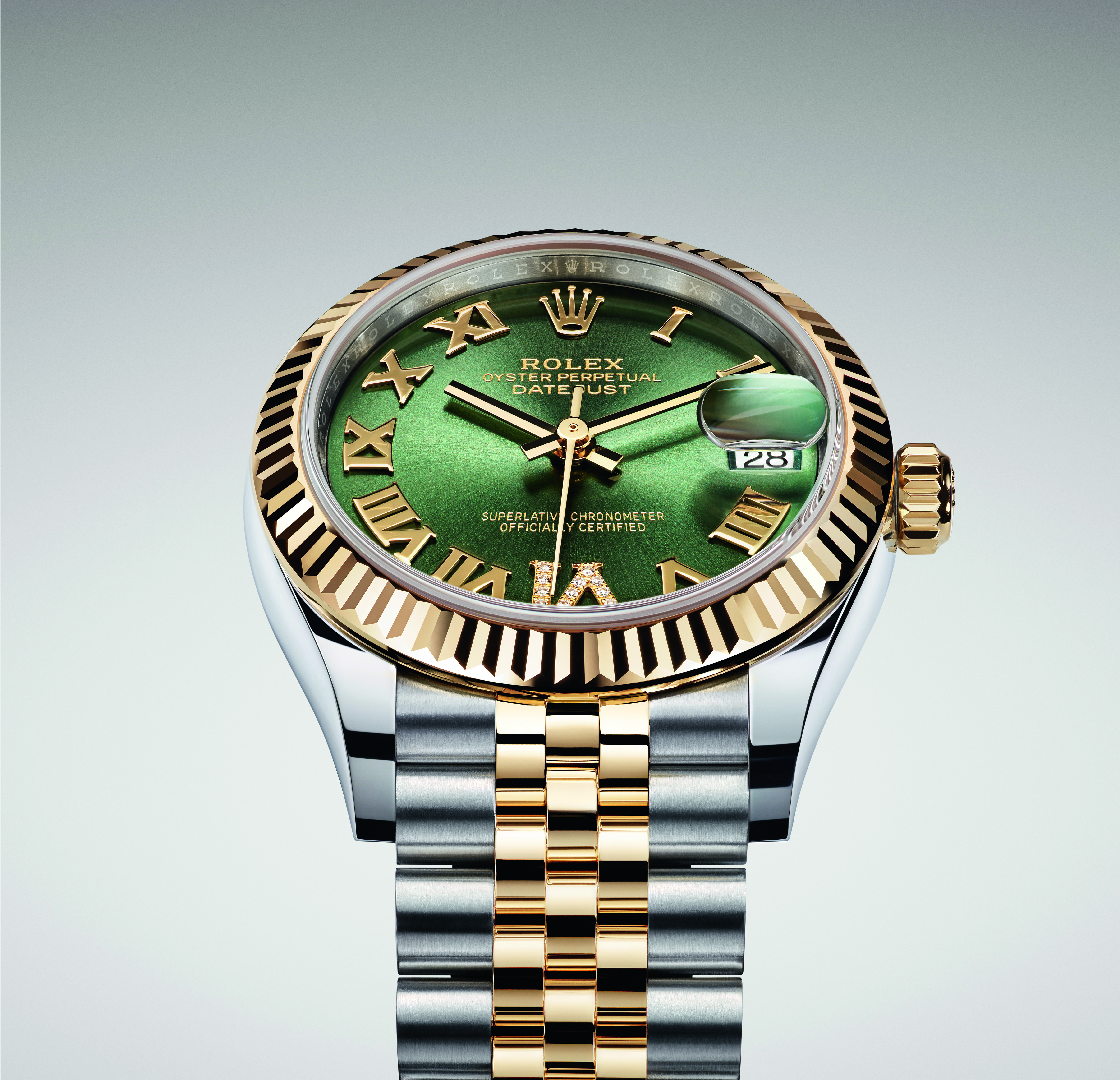 DATEJUST 31 L’Oyster Perpetual Datejust 31 est proposée en version Rolesor jaune avec un cadran vert olive ou en version Rolesor Everose avec un cadran couleur rosé. Ces deux nouvelles déclinaisons sont dotées du calibre 2236 avec spiral Syloxi en silicium.