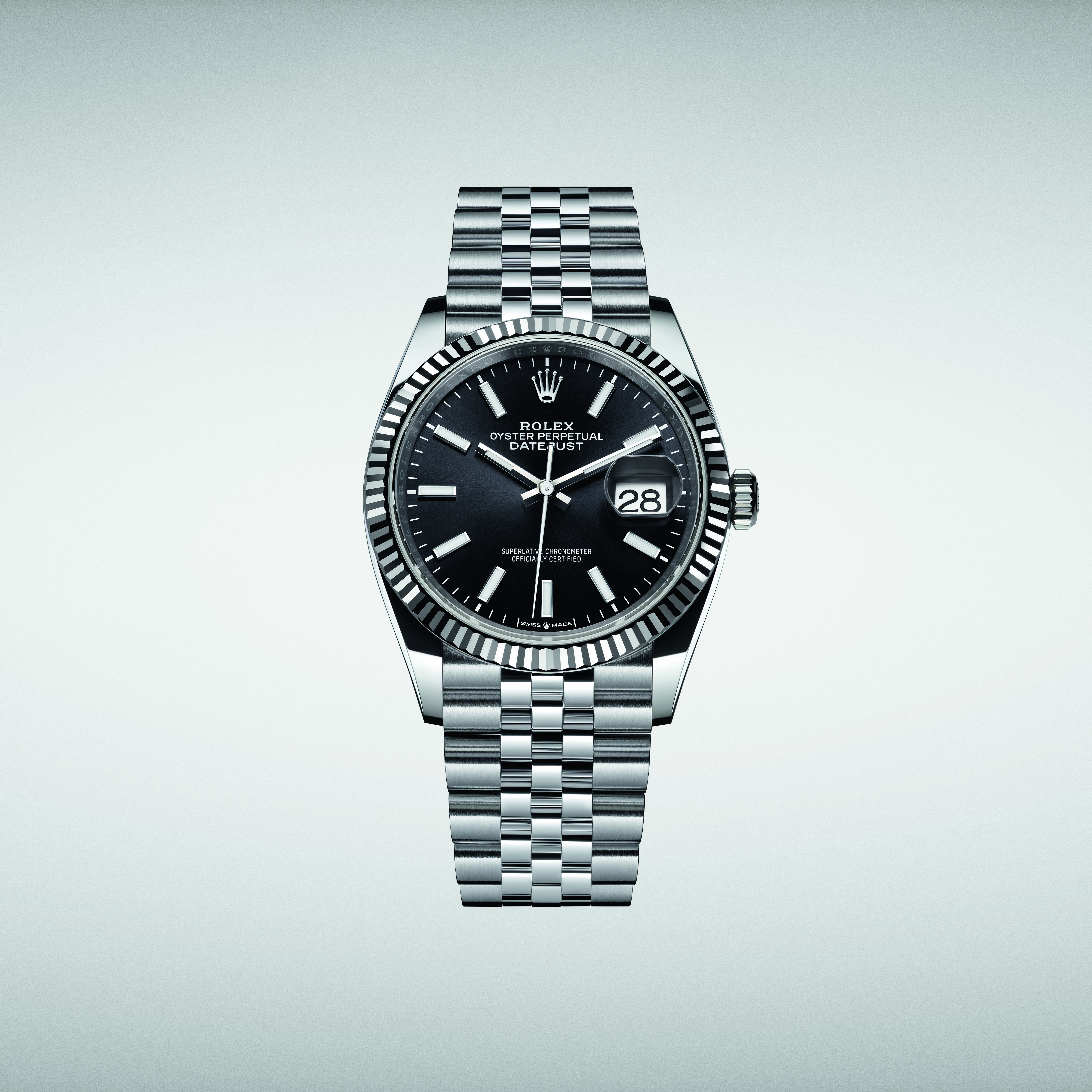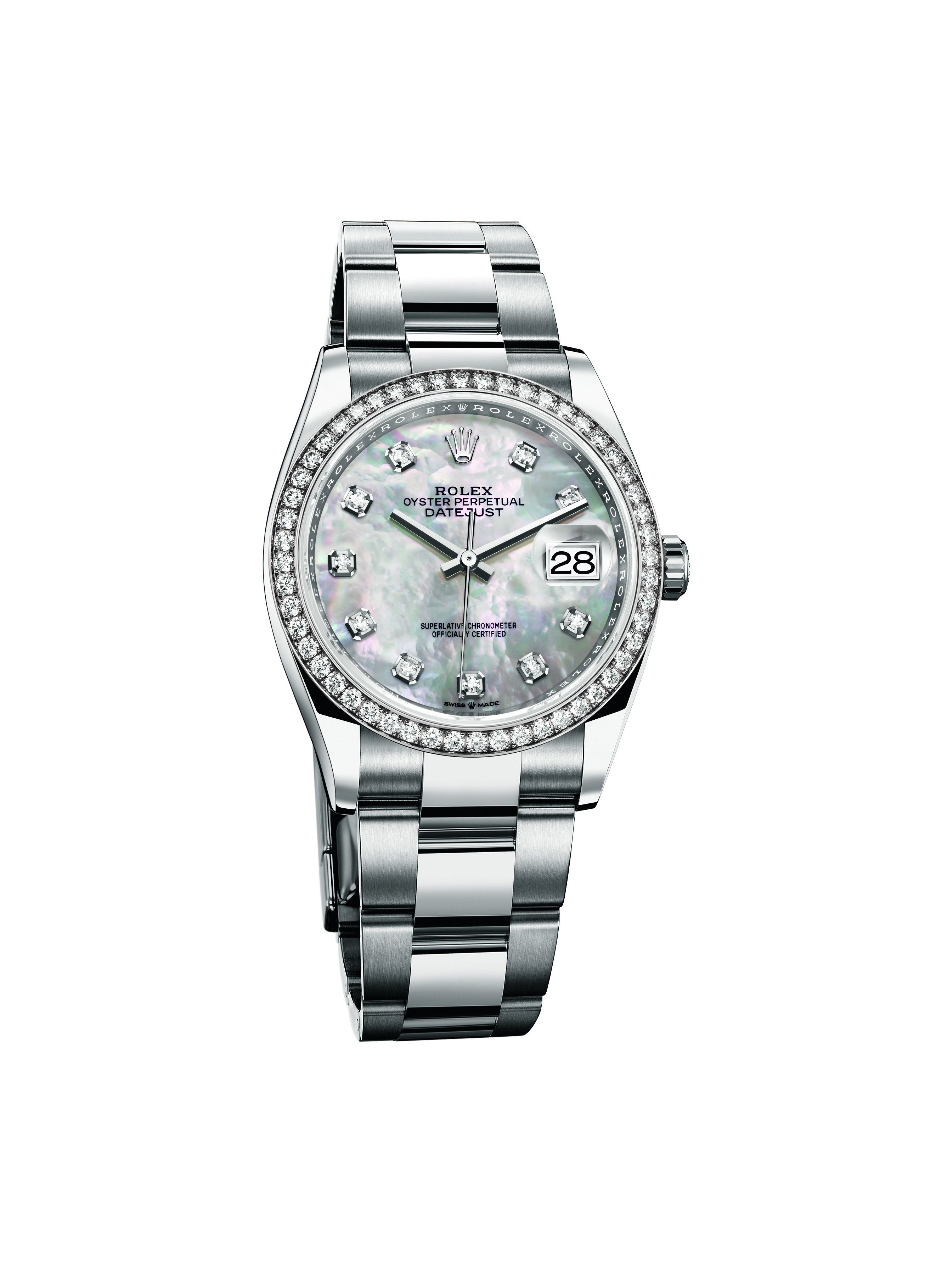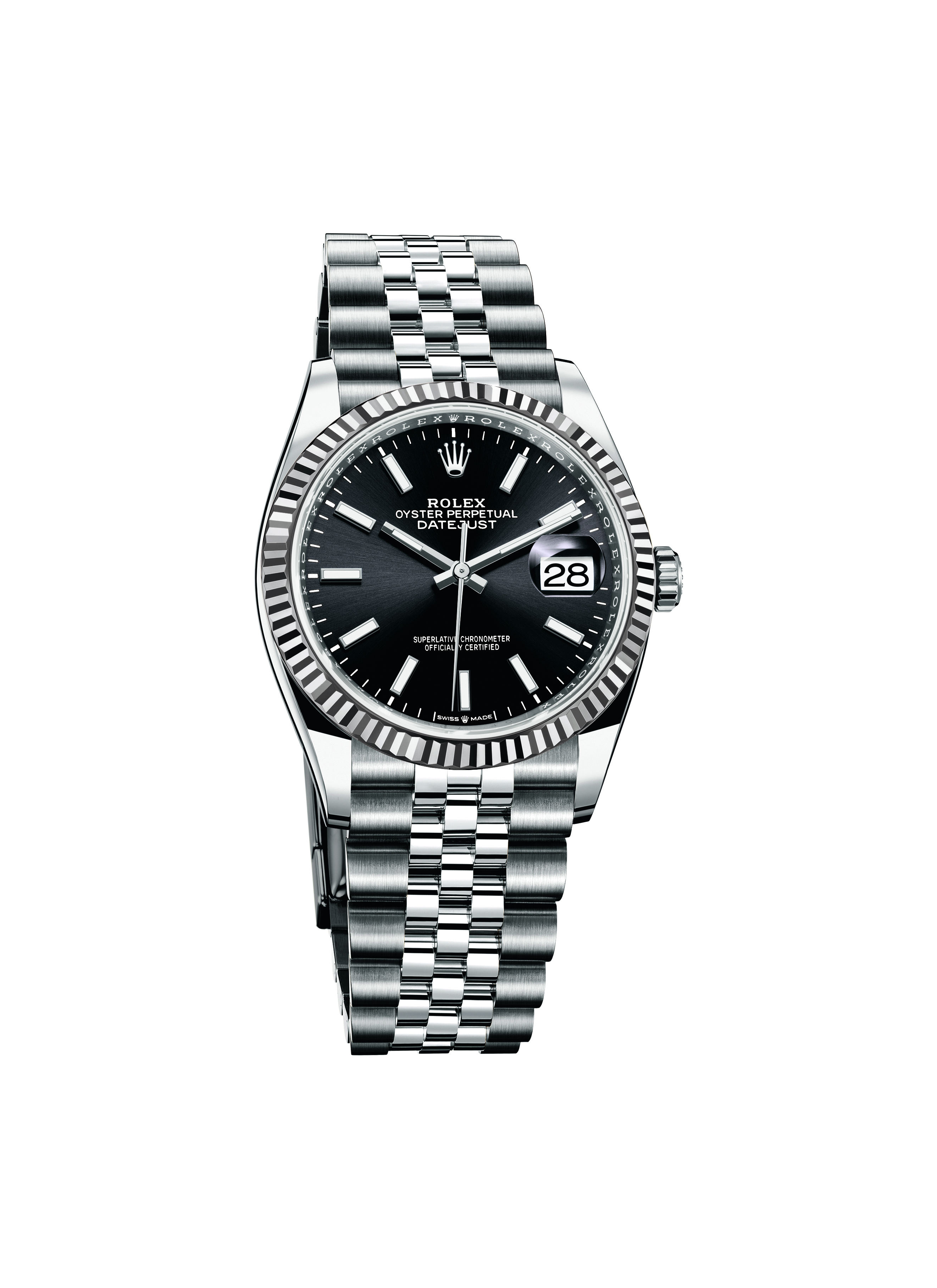 DATEJUST 36 Réalisées en version Rolesor gris, deux nouvelles déclinaisons de l’Oyster Perpetual Datejust 36 arborent l’une un cadran noir finition soleil, l’autre un cadran en nacre blanche. Elles sont équipées du calibre de nouvelle génération 3235.