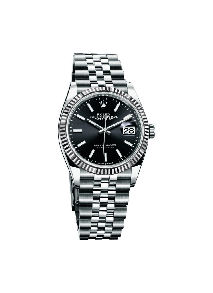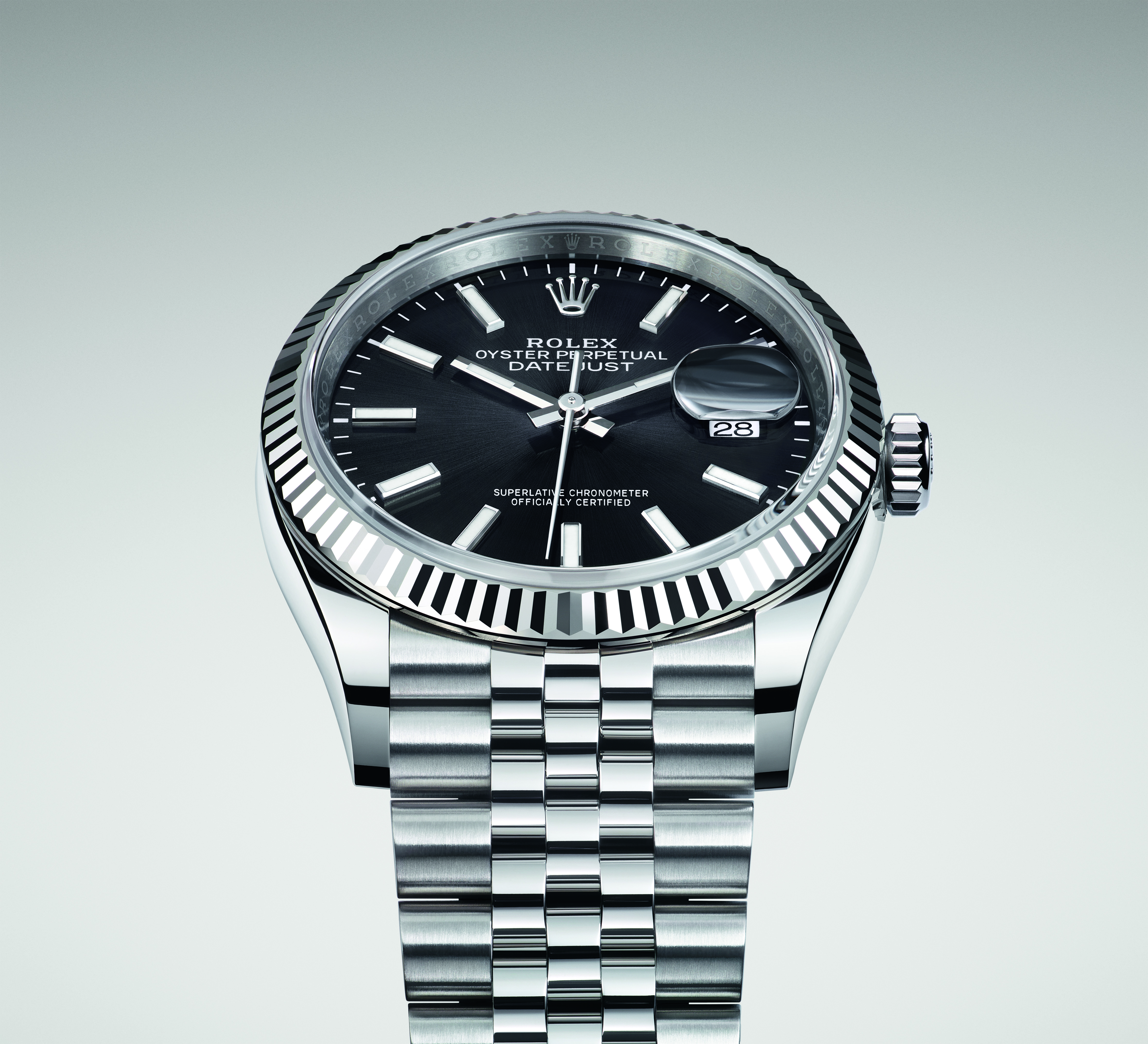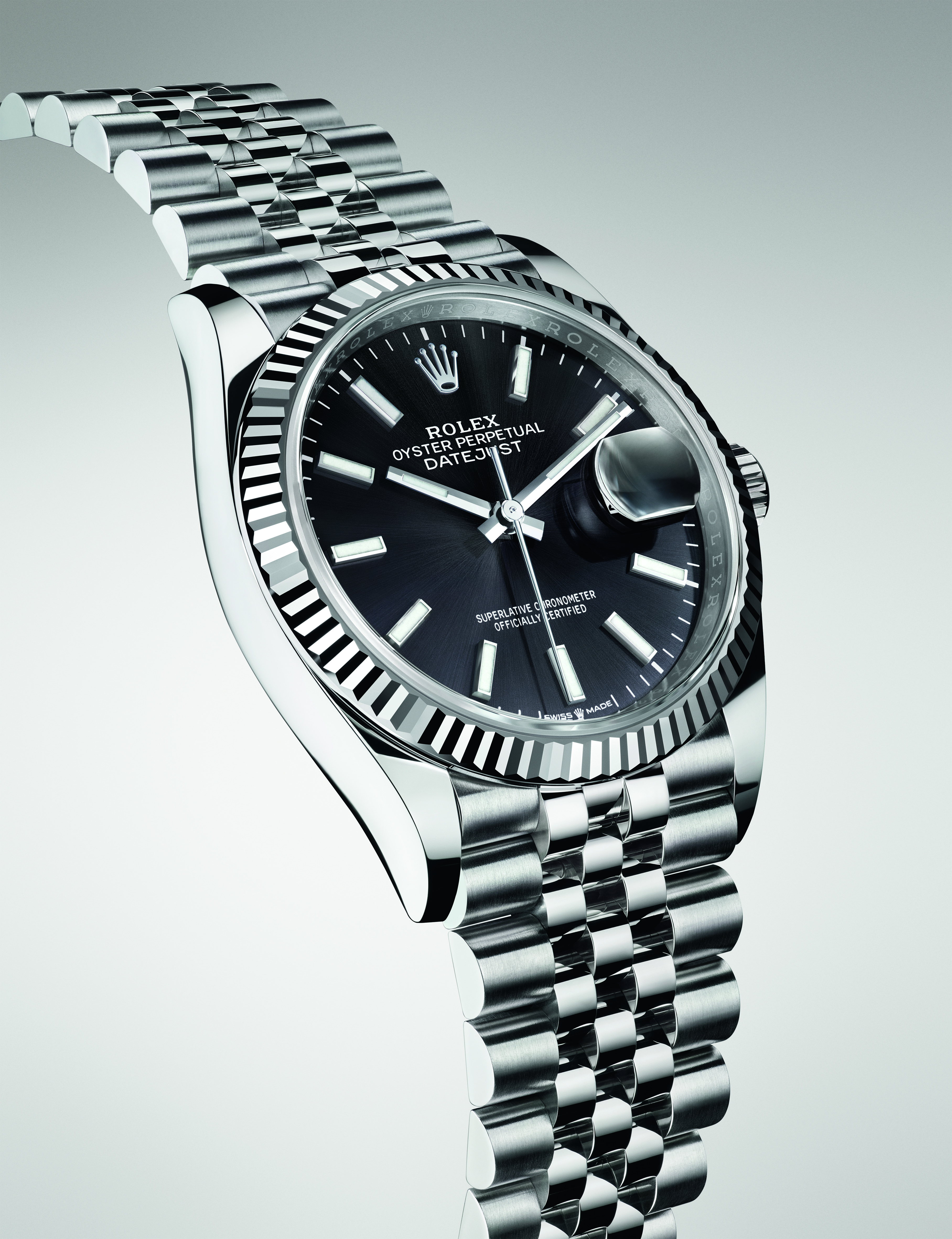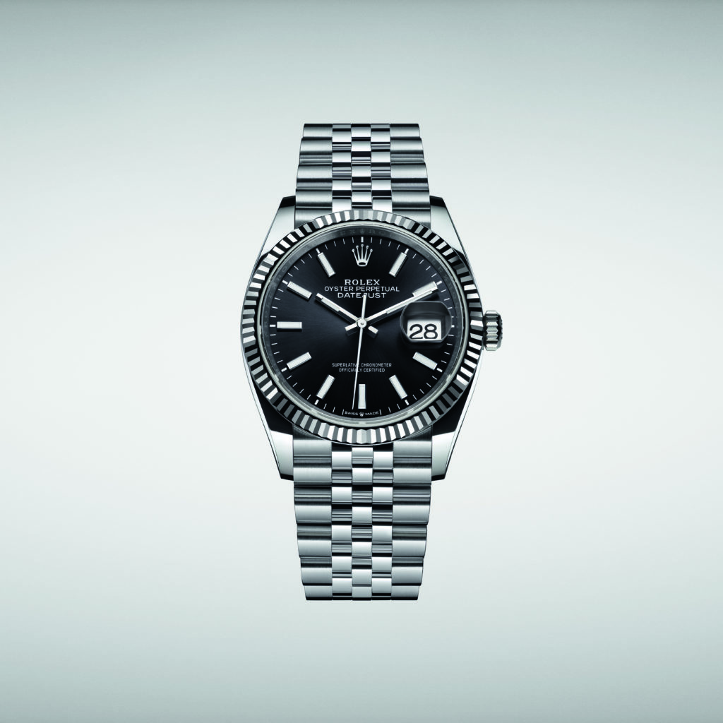 DATEJUST 36 Réalisées en version Rolesor gris, deux nouvelles déclinaisons de l’Oyster Perpetual Datejust 36 arborent l’une un cadran noir finition soleil, l’autre un cadran en nacre blanche. Elles sont équipées du calibre de nouvelle génération 3235.
