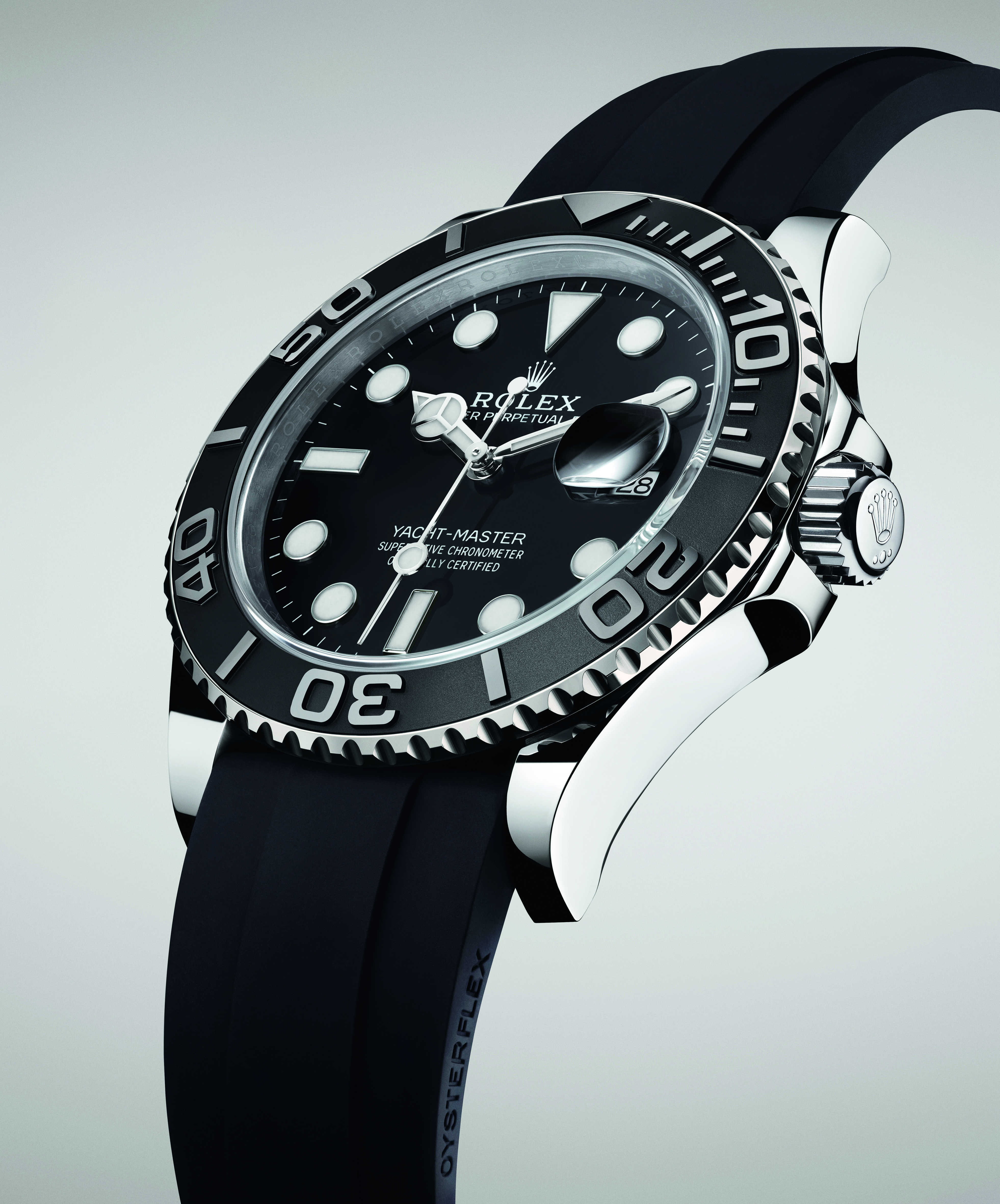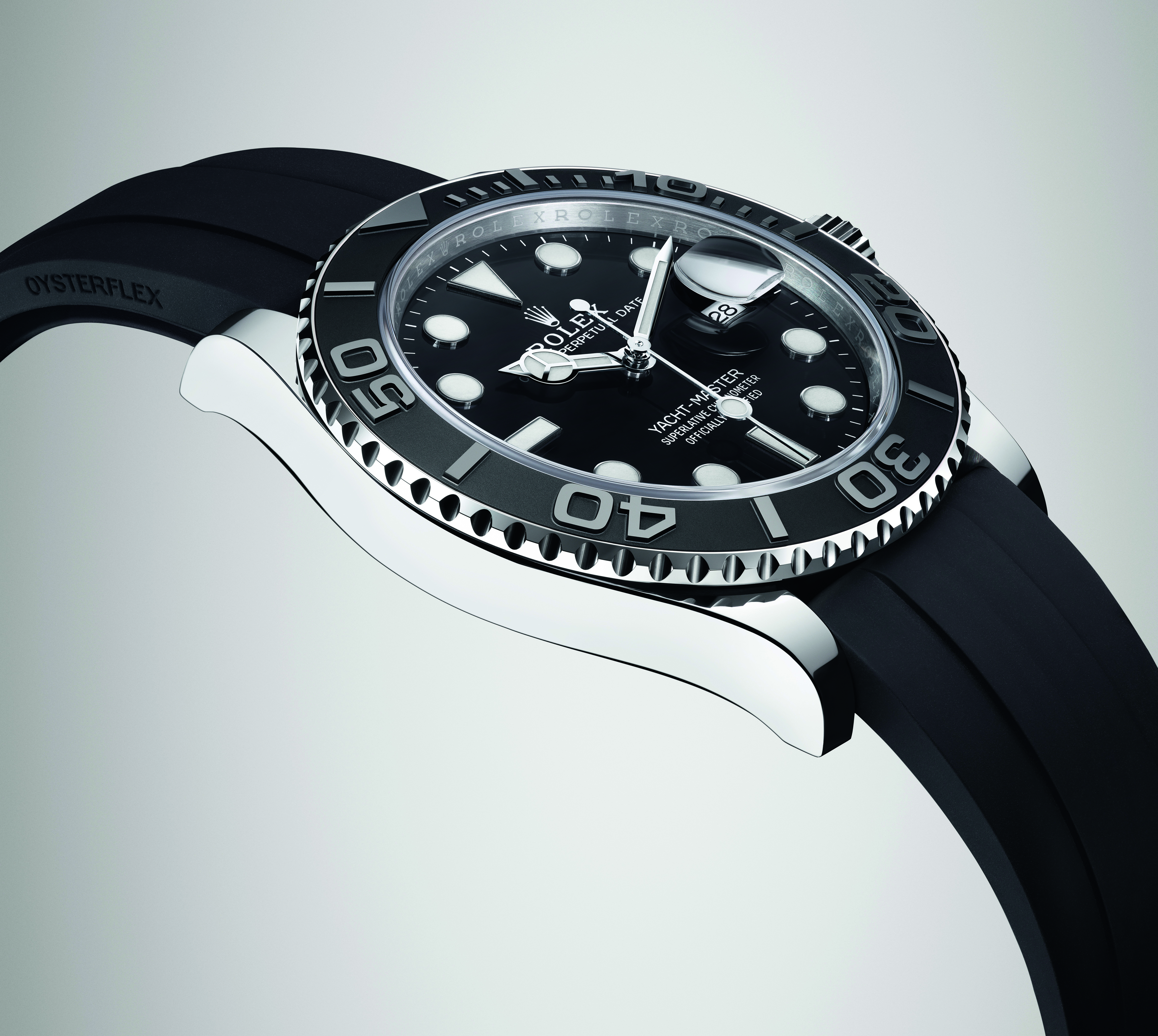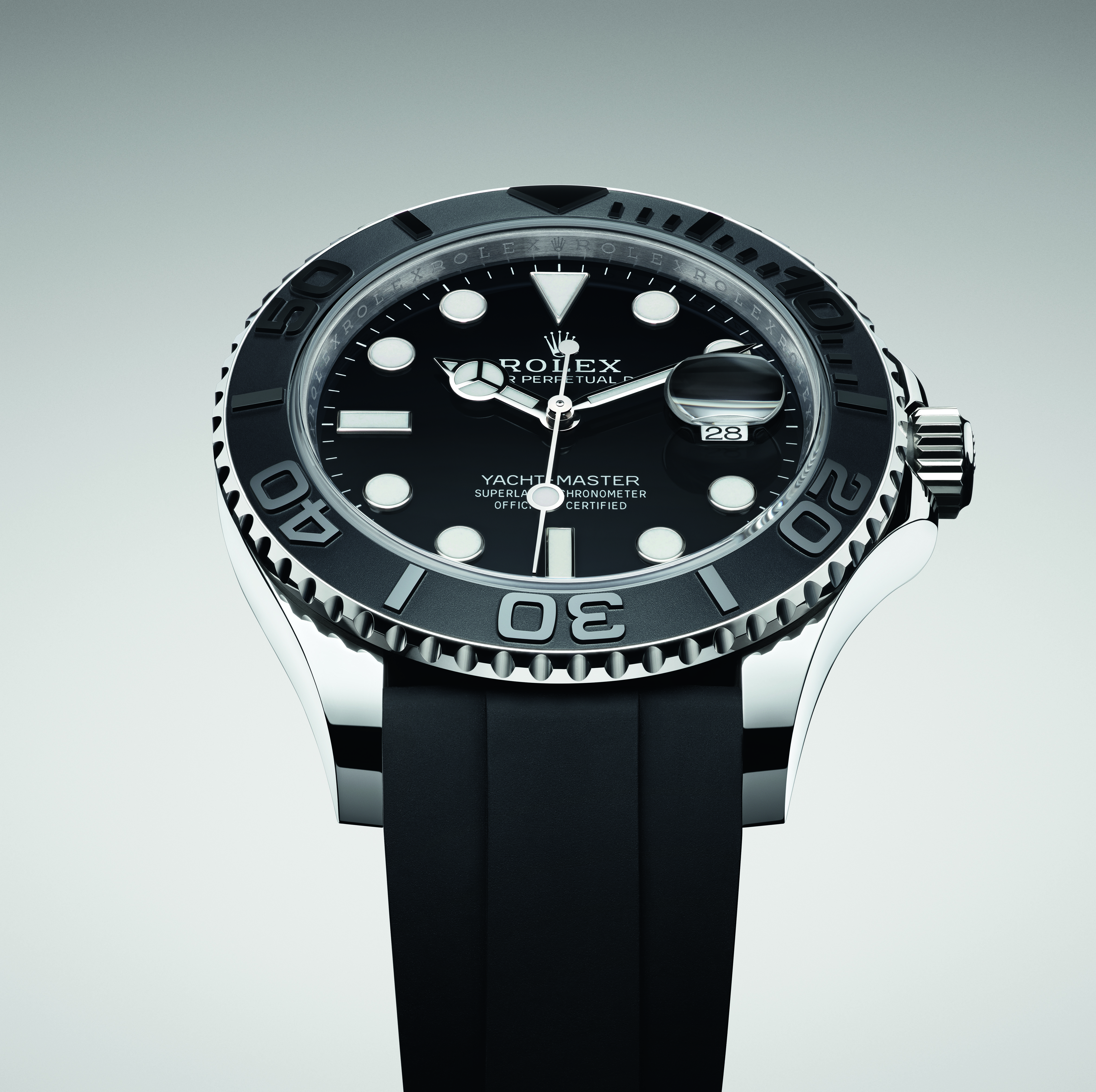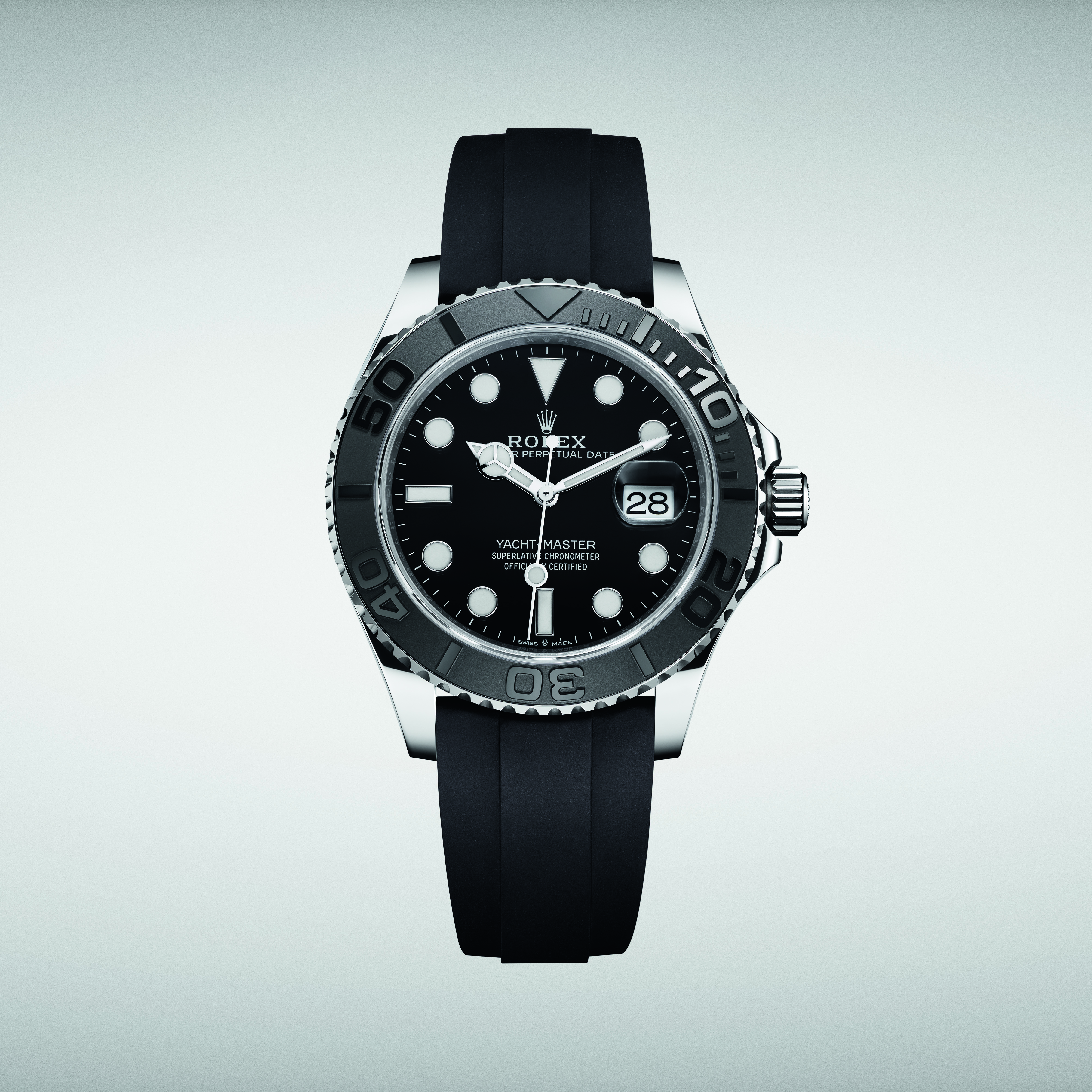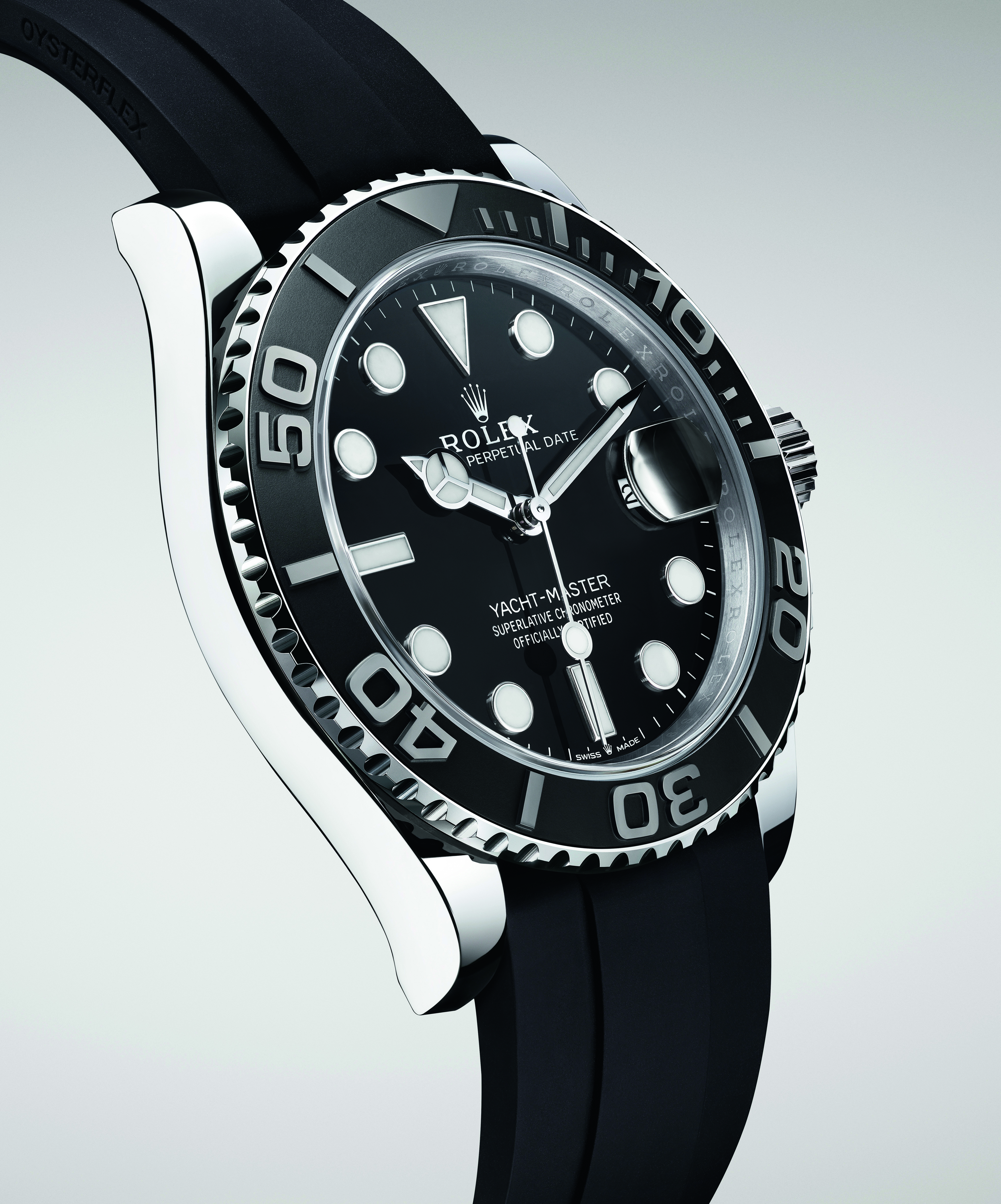 YACHT-MASTER 42 Nouveau modèle, l’Oyster Perpetual Yacht-Master 42 affiche un diamètre de 42 mm – inédit dans la gamme Yacht-Master. Réalisée en or gris 18 ct, elle est équipée du calibre de nouvelle génération 3235.