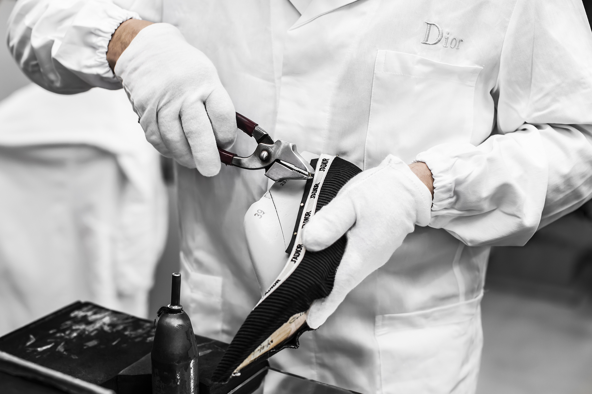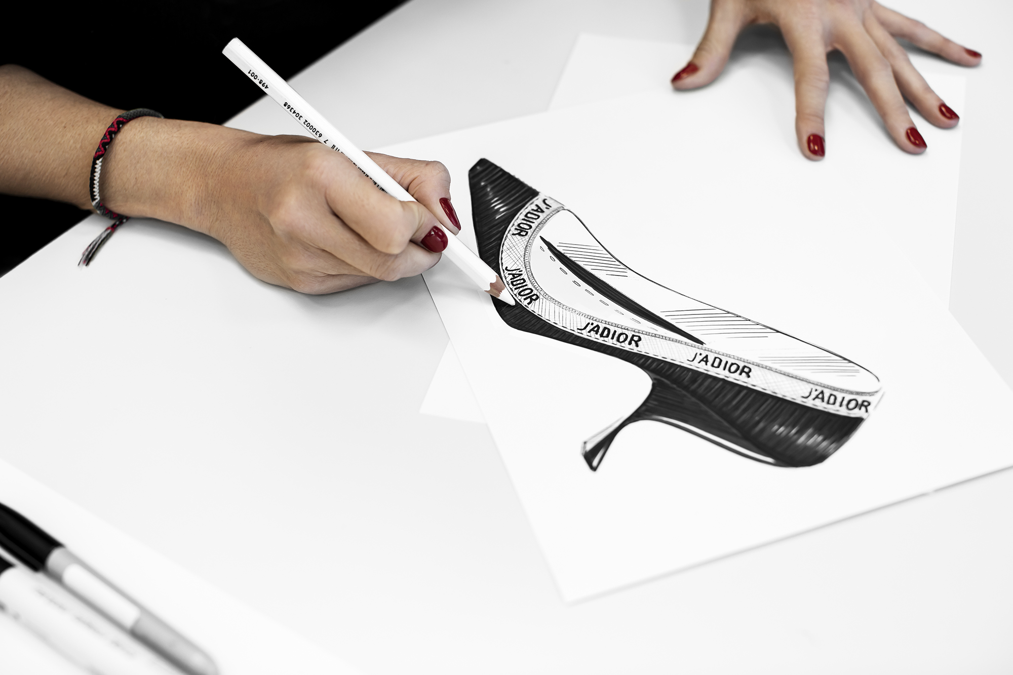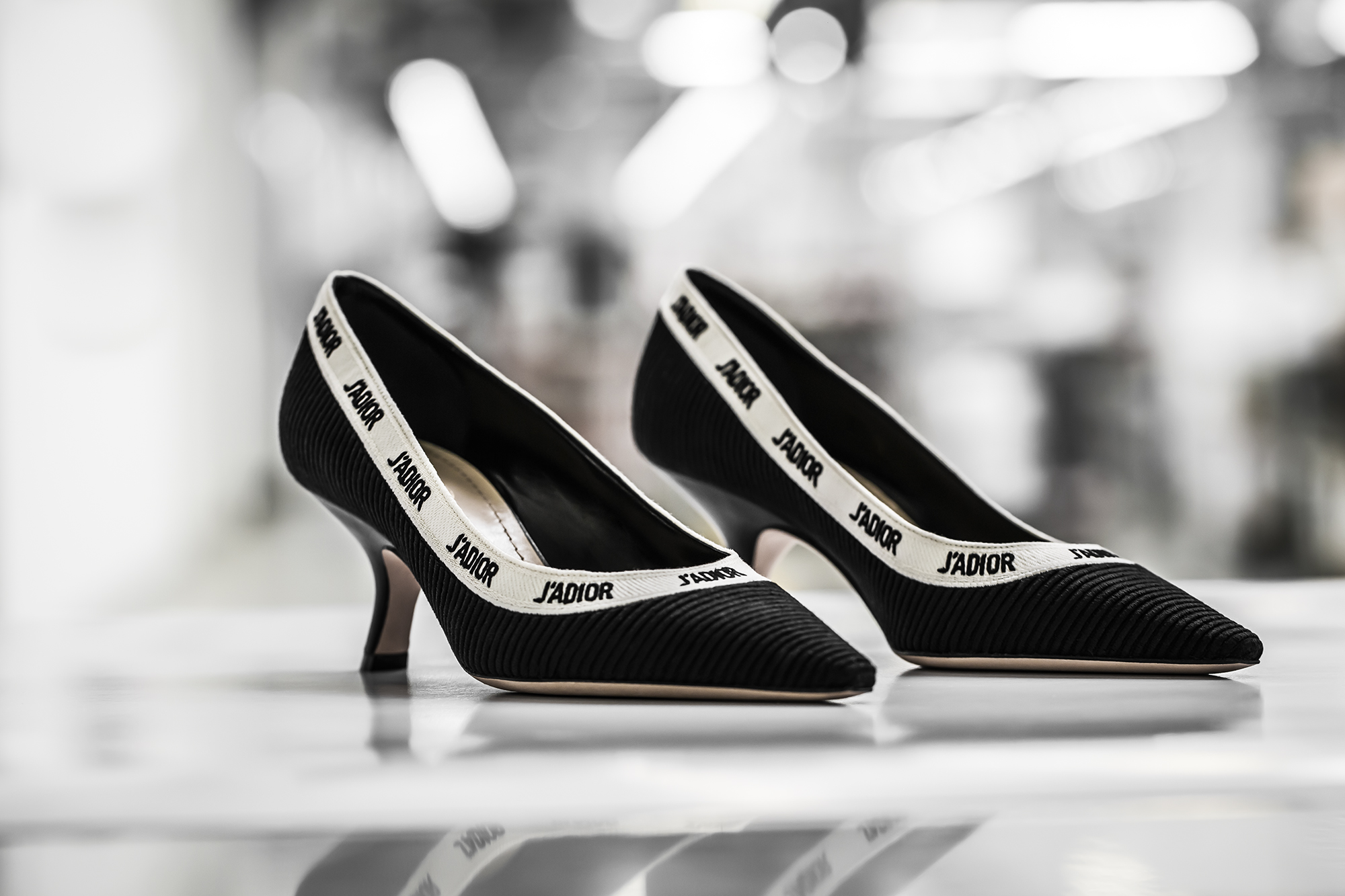 Les escarpins J’Adior se réinventent cette saison à l’occasion de la collection Fall 2019 de Maria Grazia Chiuri. Le ruban blanc brodé de l’emblématique « J’Adior » habille, comme un liseré, le décolleté de ces souliers noirs, eux-mêmes entièrement brodés. Issus d’une technique novatrice et unique, ces escarpins nécessitent pas moins de 230 000 points de broderie et sont réalisés pour la première fois d’une seule pièce et sans aucune couture, à l’instar des souliers spécialement créés pour le mariage de Chiara Ferragni. Une création minutieuse et exceptionnelle nécessitant plus de 9 heures de travail, expression du savoir-faire d’excellence des ateliers Dior.