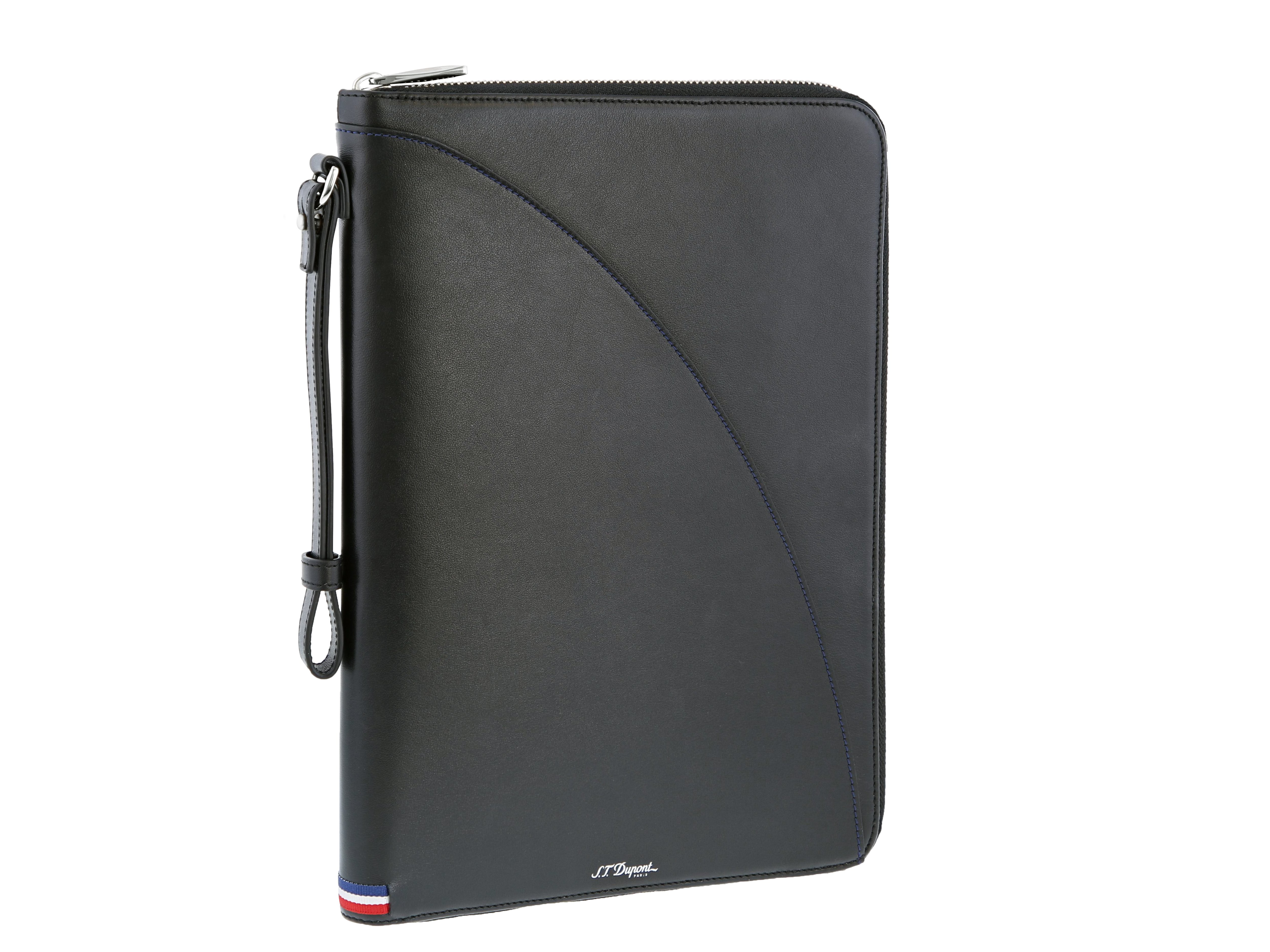 Un porte-documents sophistiqué qui s’ouvre pour révéler un compartiment intérieur destiné à recevoir un ordinateur portable ou une tablette. Celui-ci est fermé par un élément en métal et un rabat en cuir noir élégant avec le logo S.T. Dupont gaufré en argent, le porte-documents Defi Millennium possède également une bandoulière amovible.